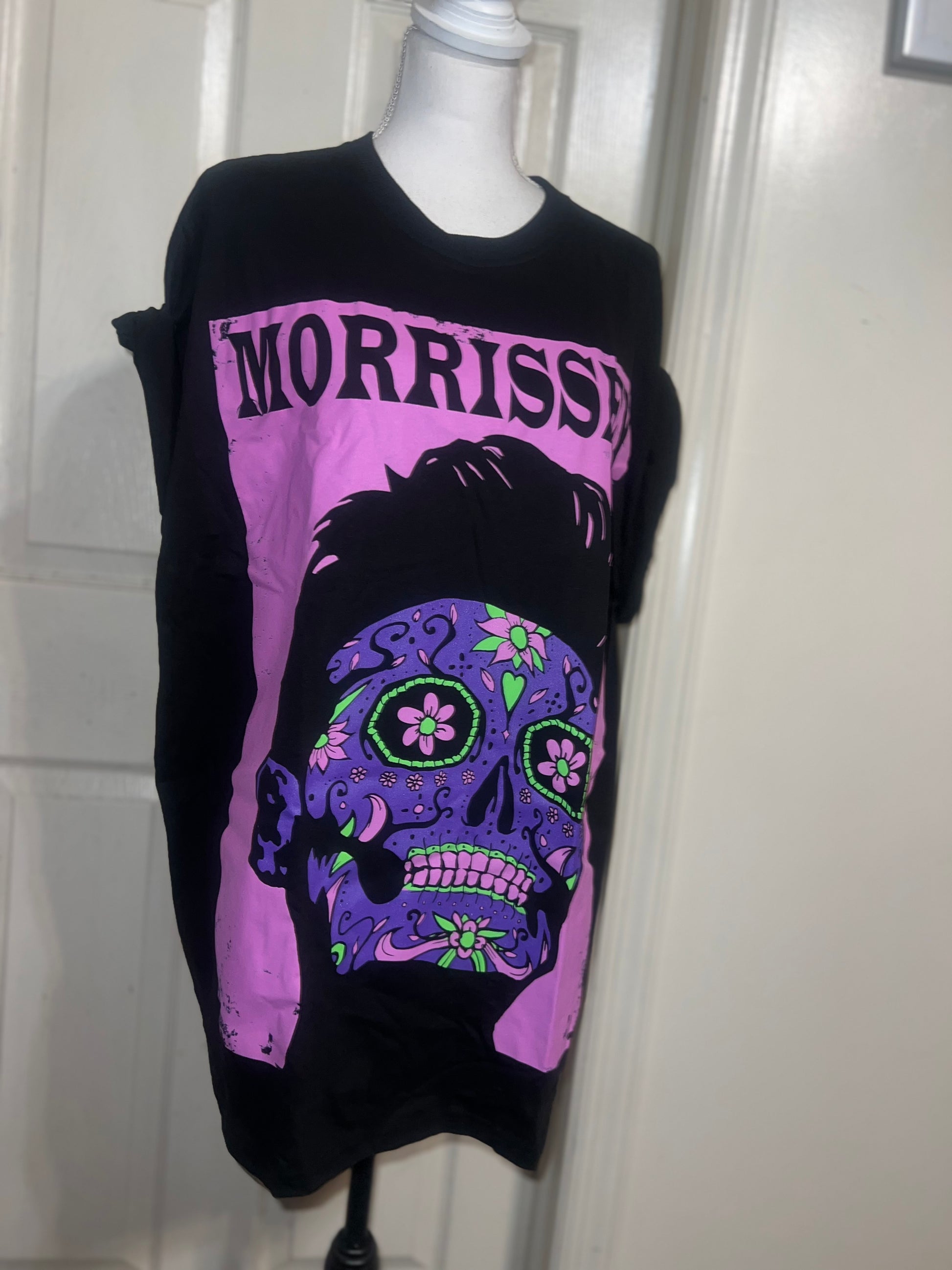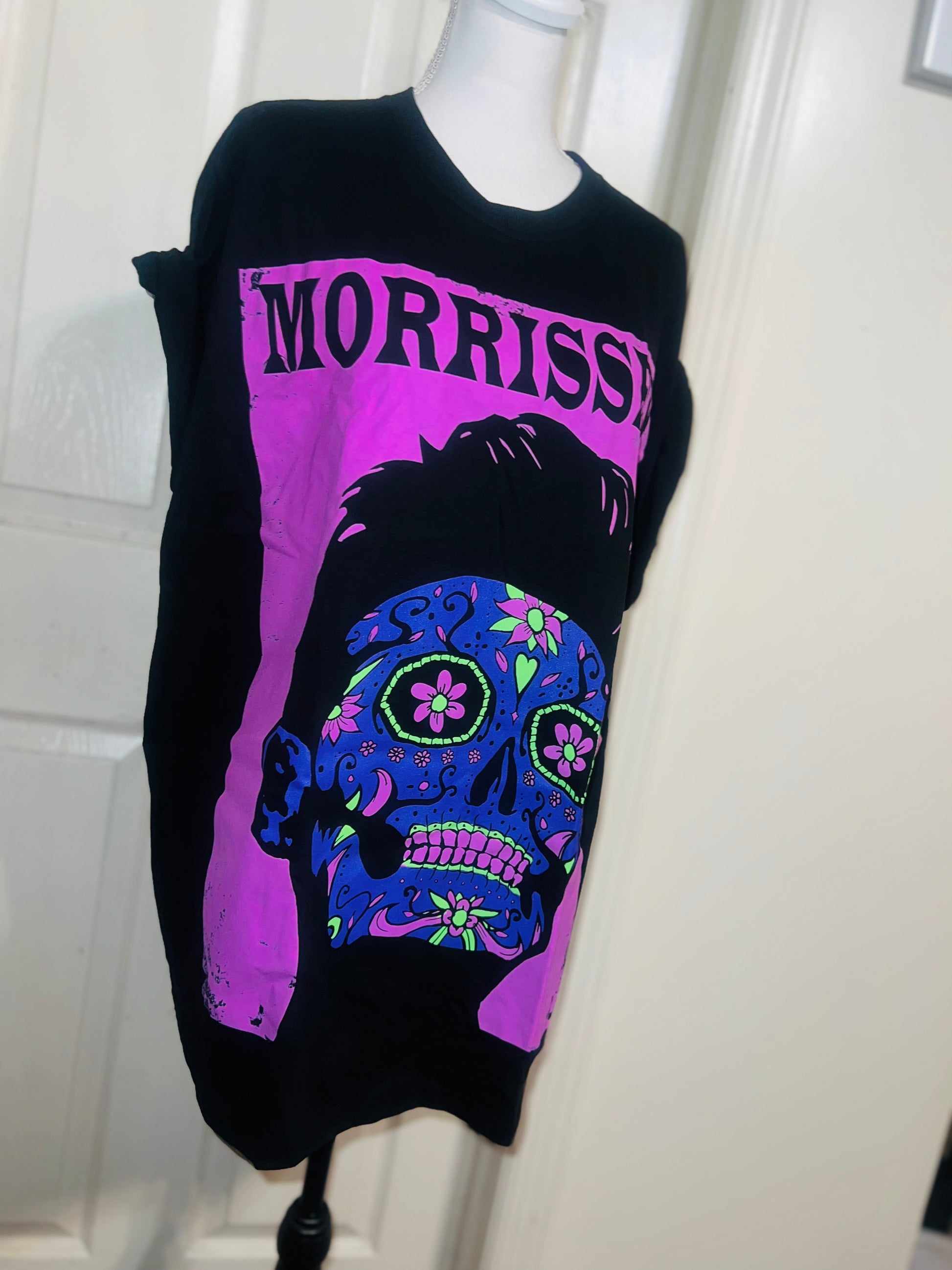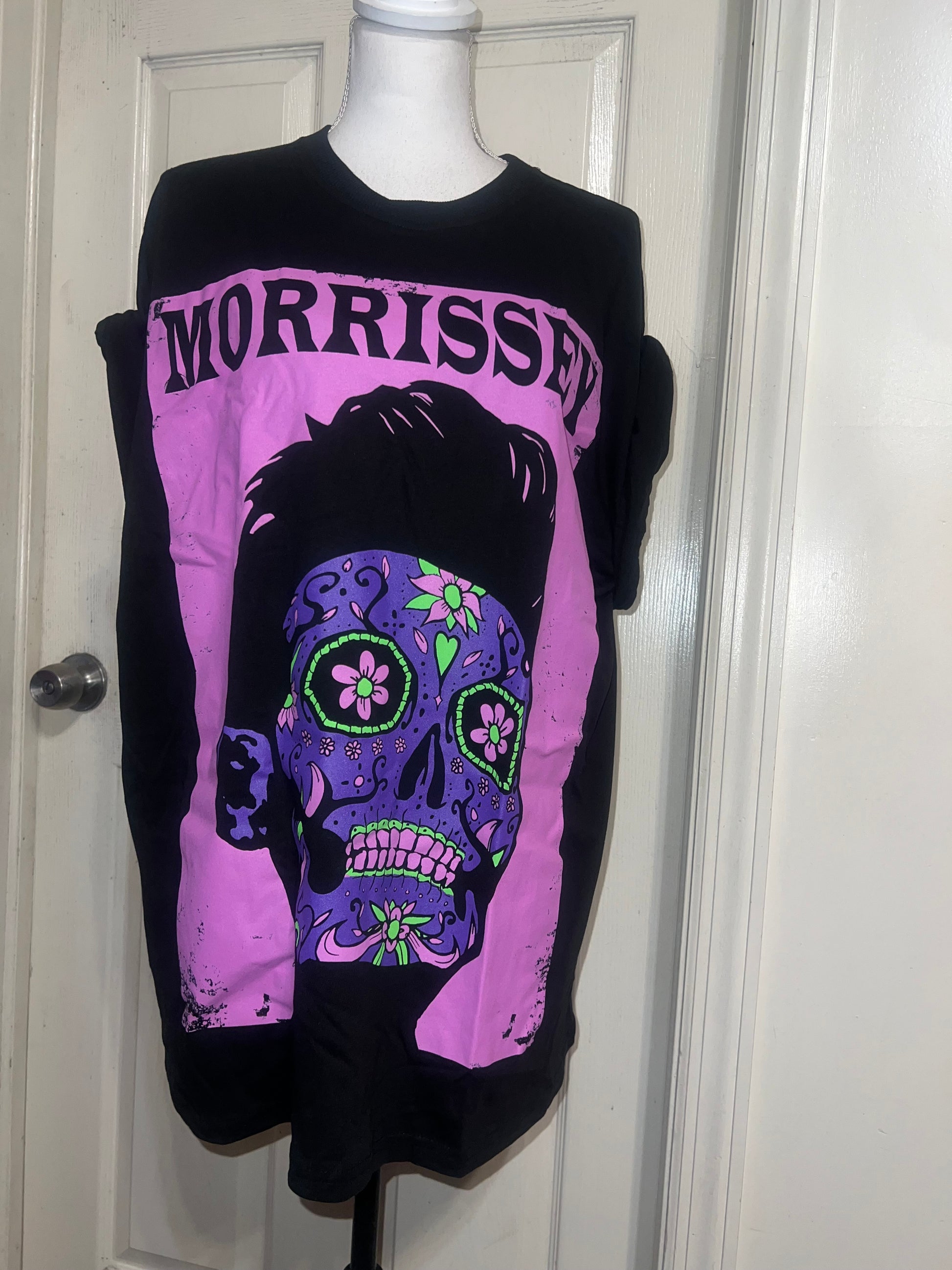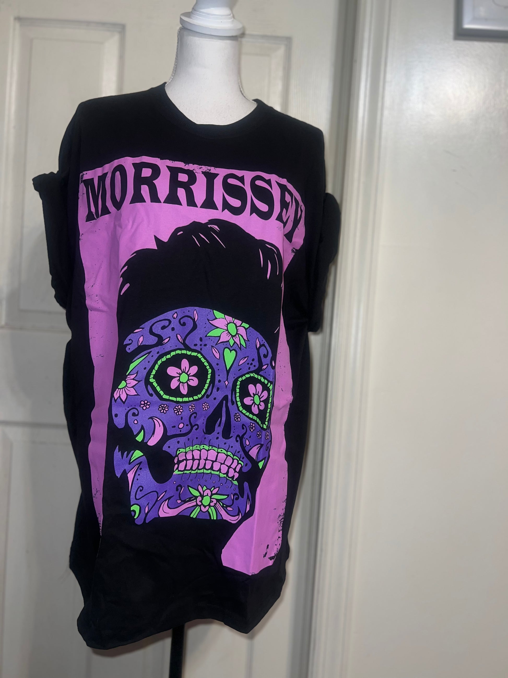 A black Morrissey tee with the man himself as a sugar skull. Super unique, I love/hate him so much! Size large, oversized.