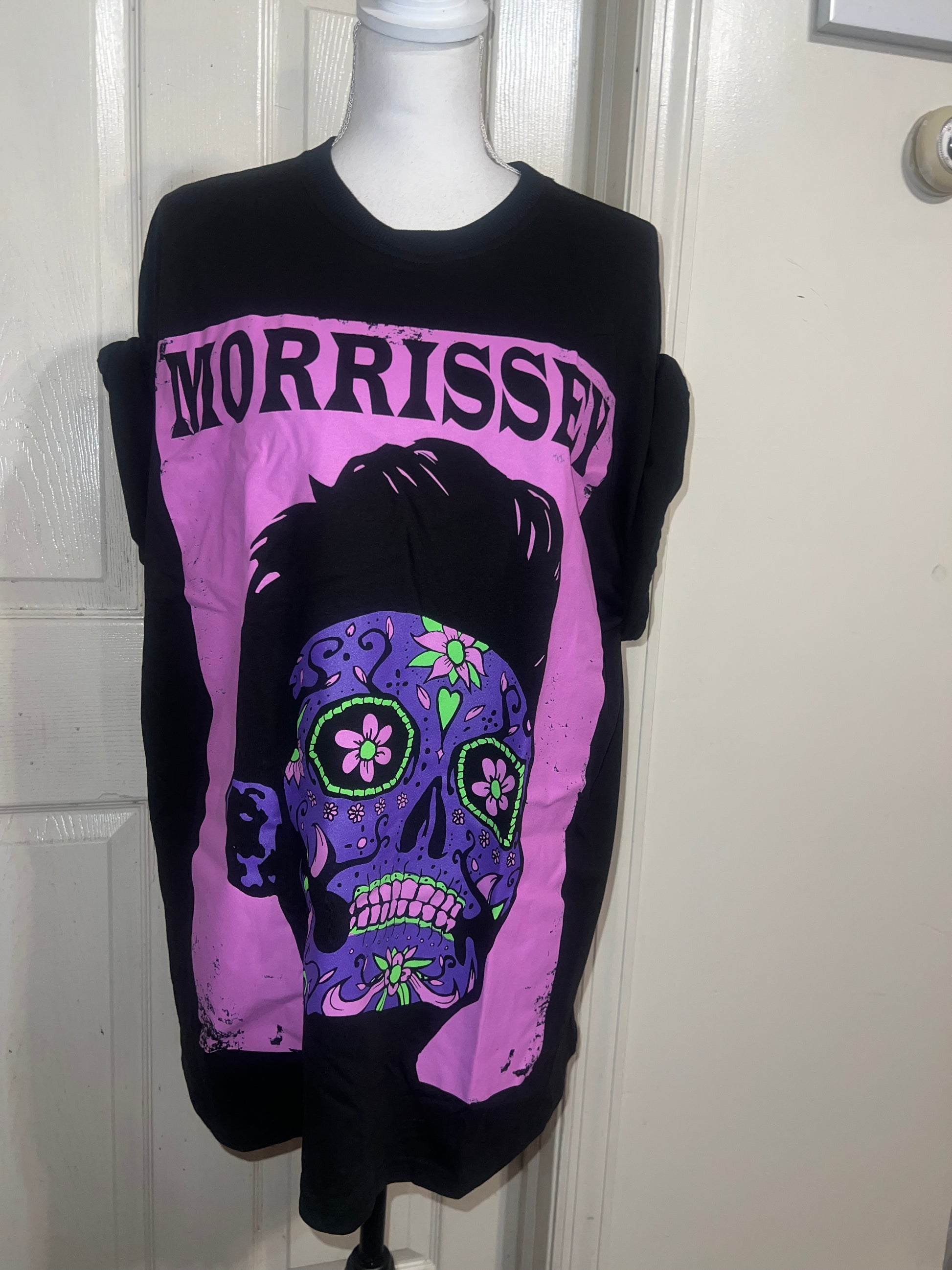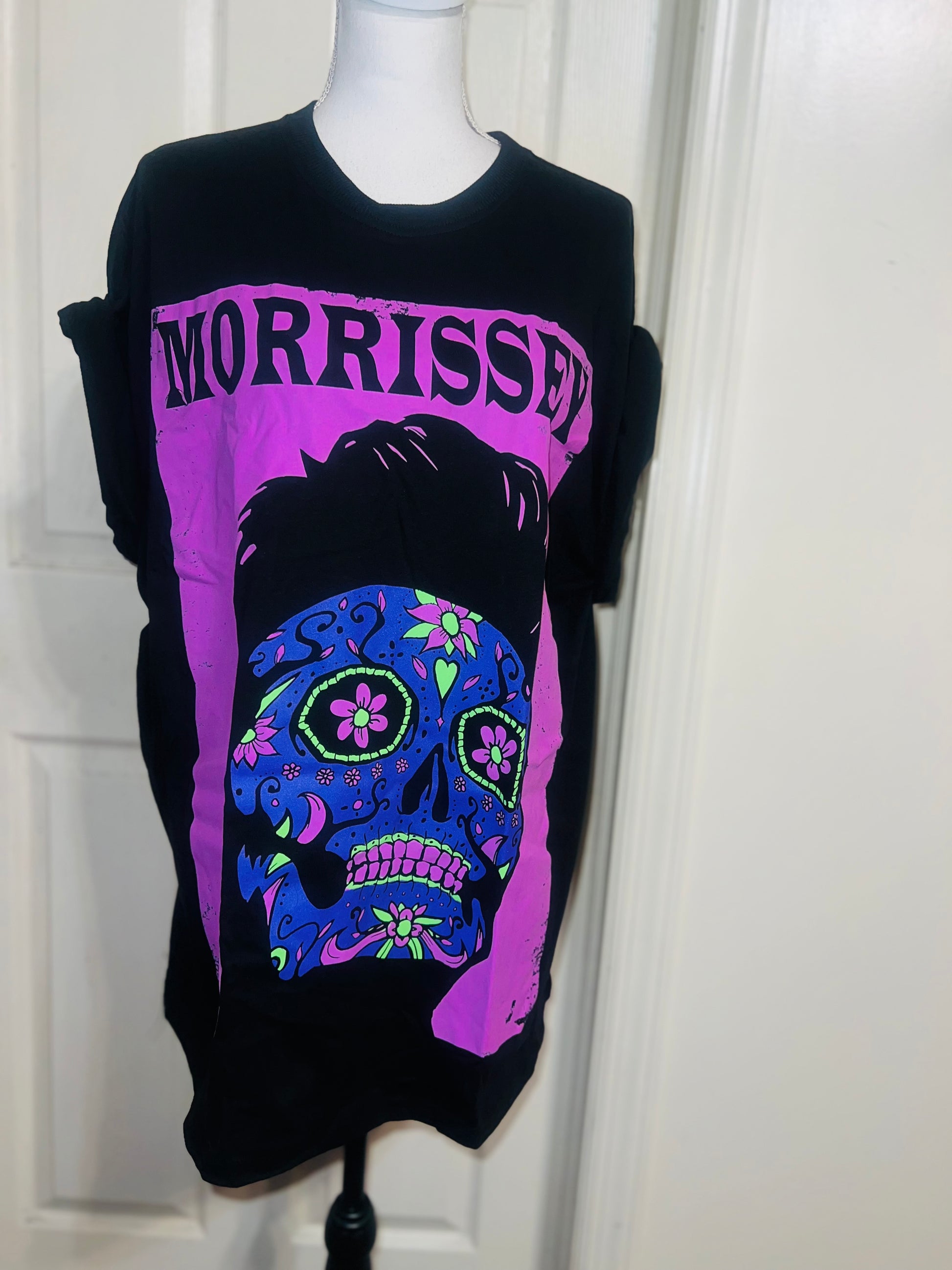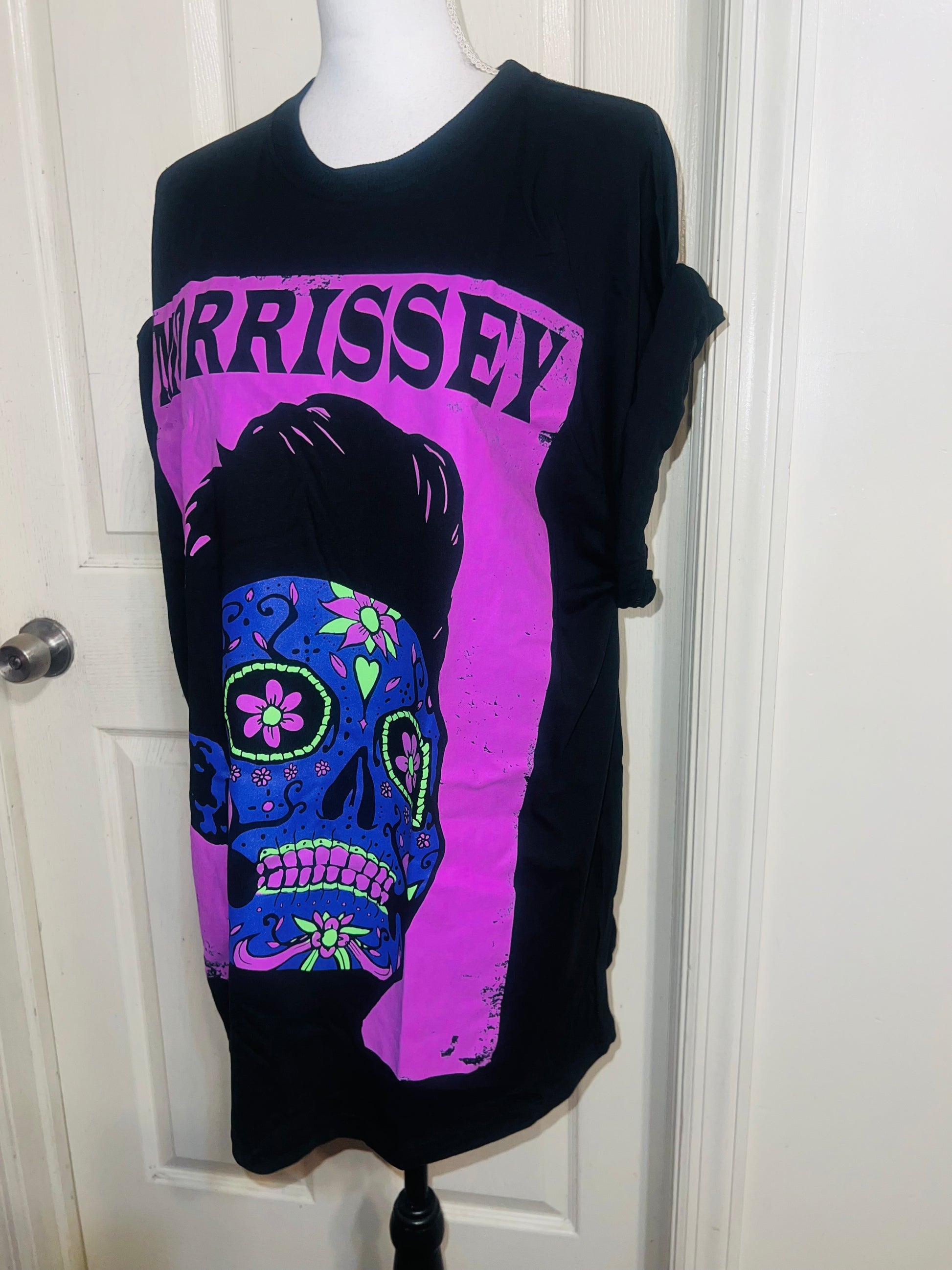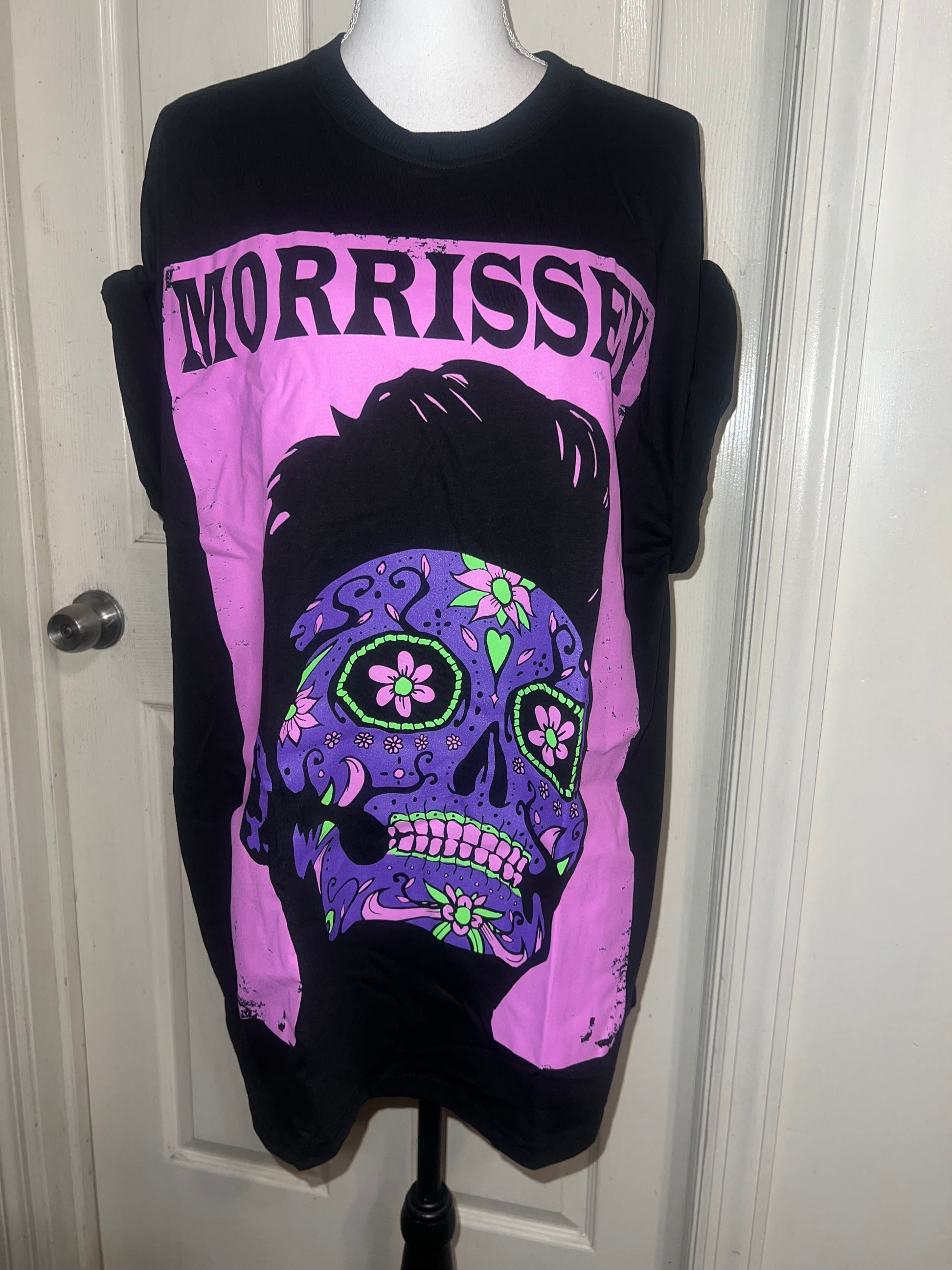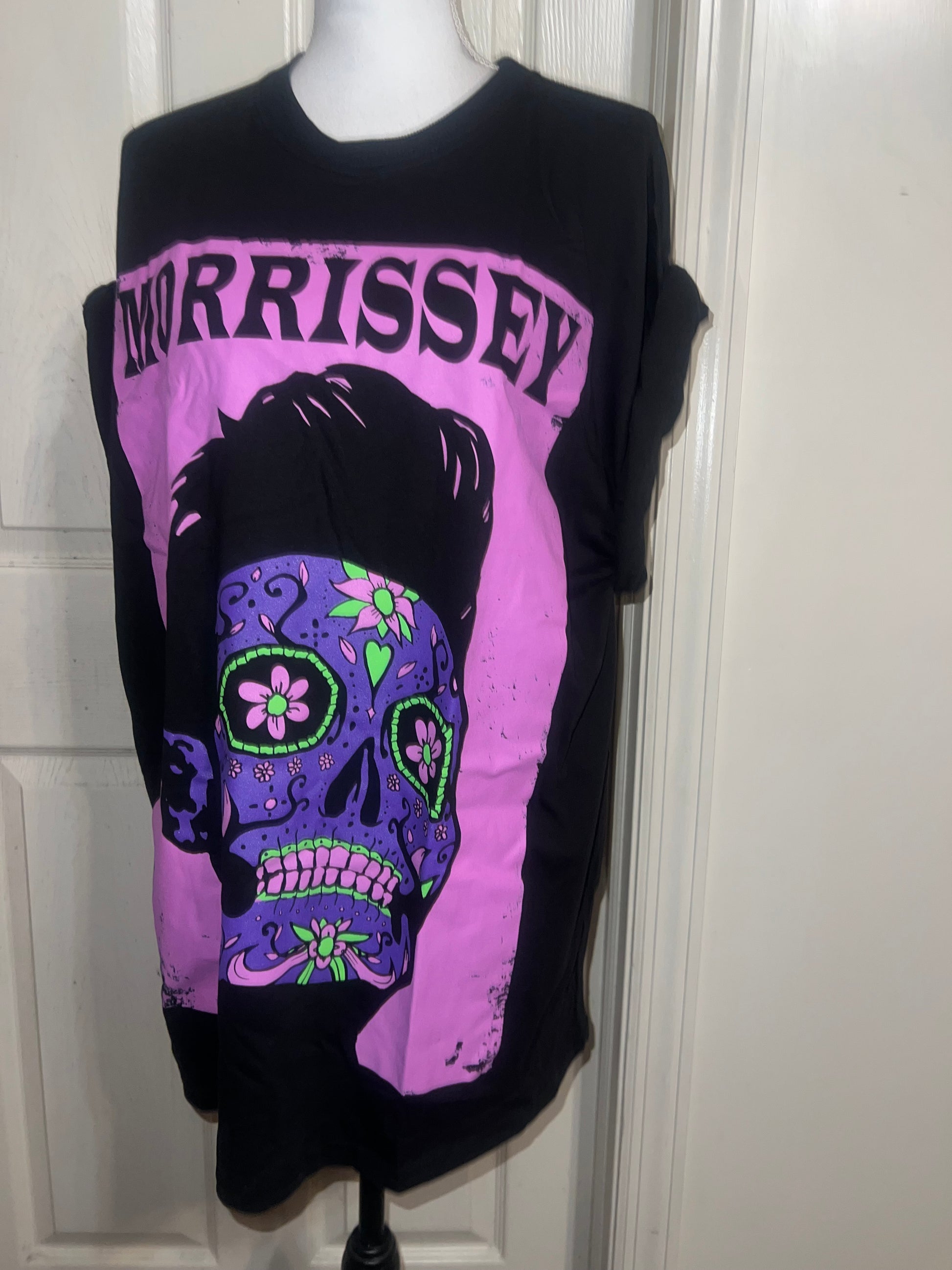 A black Morrissey tee with the man himself as a sugar skull. Super unique, I love/hate him so much! Size large, oversized.