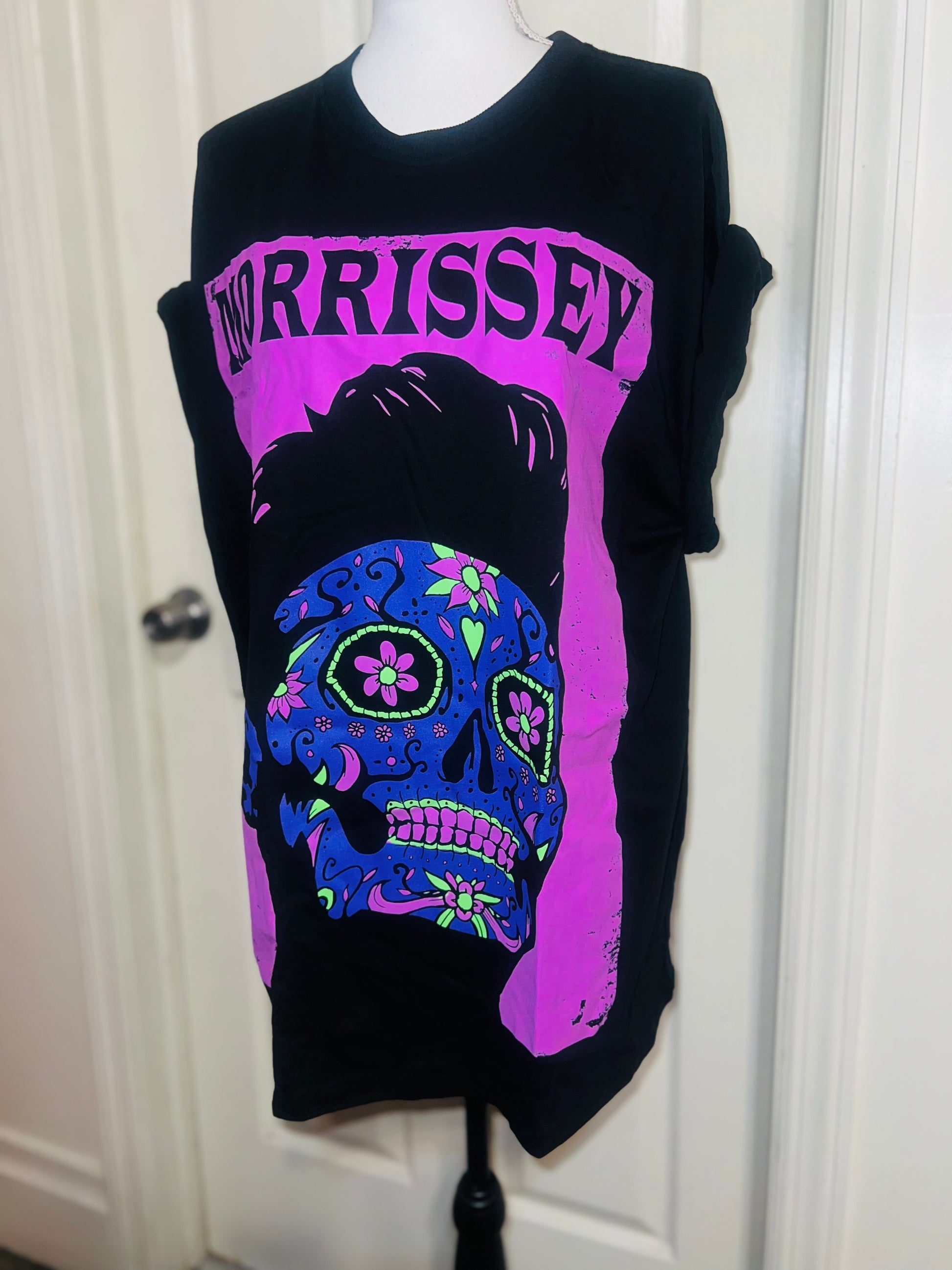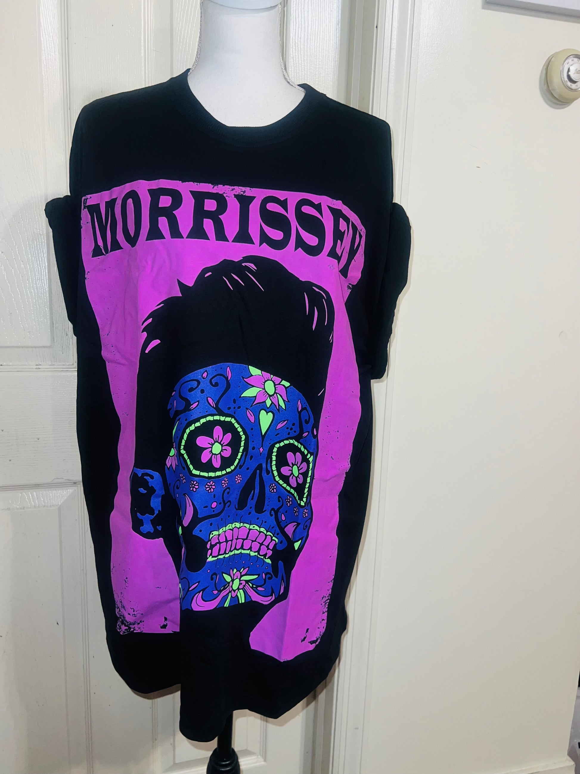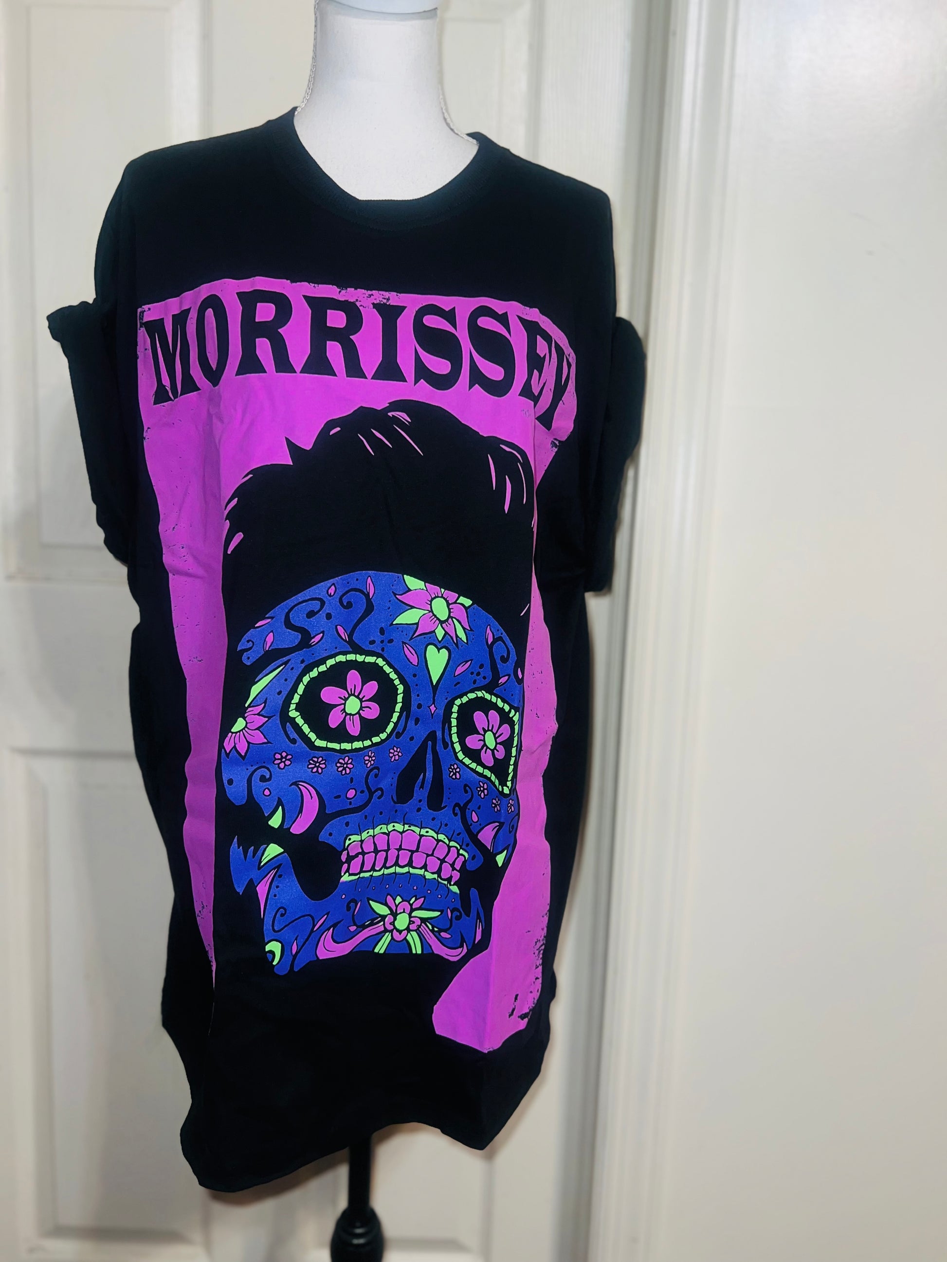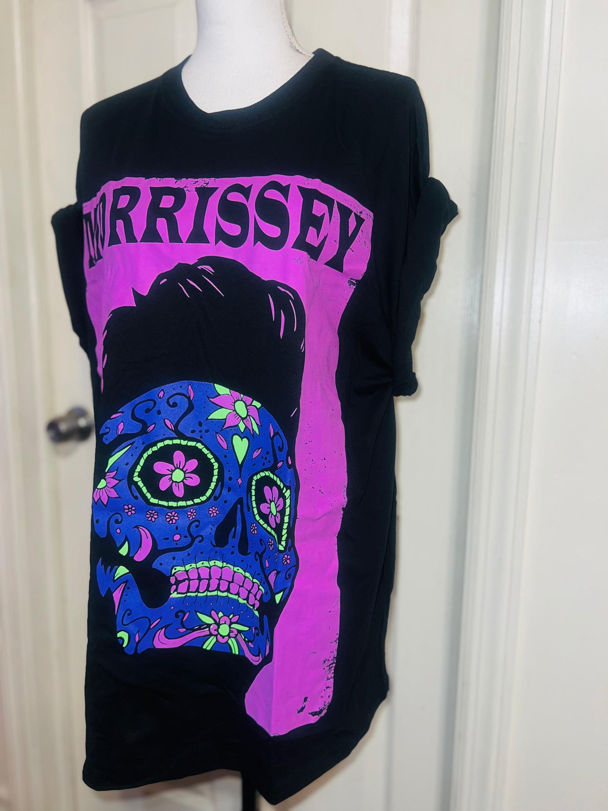 A black Morrissey tee with the man himself as a sugar skull. Super unique, I love/hate him so much! Size large, oversized.