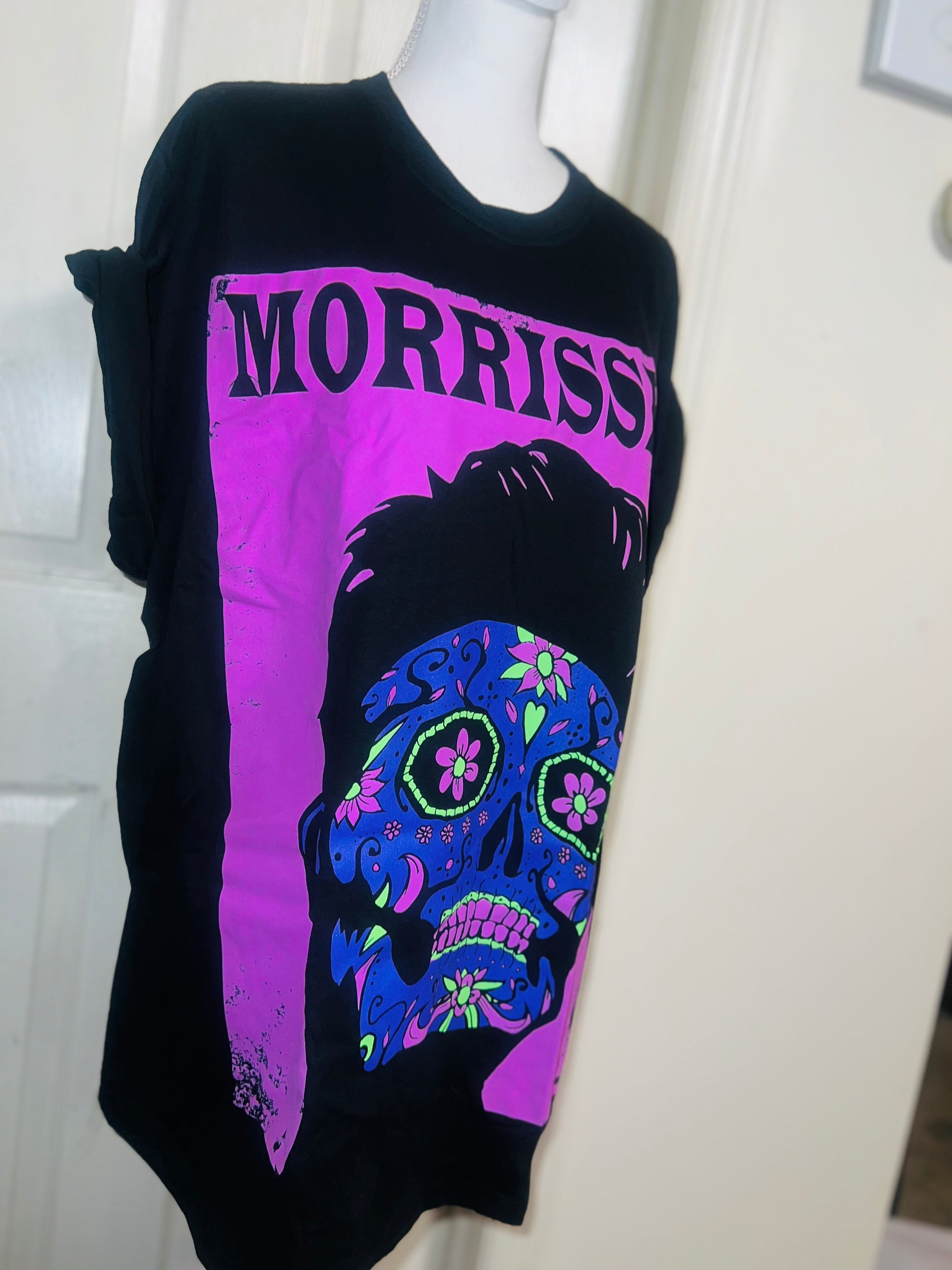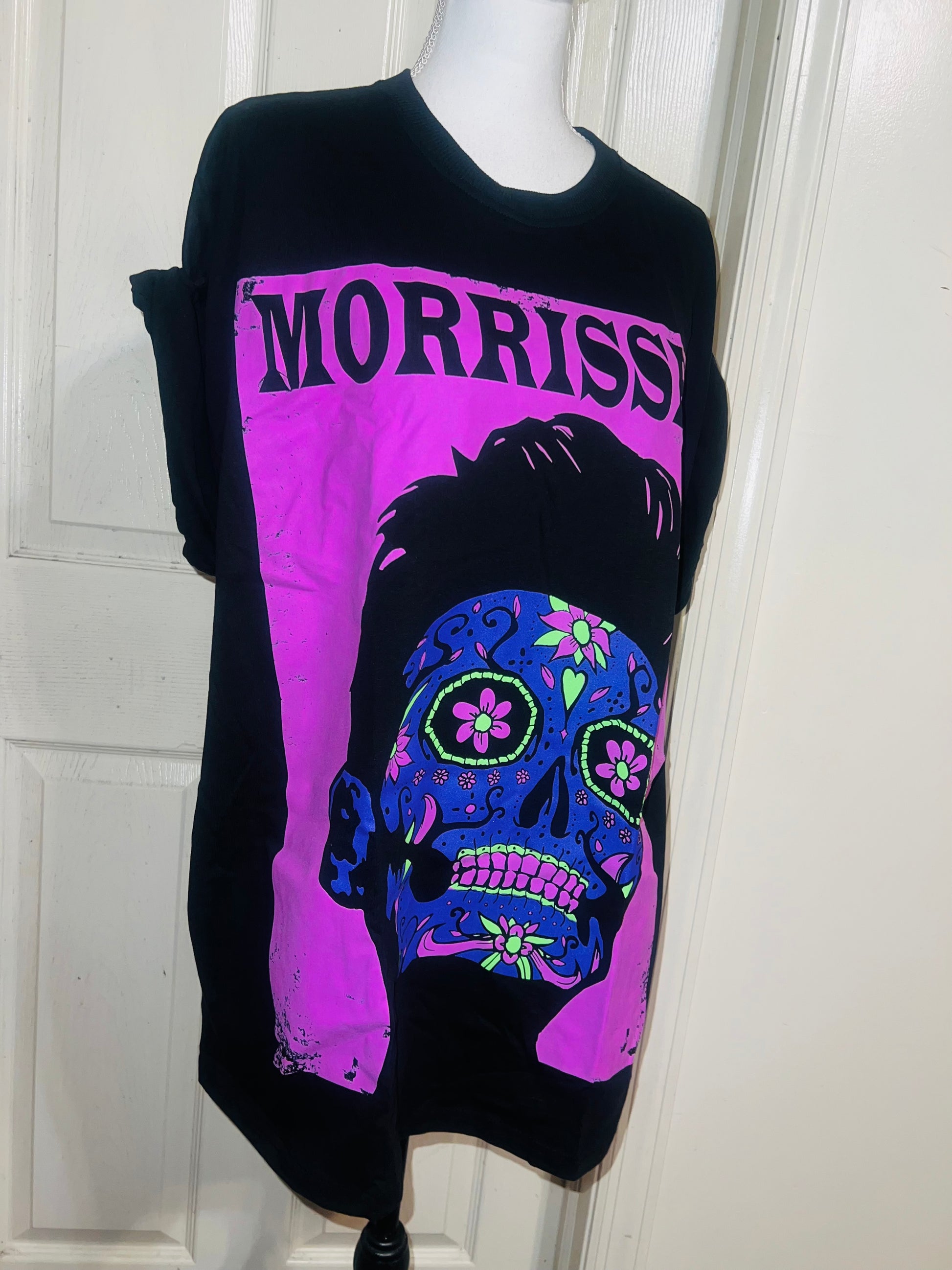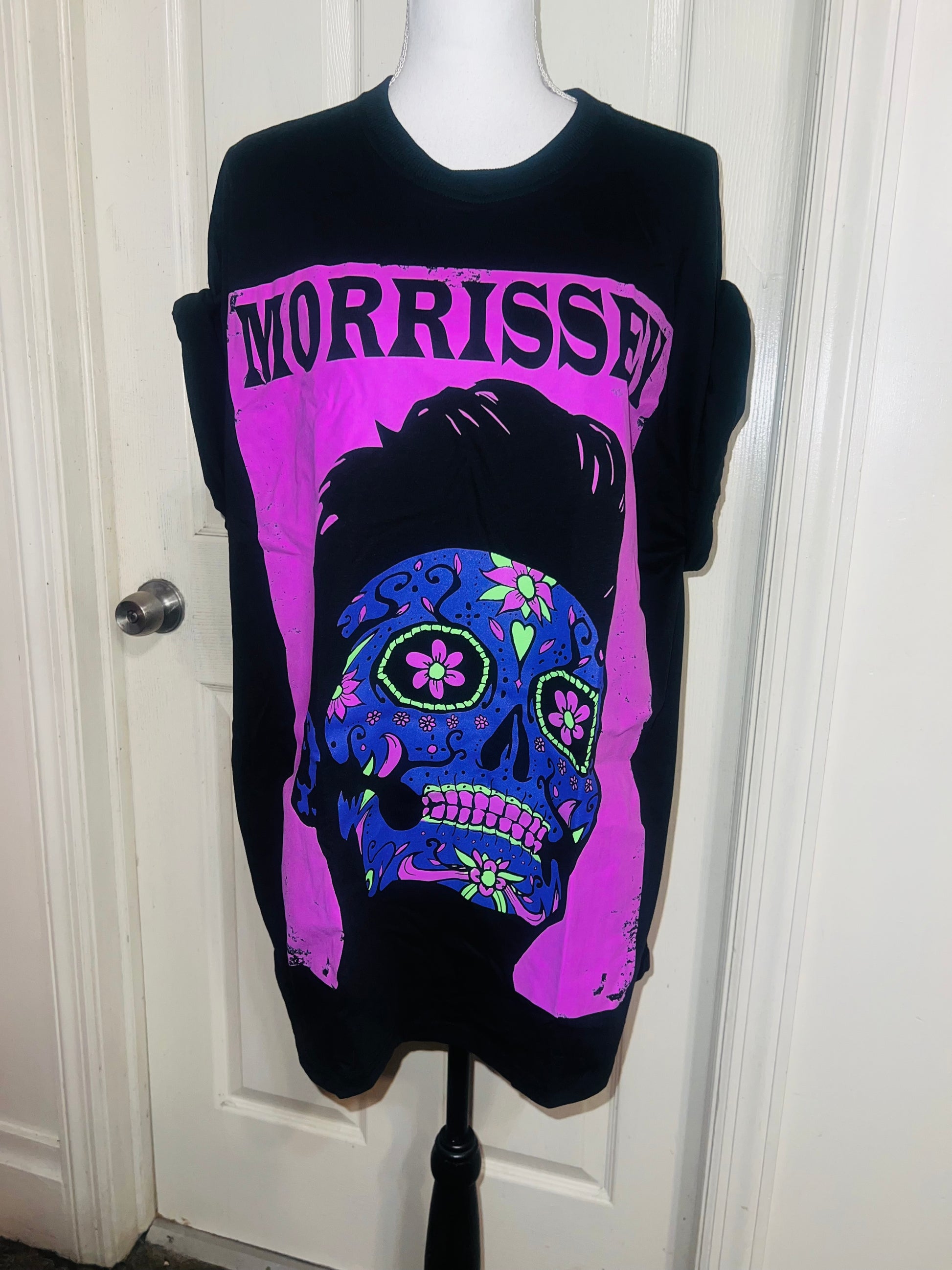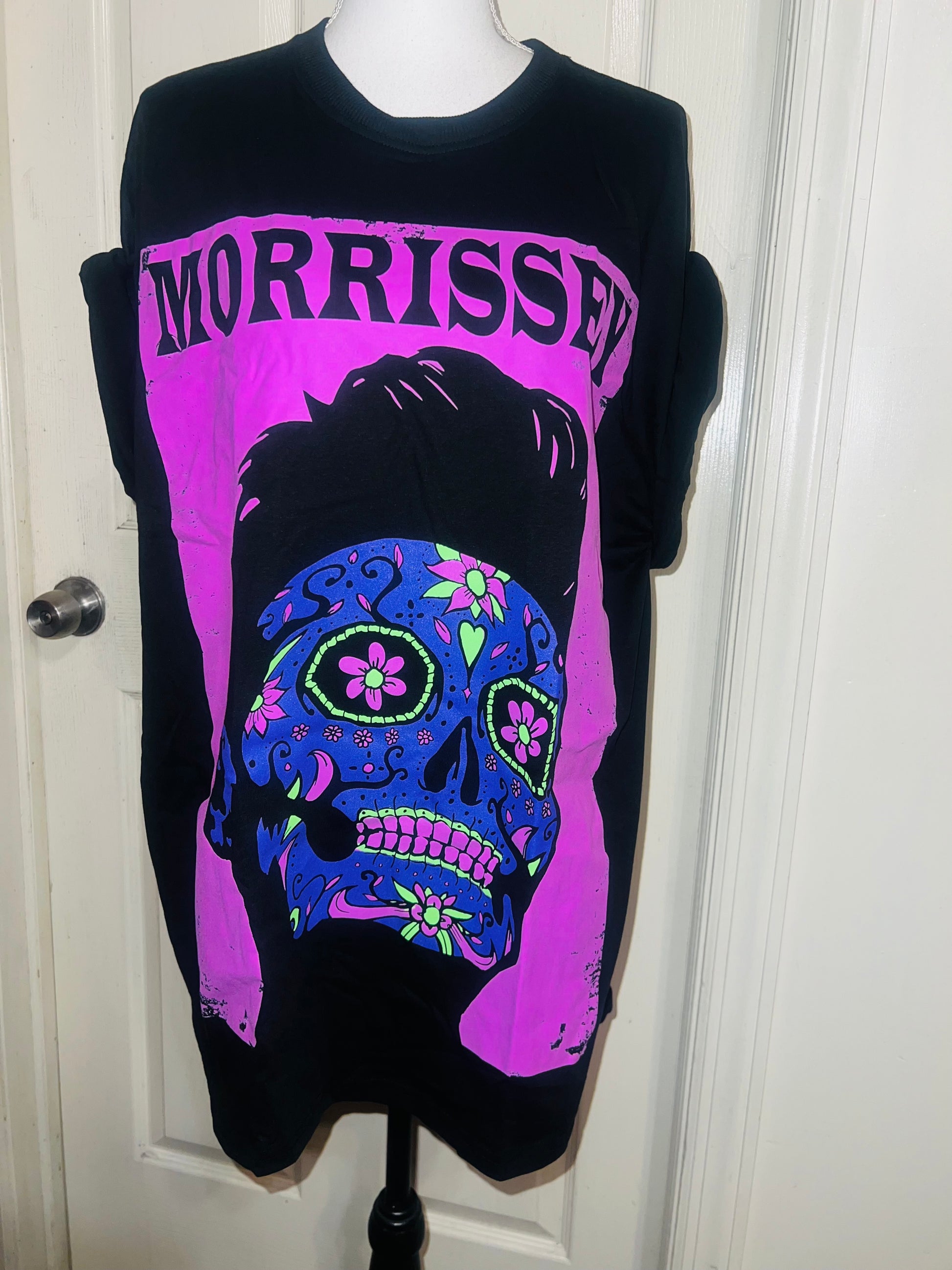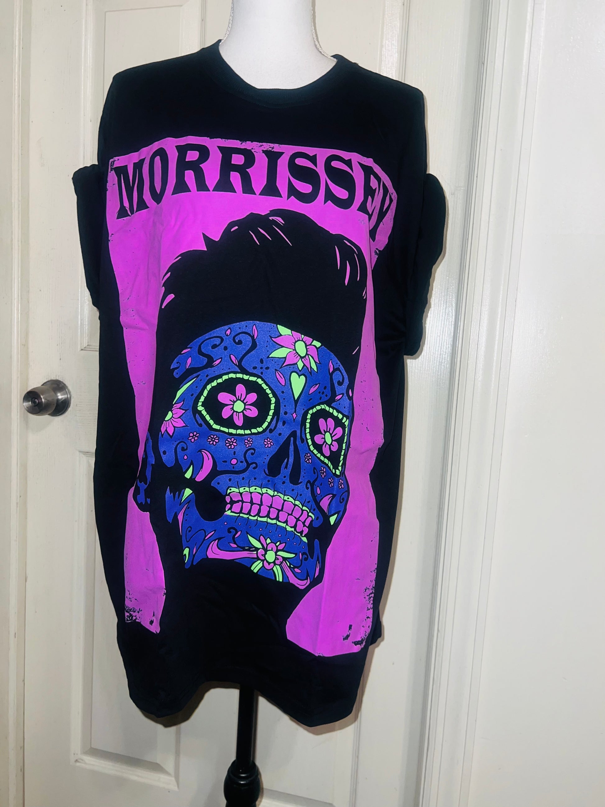 A black Morrissey tee with the man himself as a sugar skull. Super unique, I love/hate him so much! Size large, oversized.