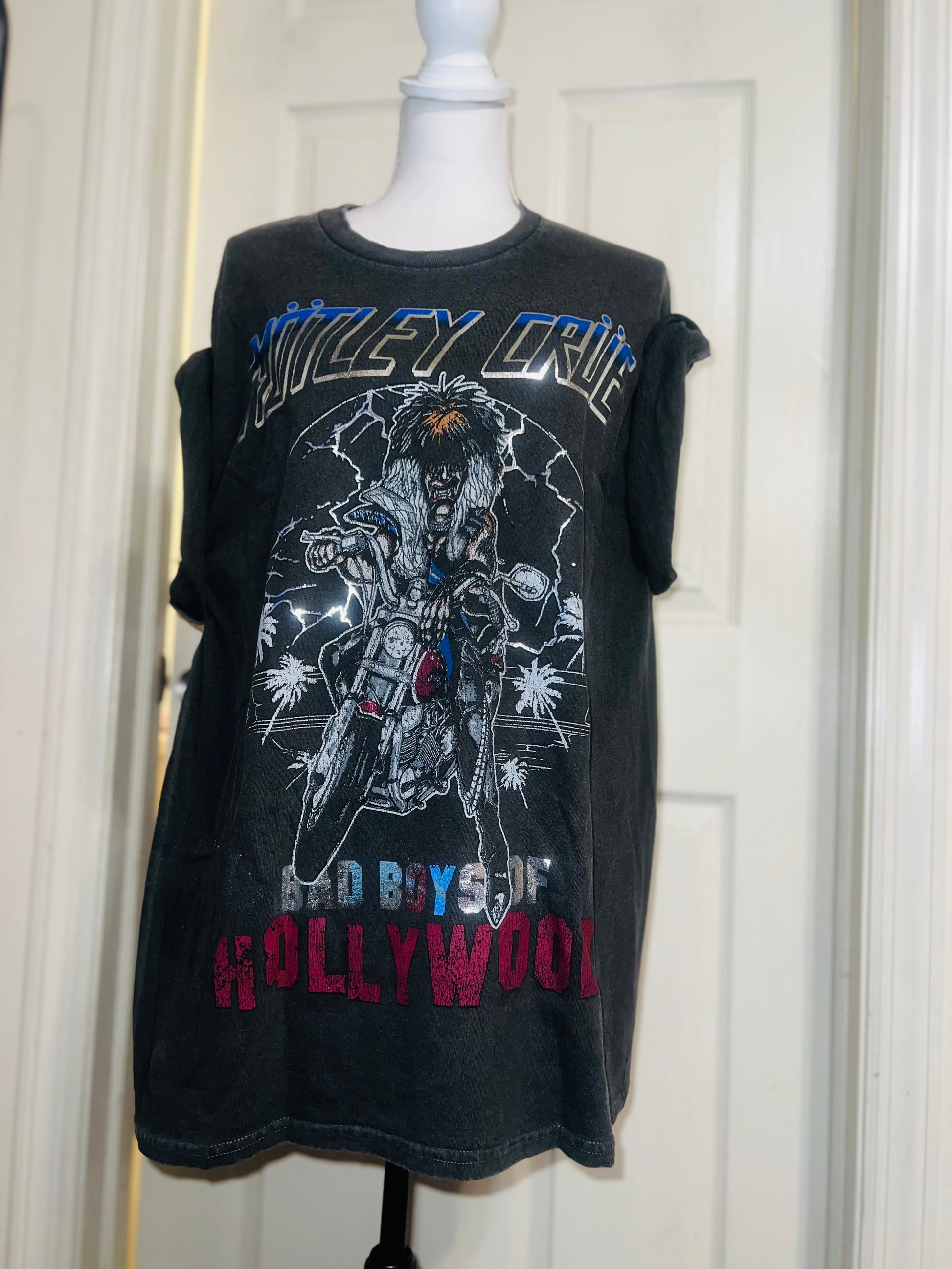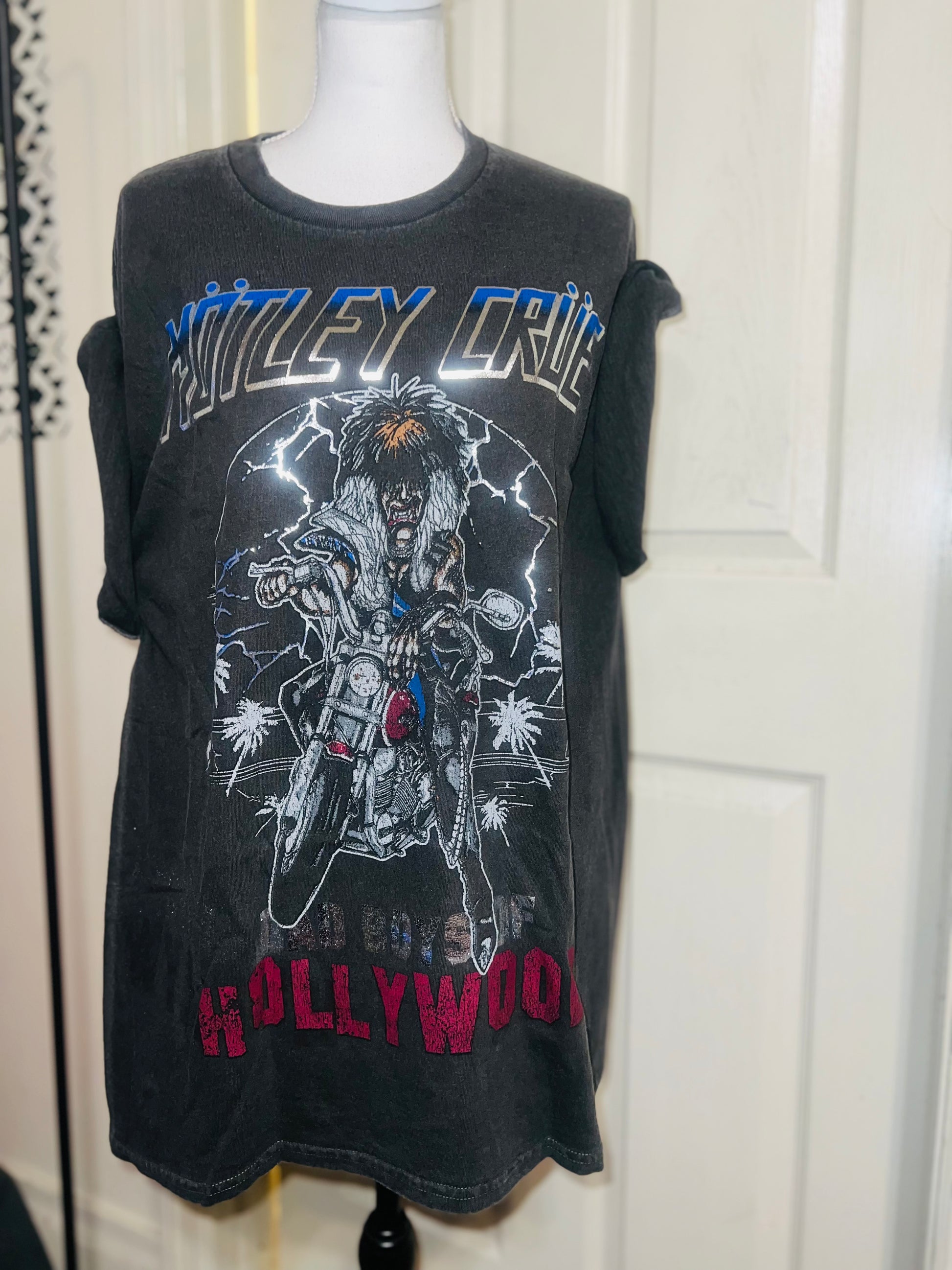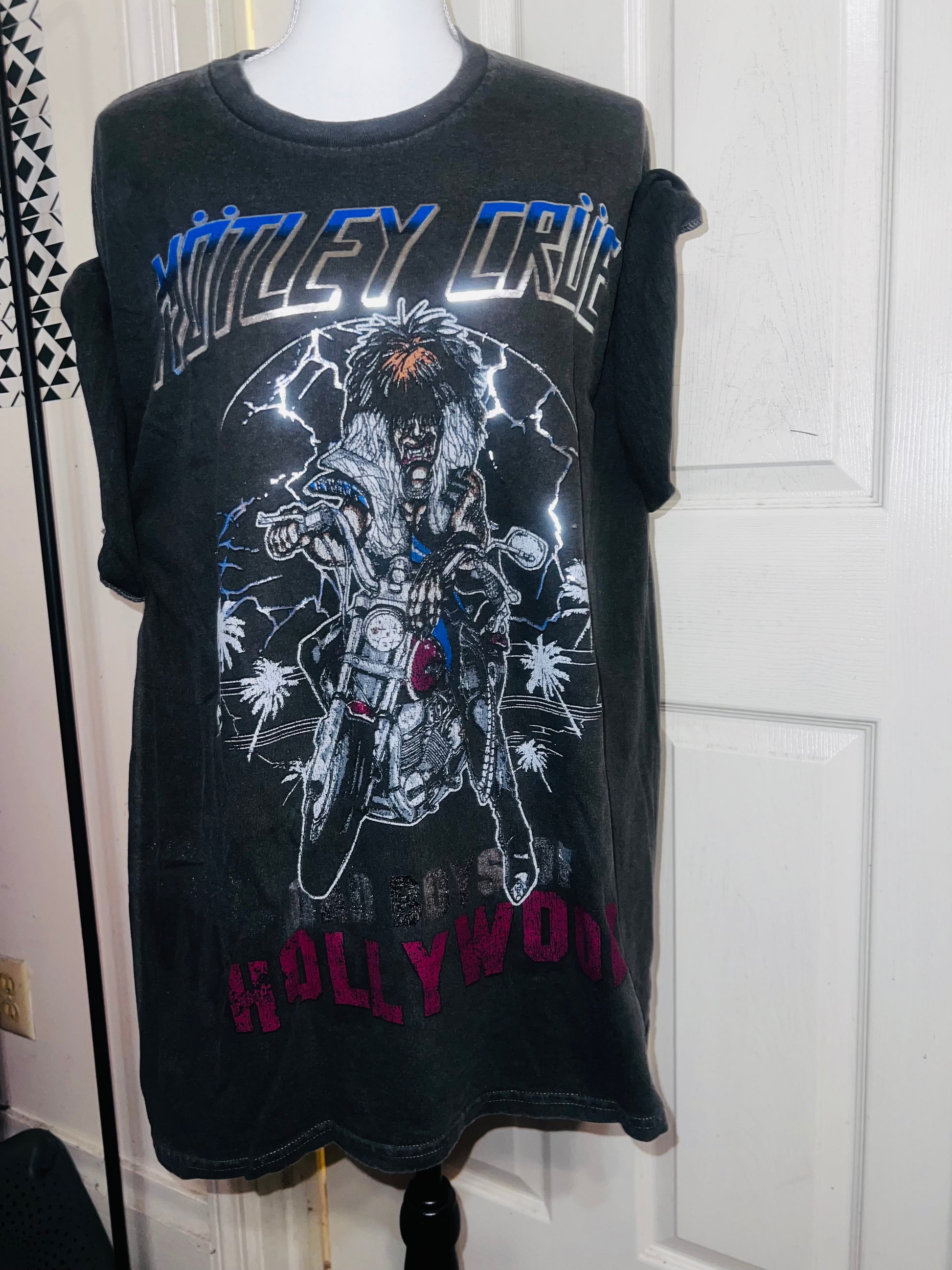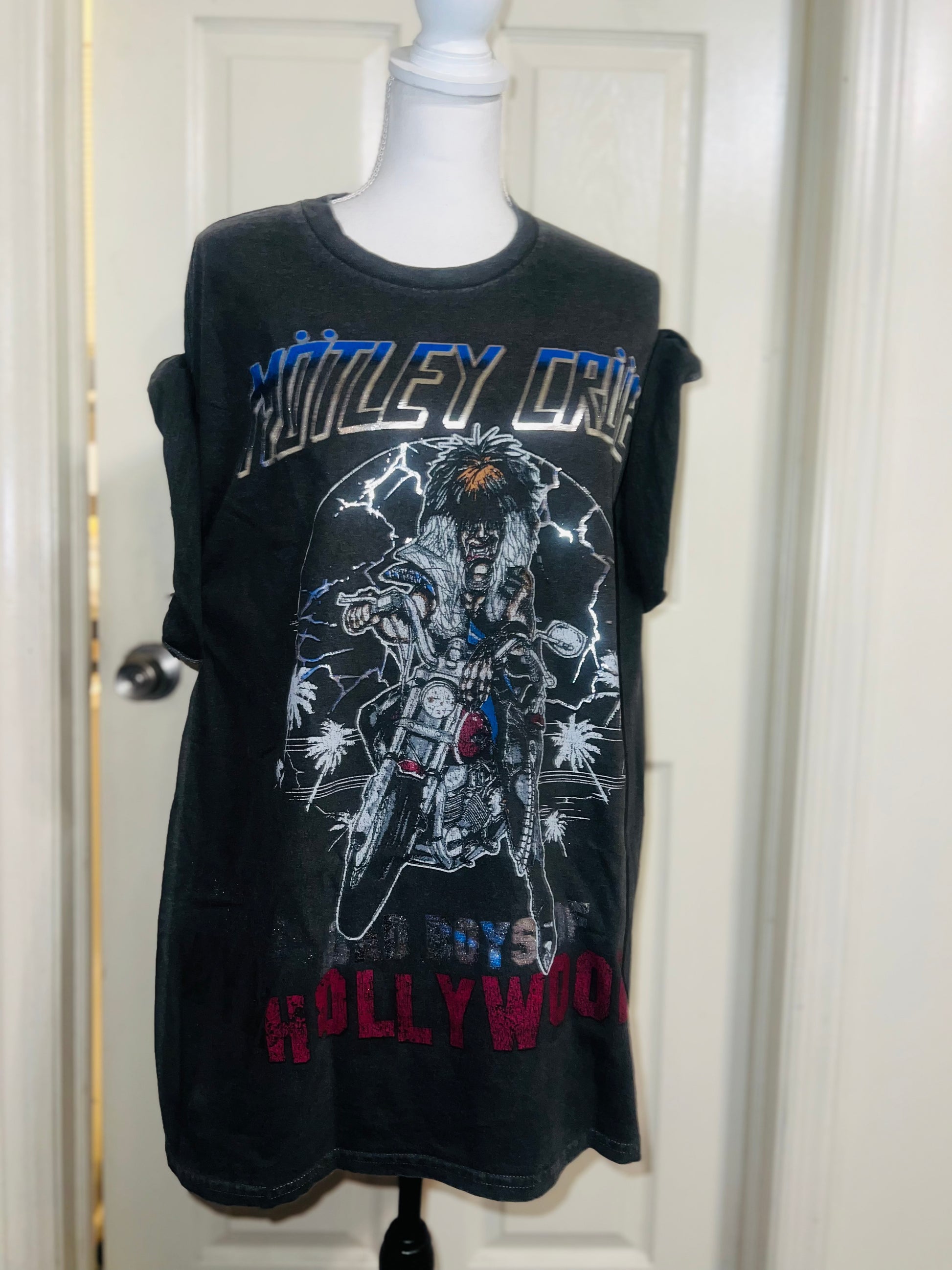 This is now a preorder. Please allow extra processing time. A dark charcoal grey Motley Crue Bad Boys of Hollywood tee- love this one. Size S/M, oversized.