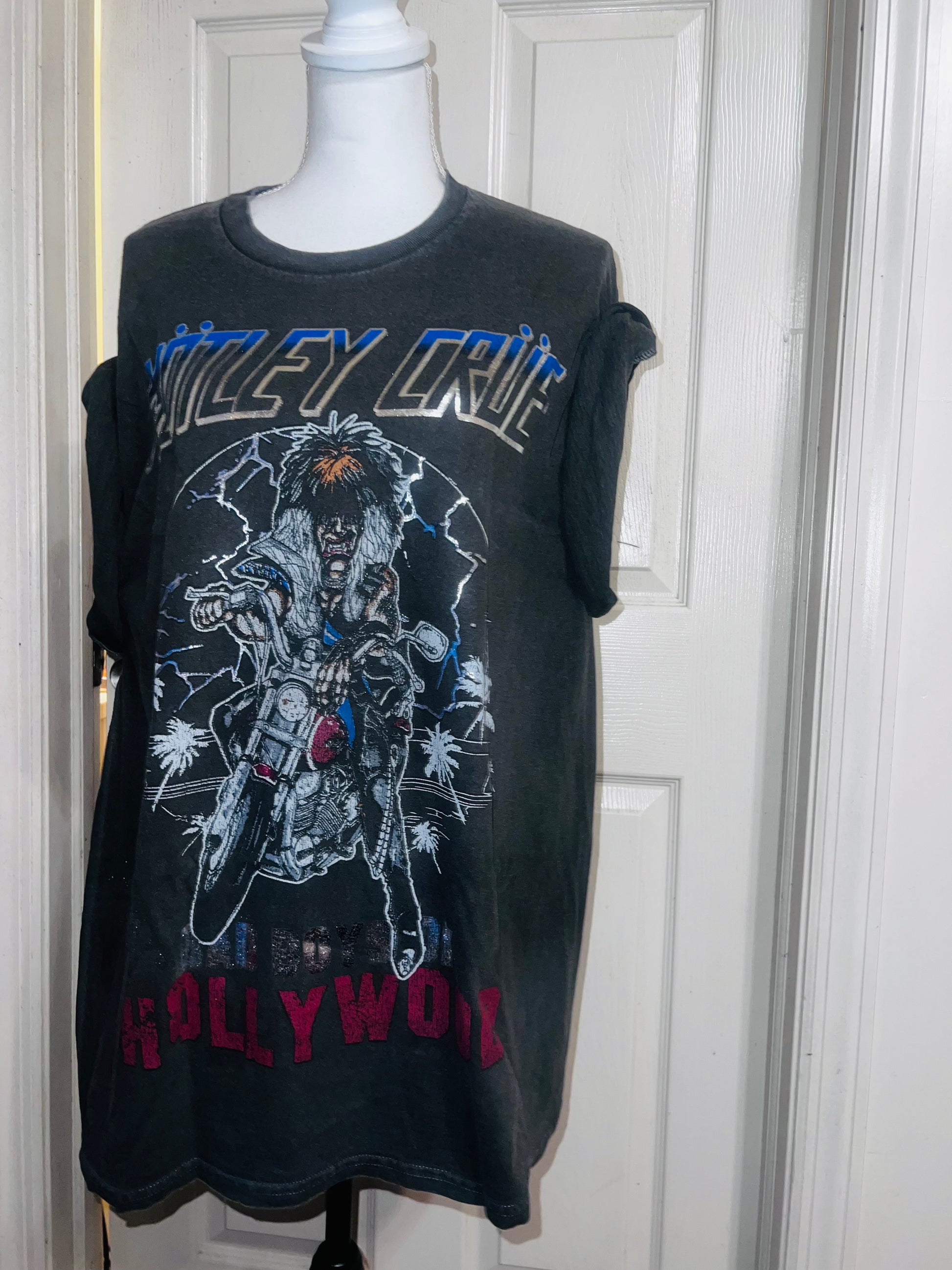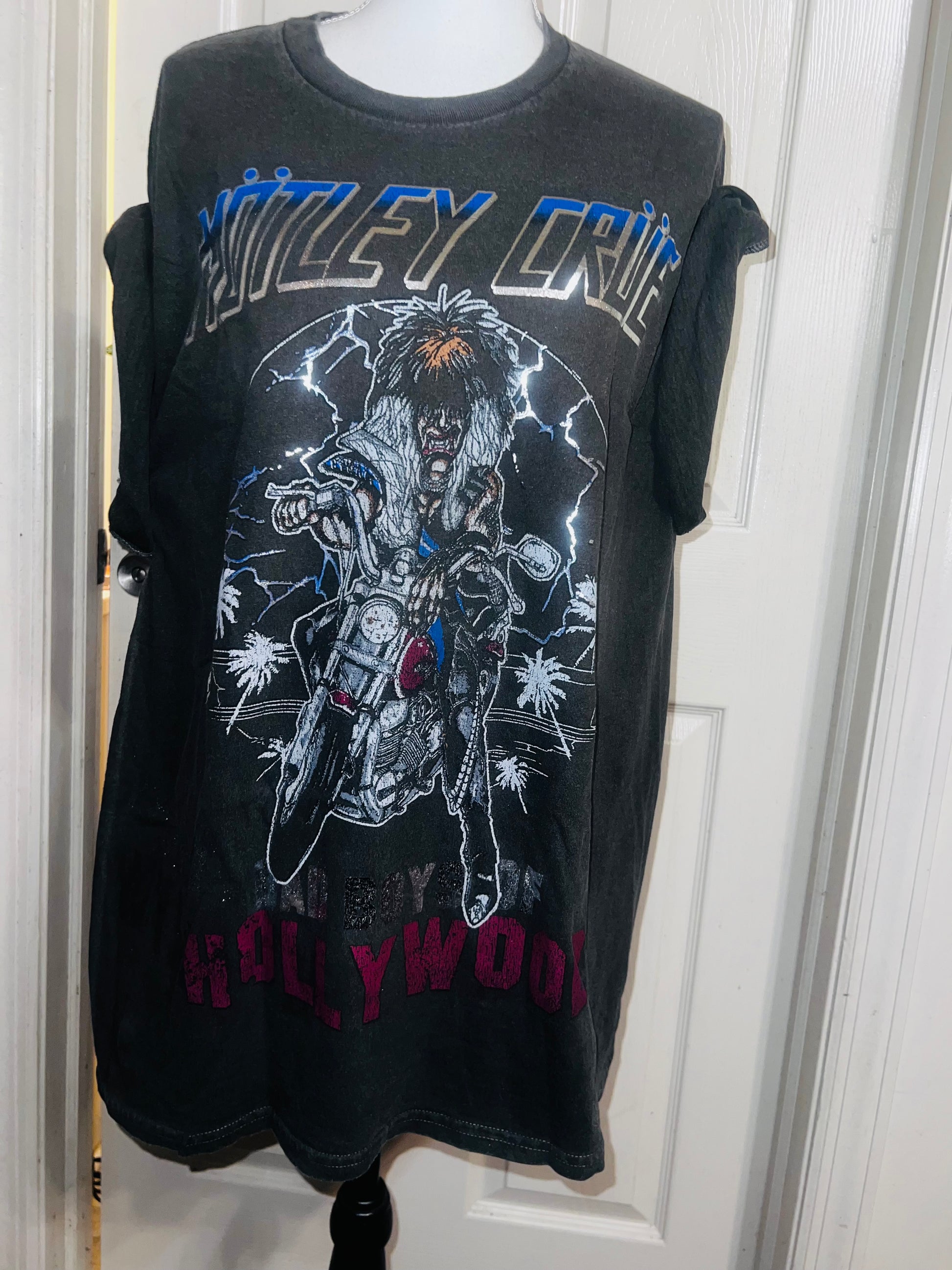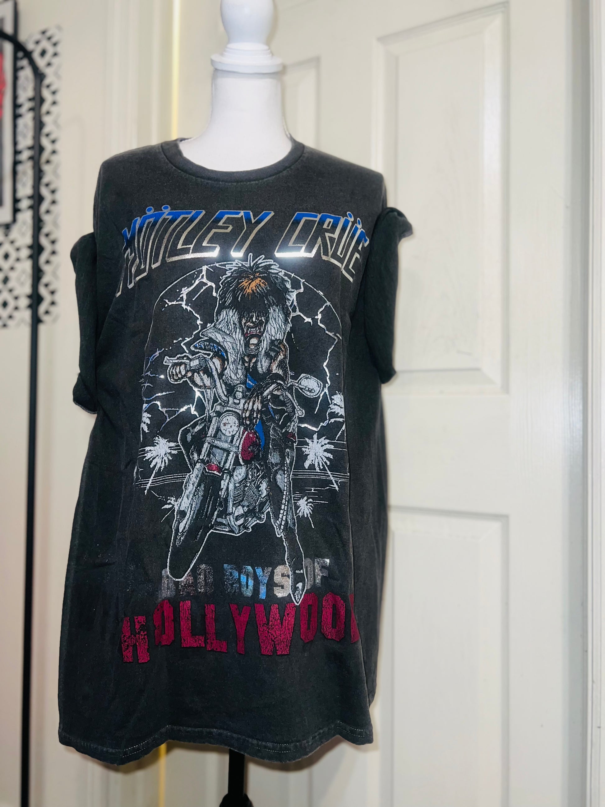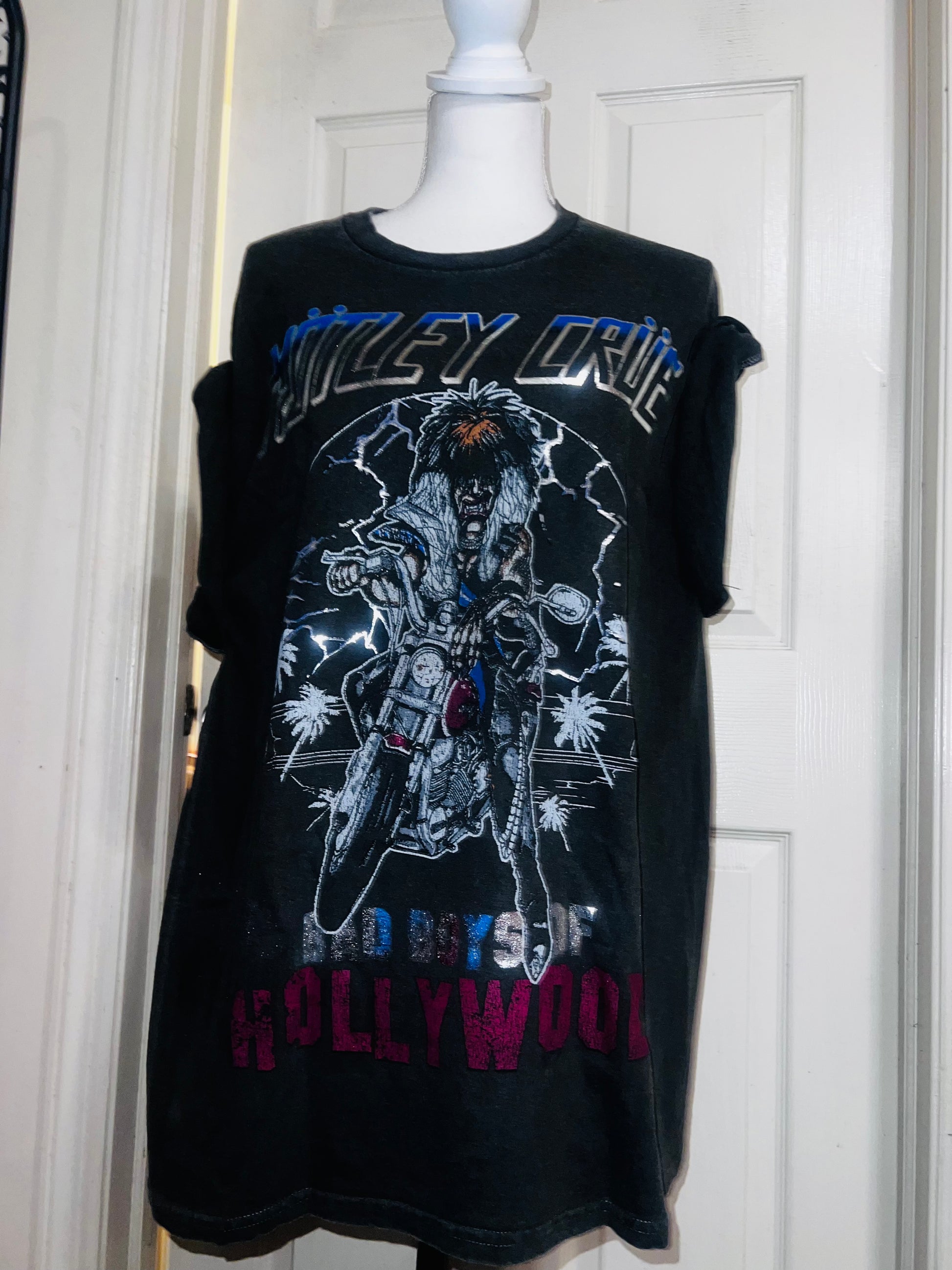 This is now a preorder. Please allow extra processing time. A dark charcoal grey Motley Crue Bad Boys of Hollywood tee- love this one. Size S/M, oversized.