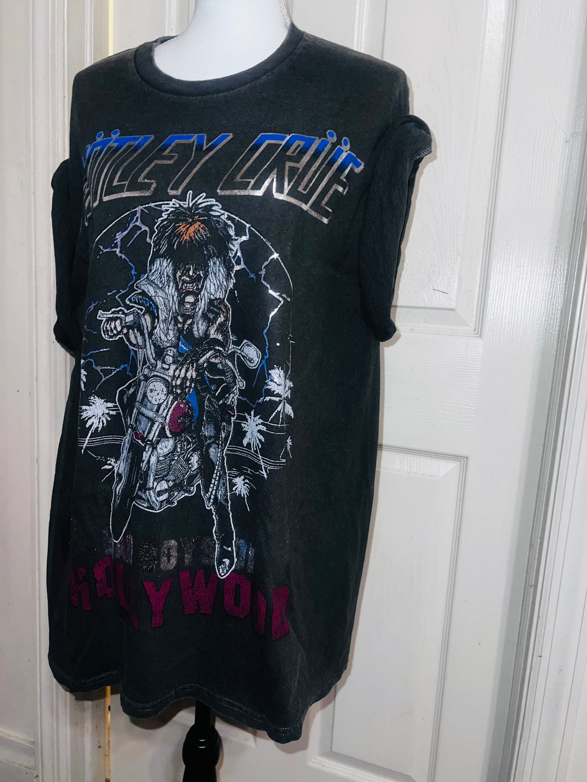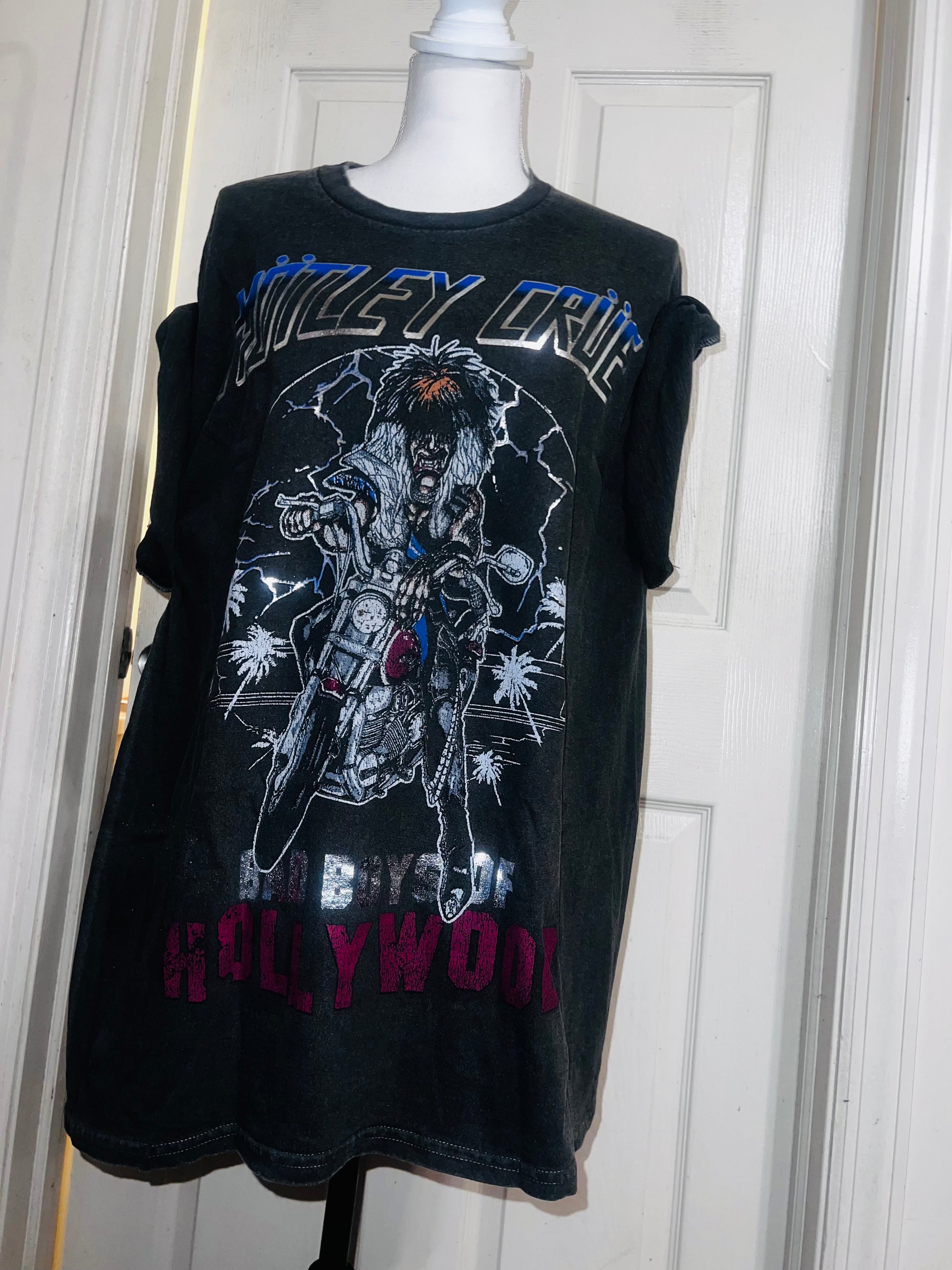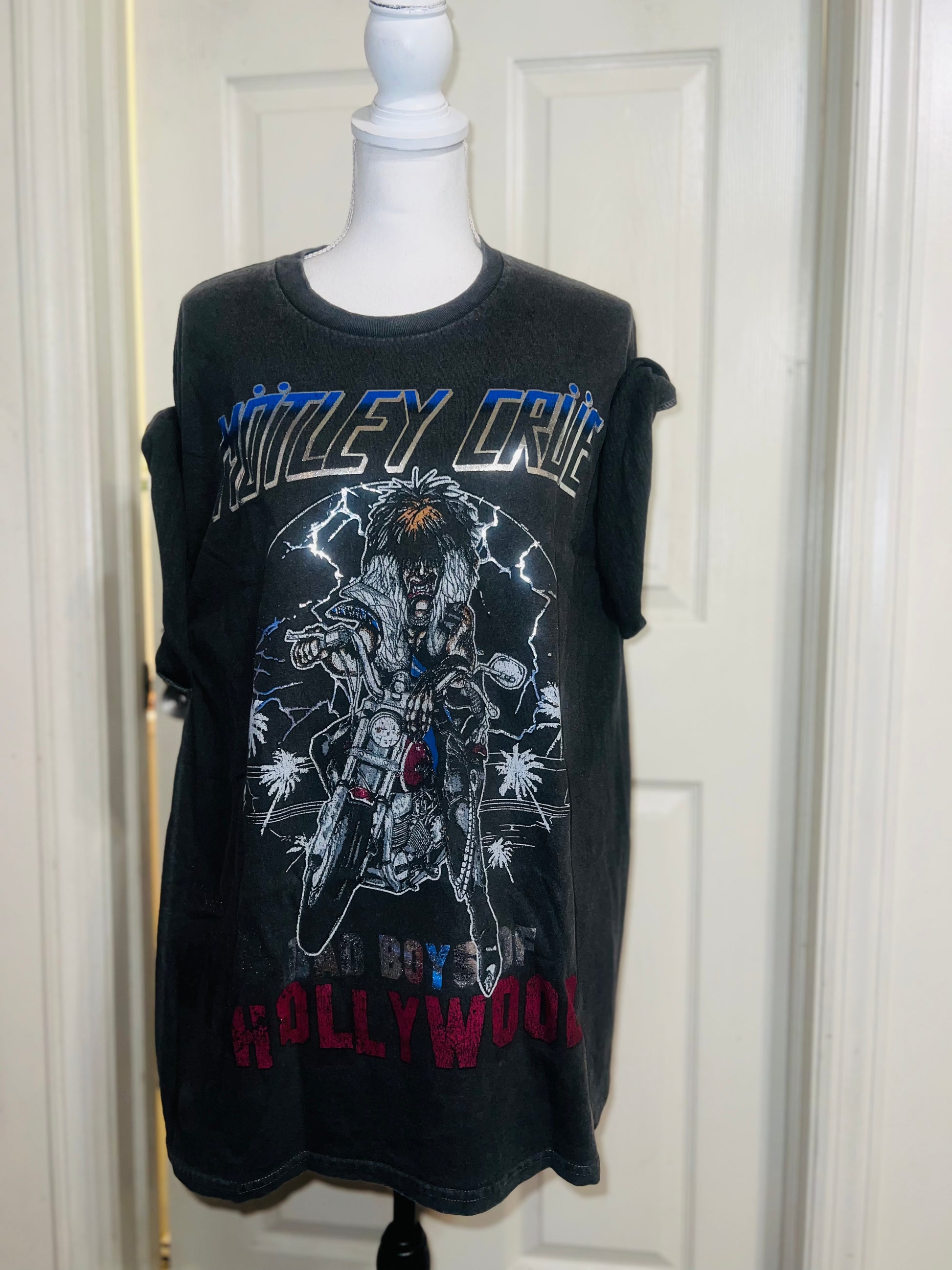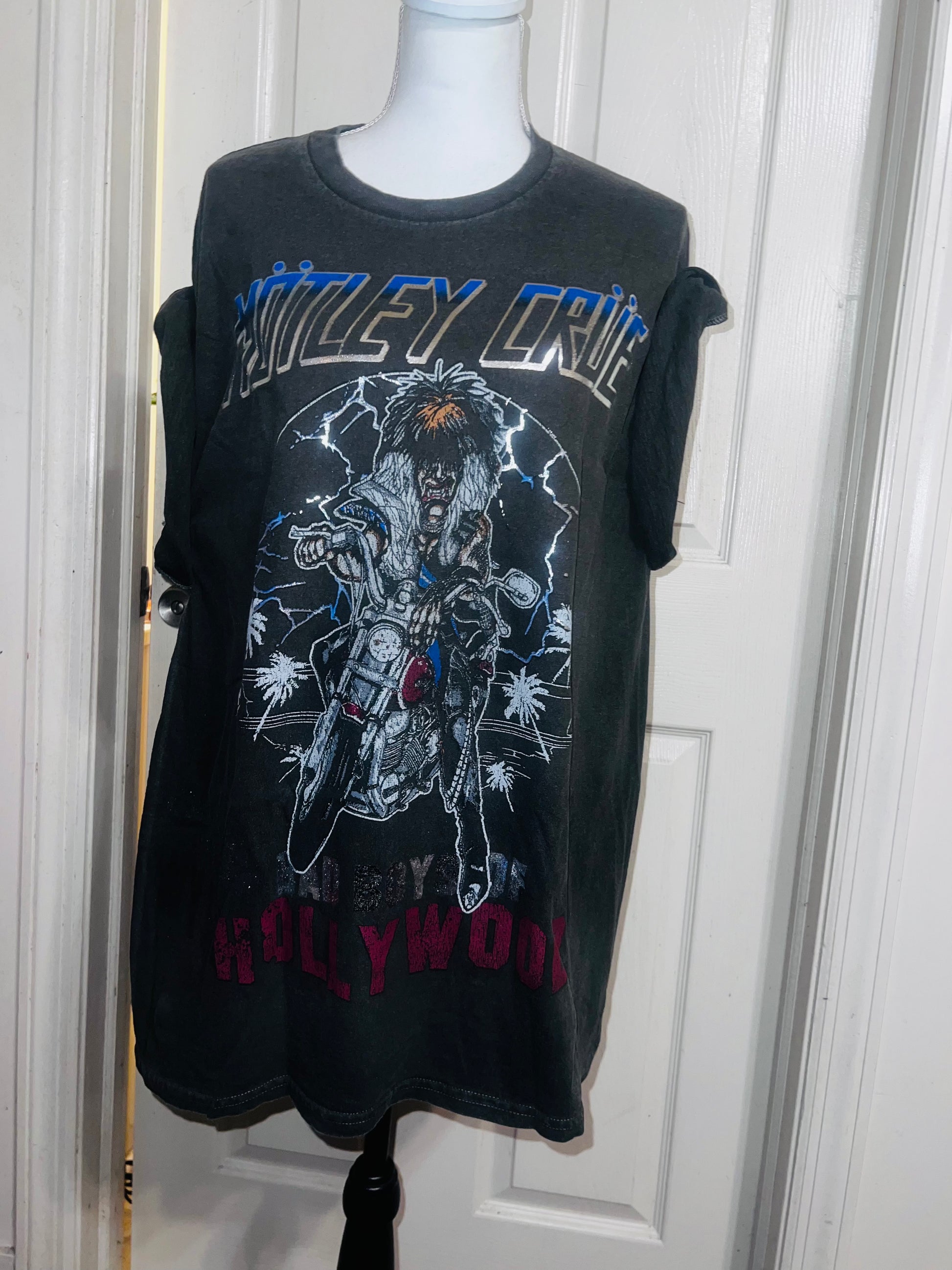 This is now a preorder. Please allow extra processing time. A dark charcoal grey Motley Crue Bad Boys of Hollywood tee- love this one. Size S/M, oversized.