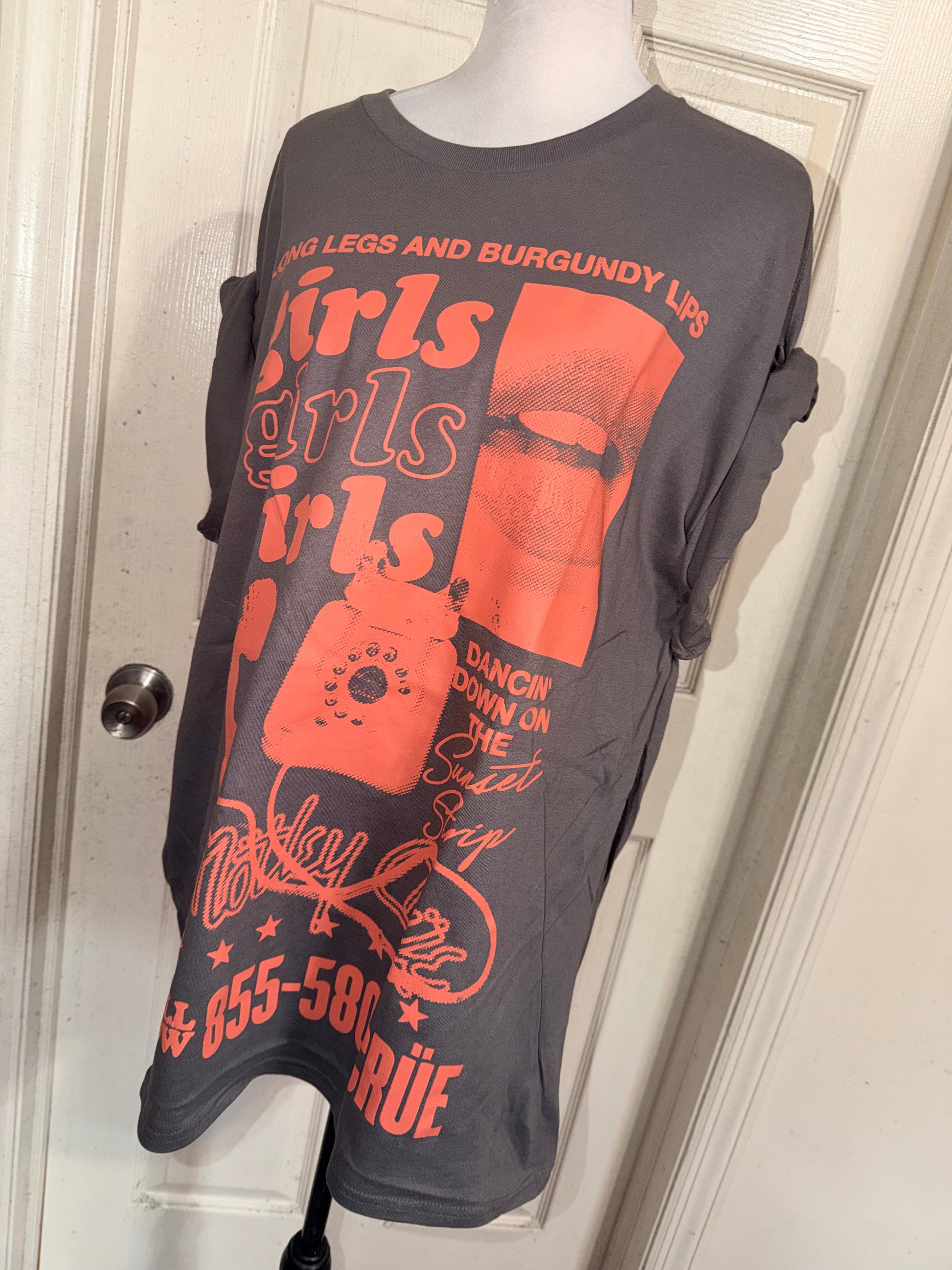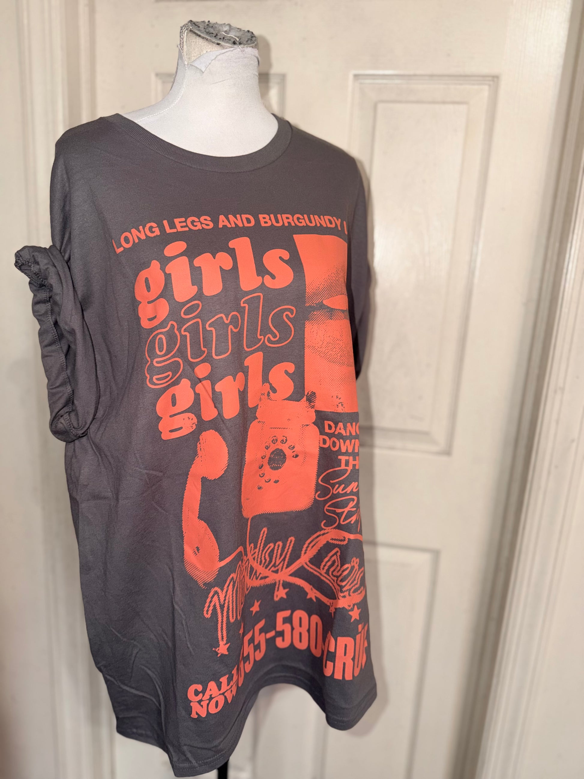 A grey Motley Crue “Girls Girls Girls” tee with a sick graphic. Oversized.