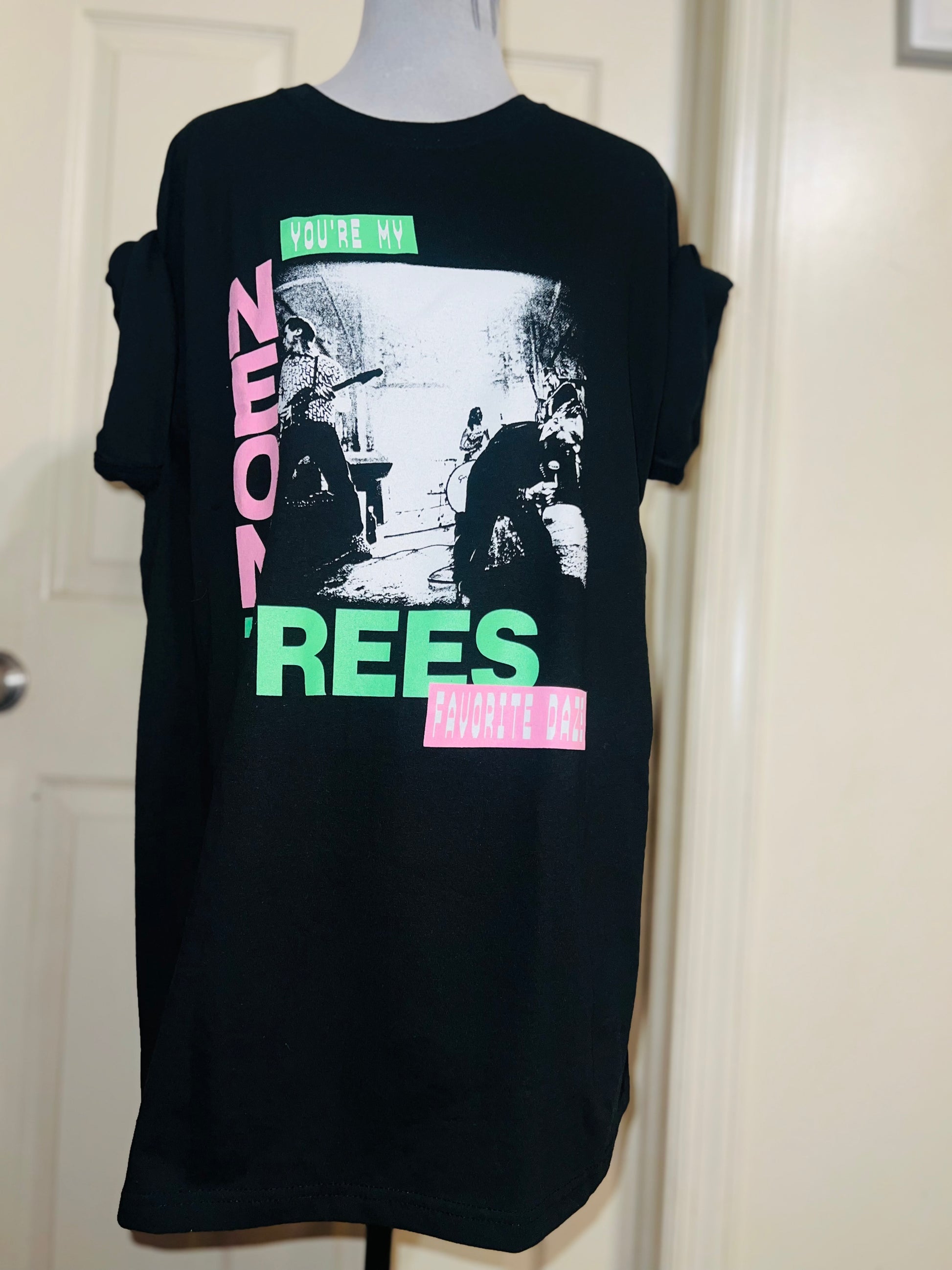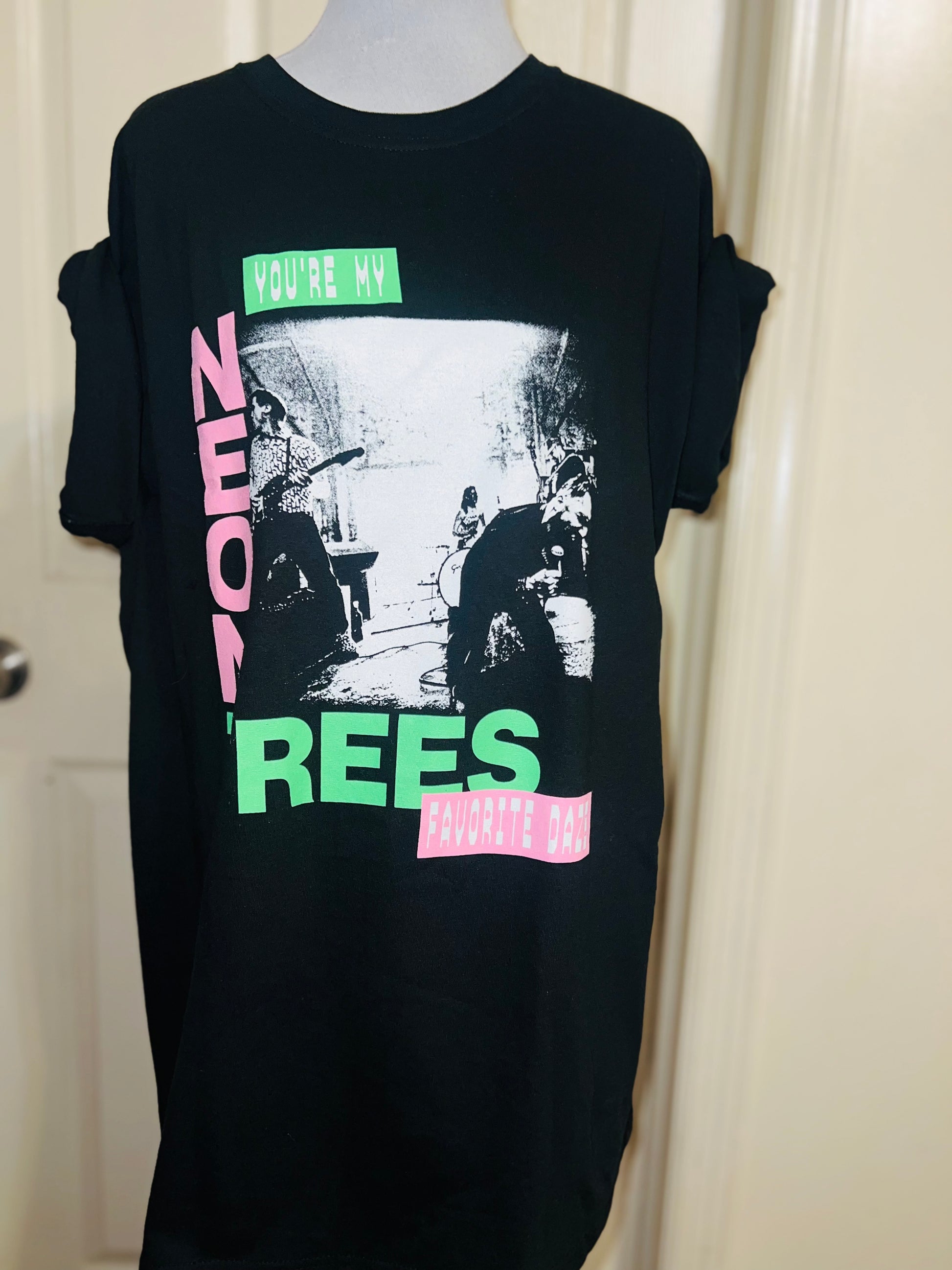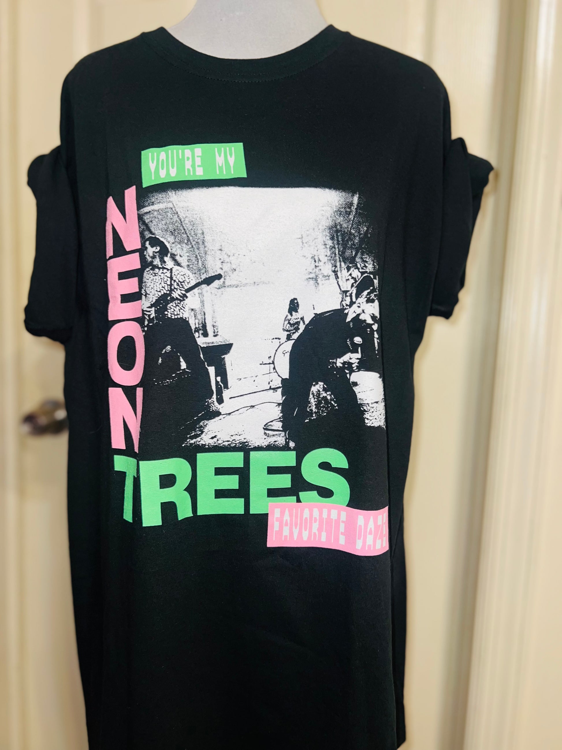 A black Neon Trees tee with “you’re my favorite daze” lyrics oversized tee. Size Large, oversized.