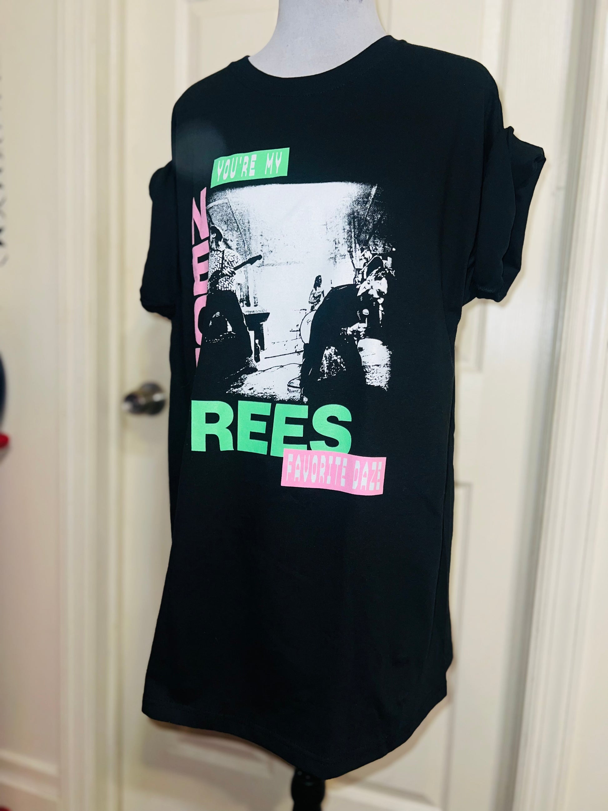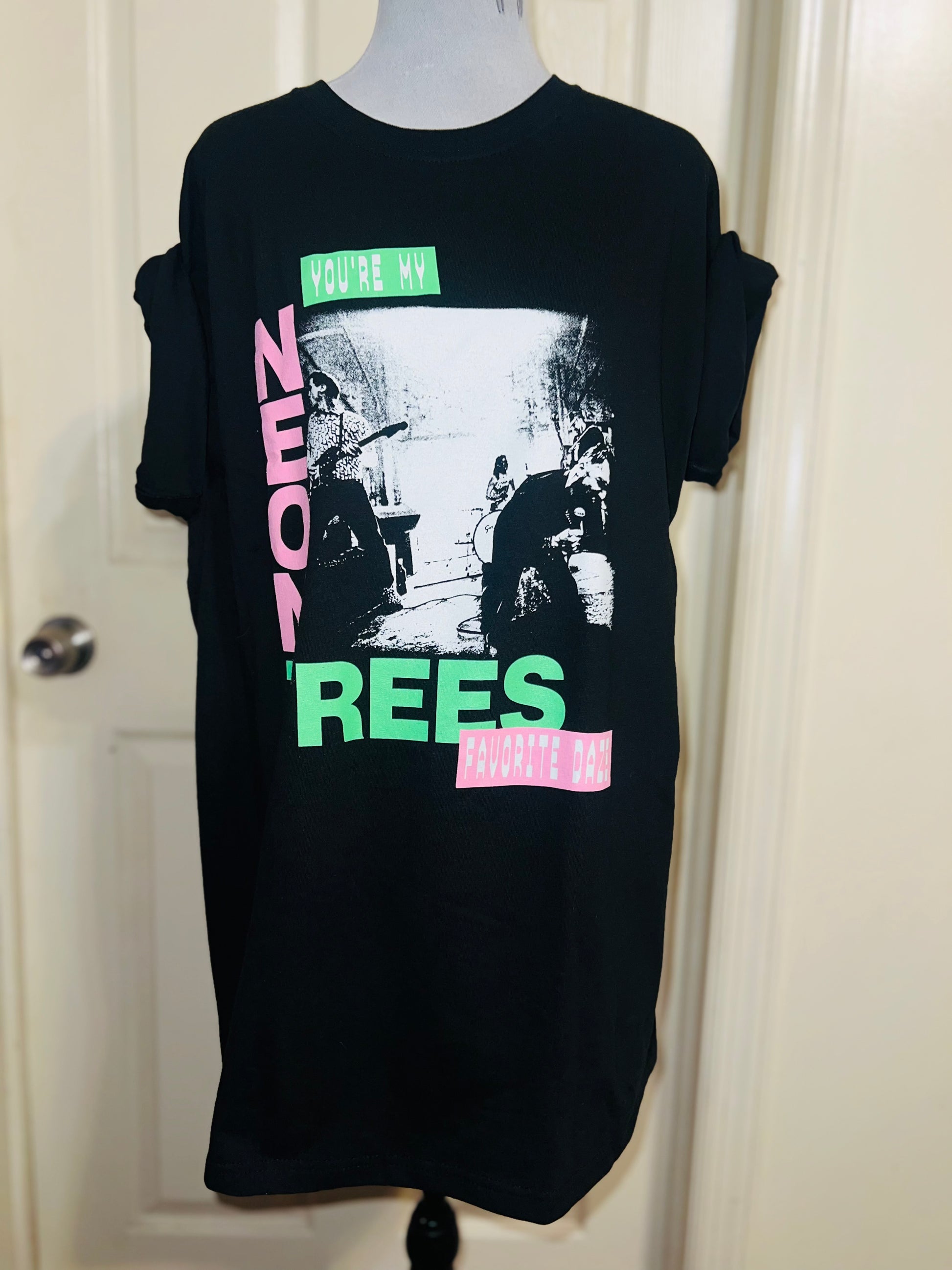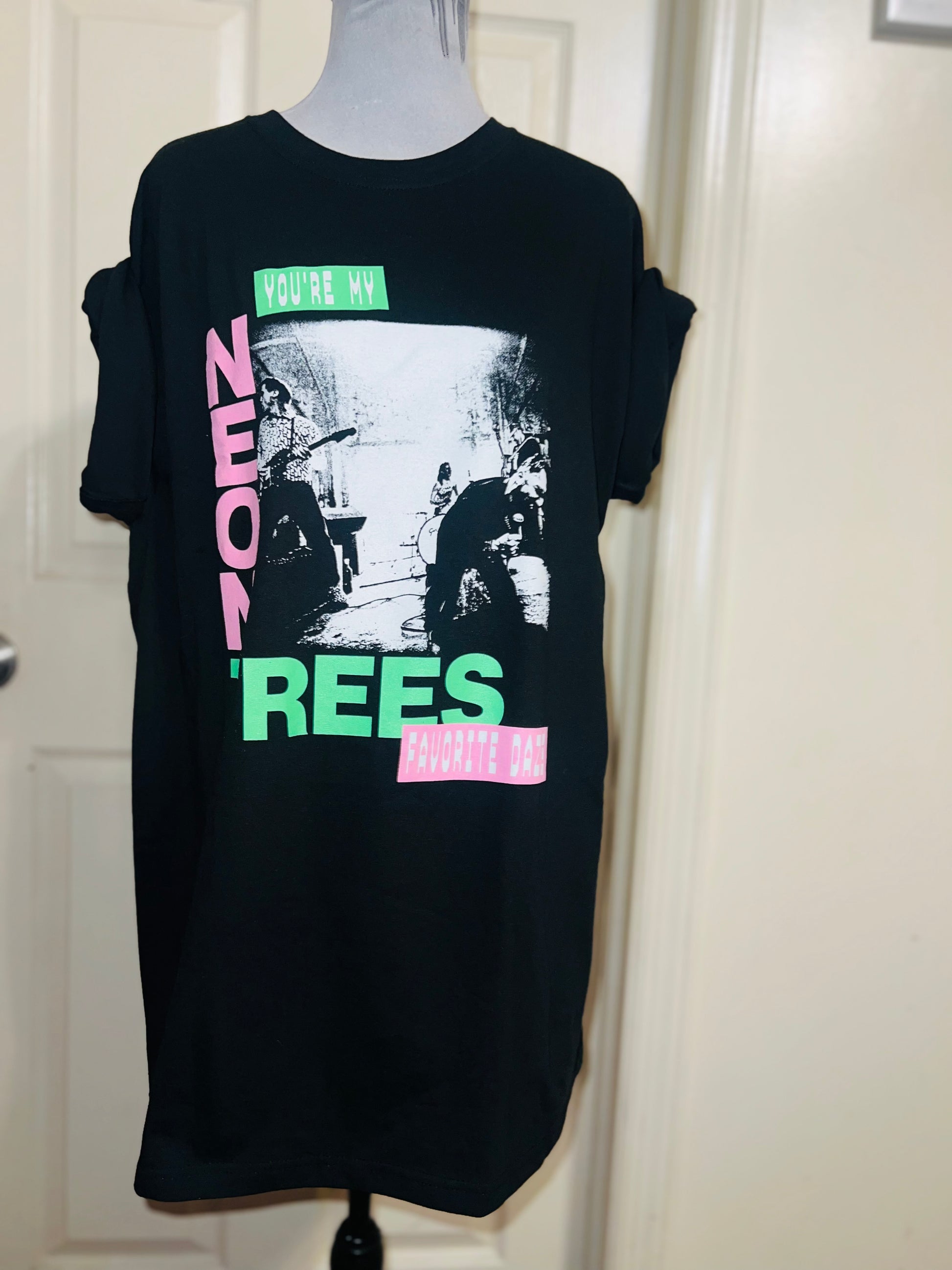 A black Neon Trees tee with “you’re my favorite daze” lyrics oversized tee. Size Large, oversized.