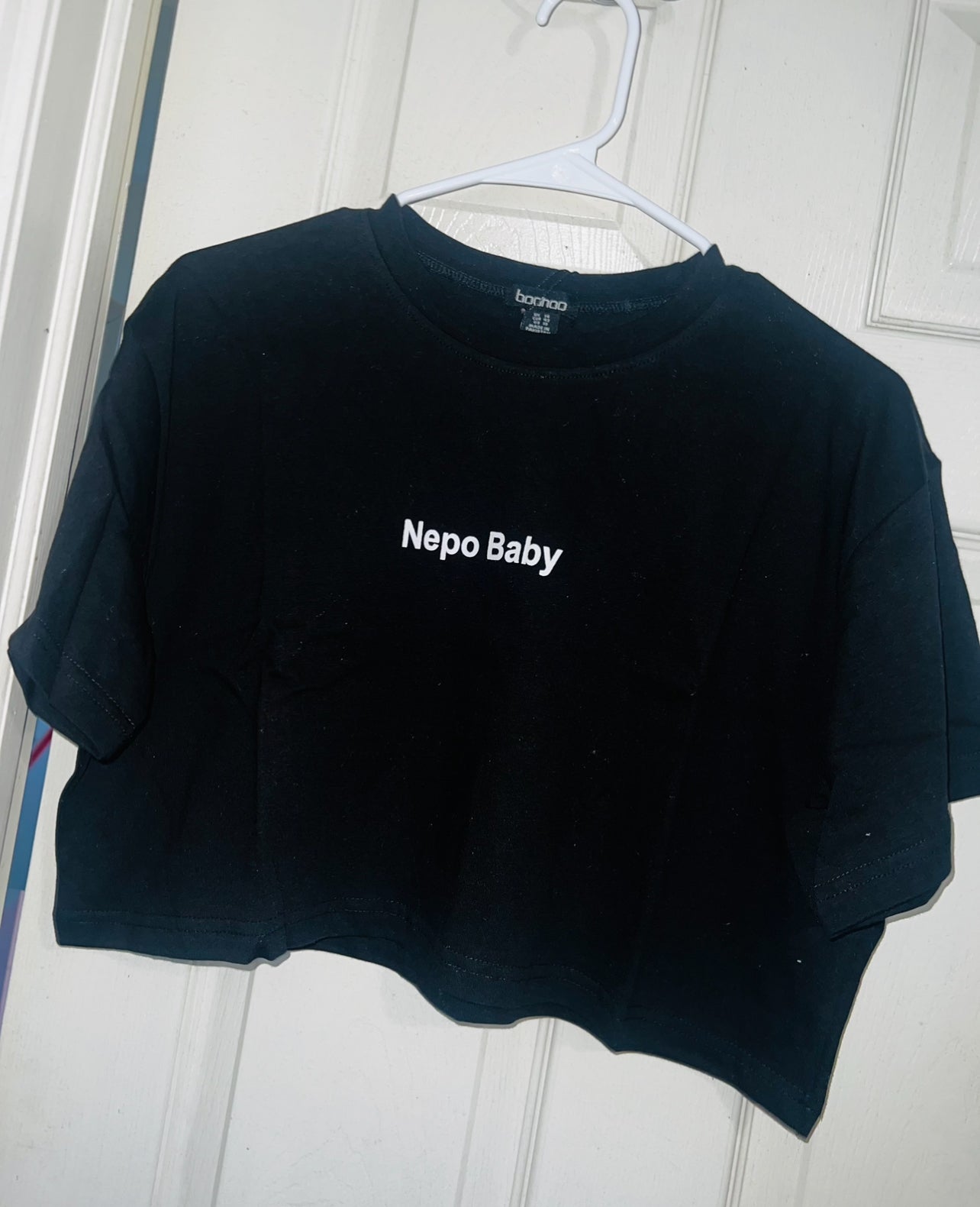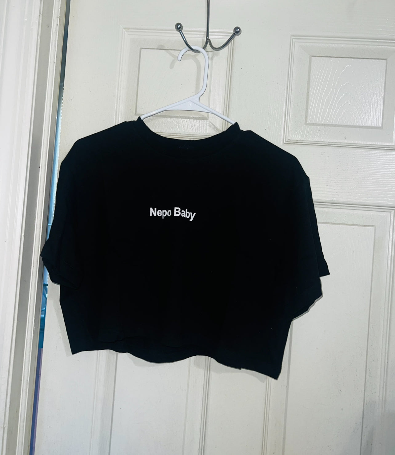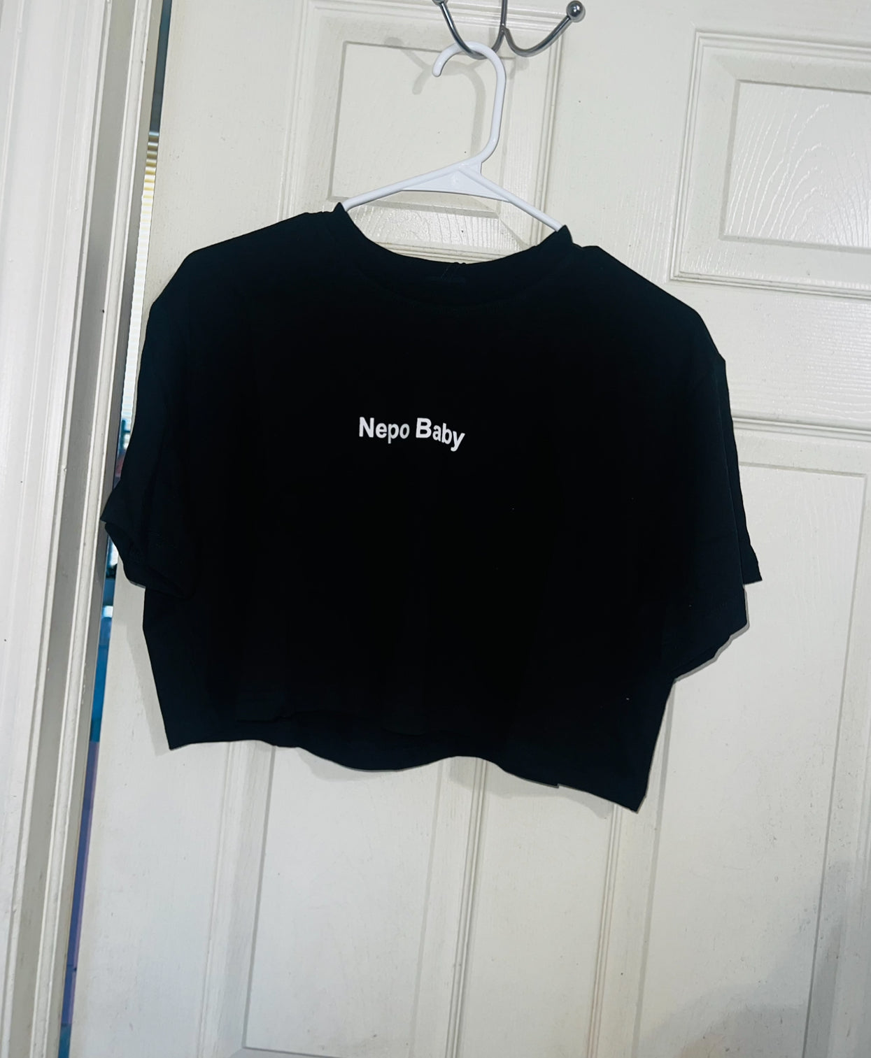 As seen on Hailey Bieber, this funny and cute Nepo Baby crop top makes light of the new phrase heard around the world and makes us feel rich for a day! Cropped! Size M/L and L/XL