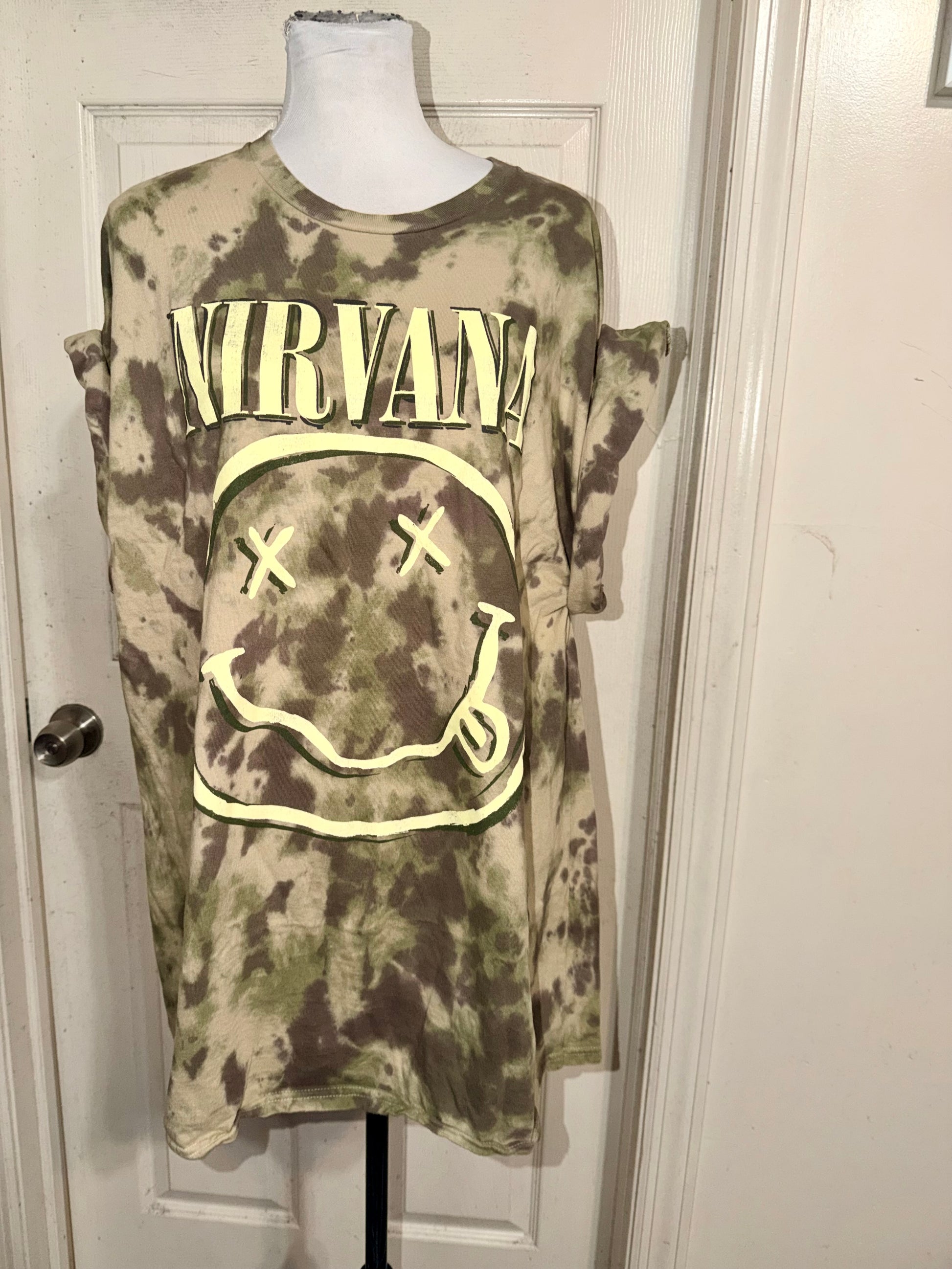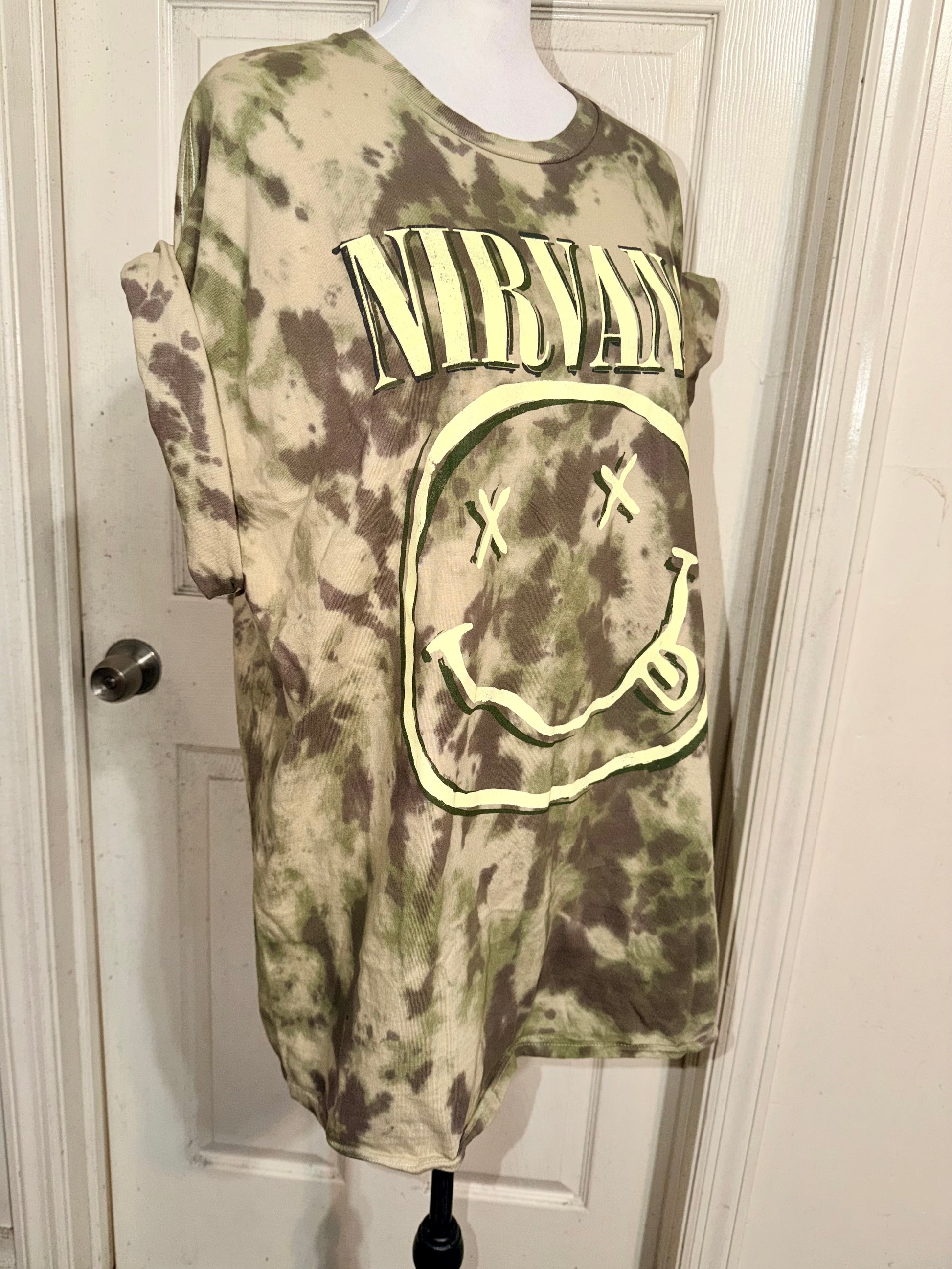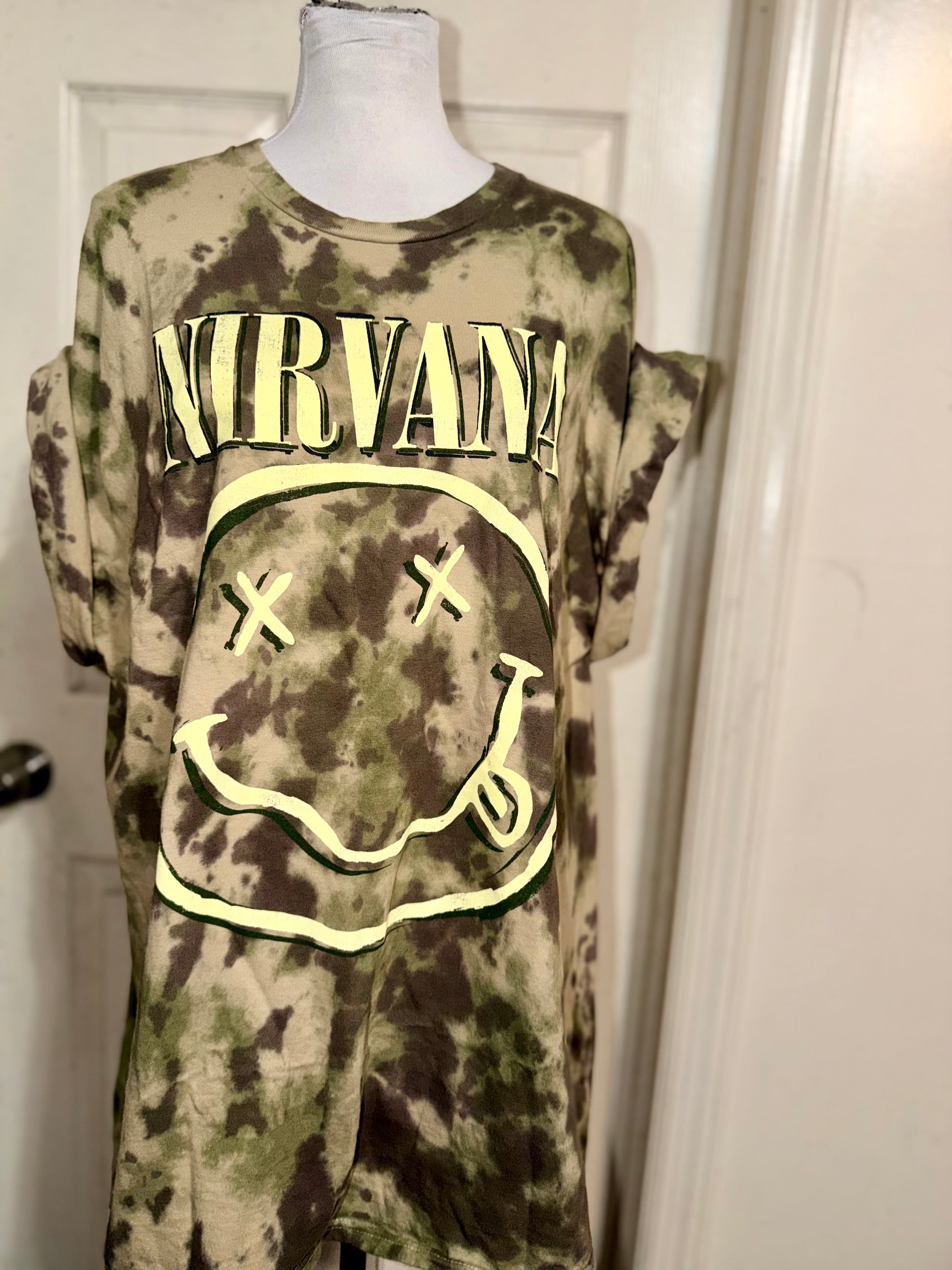 A camouflage Nirvana tee with the smiley on front. Oversized.