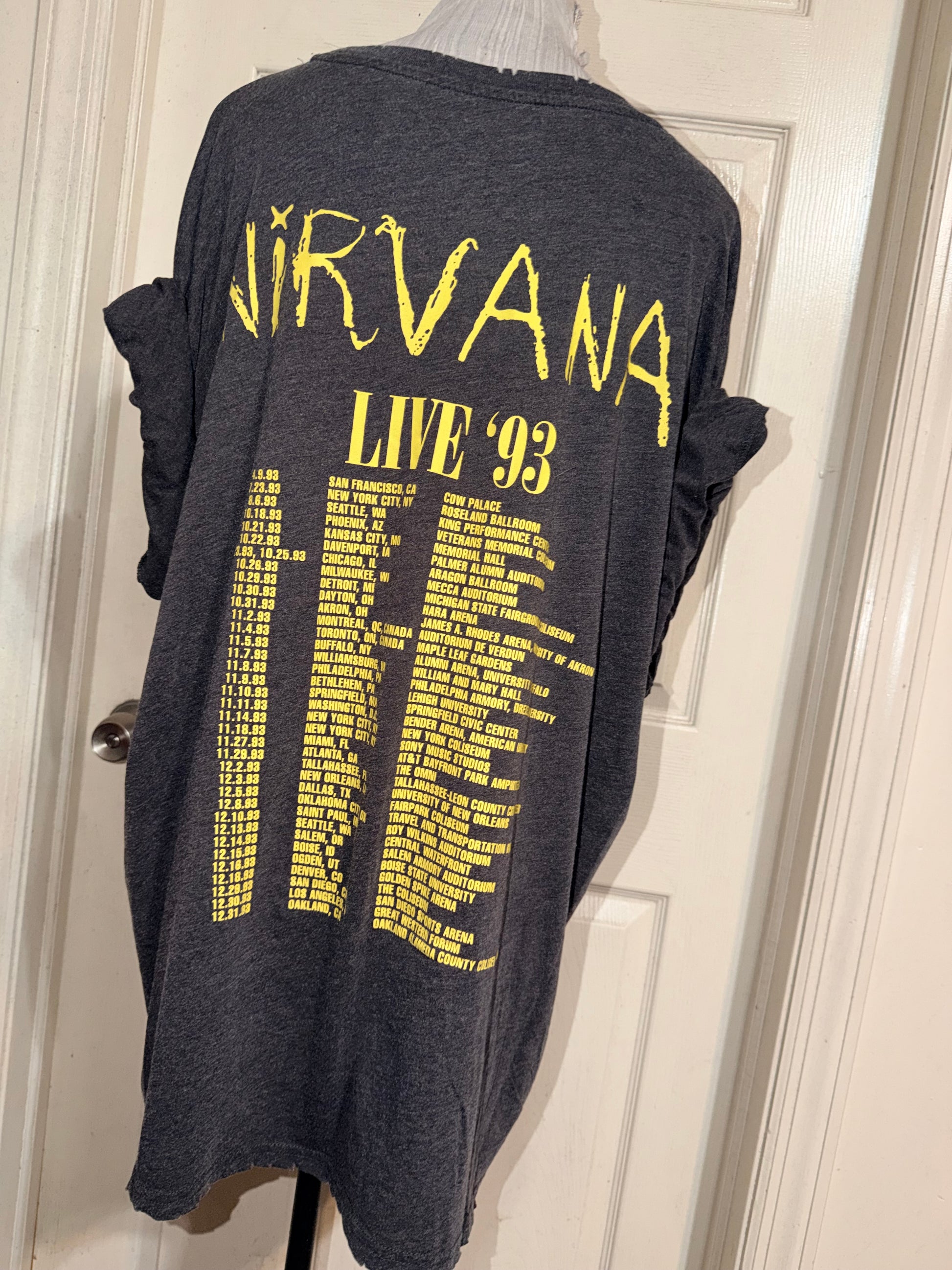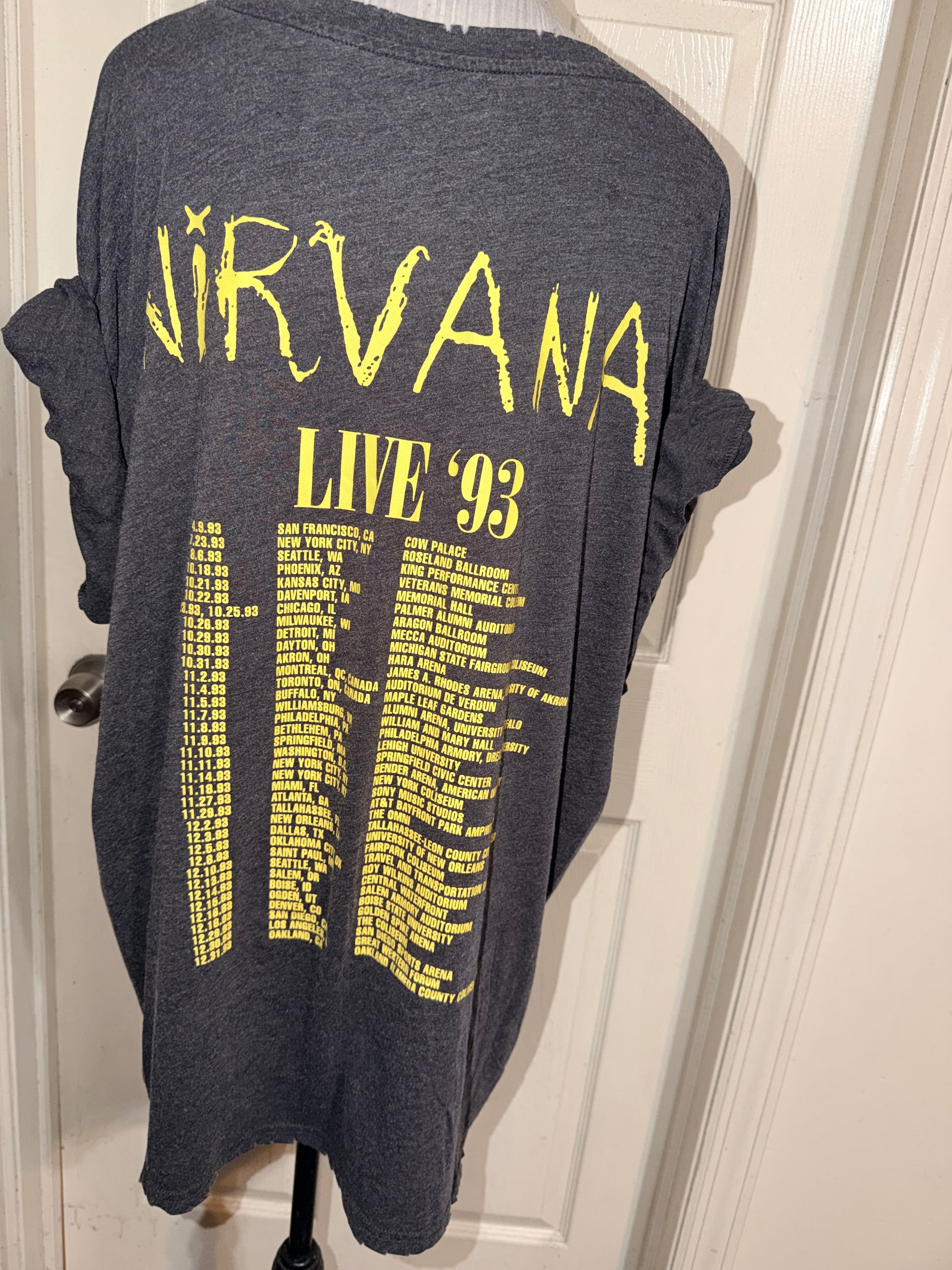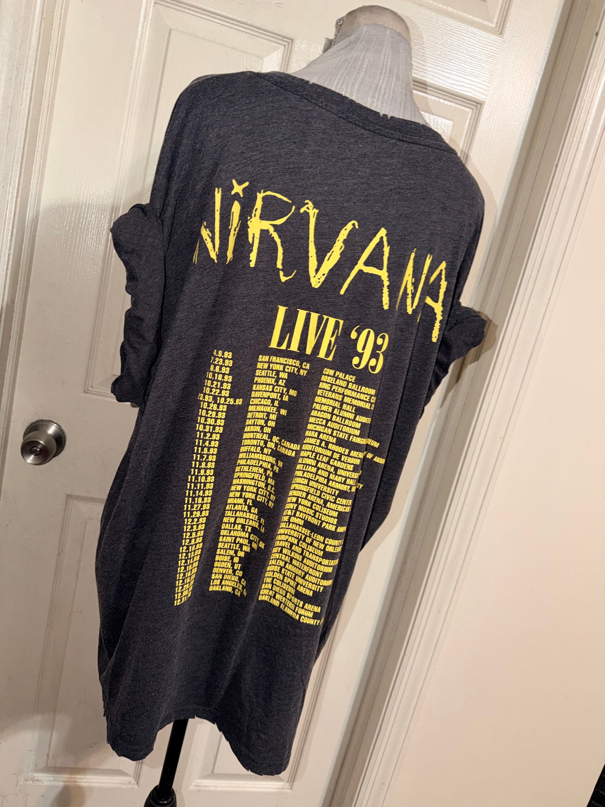 A dark grey Nirvana 93 Tour double sided tee. Super soft, oversized.
