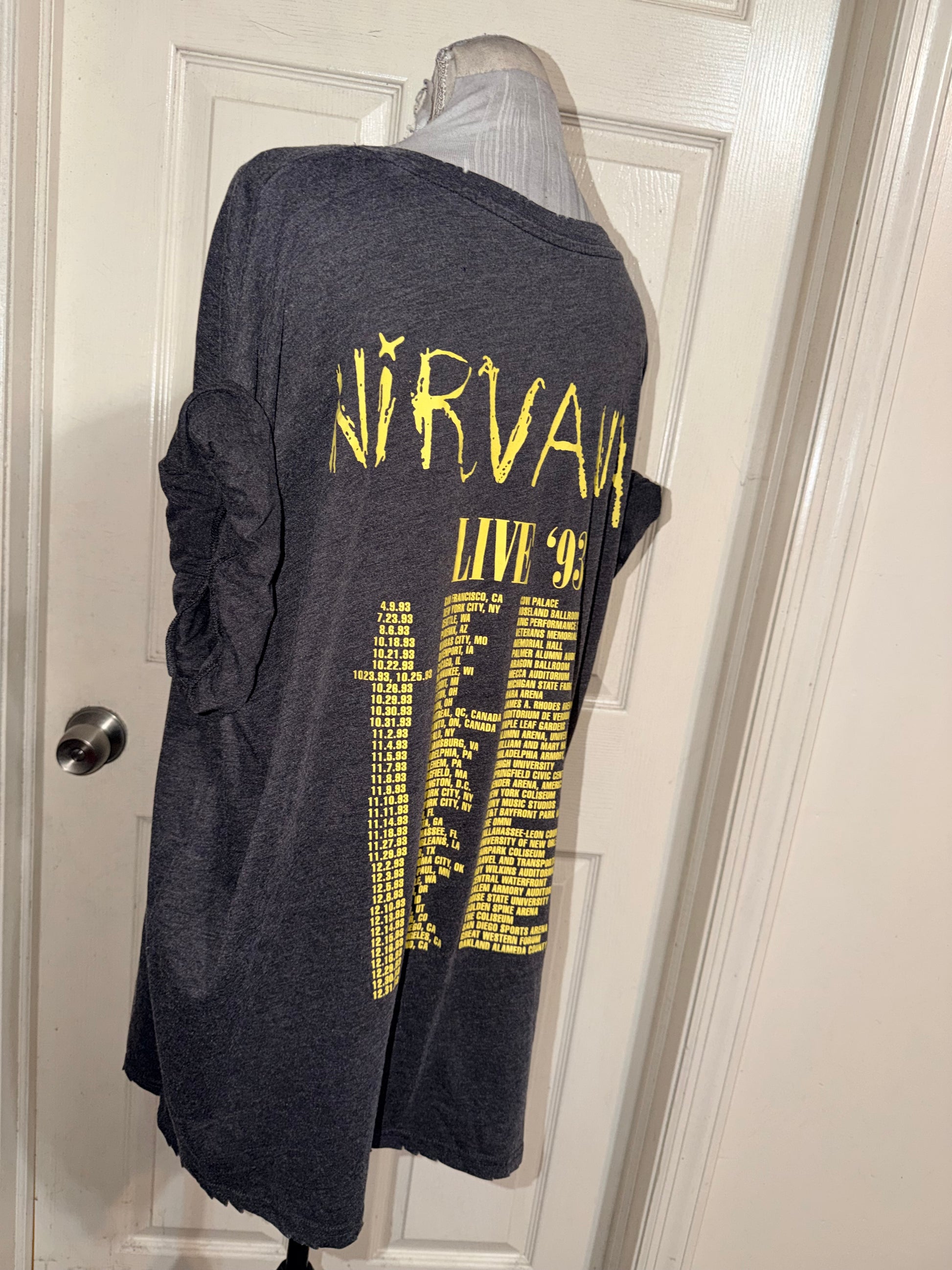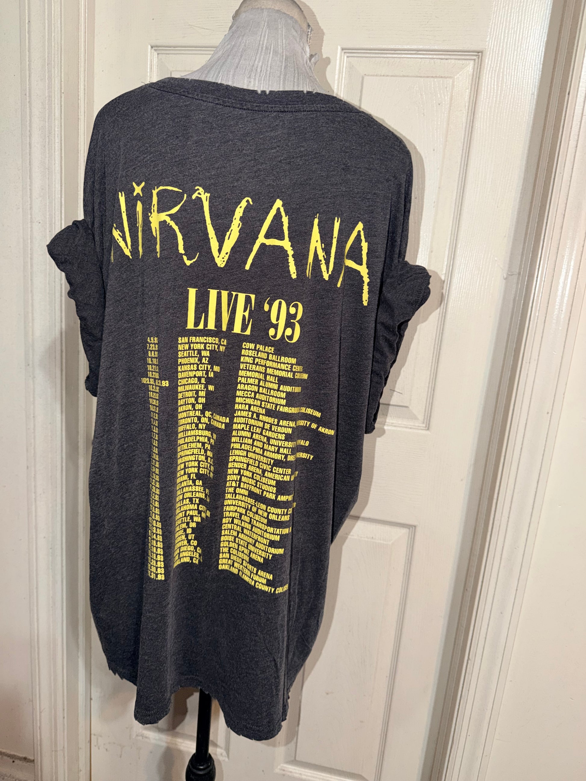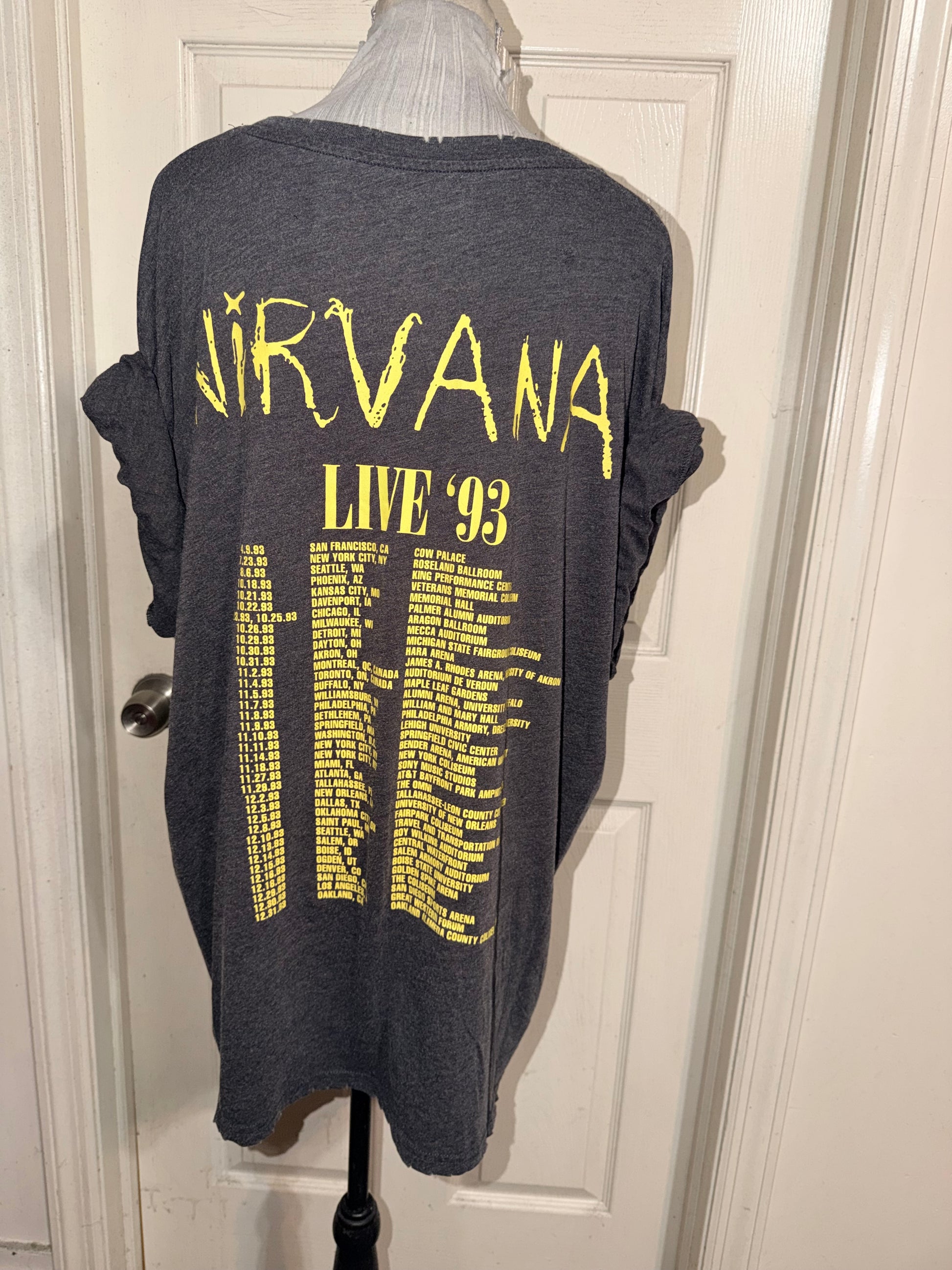 A dark grey Nirvana 93 Tour double sided tee. Super soft, oversized.