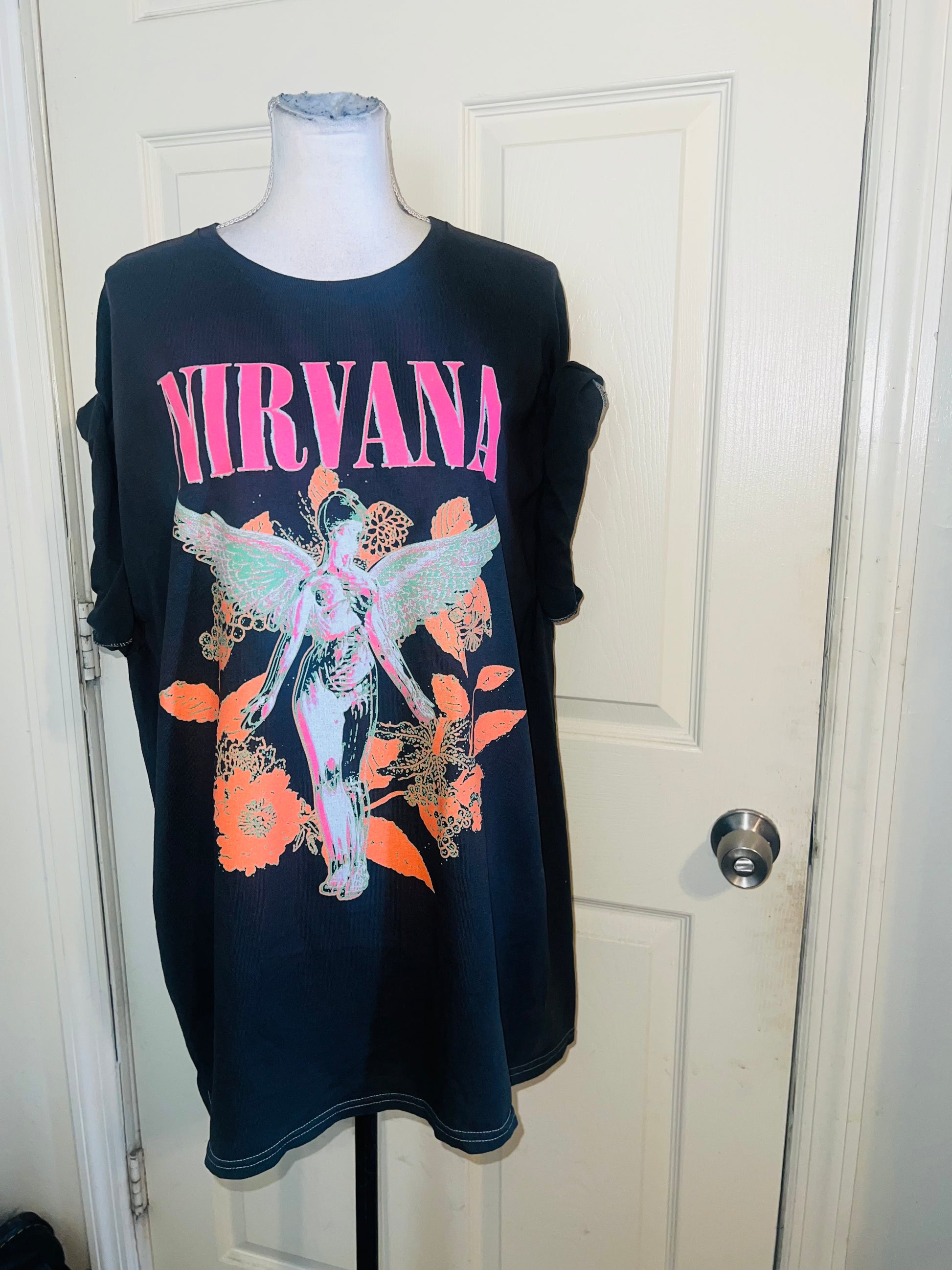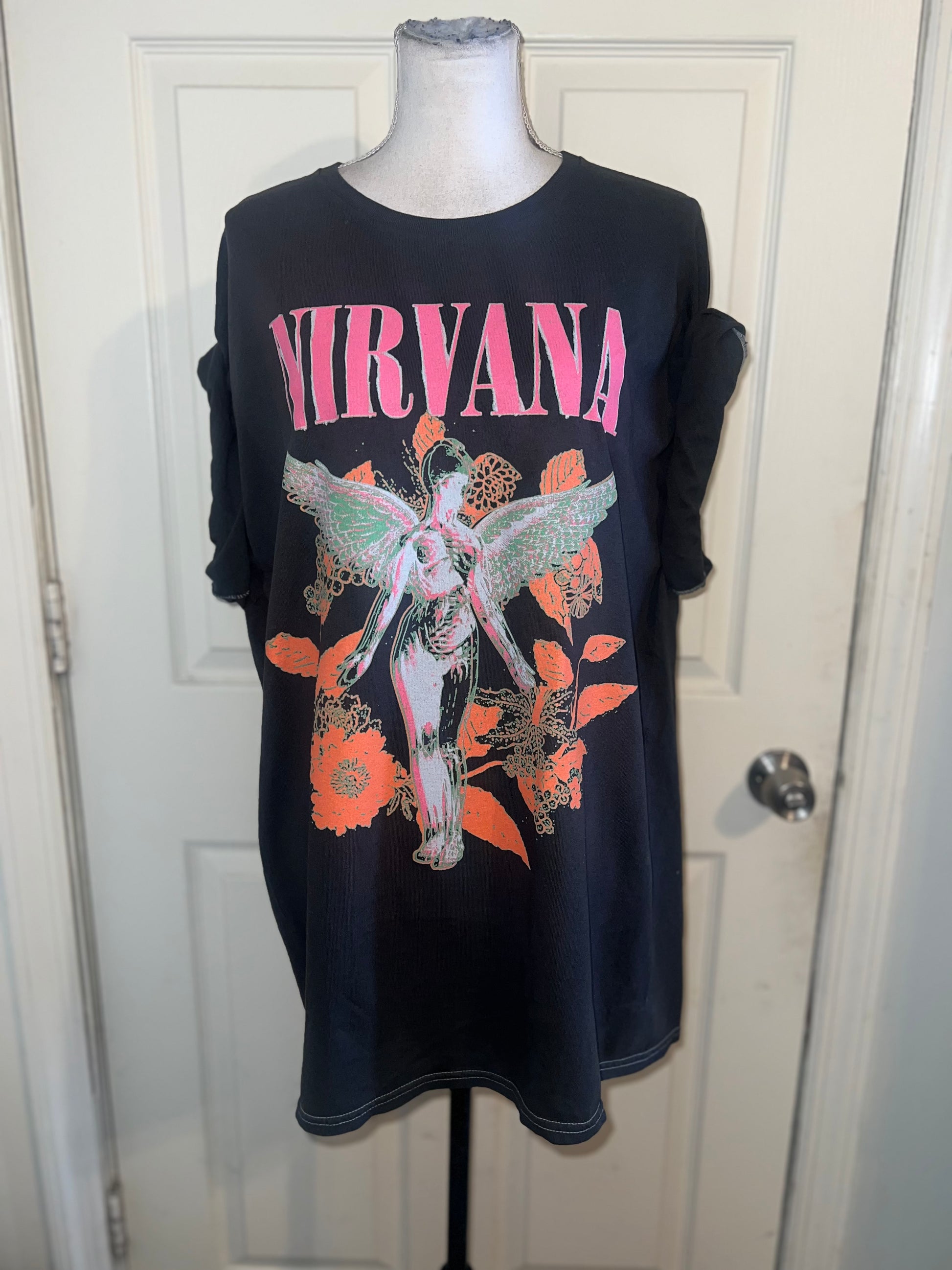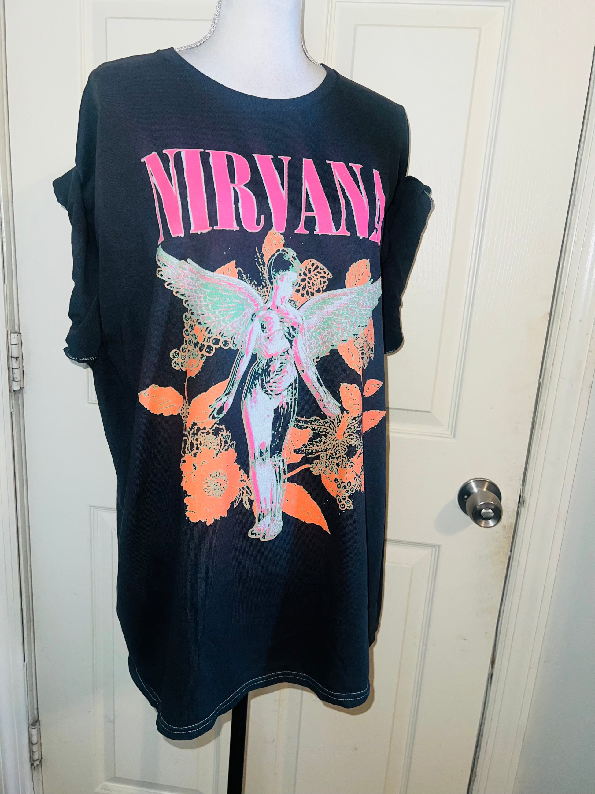 This is now a preorder. Please allow extra processing time. A dark grey charcoal Nirvana In Utero tee. Size L/XL, oversized.