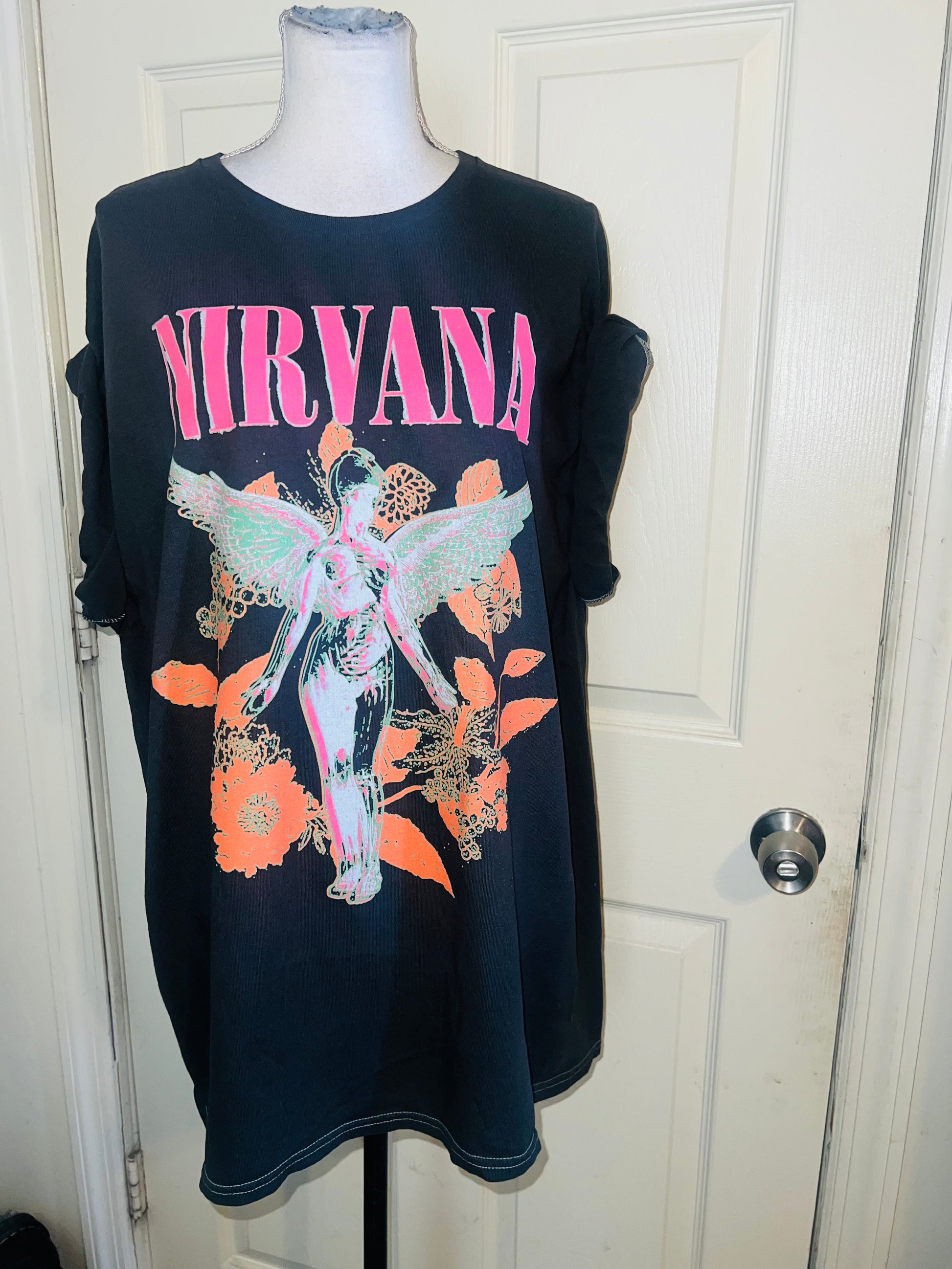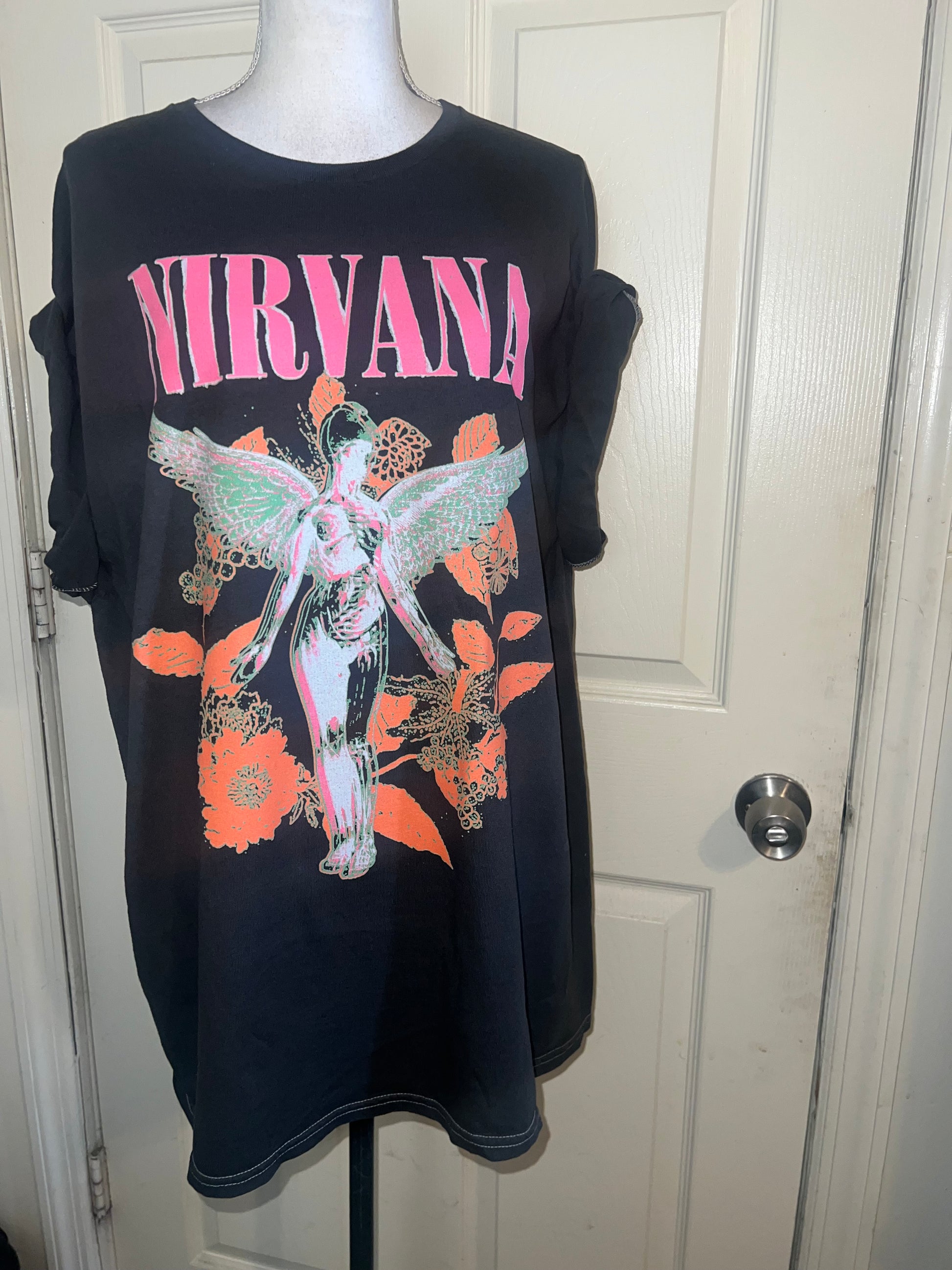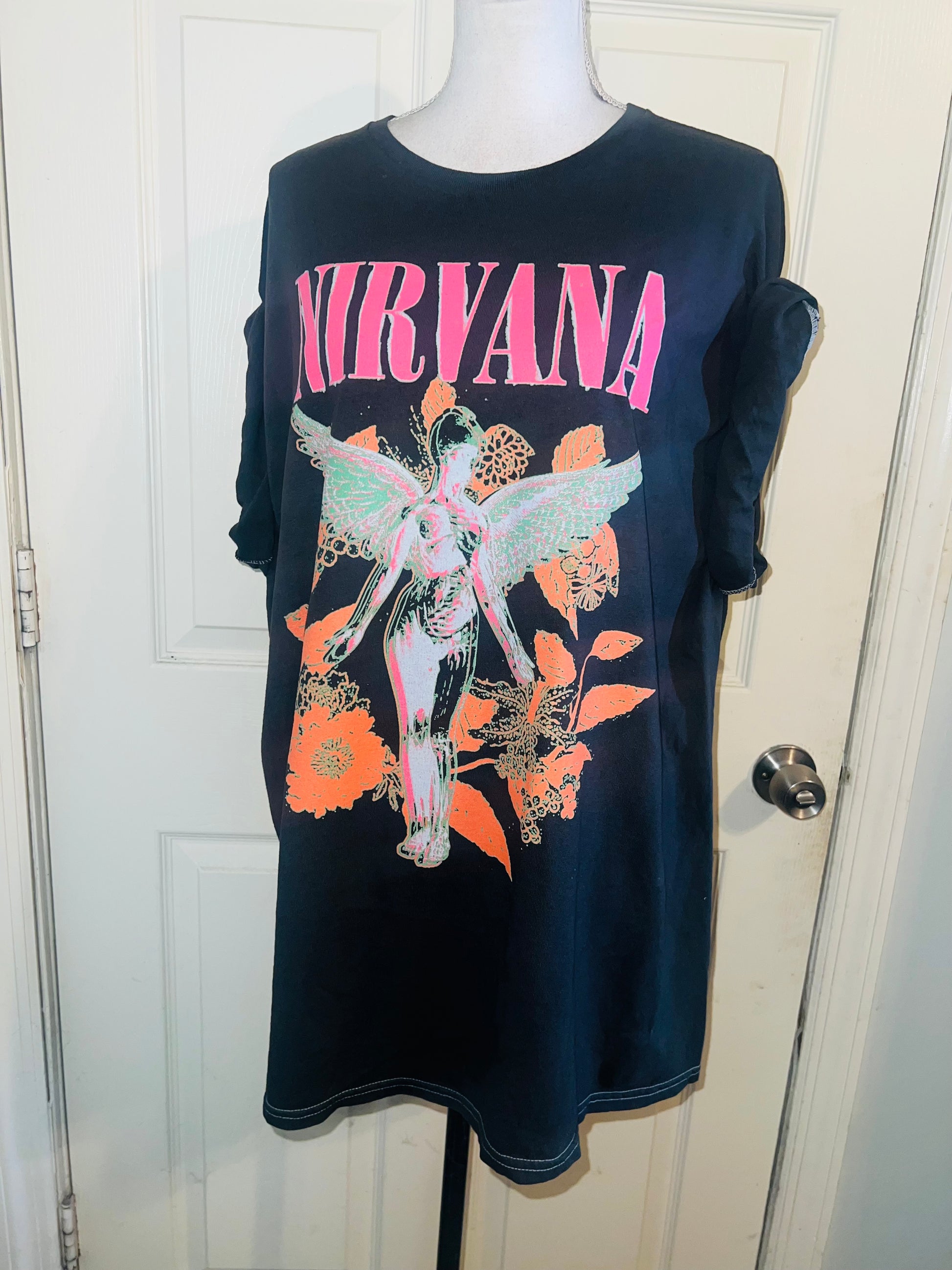 This is now a preorder. Please allow extra processing time. A dark grey charcoal Nirvana In Utero tee. Size L/XL, oversized.