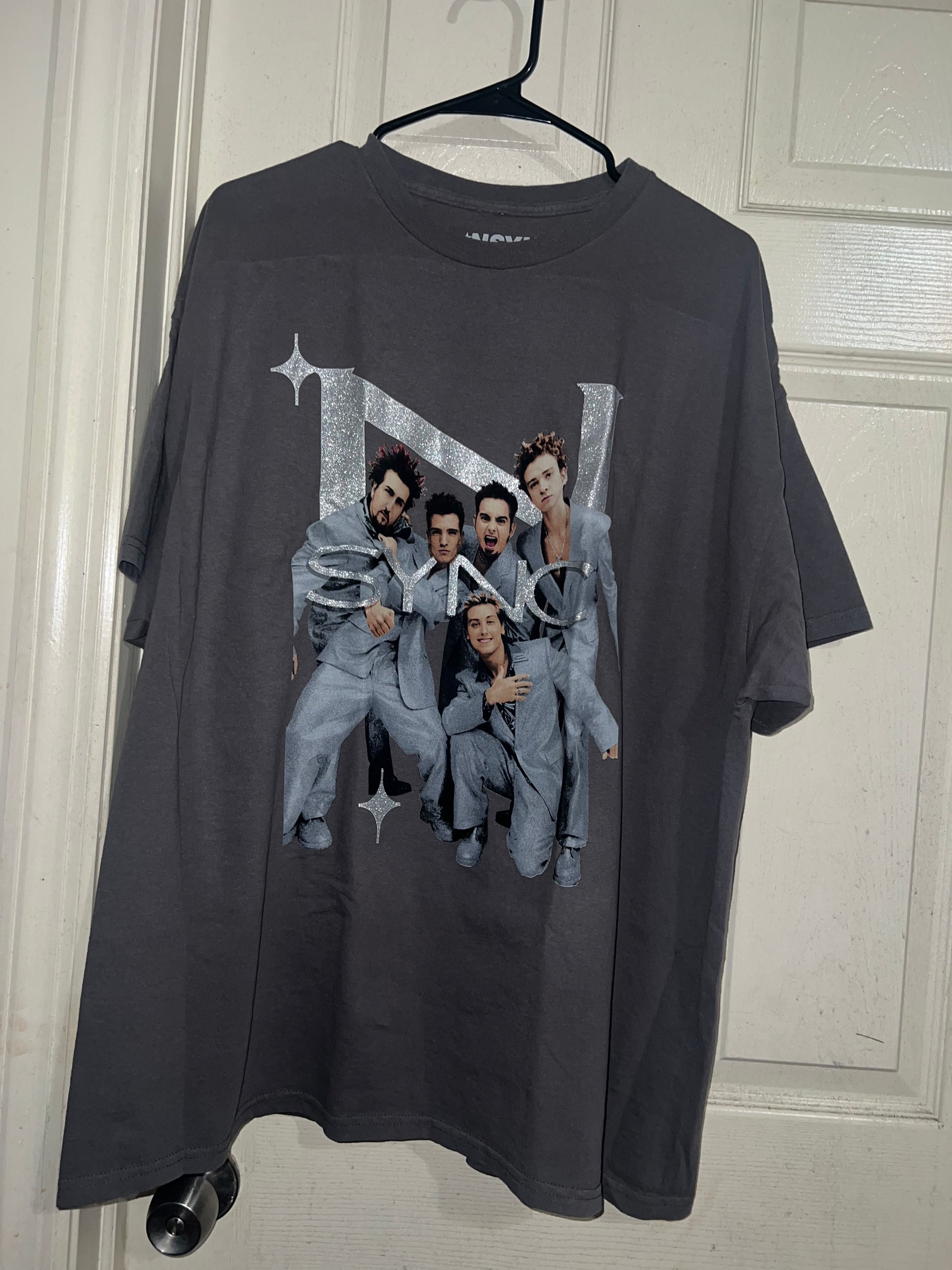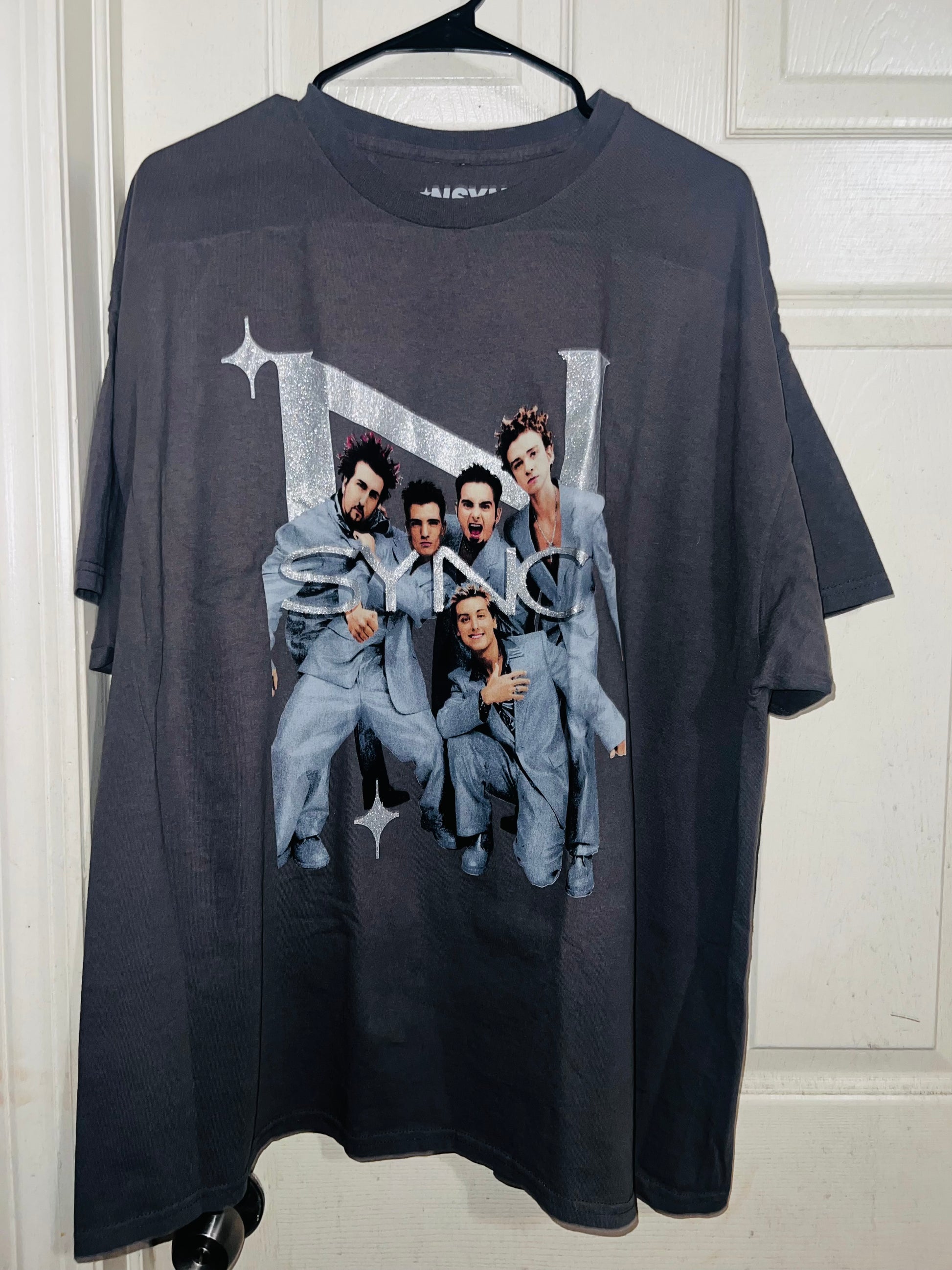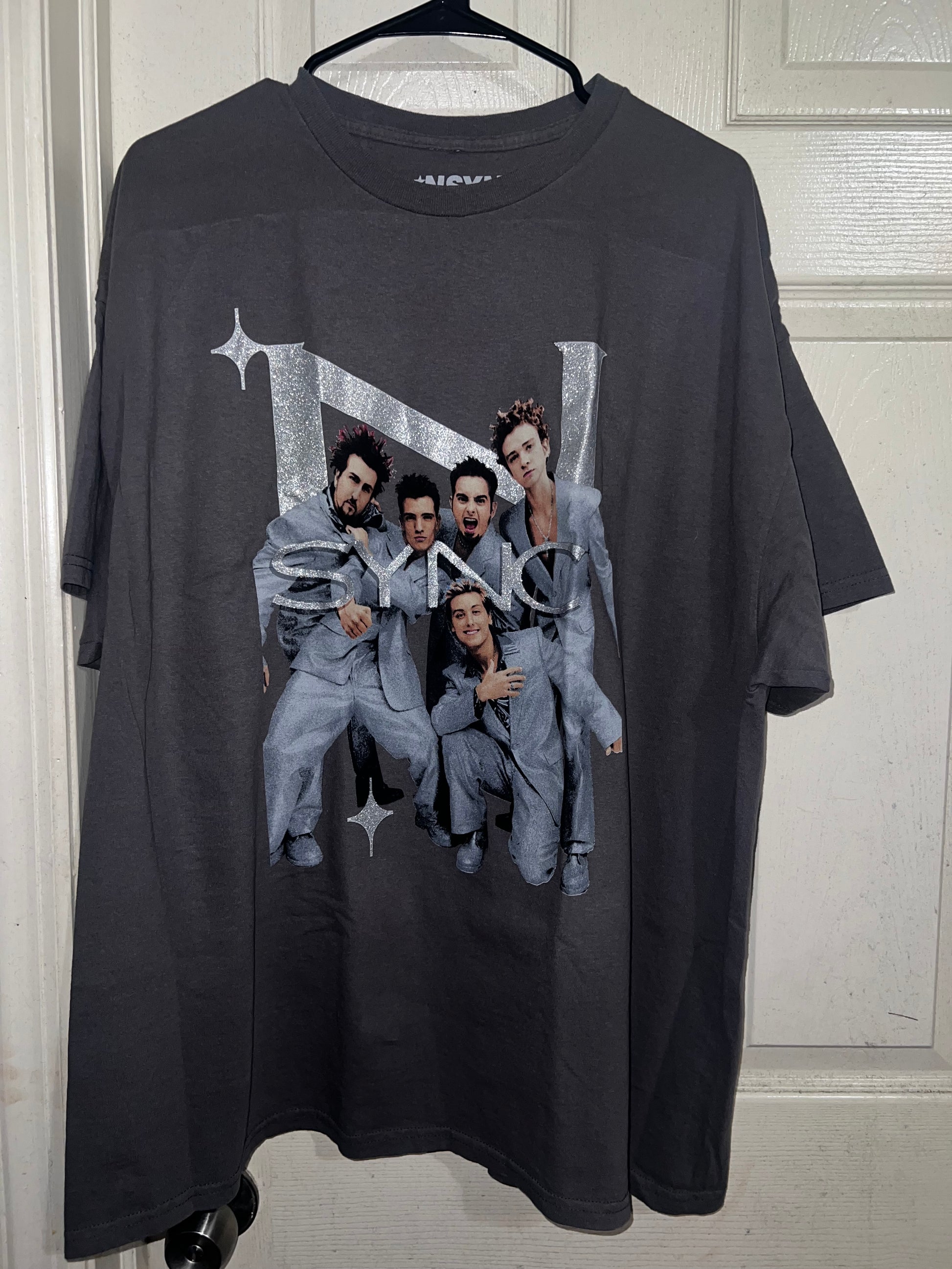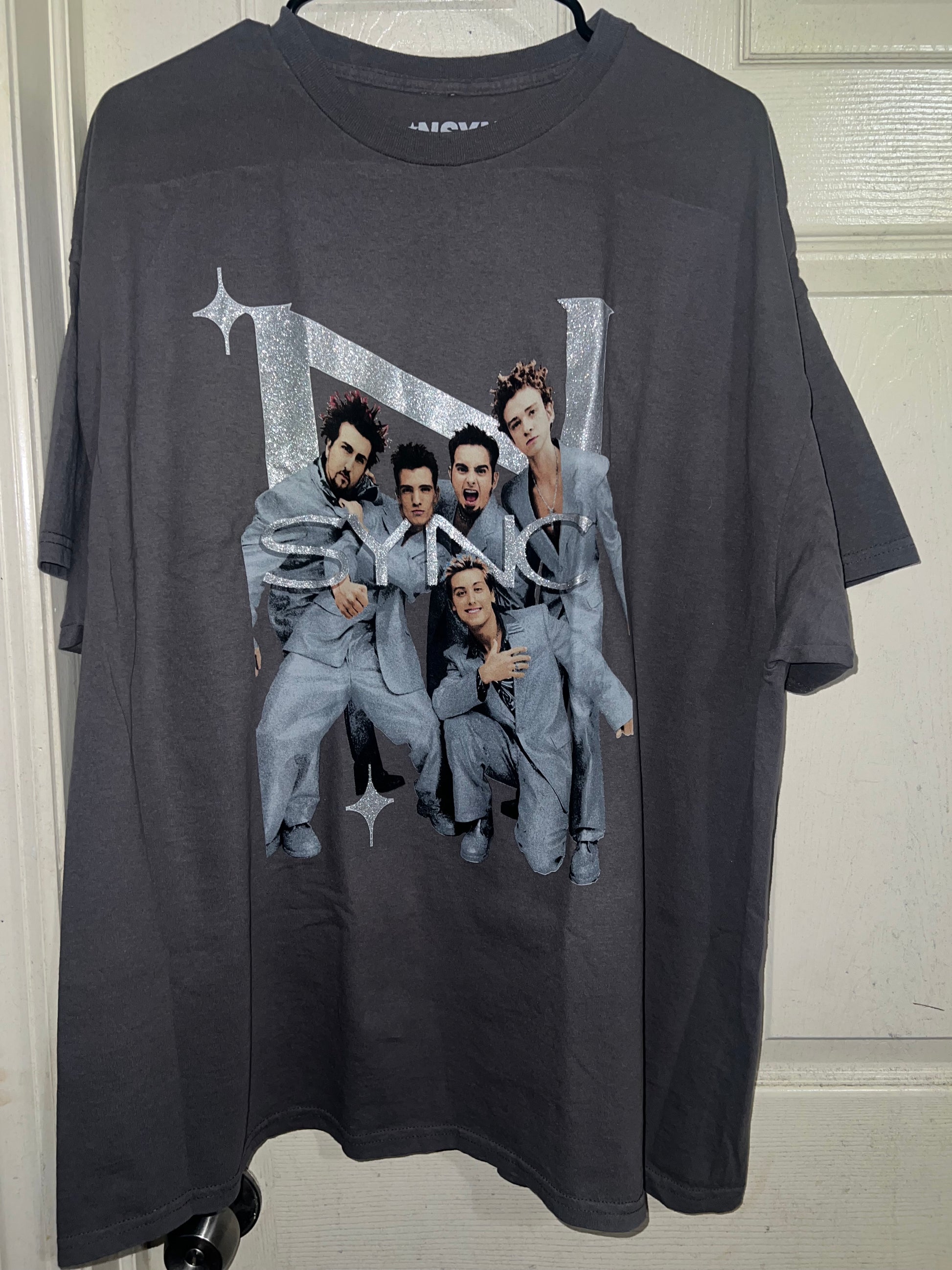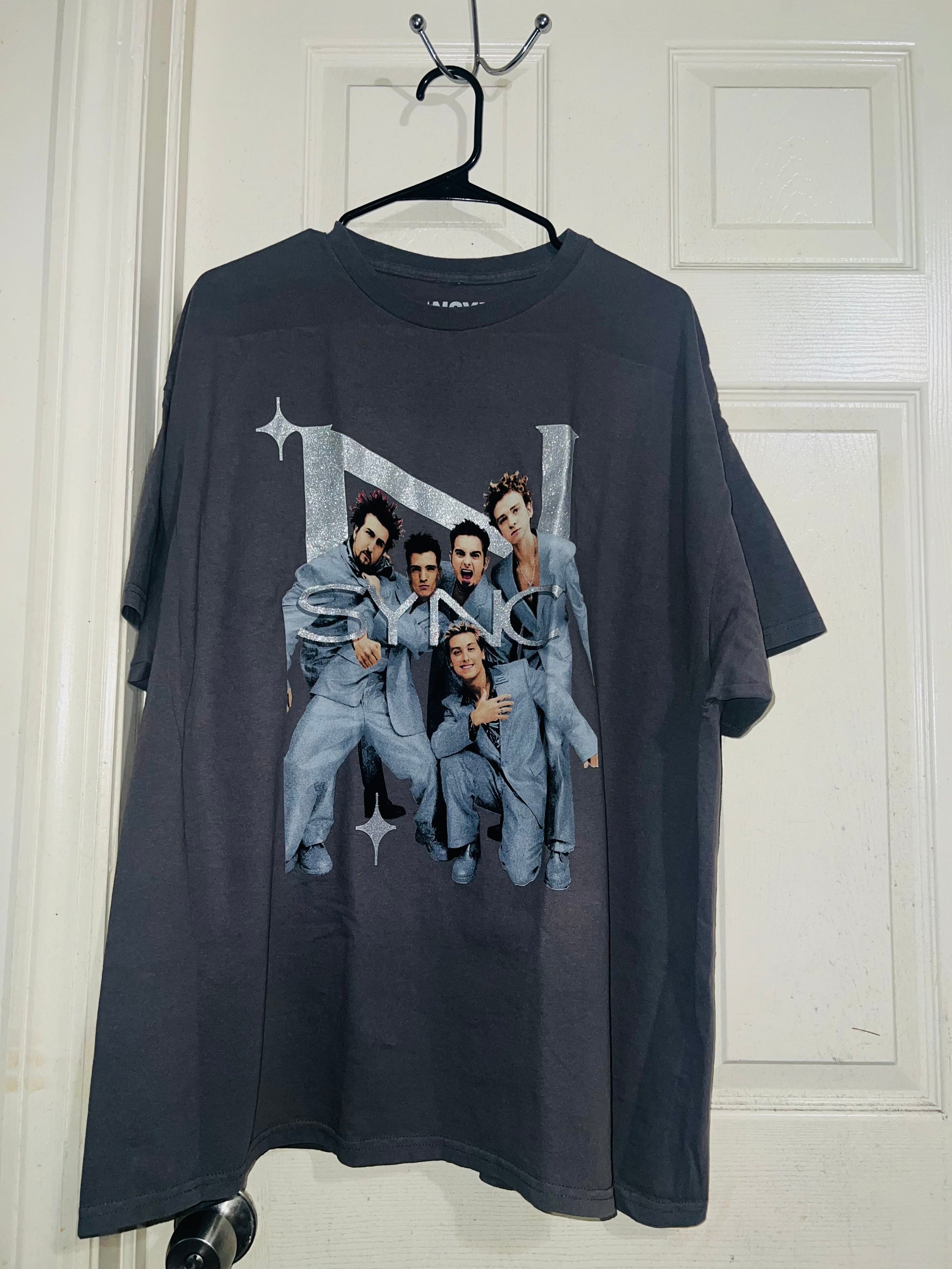 A grey NSYNC tee with a little sparkle contrast detail with our old favorite boy band on the front. Oversized, size XL.