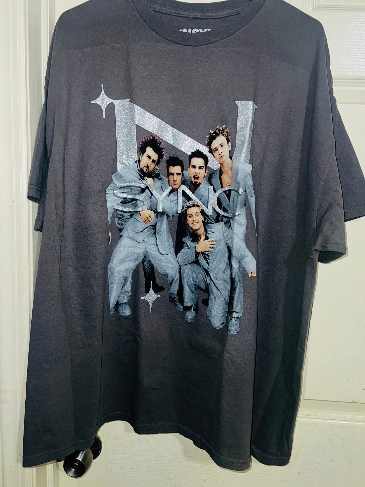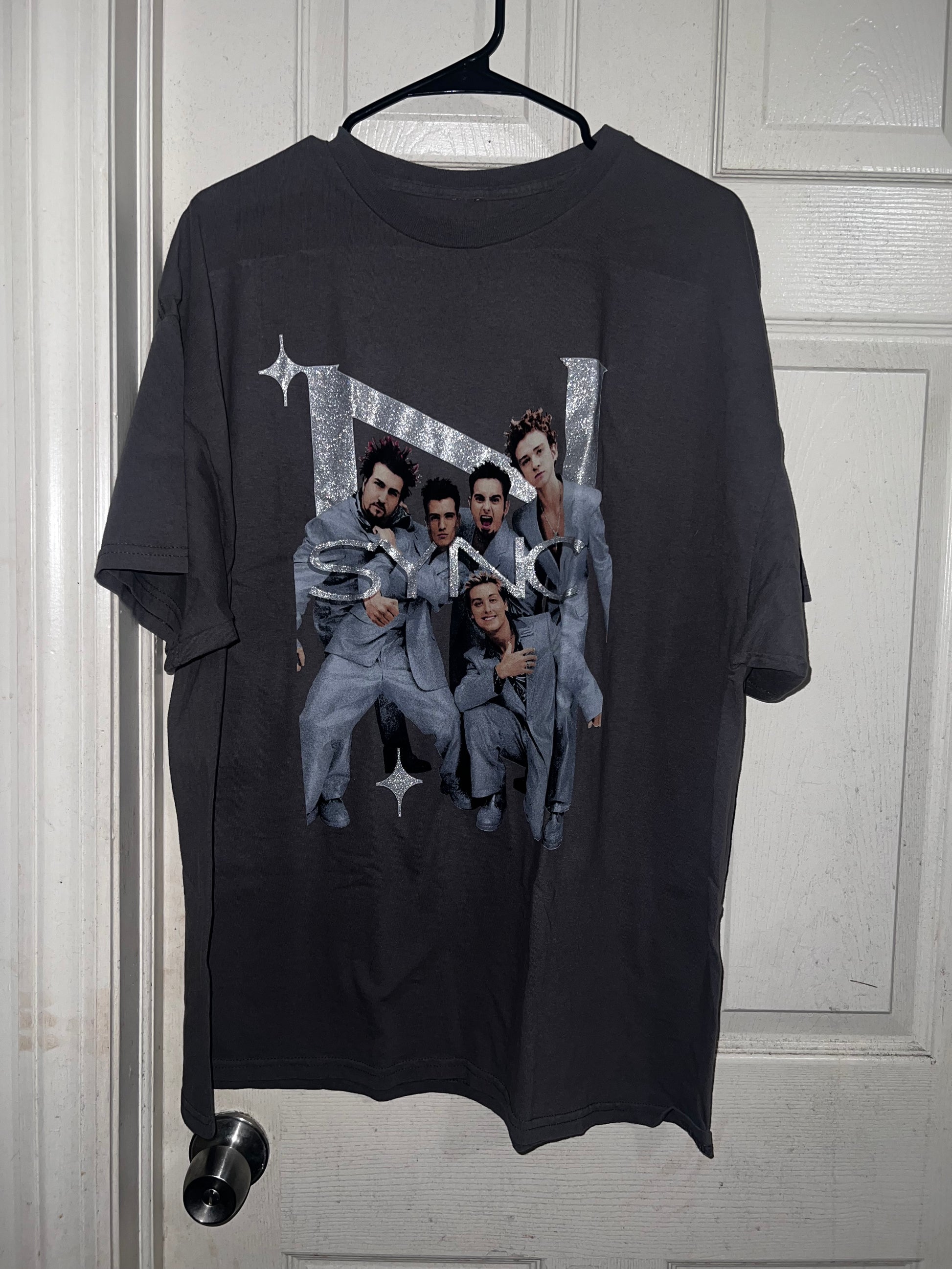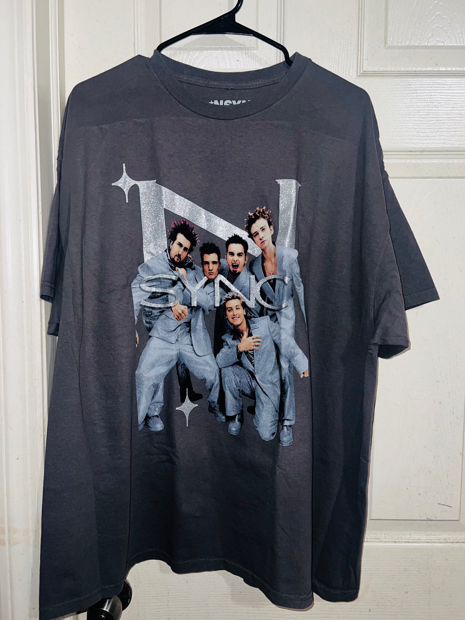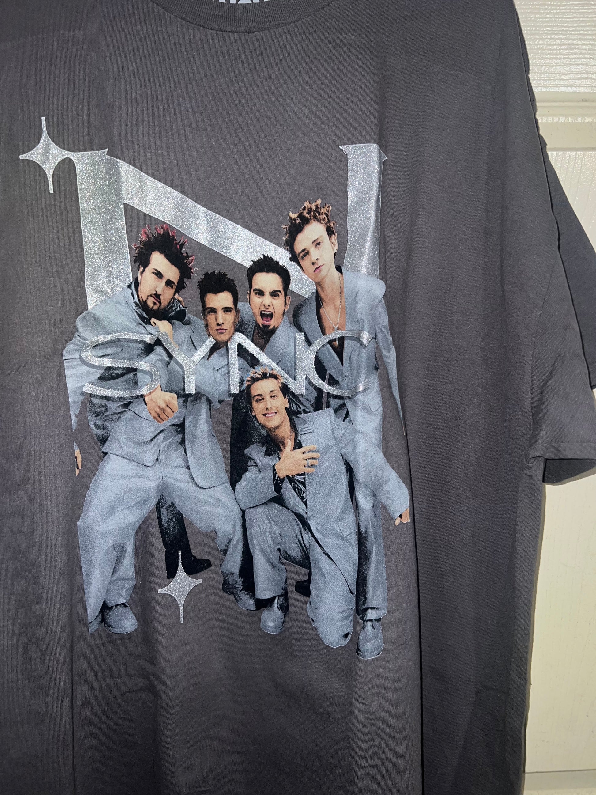 A grey NSYNC tee with a little sparkle contrast detail with our old favorite boy band on the front. Oversized, size XL.