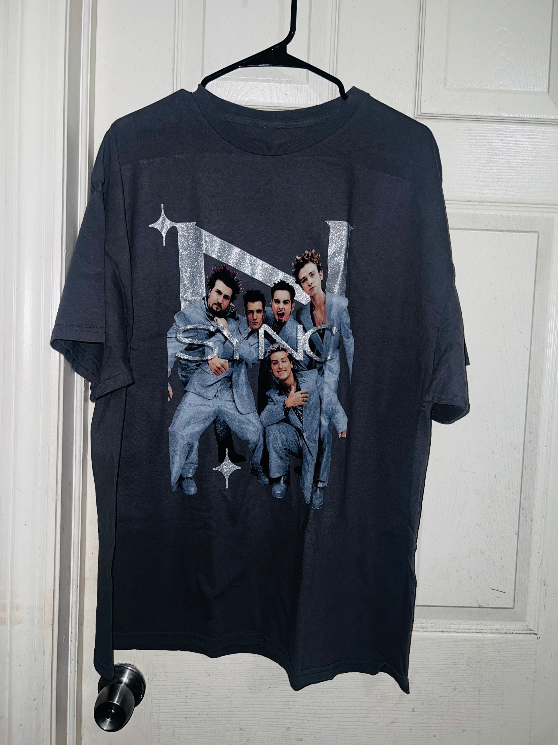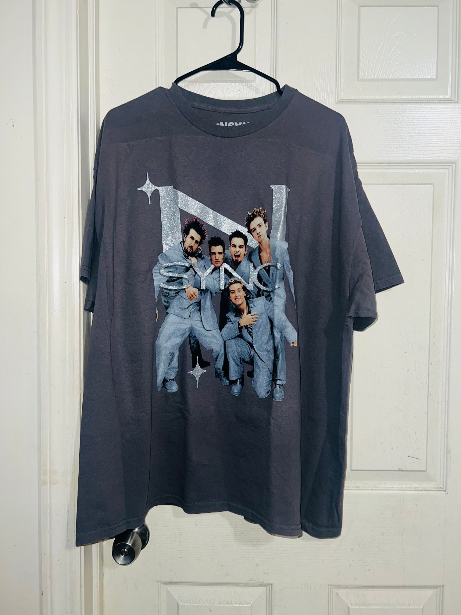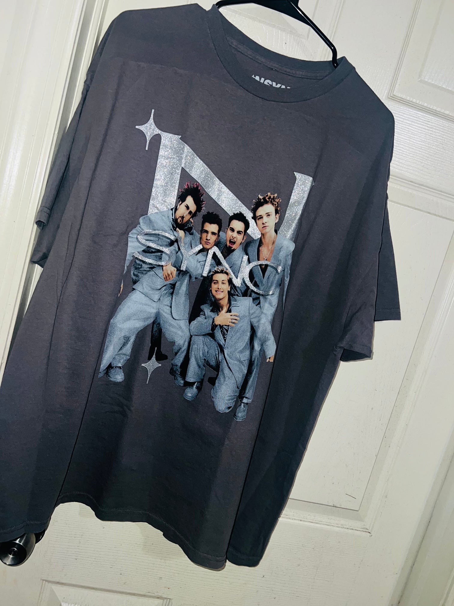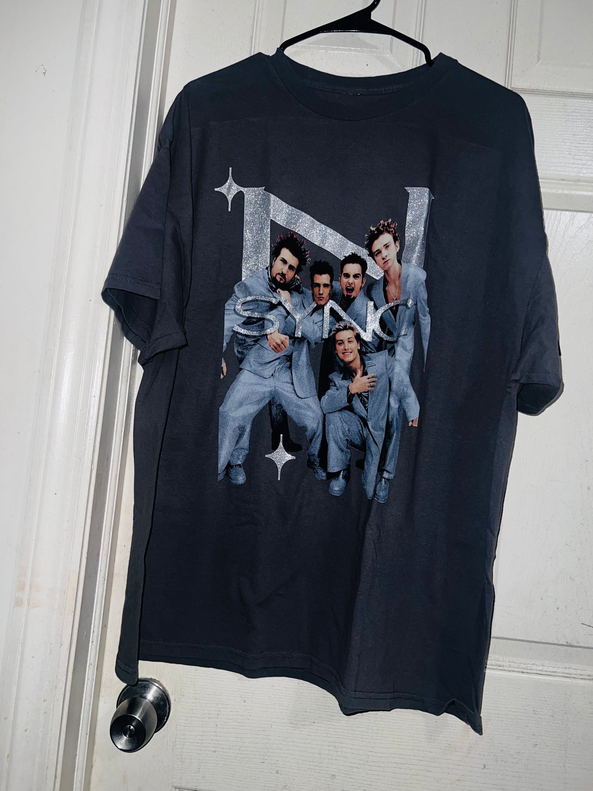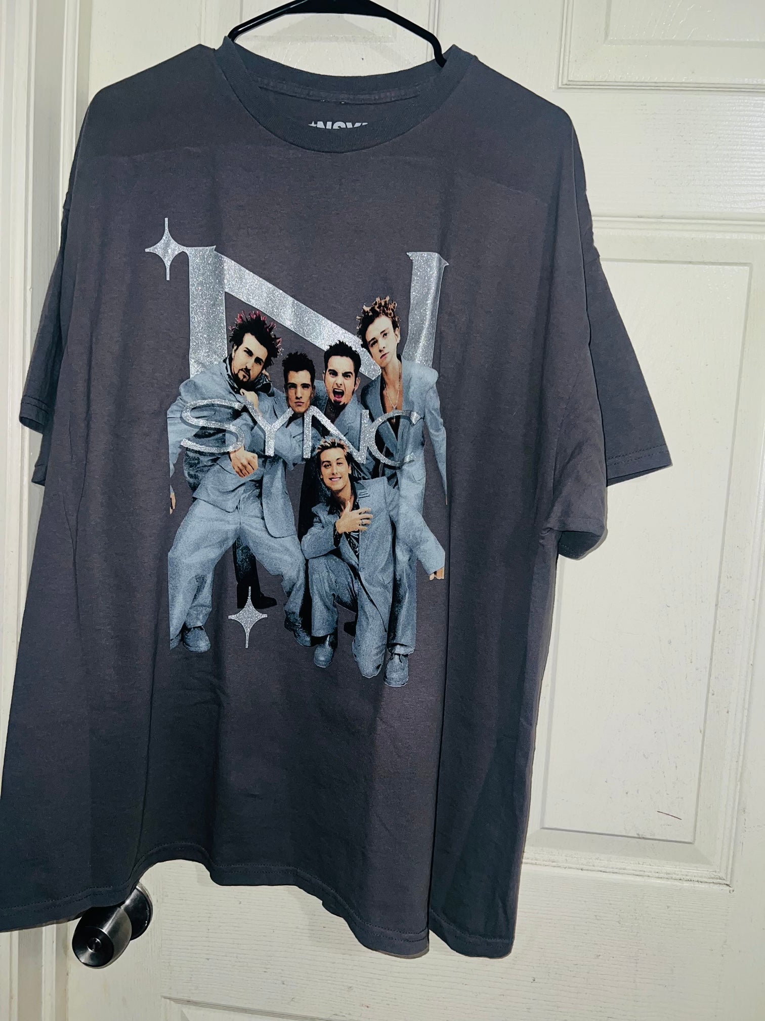 A grey NSYNC tee with a little sparkle contrast detail with our old favorite boy band on the front. Oversized, size XL.
