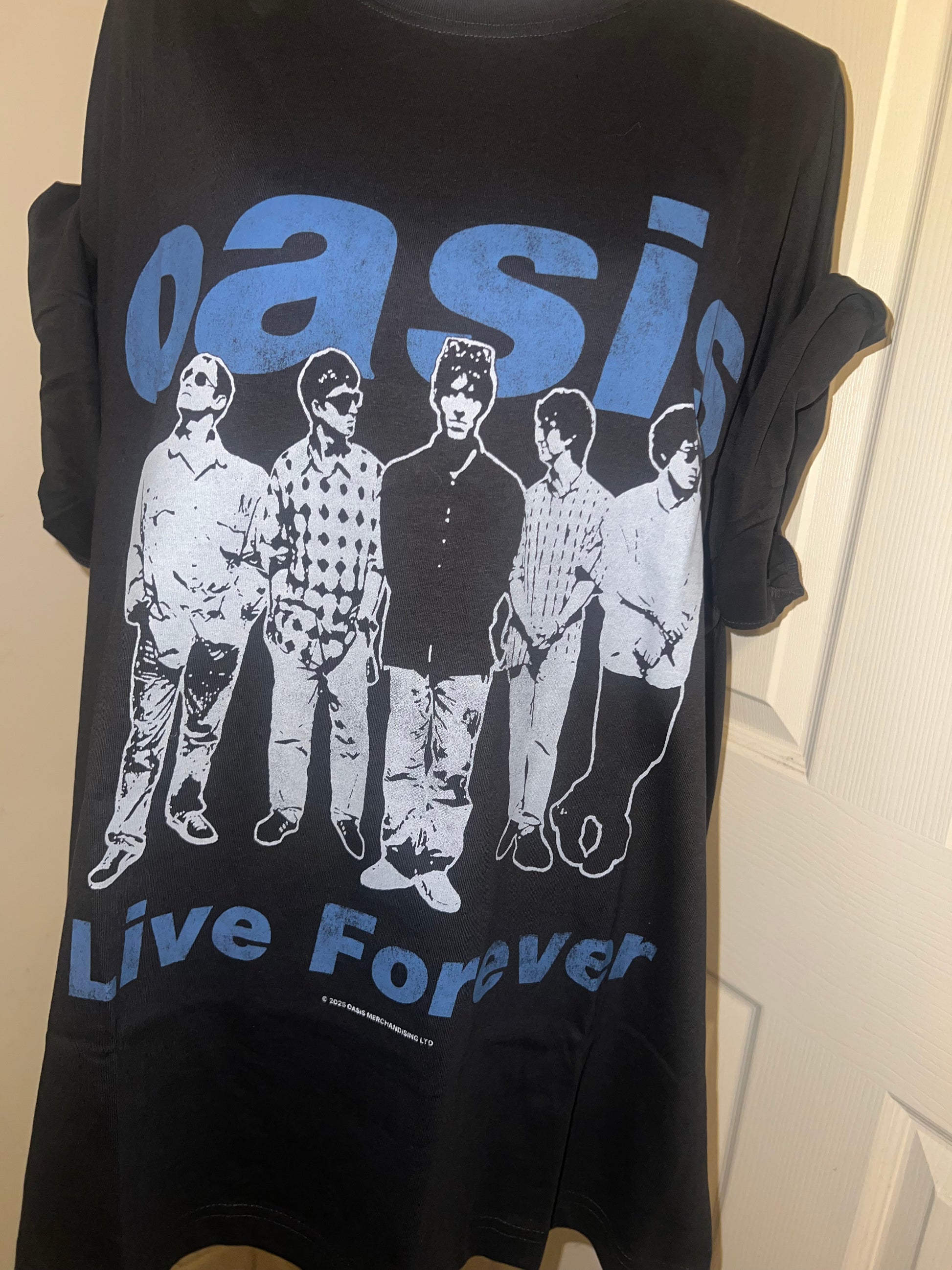 This is now a preorder. A dark charcoal grey Oasis Live Forever tee. Size XL, oversized.