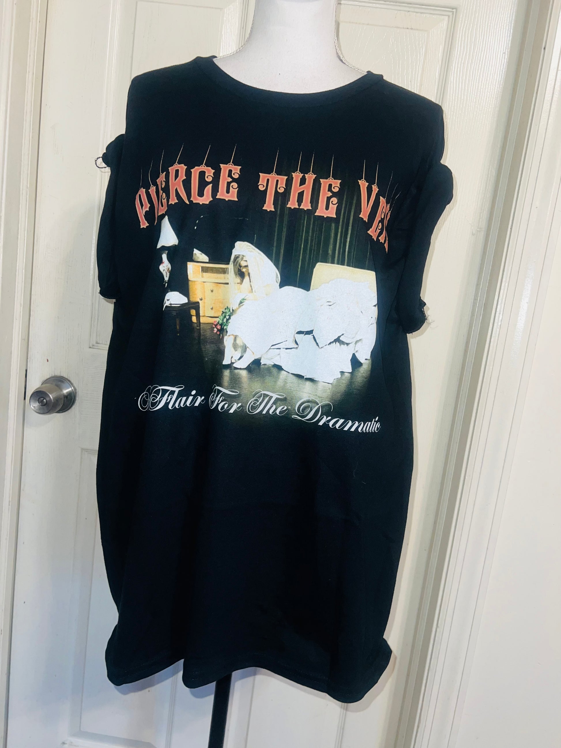 This is now a preorder. Please allow extra processing time. A black Pierce the Veil “Flare for the Dramatic” tee with a super sick graphic. Size XL, oversized.