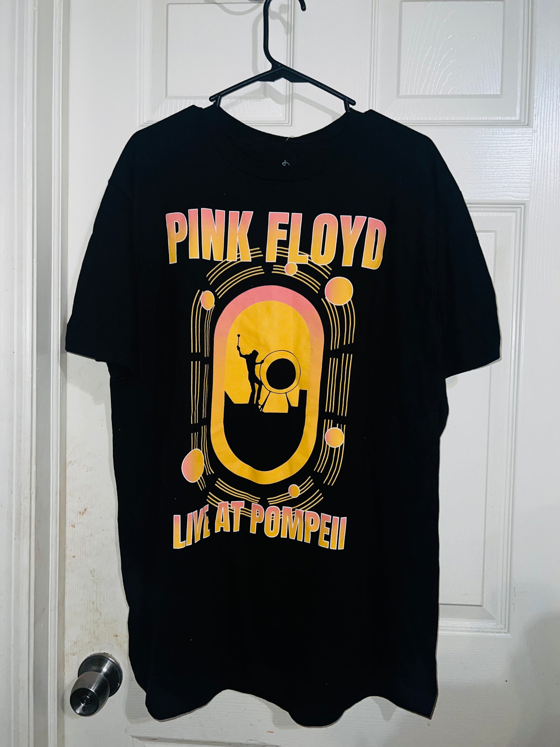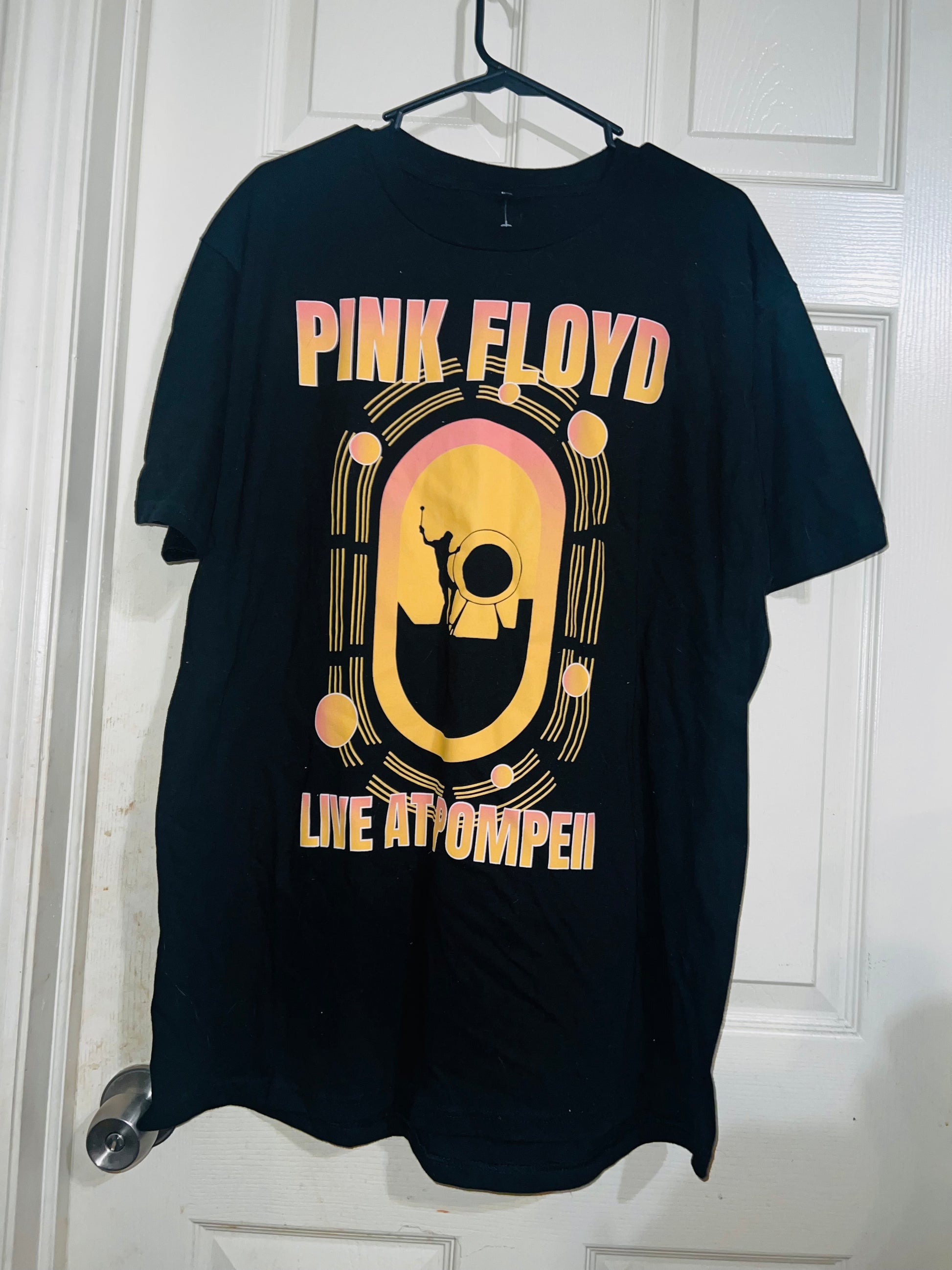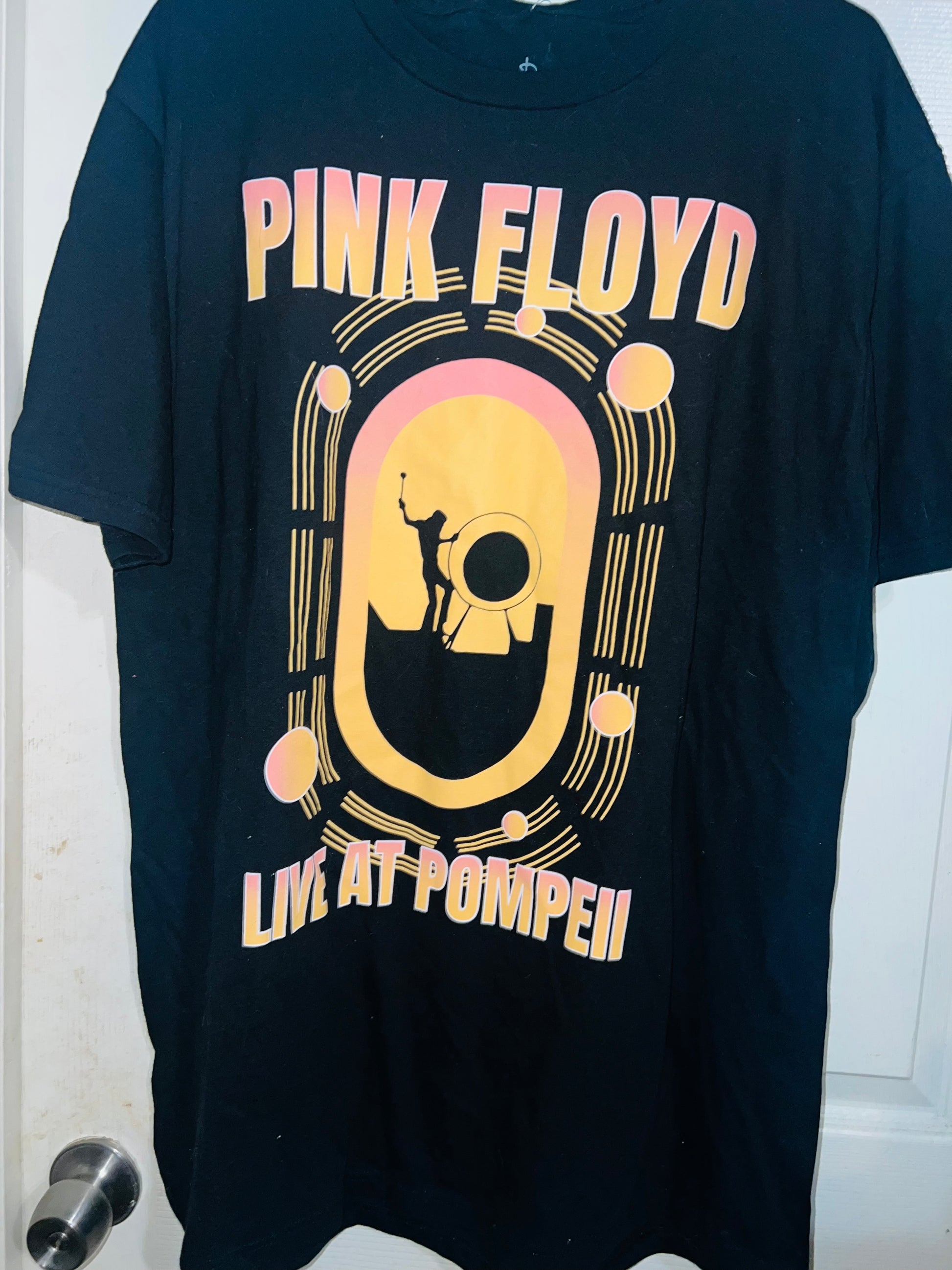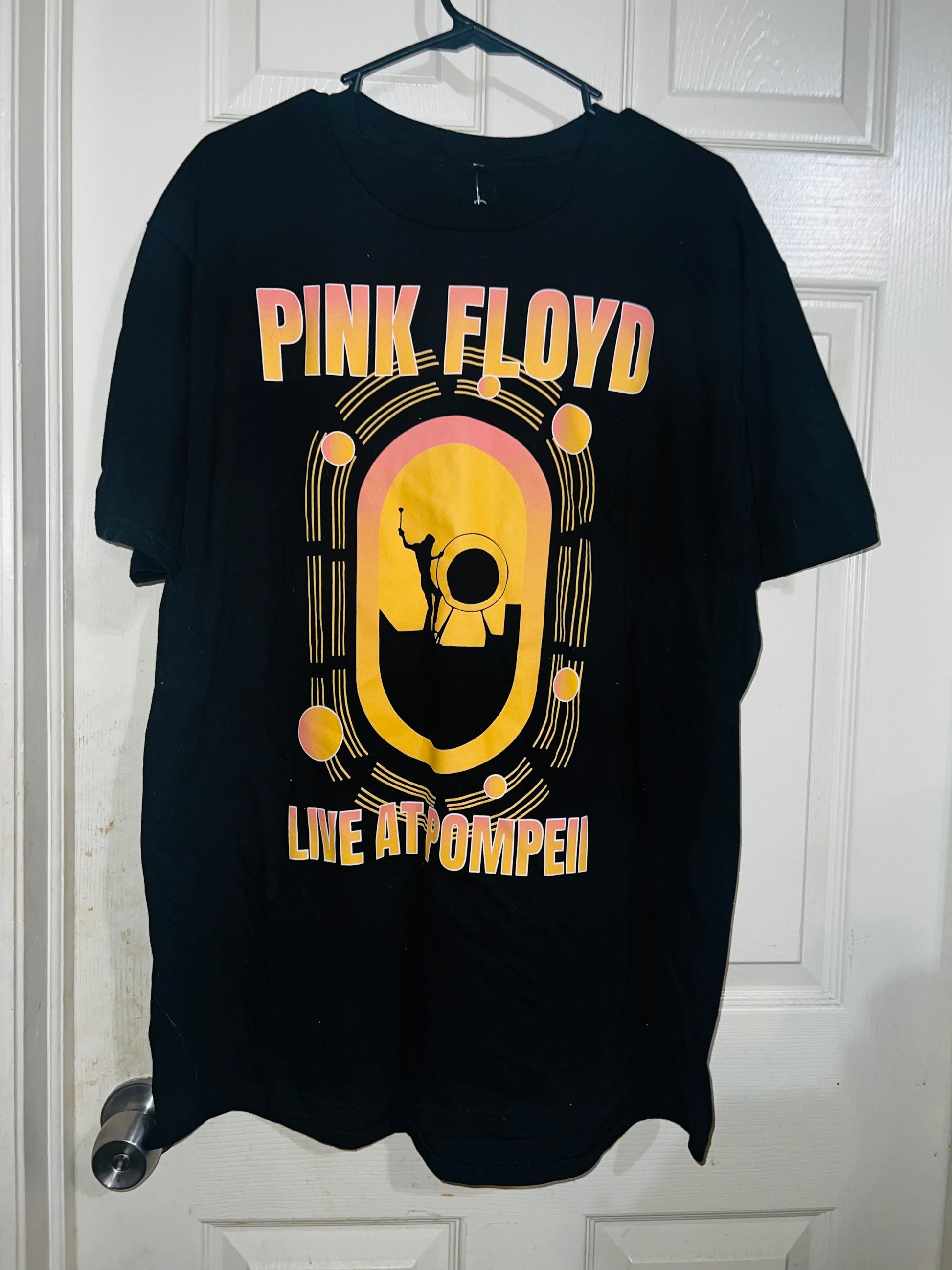 A black oversized, soft t-shirt with the Pink Floyd “Live from Pompeii” on the center with a cool graphic! Looks so cool distressed! Size XL!
