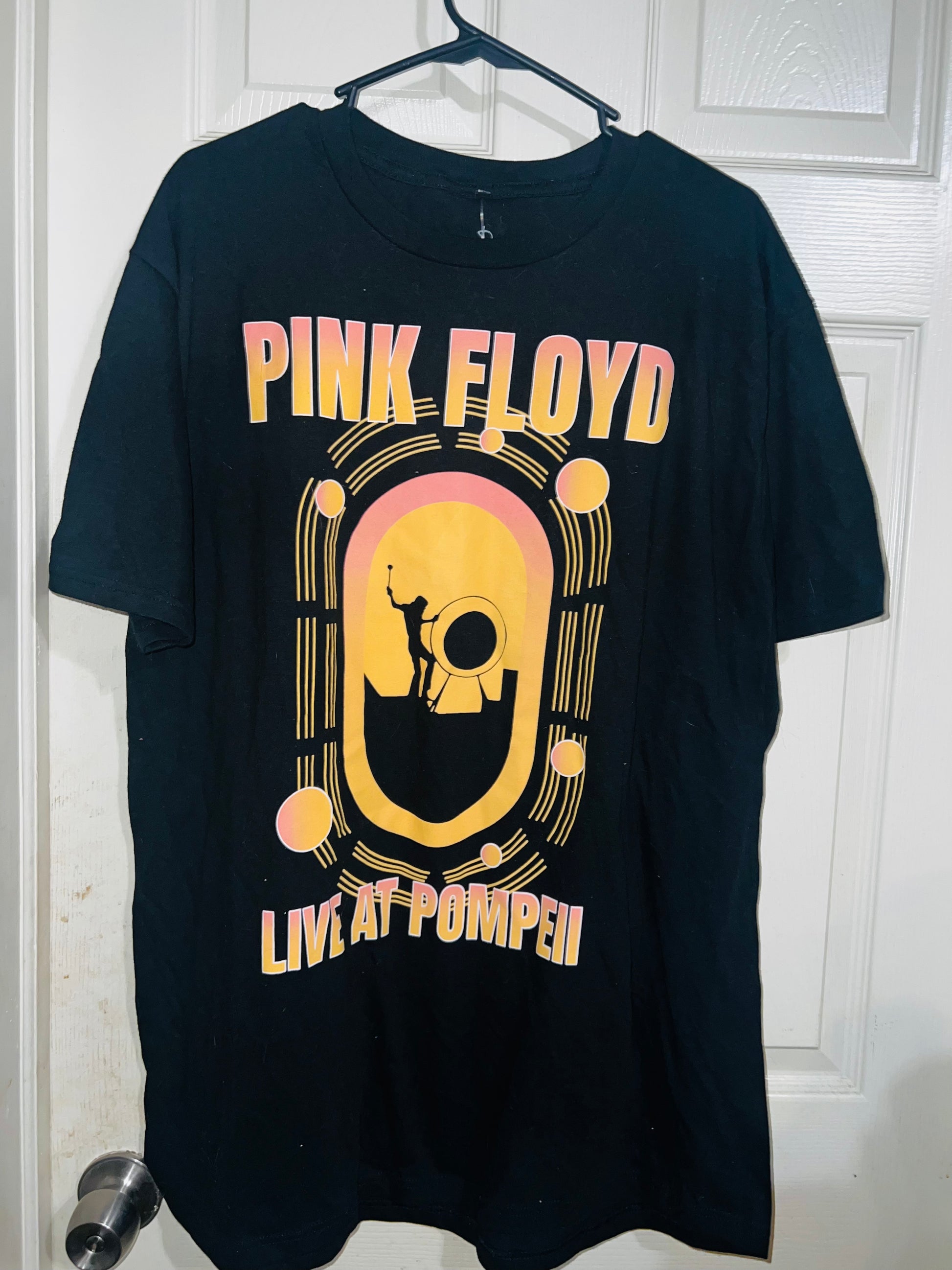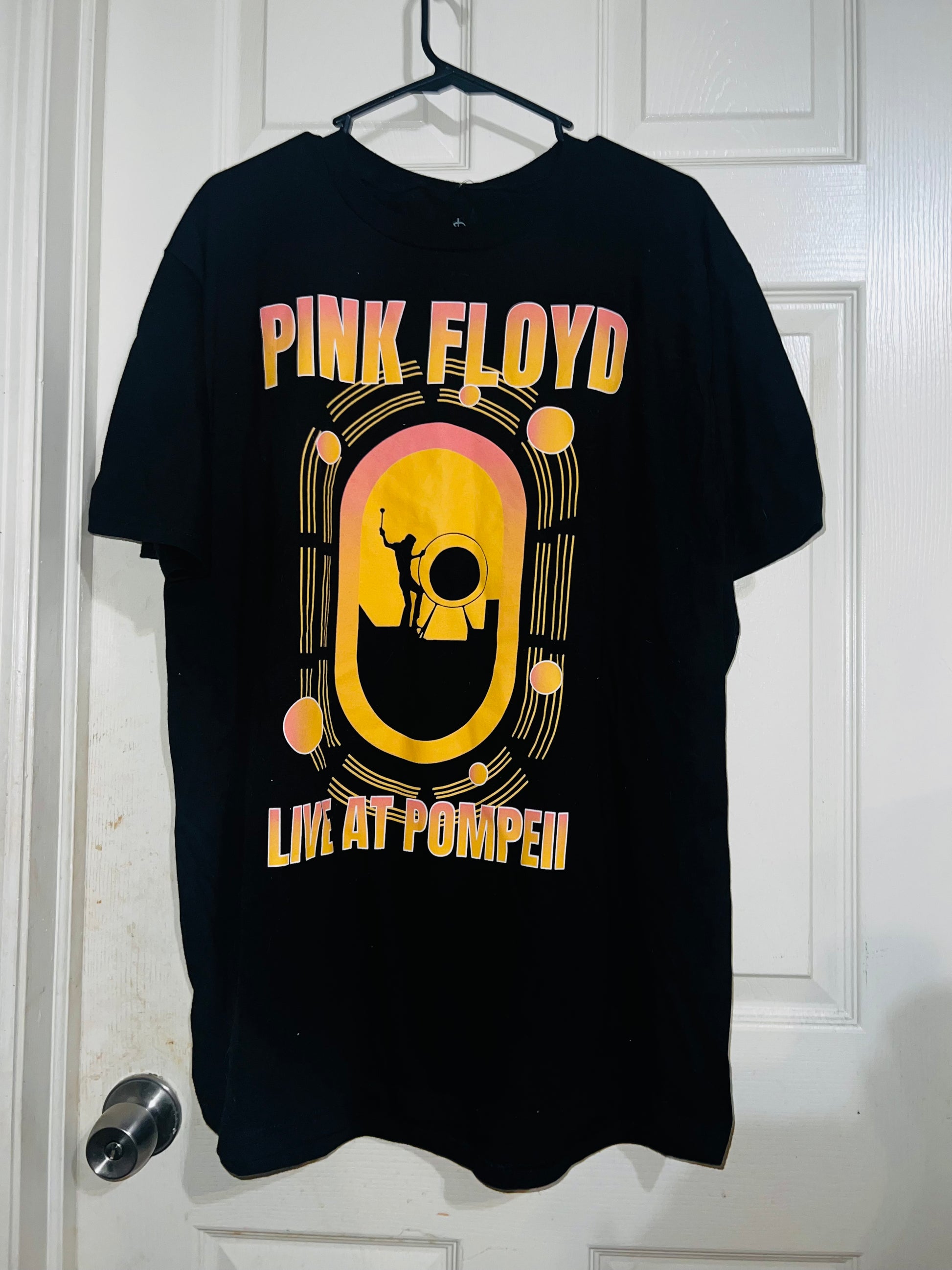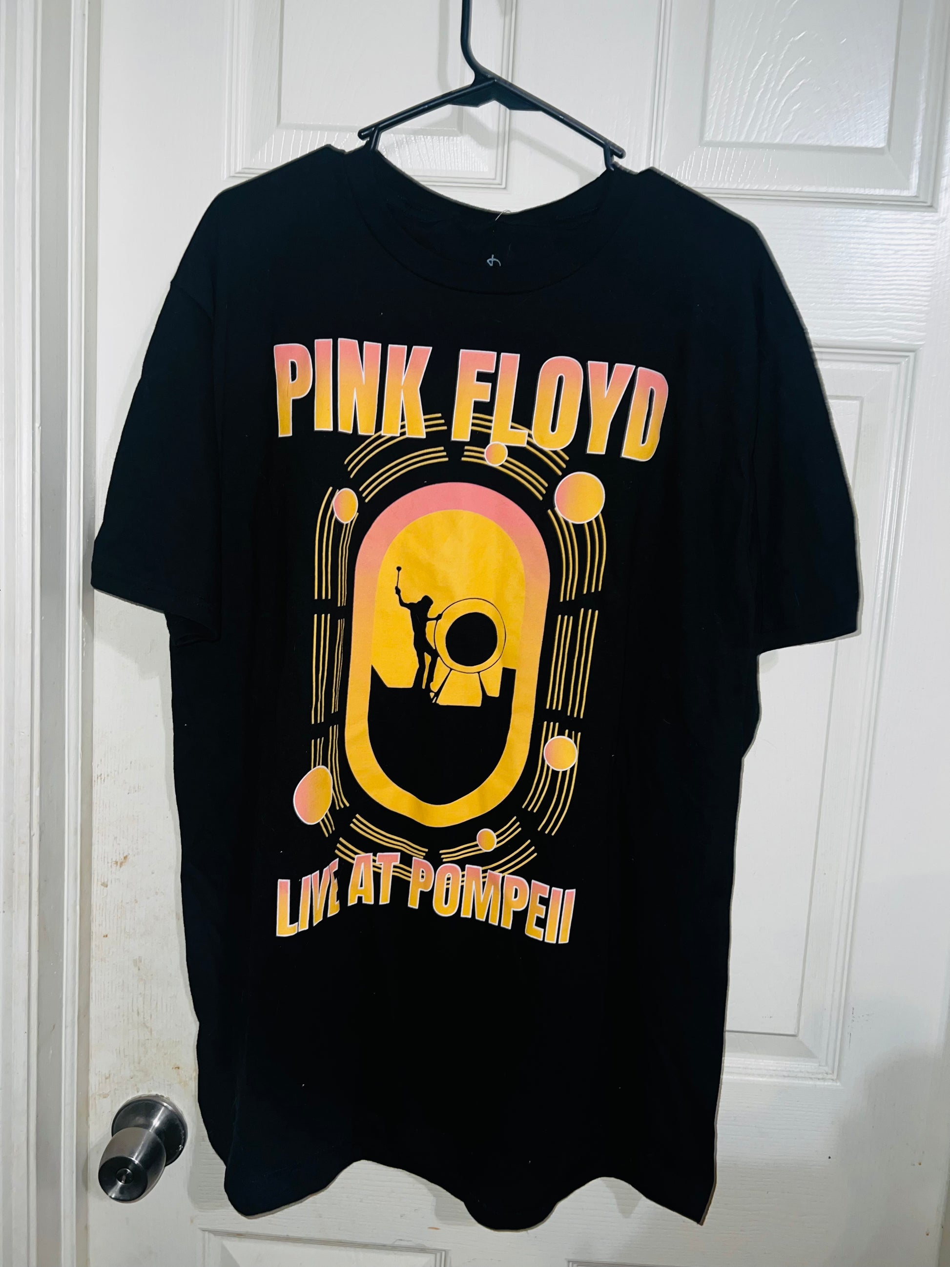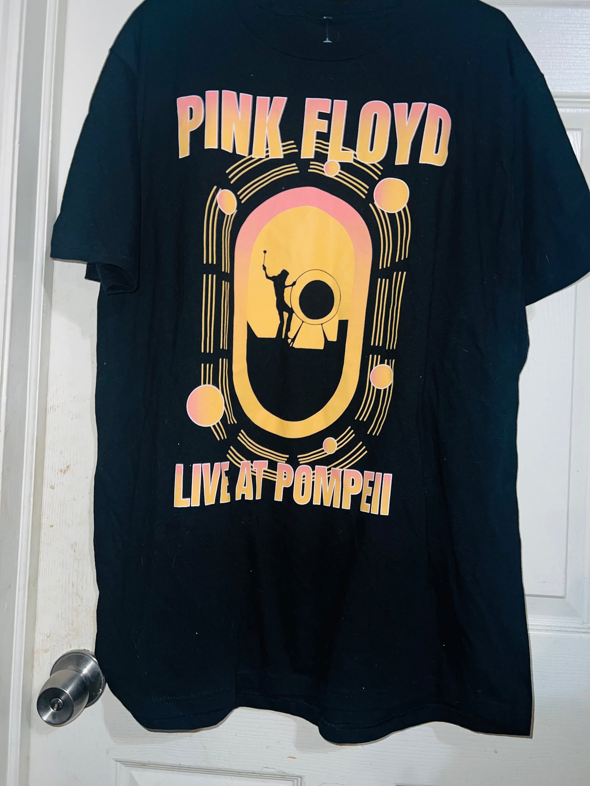 A black oversized, soft t-shirt with the Pink Floyd “Live from Pompeii” on the center with a cool graphic! Looks so cool distressed! Size XL!