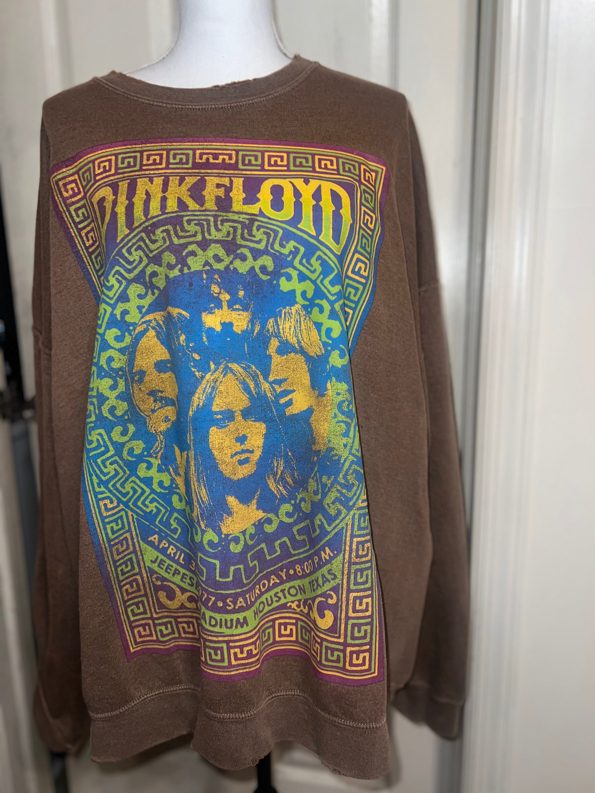 This is a preorder. Please allow extra processing time for shipping. A brown oversized Pink Floyd sweatshirt with some light distressing around the edges. So comfy & oversized. Size L/XL.