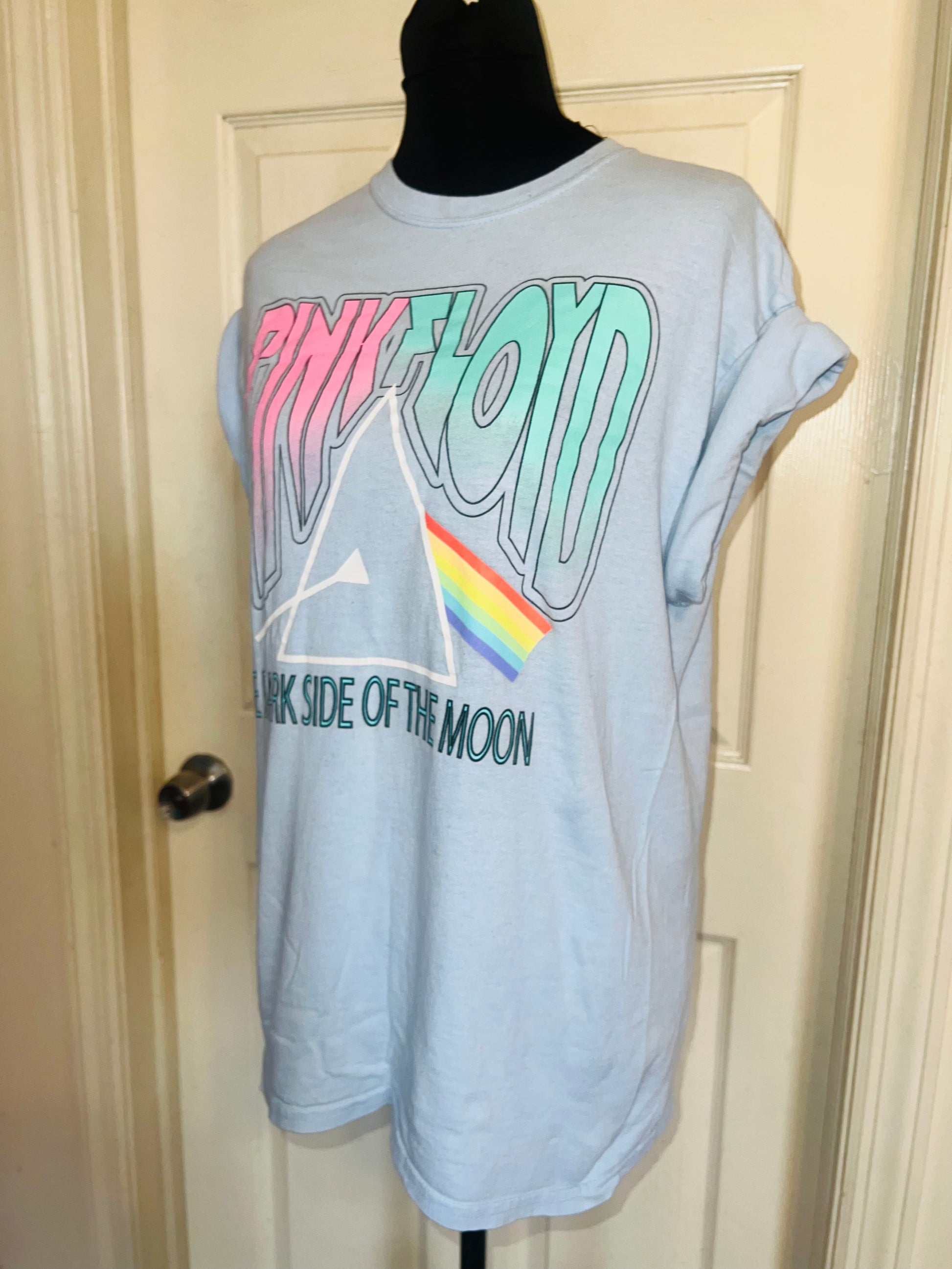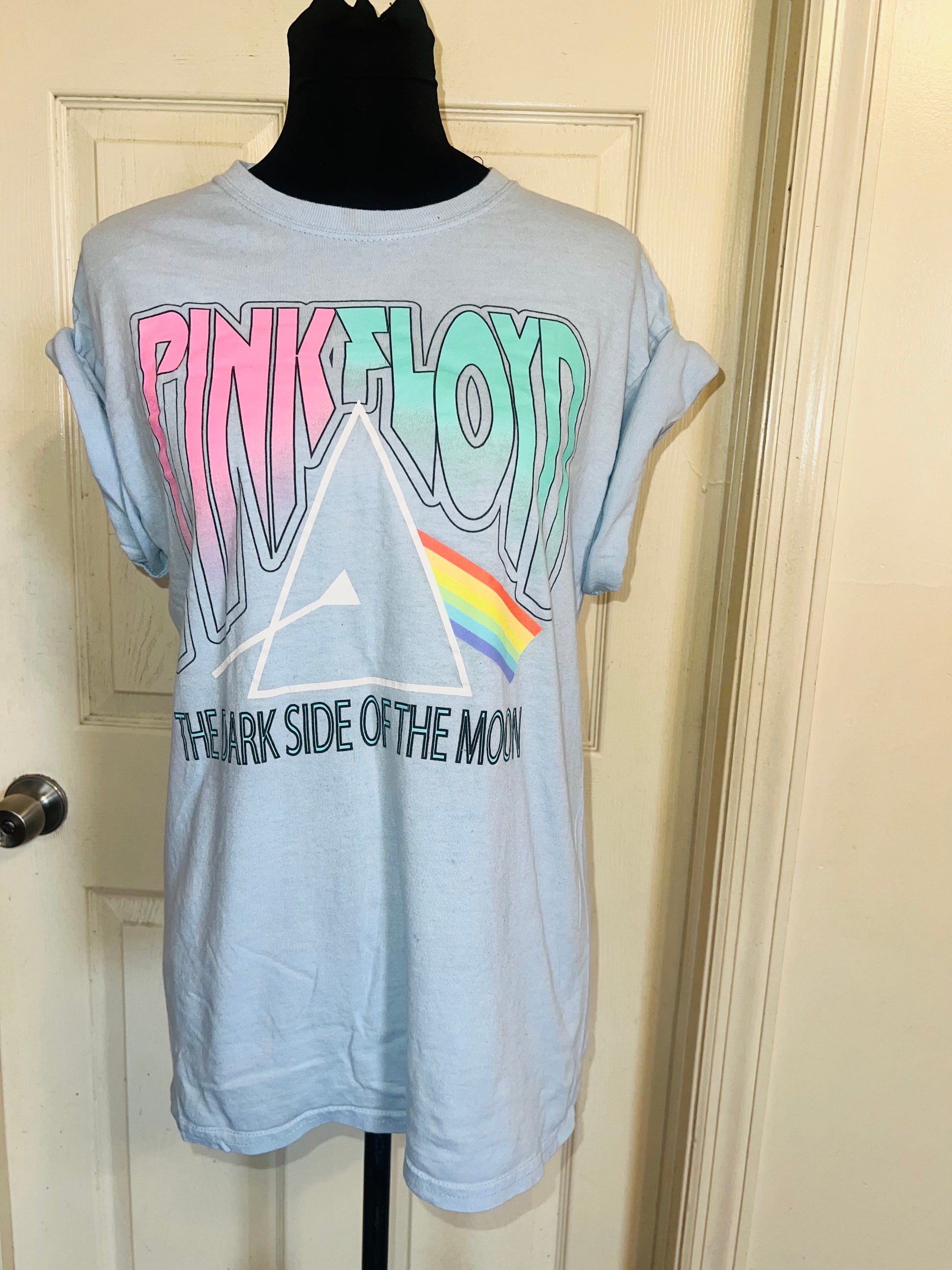 A pale light blue Pink Floyd “Dark Side of the Moon” tee from a vintage shop! Size M/L, a bit oversized.