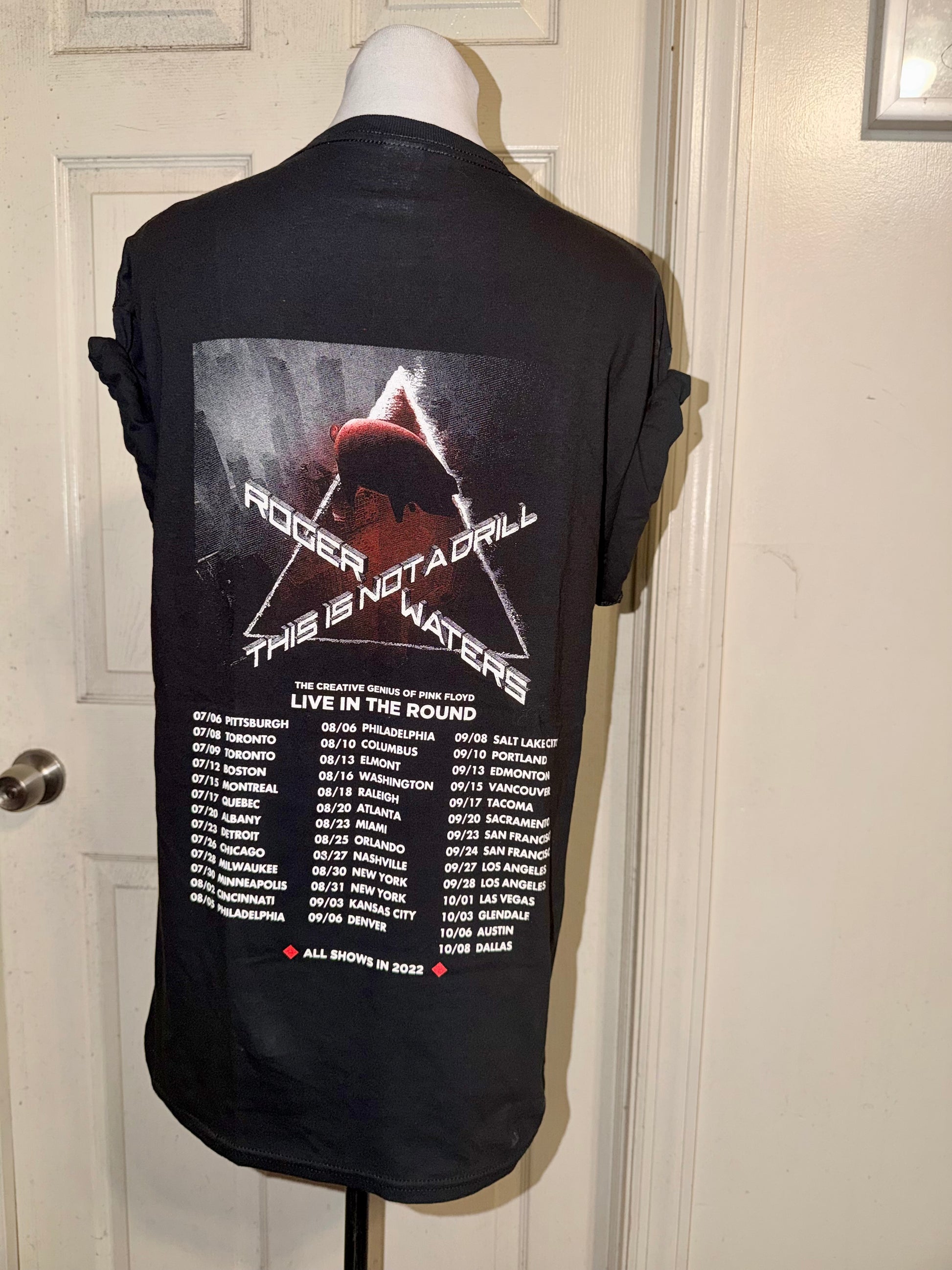 A black Pink Floyd Roger Waters 2022 double sided This is Not a Drill tee. Oversized.