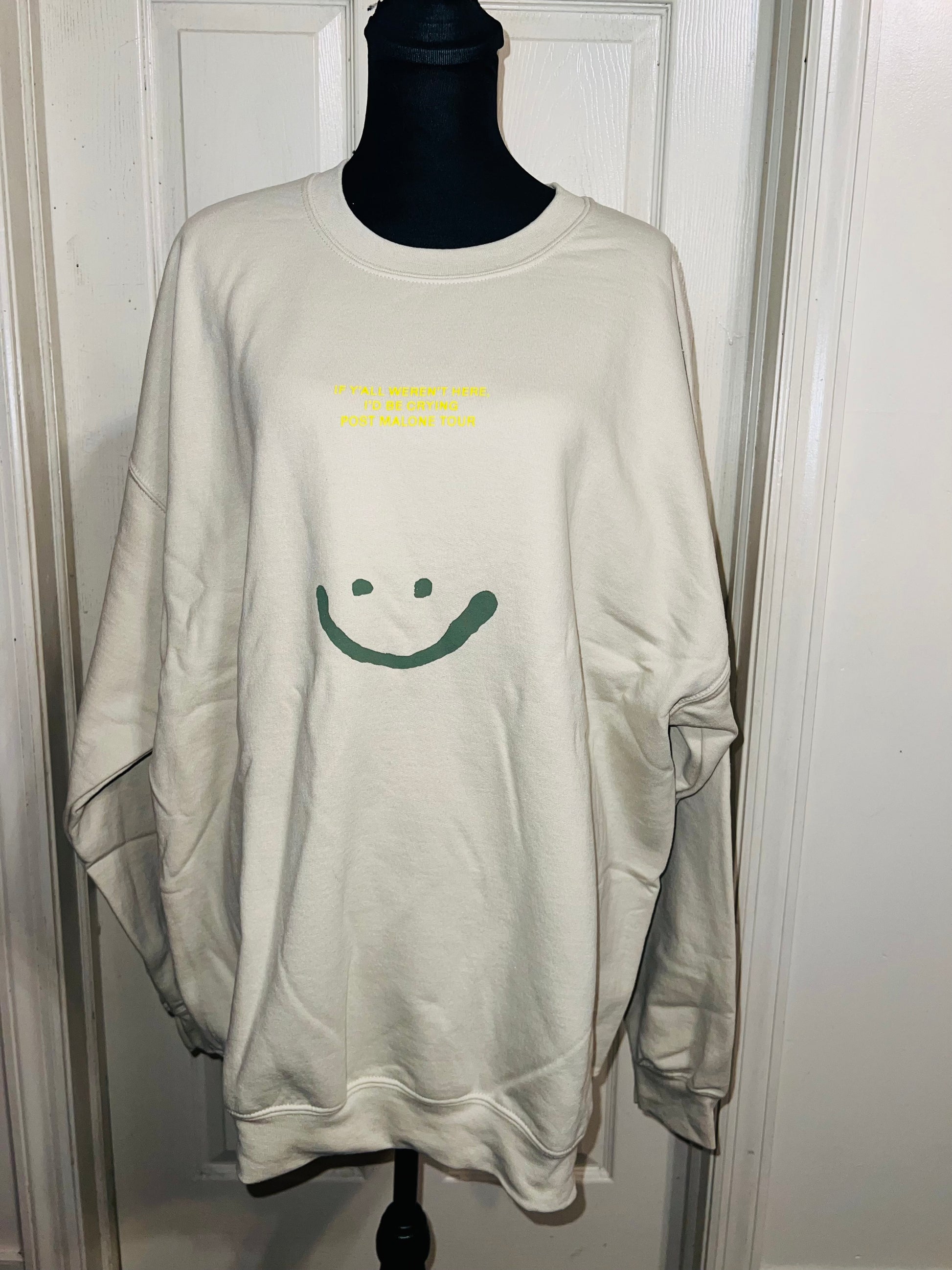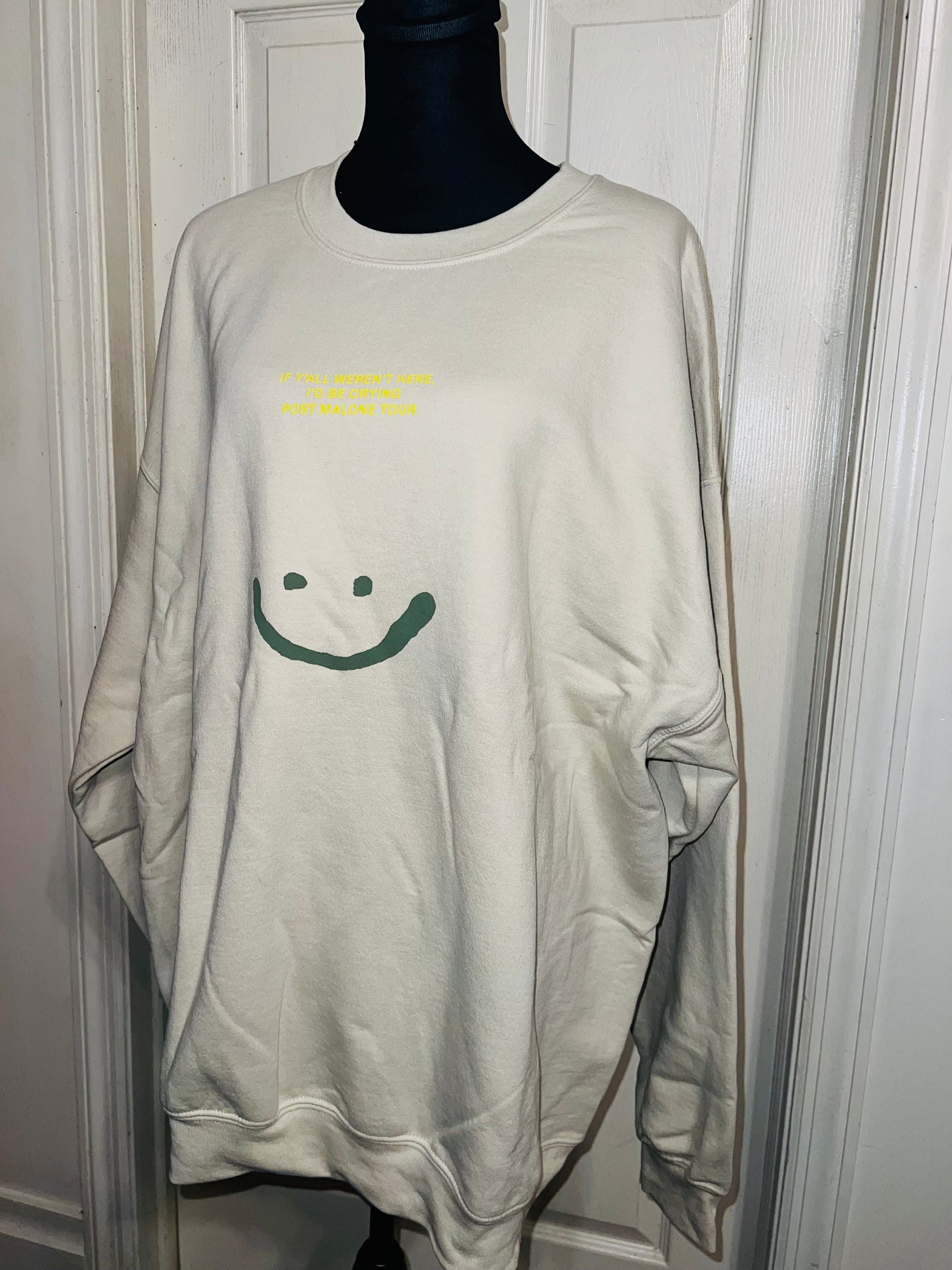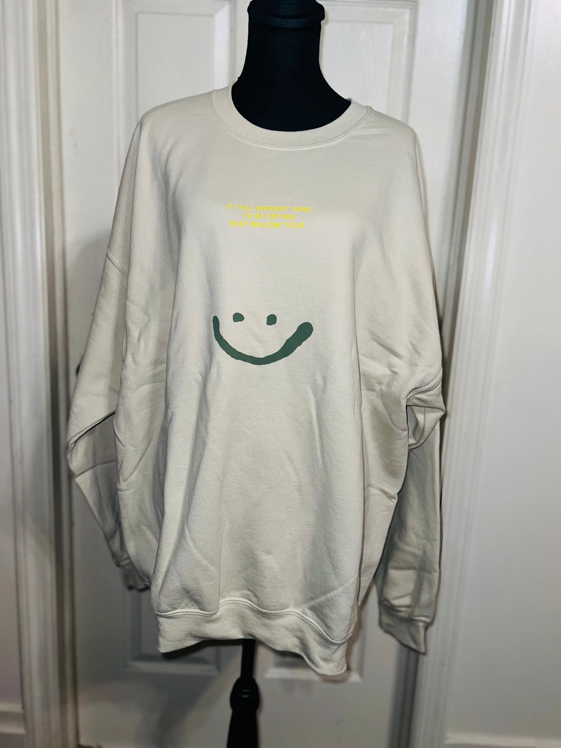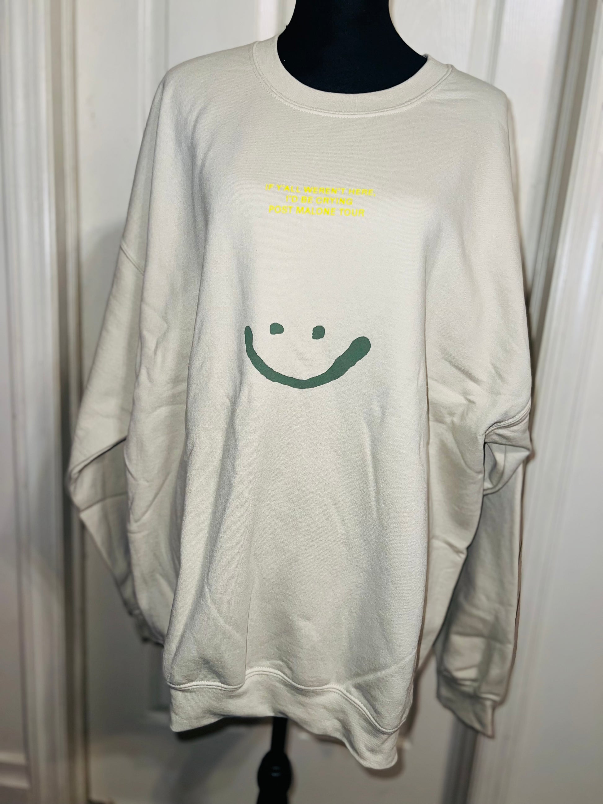 This is now a preorder. Please allow extra processing time. A beige/tan Post Malone tour sweatshirt. “If yall weren’t here, I’d be crying.” On the back has the usual Post Malone graphic at the top. Size XL, oversized. SO soft and comfortable.