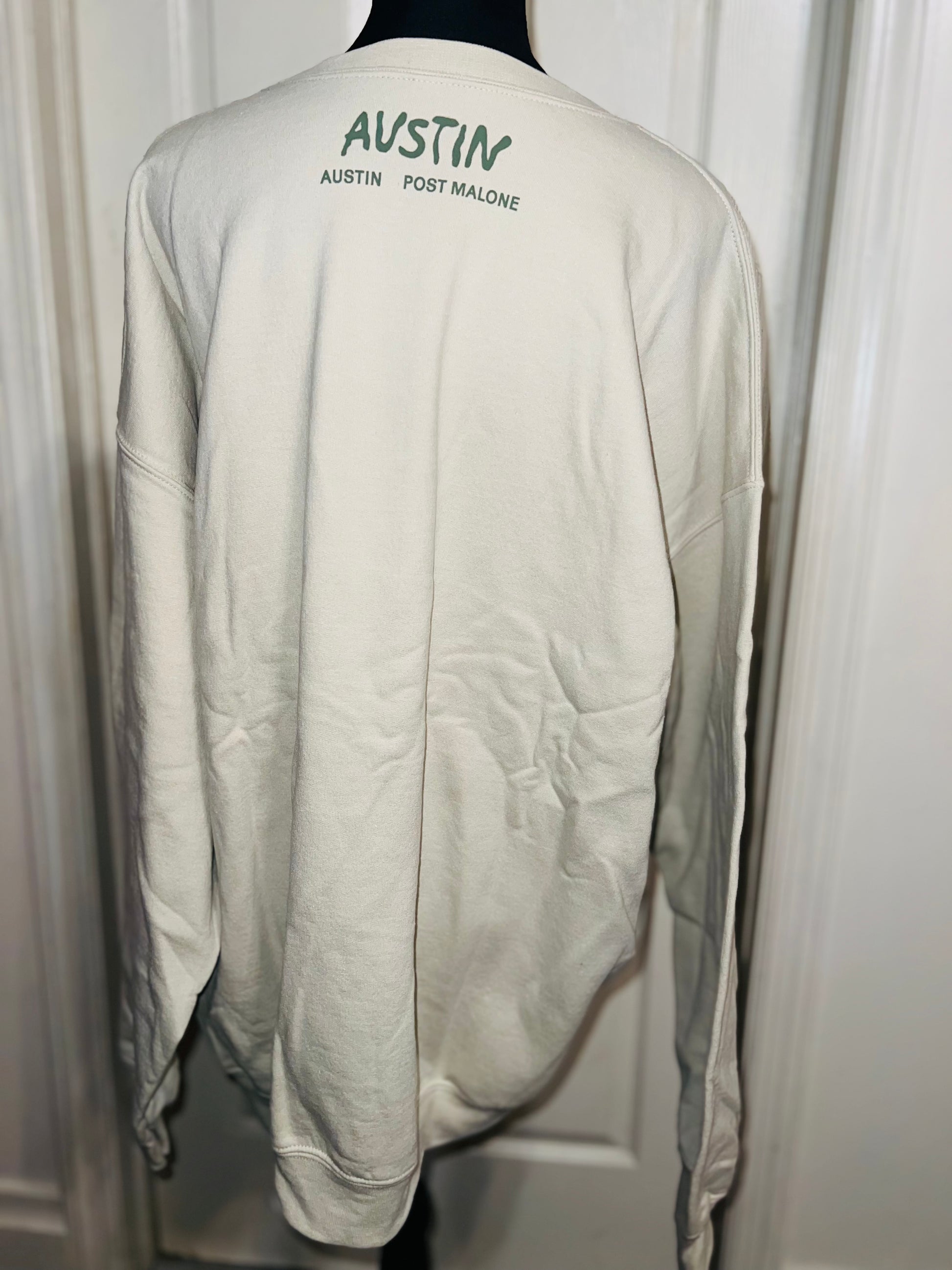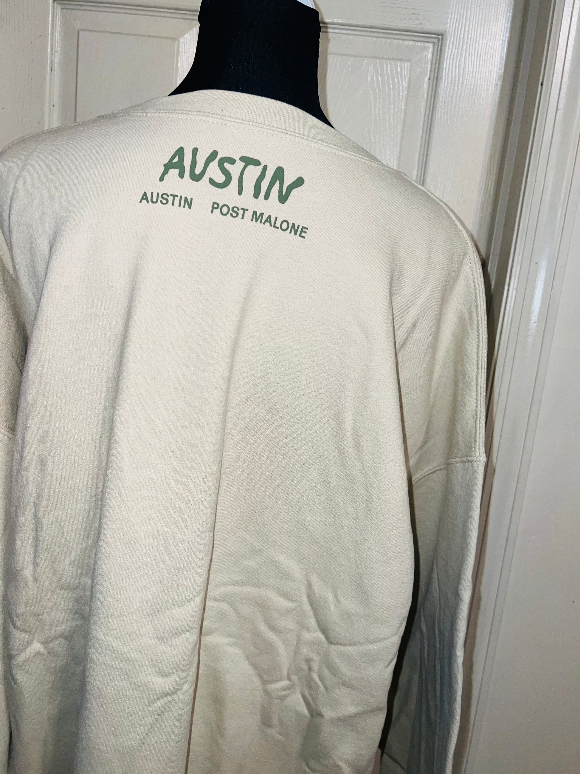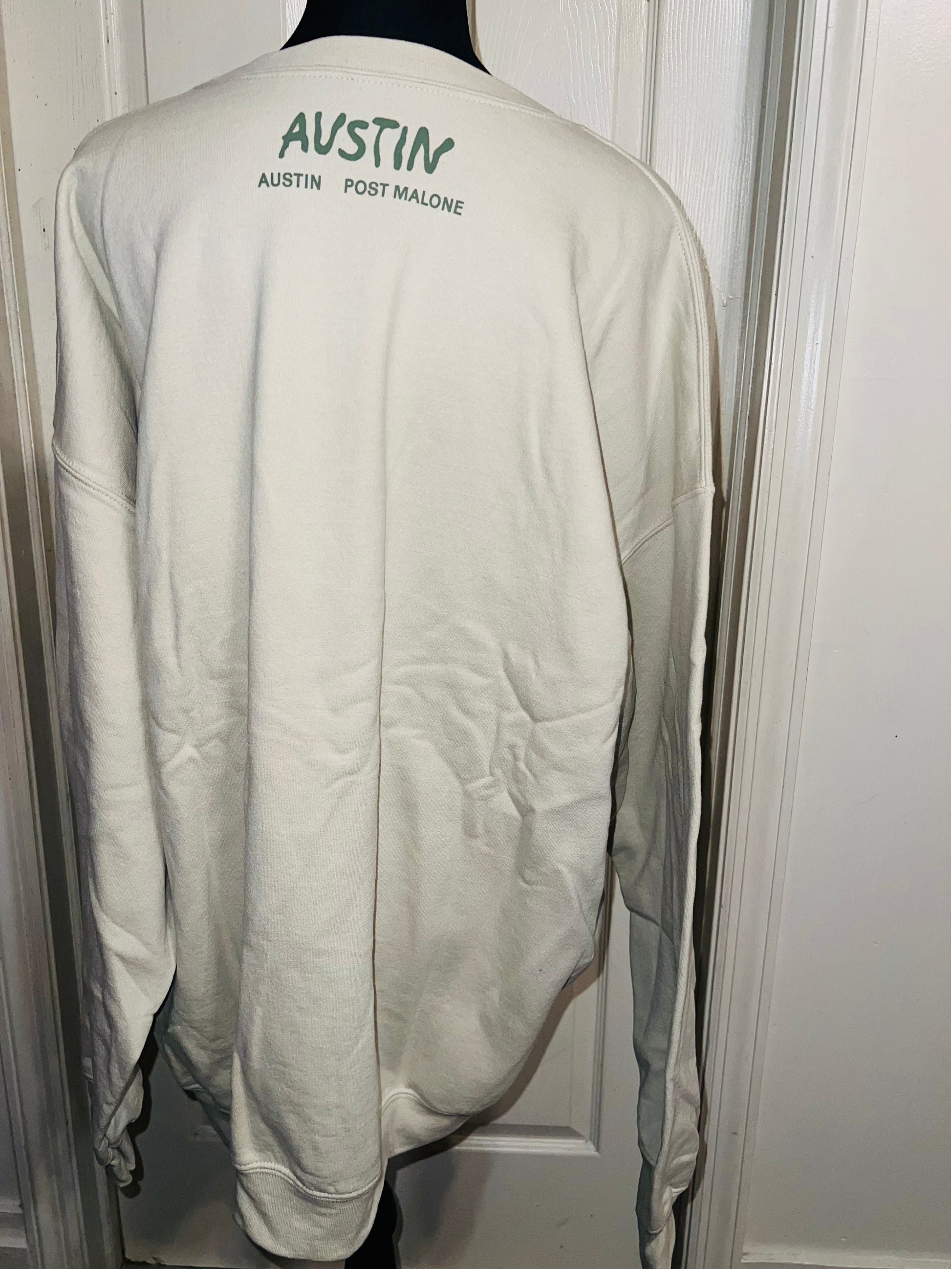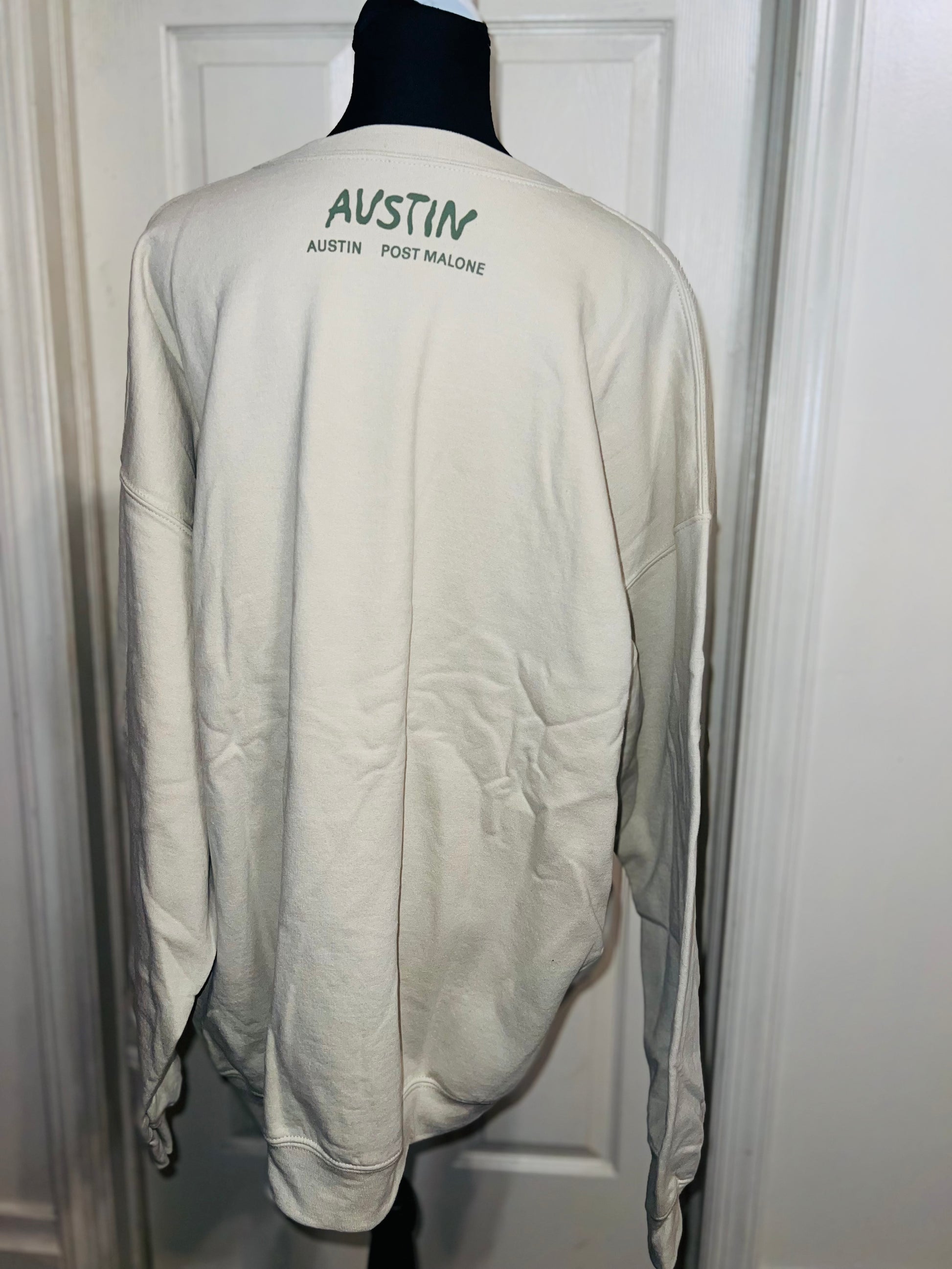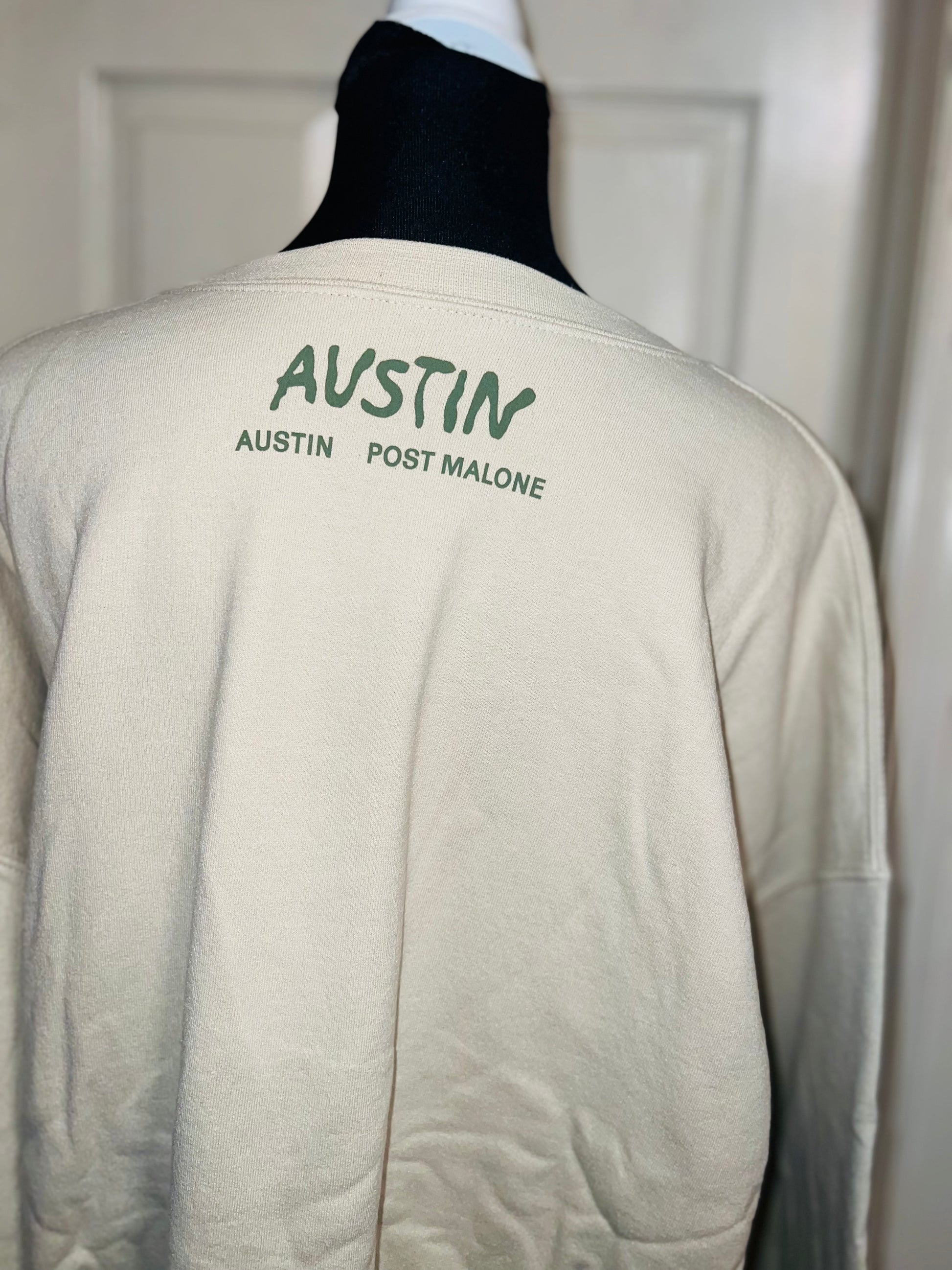 This is now a preorder. Please allow extra processing time. A beige/tan Post Malone tour sweatshirt. “If yall weren’t here, I’d be crying.” On the back has the usual Post Malone graphic at the top. Size XL, oversized. SO soft and comfortable.