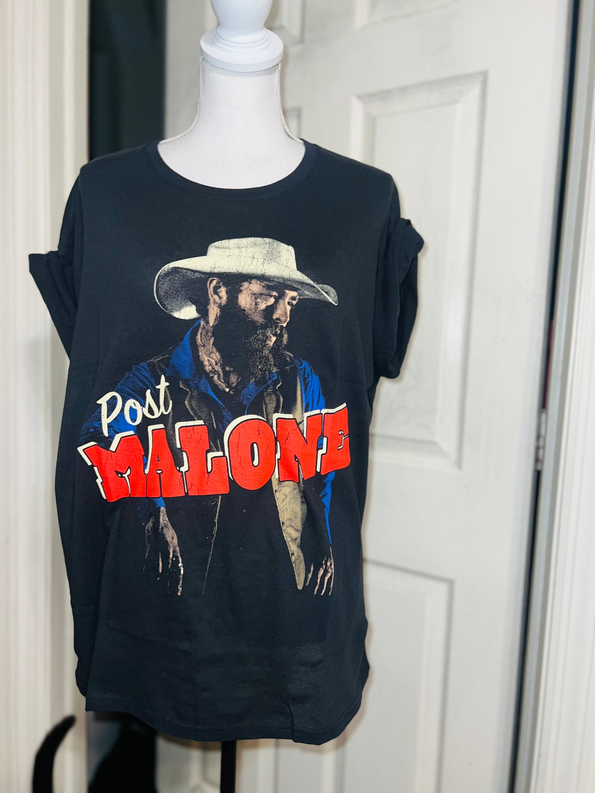 A black Post Malone tee with Posty on the front. Super soft and comfy material. Size XL, oversized but not super long.