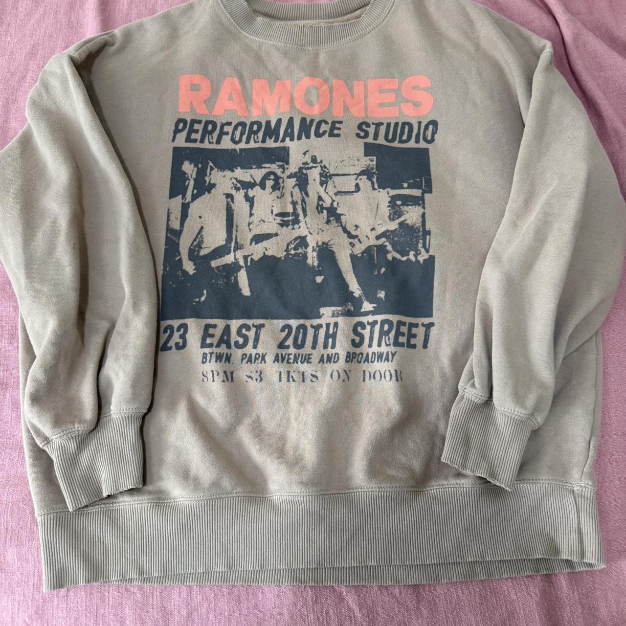 This is now a preorder. Please allow extra processing time. A tan Ramones sweatshirt with a concert flyer and date and the band. Super comfortable and oversized. Amazing quality, size M/L. super overlarged.