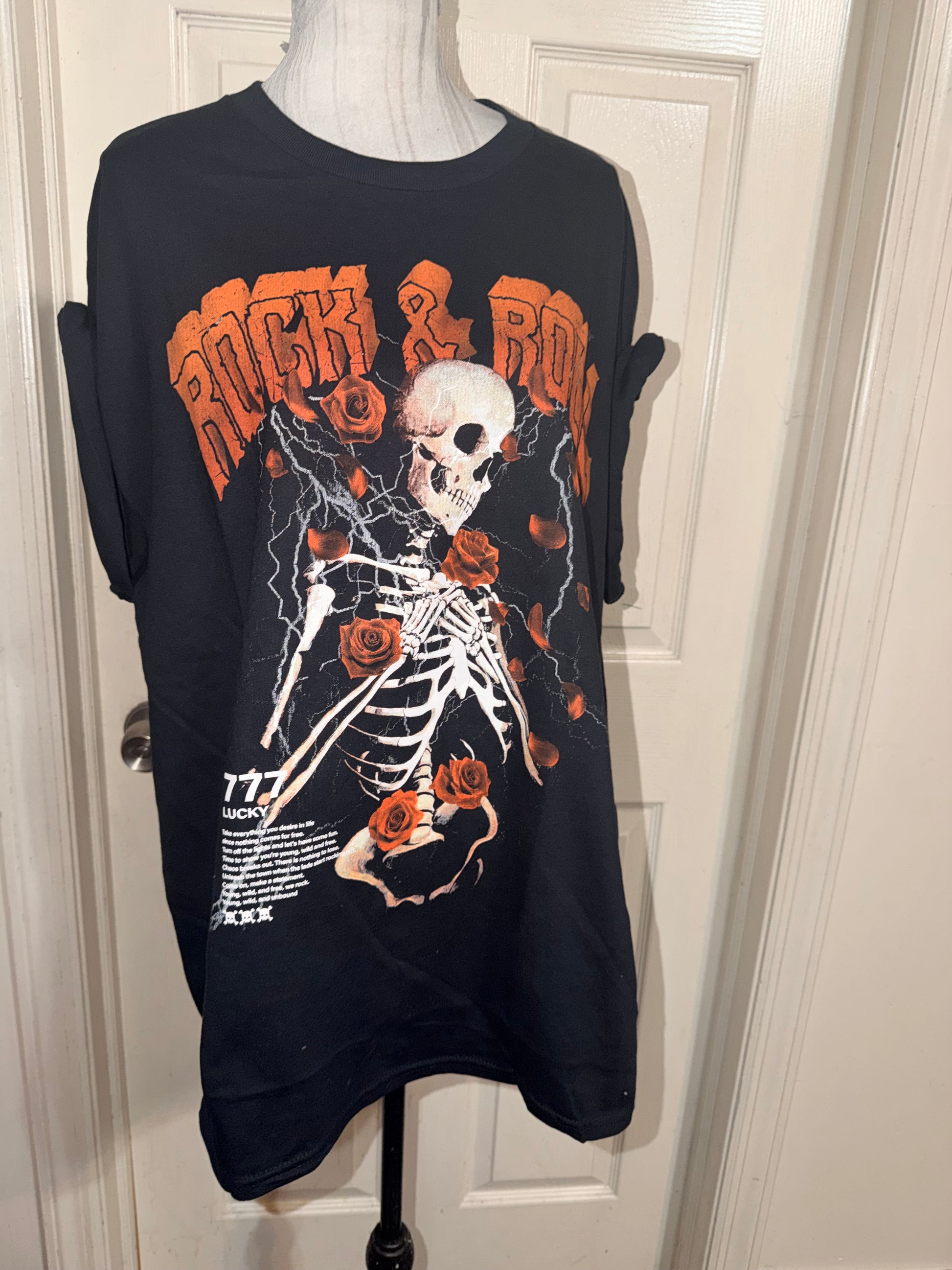 A black rock n roll tee with a really cool paragraph at the bottom about living wild & free. Oversized.