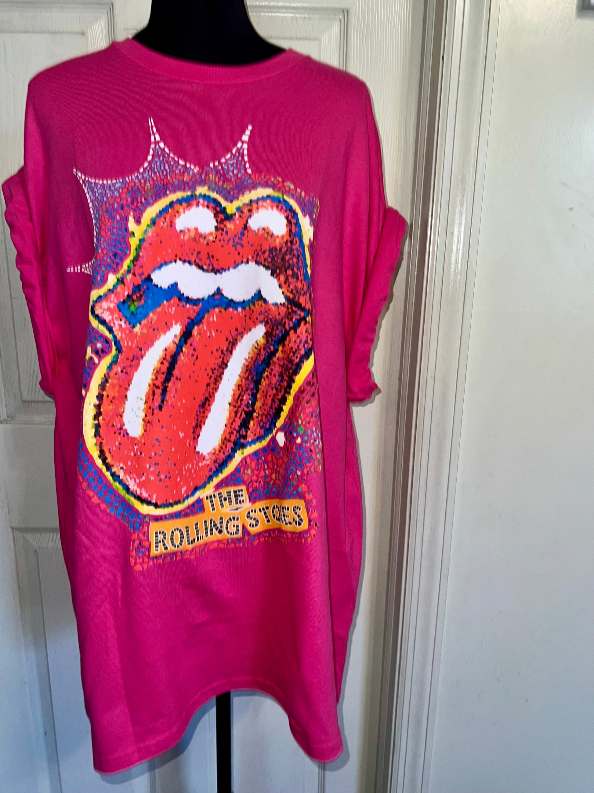 A magenta Rolling Stones tee with a sick graphic on the front. Size L/XL, oversized.