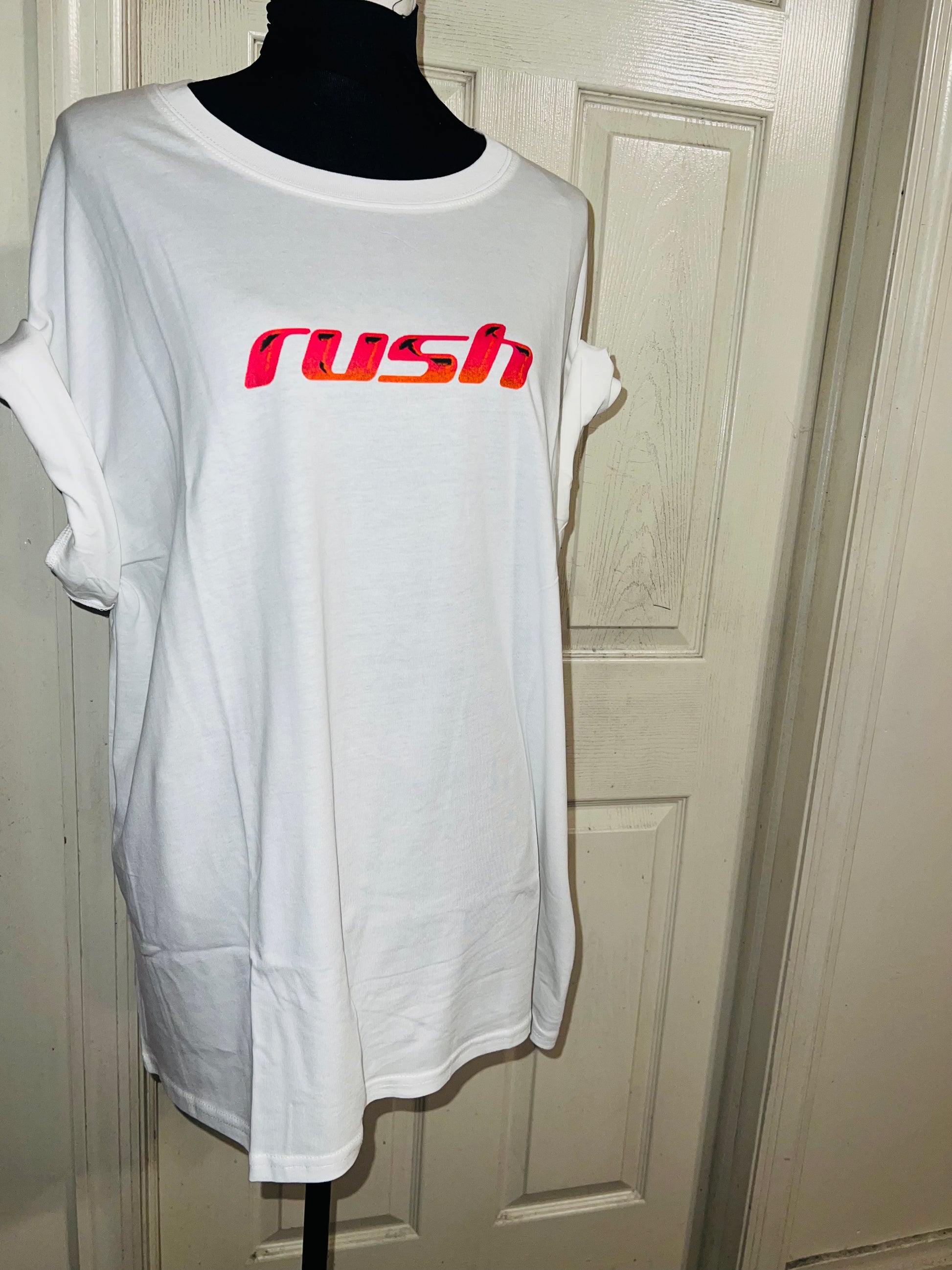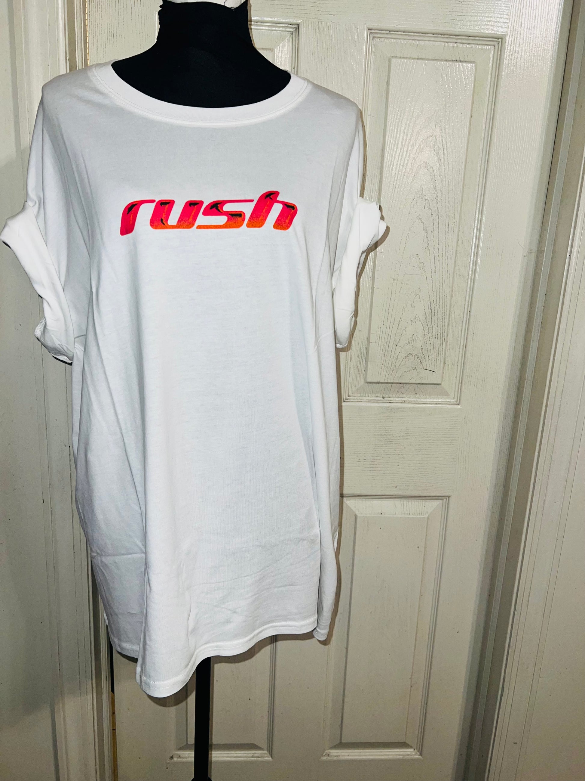 A white Rush double sided tee with an amazing graphic on the back. Size XL, oversized.