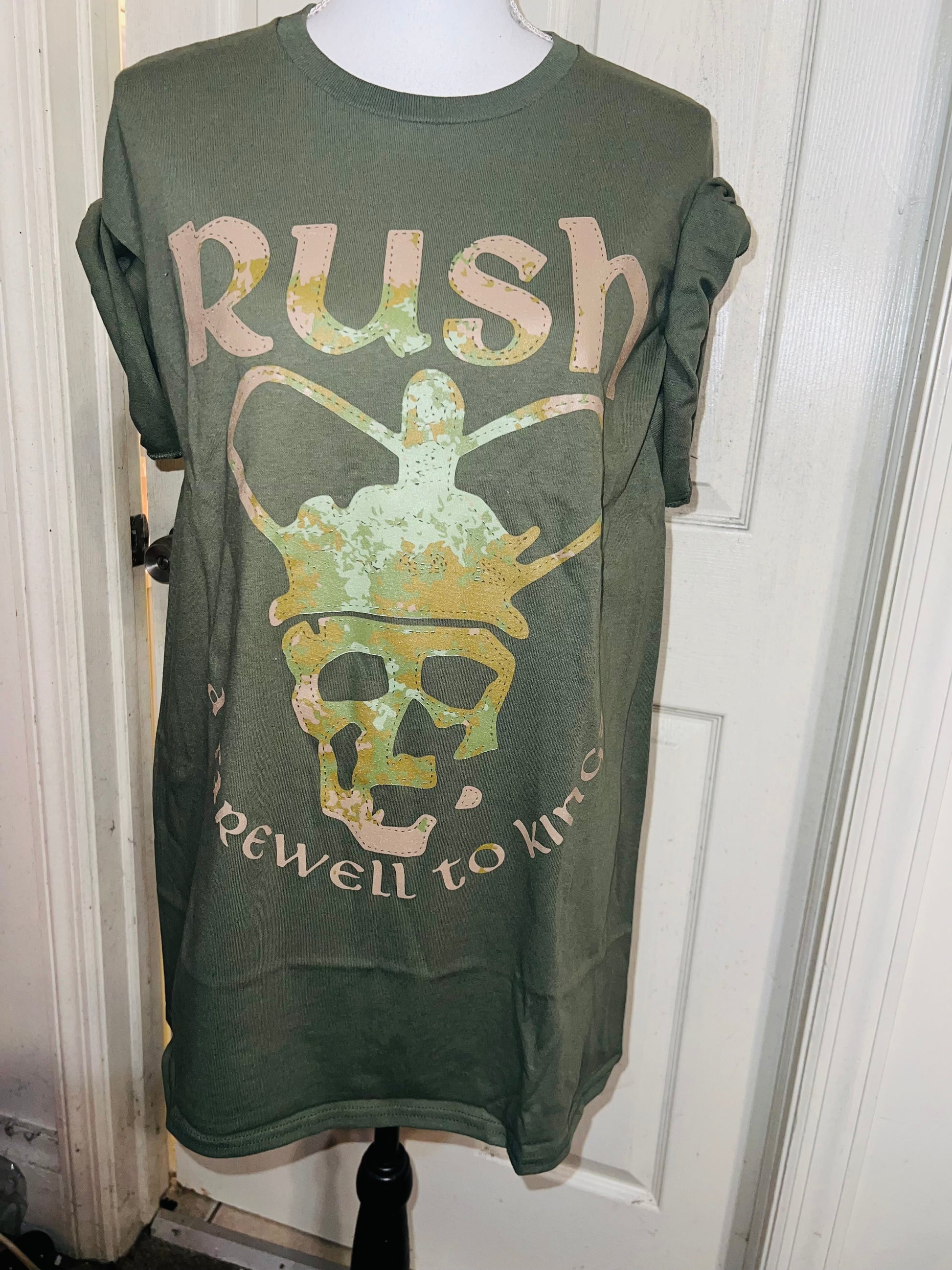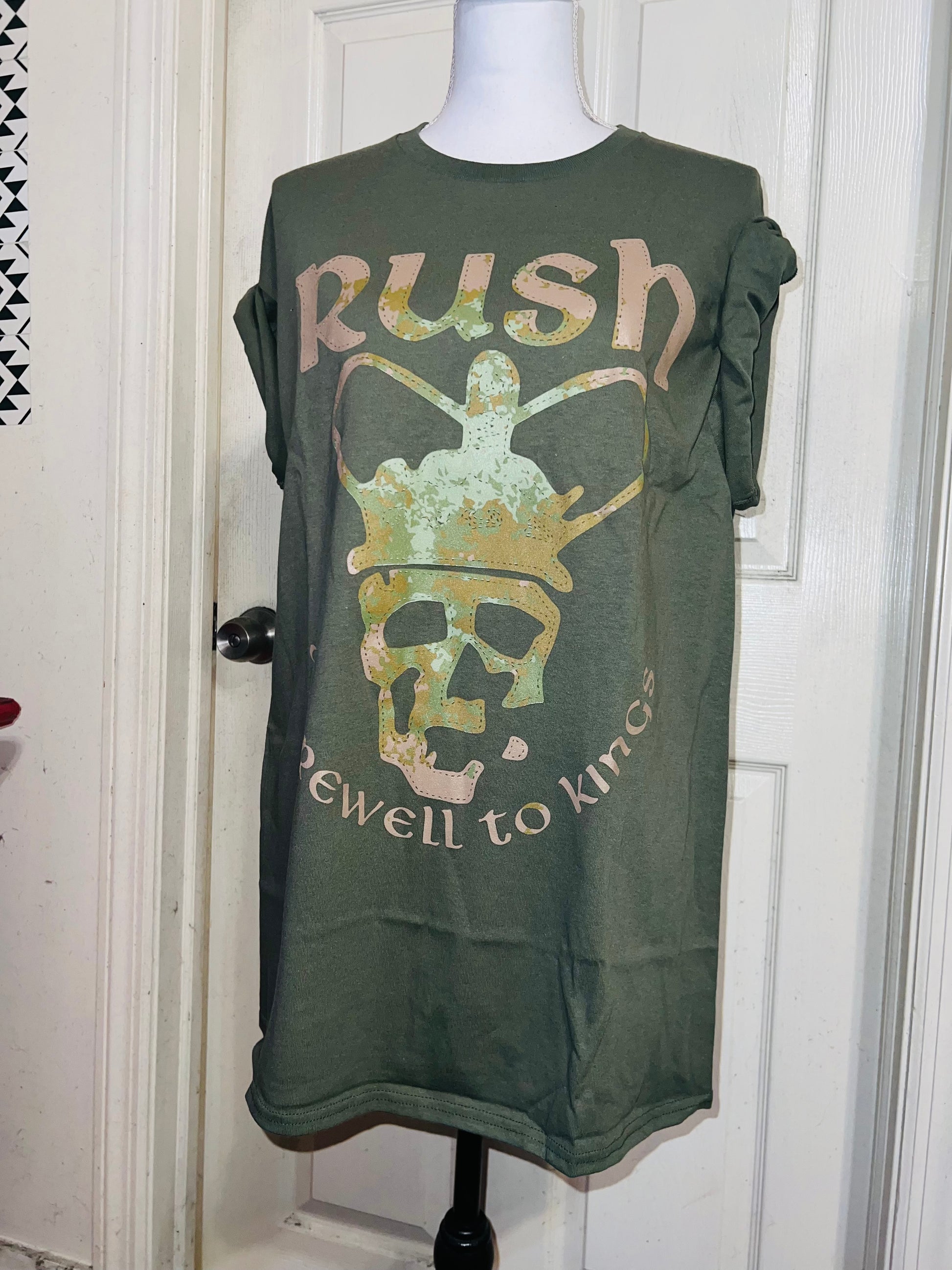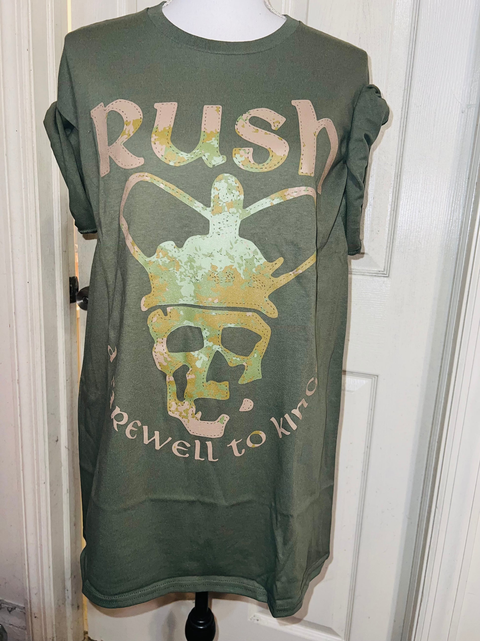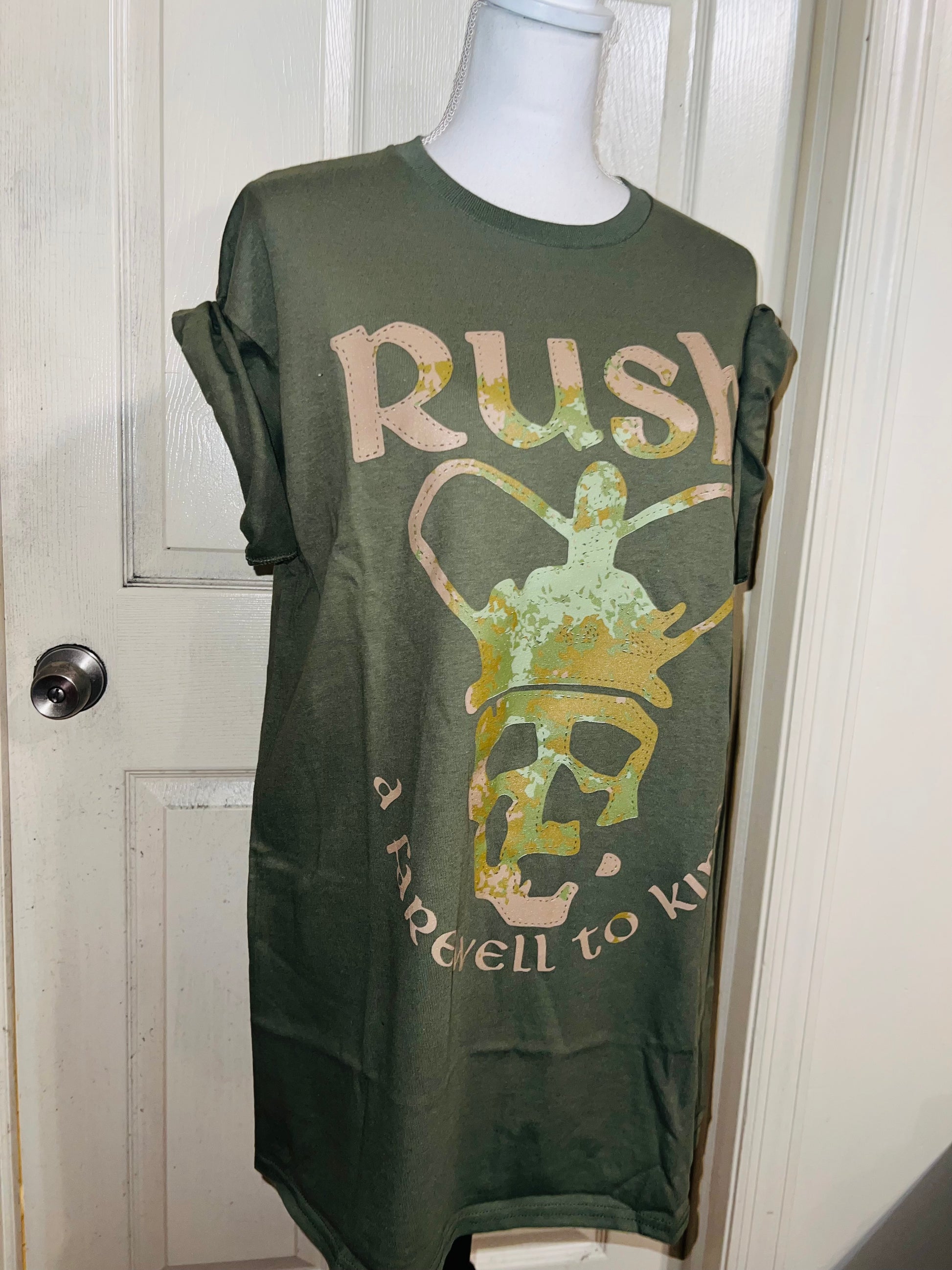 A military green Rush “Farewell to Kings” tee. Size XL, oversized.