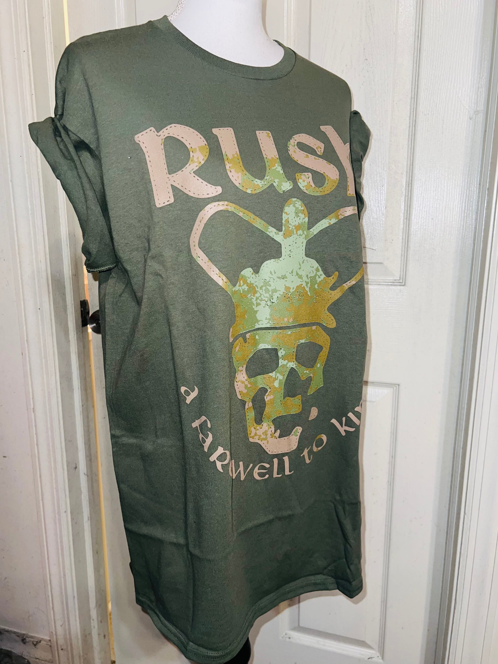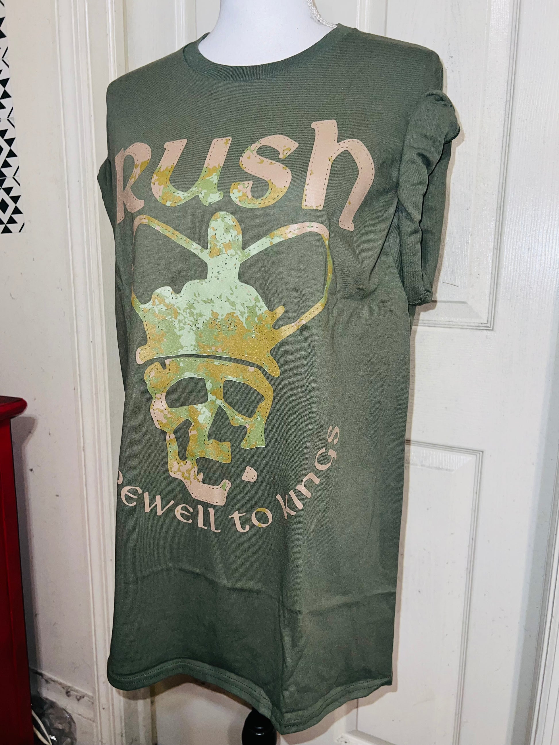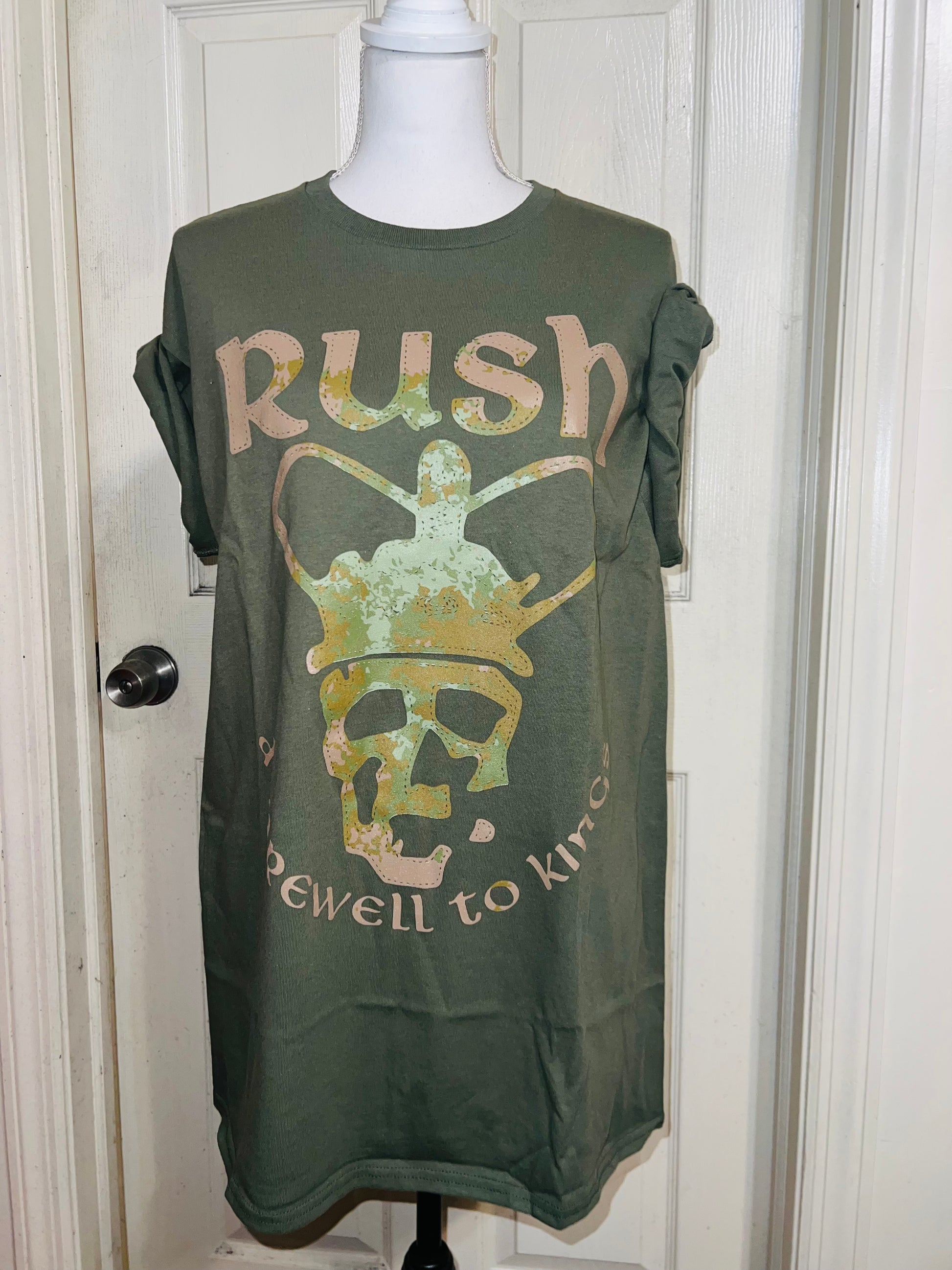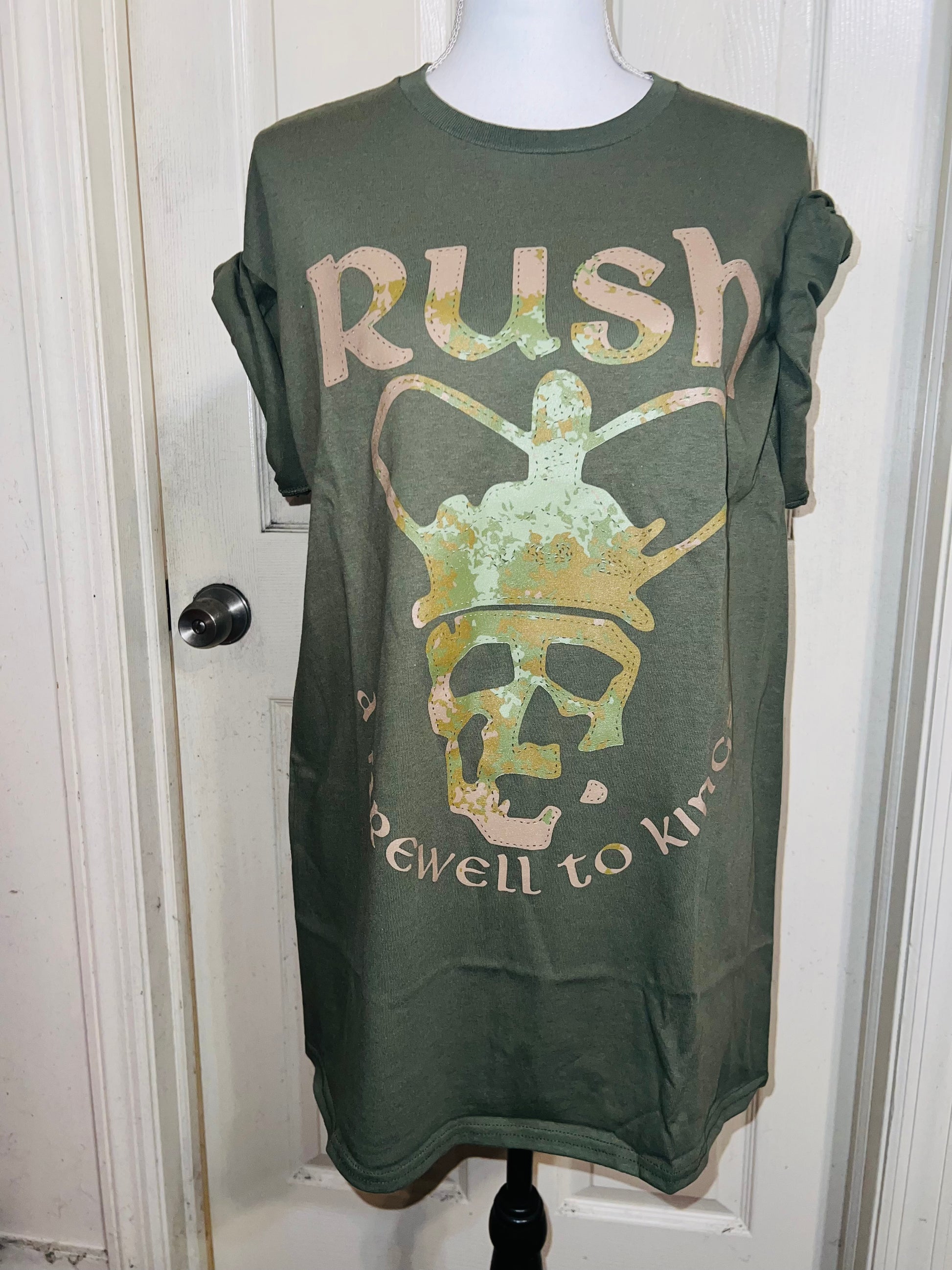 A military green Rush “Farewell to Kings” tee. Size XL, oversized.