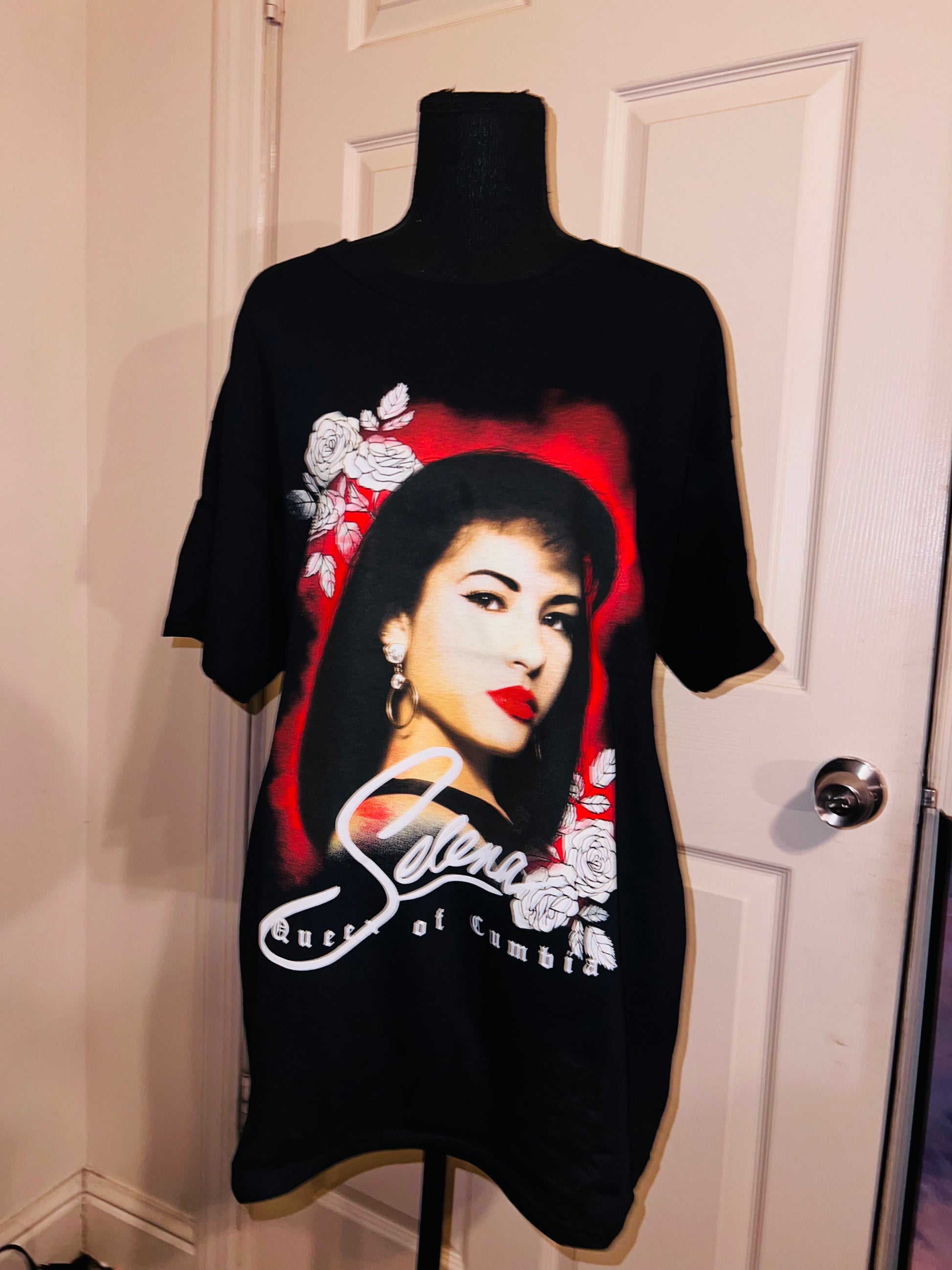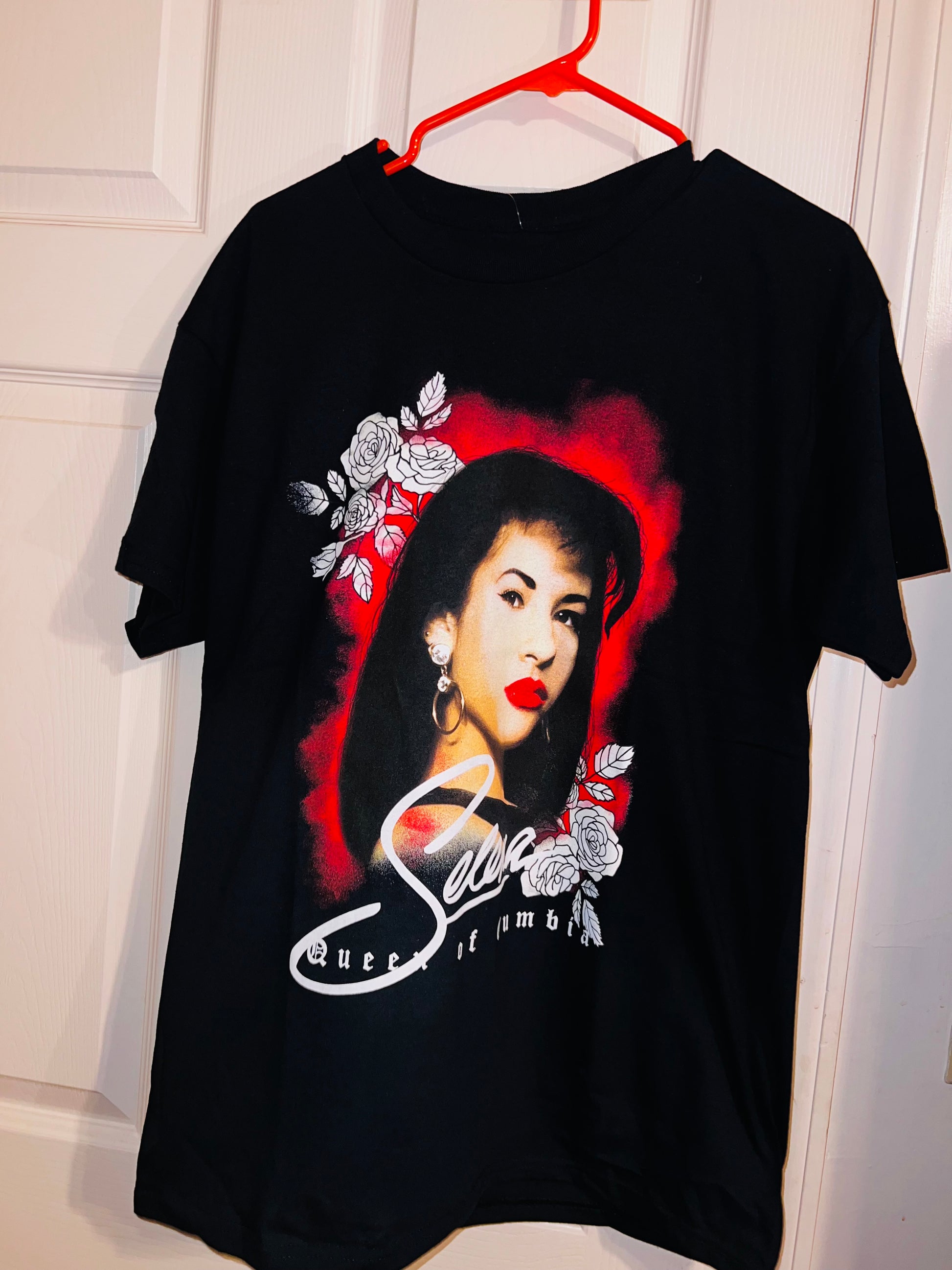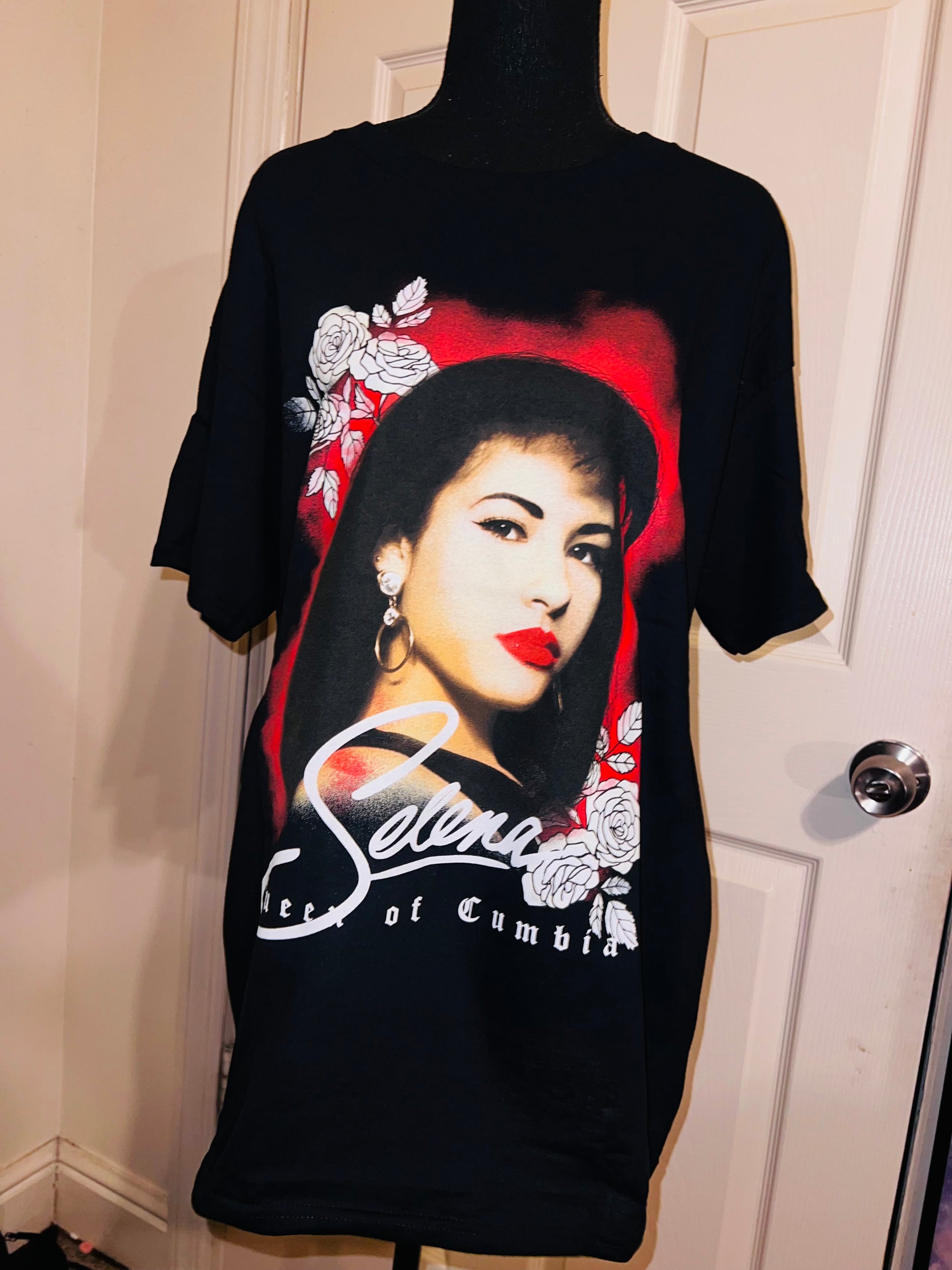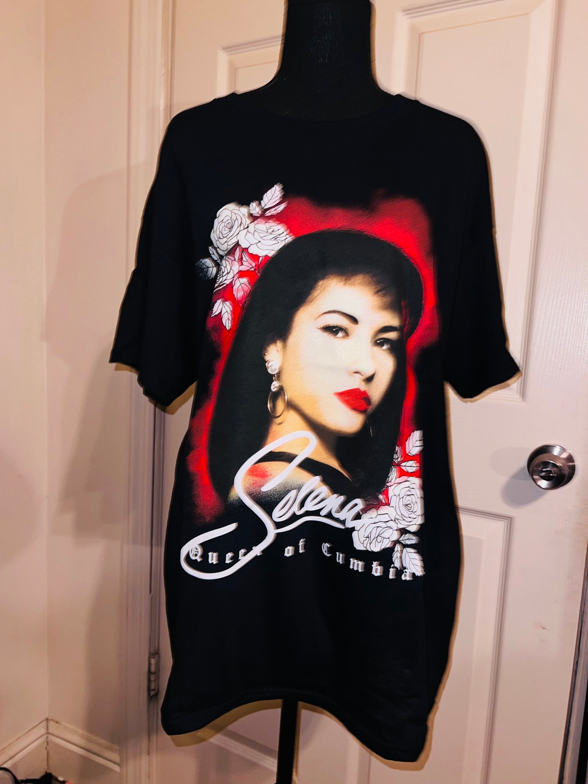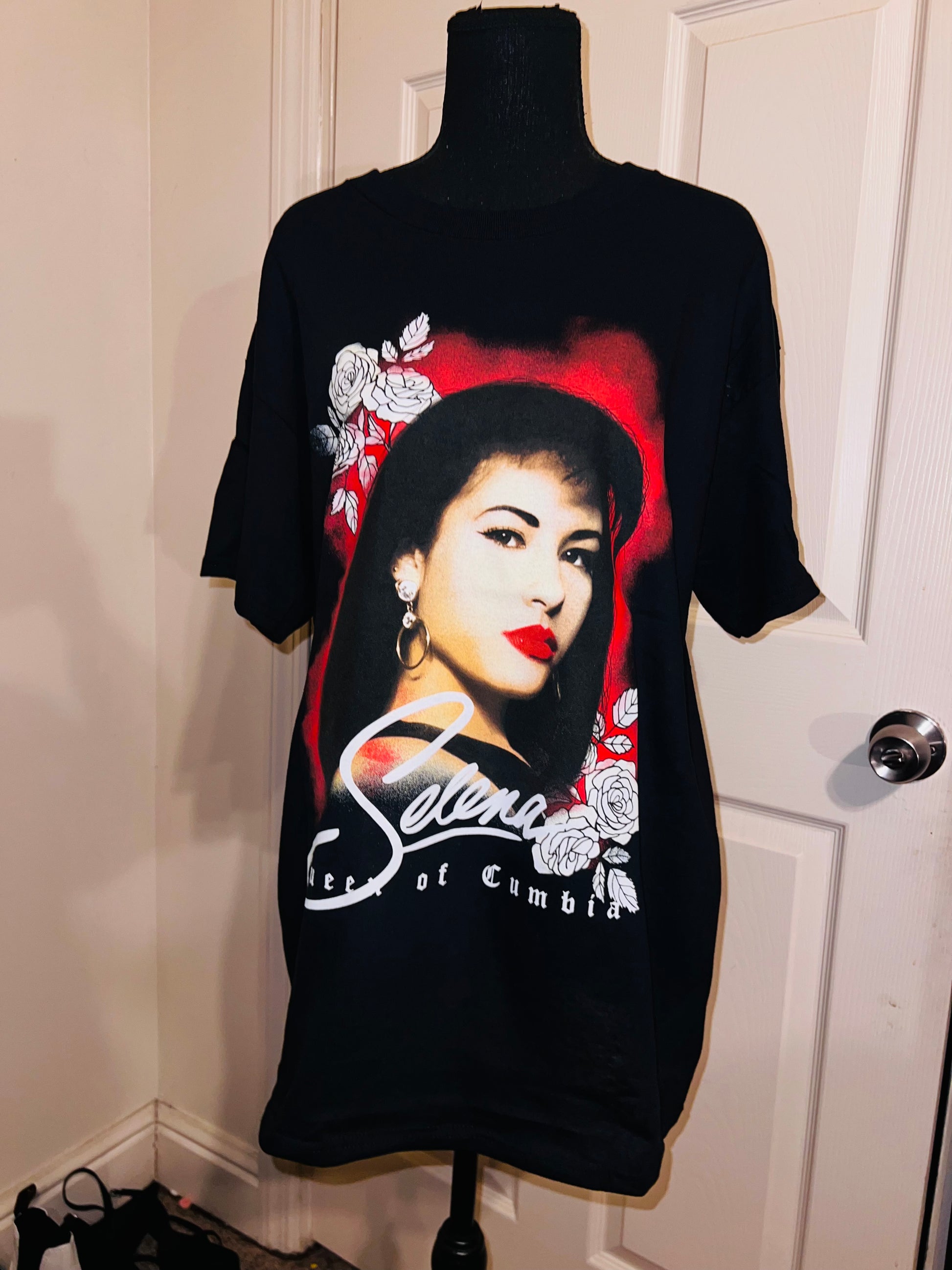 A black oversized Selena “Queen of Columbia” tee with a beautiful portrait. Oversized large.
