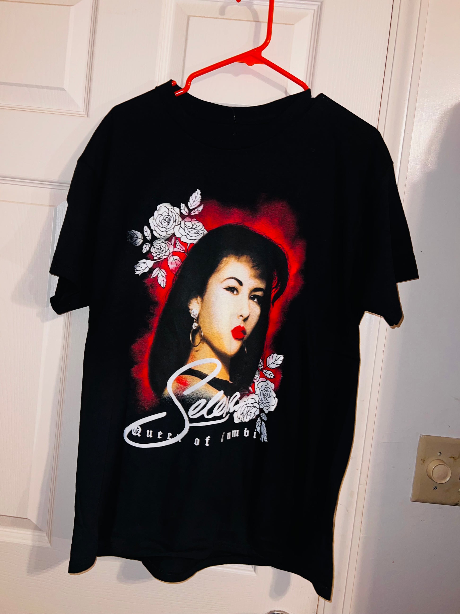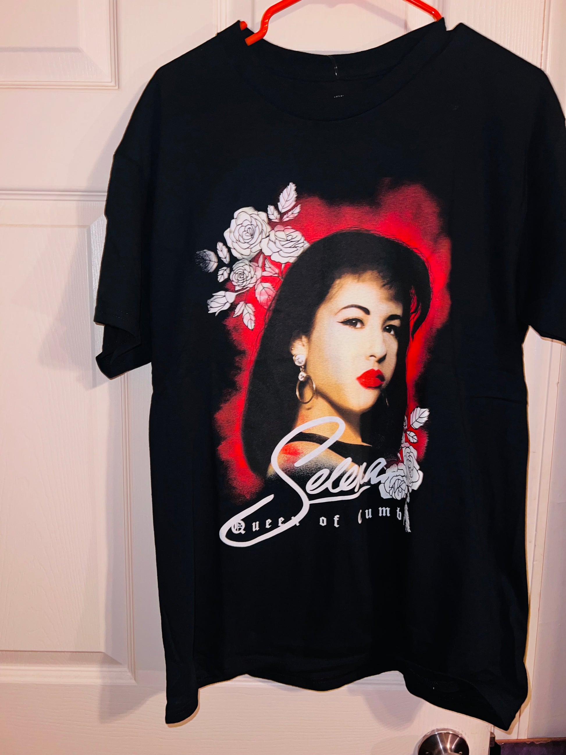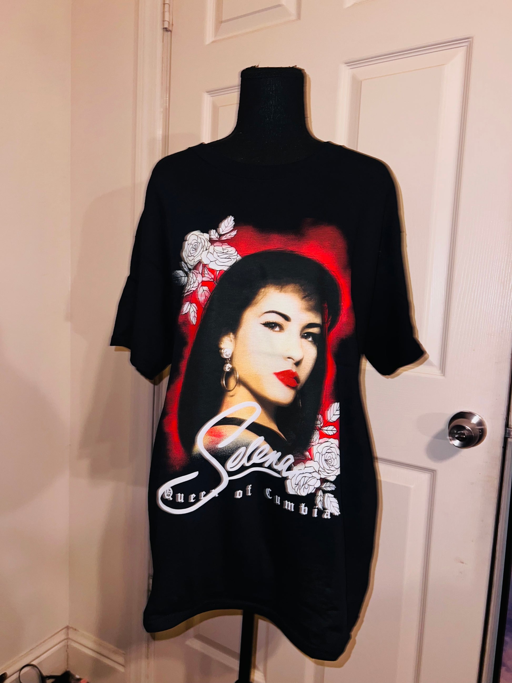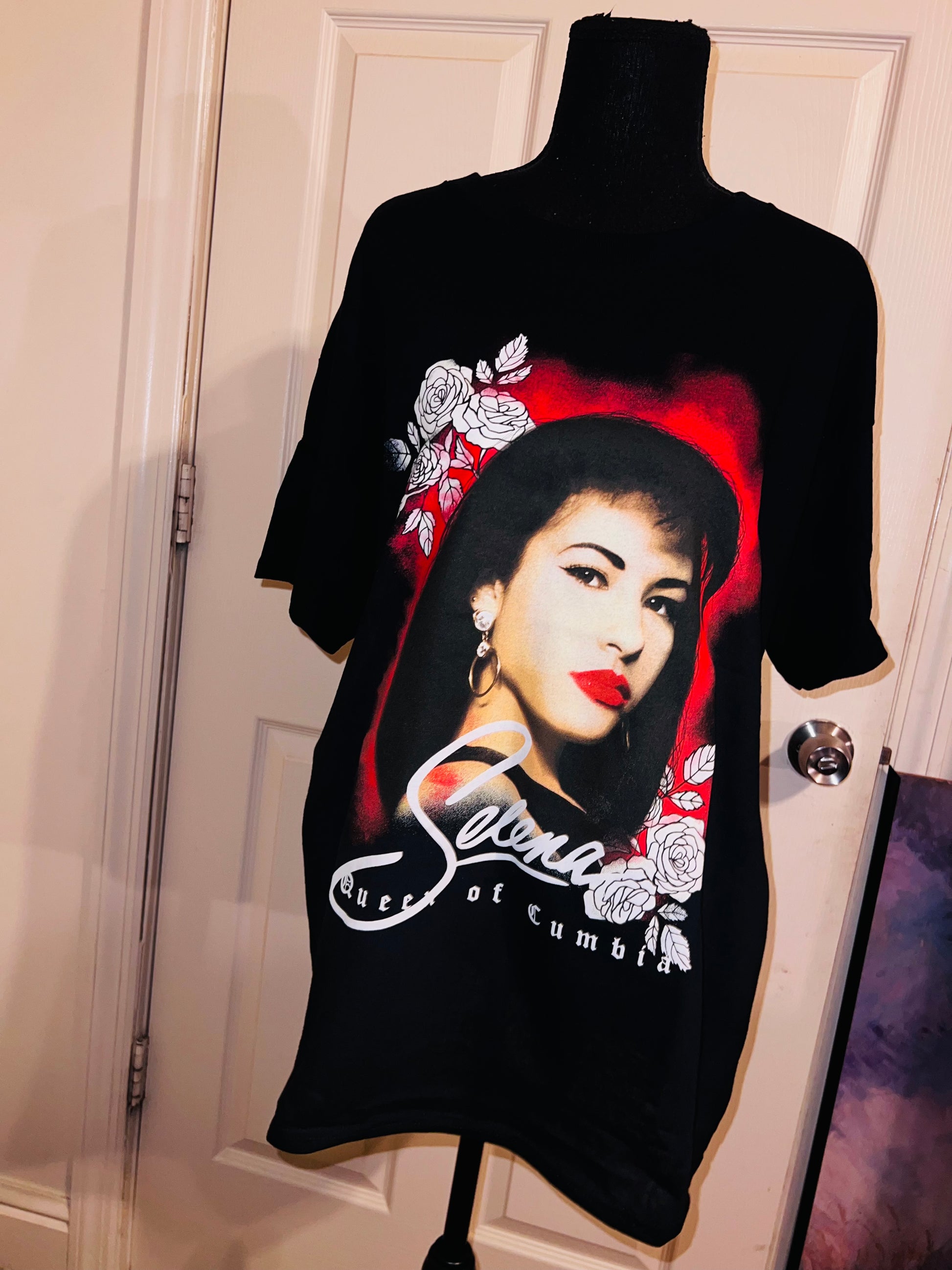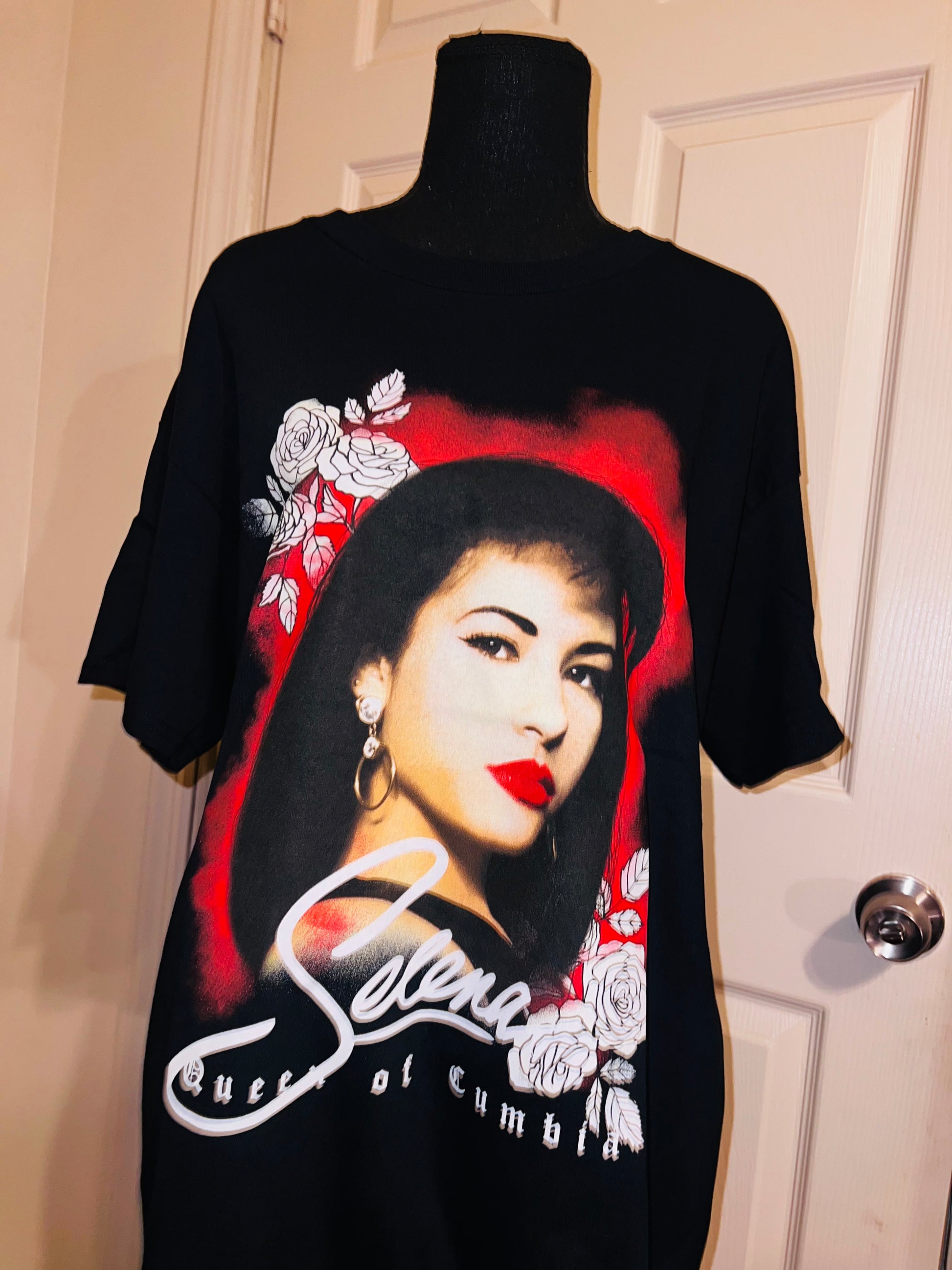 A black oversized Selena “Queen of Columbia” tee with a beautiful portrait. Oversized large.