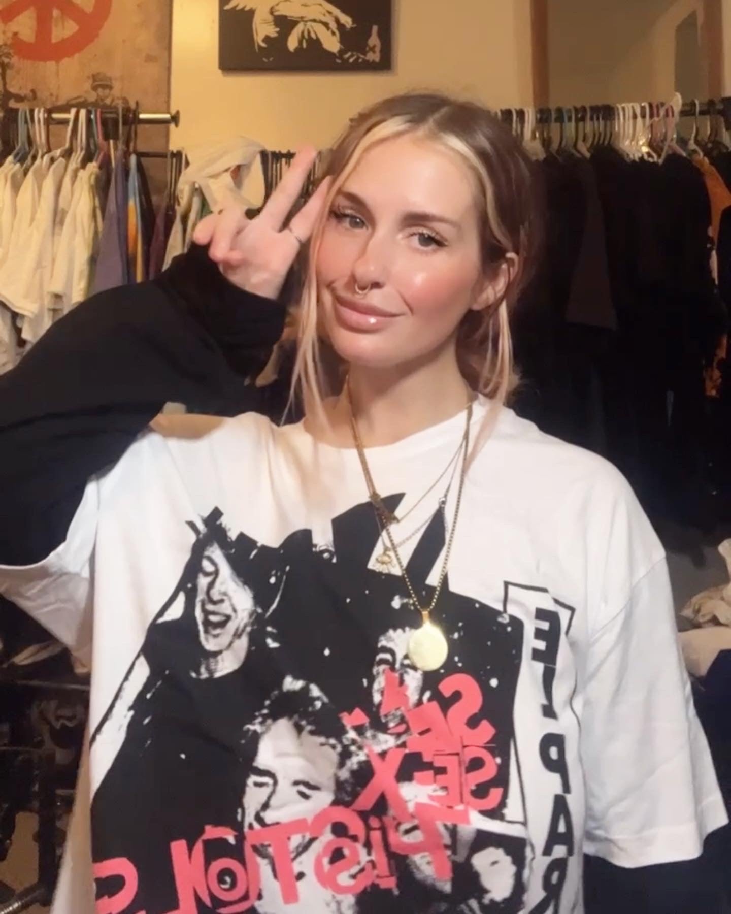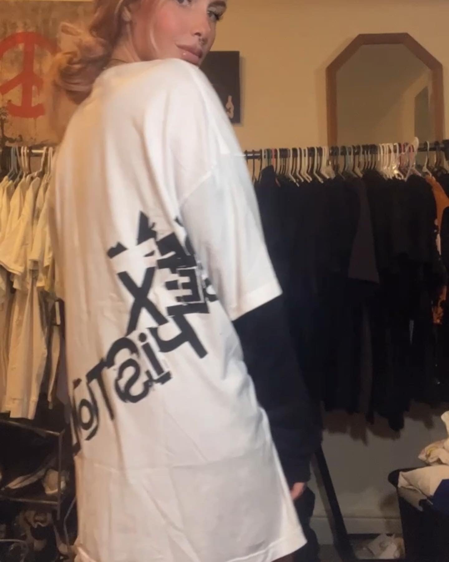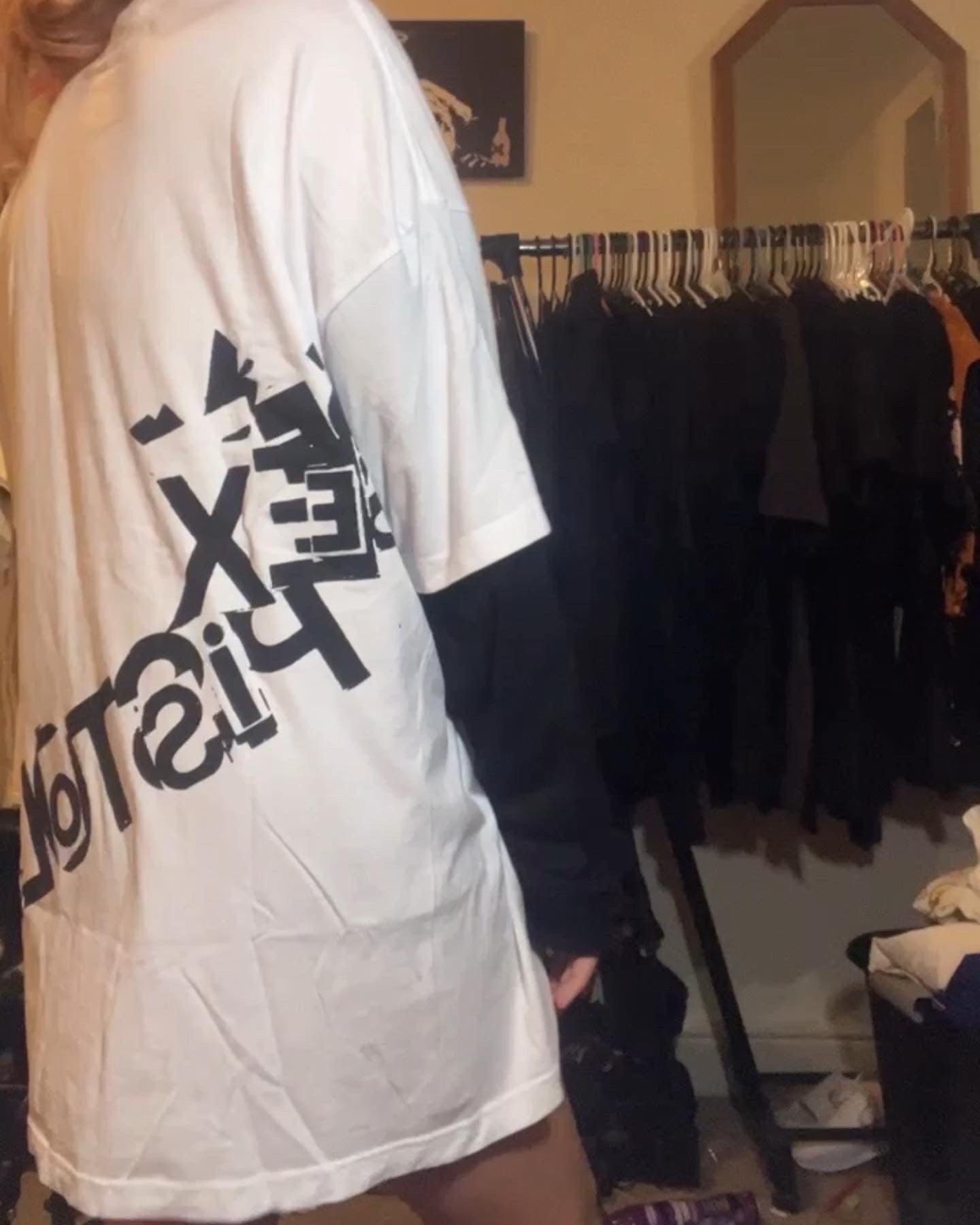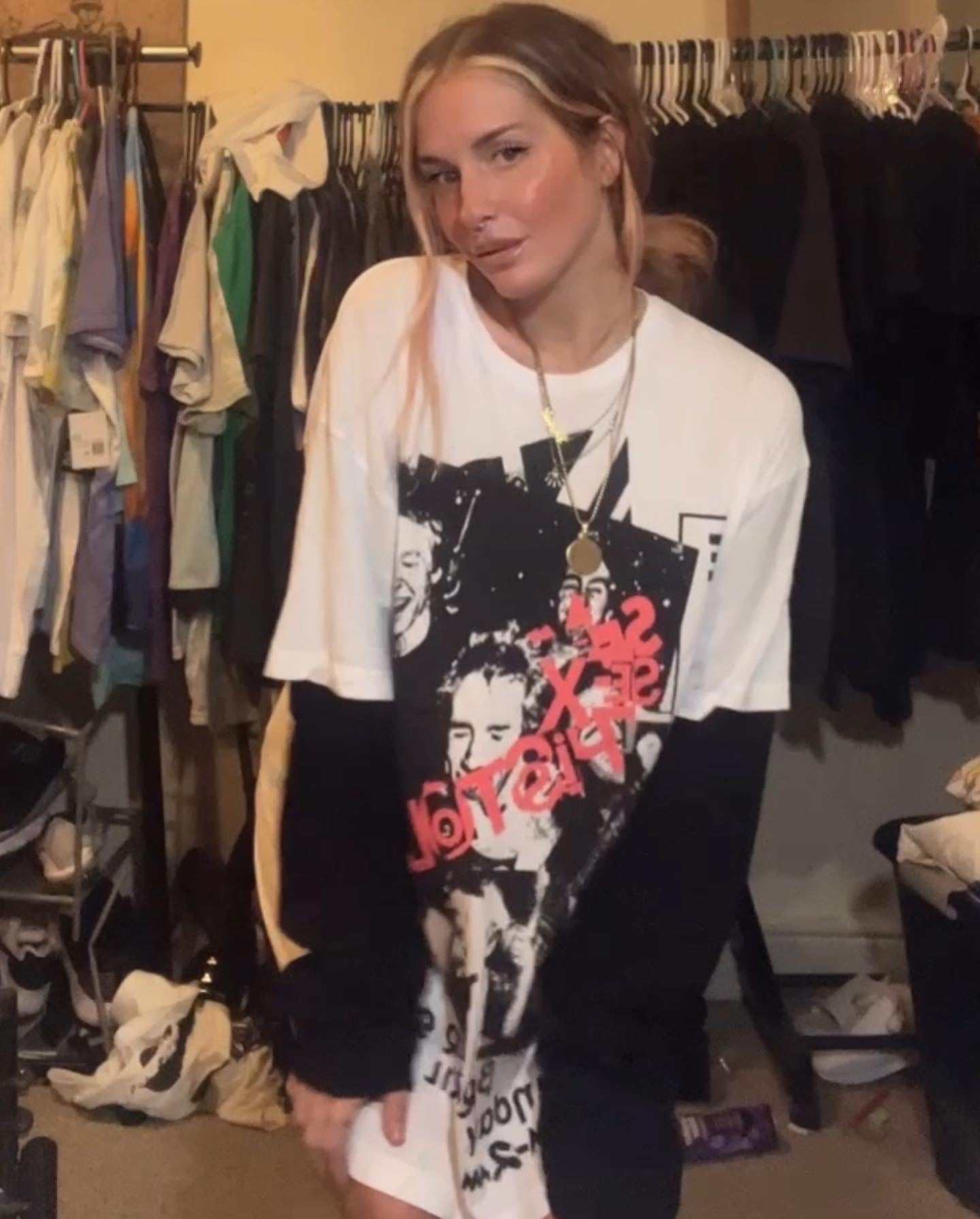 The new trend: tees over long sleeve shirts. Luckily for you, they now make them with just the sleeves so you aren’t bulky or uncomfortable! I’m obsessed with this new trend and The Sex Pistols tee which punk/chic x Vivienne Westwood. Still oversized and the sleeves aren’t right either, size XL.