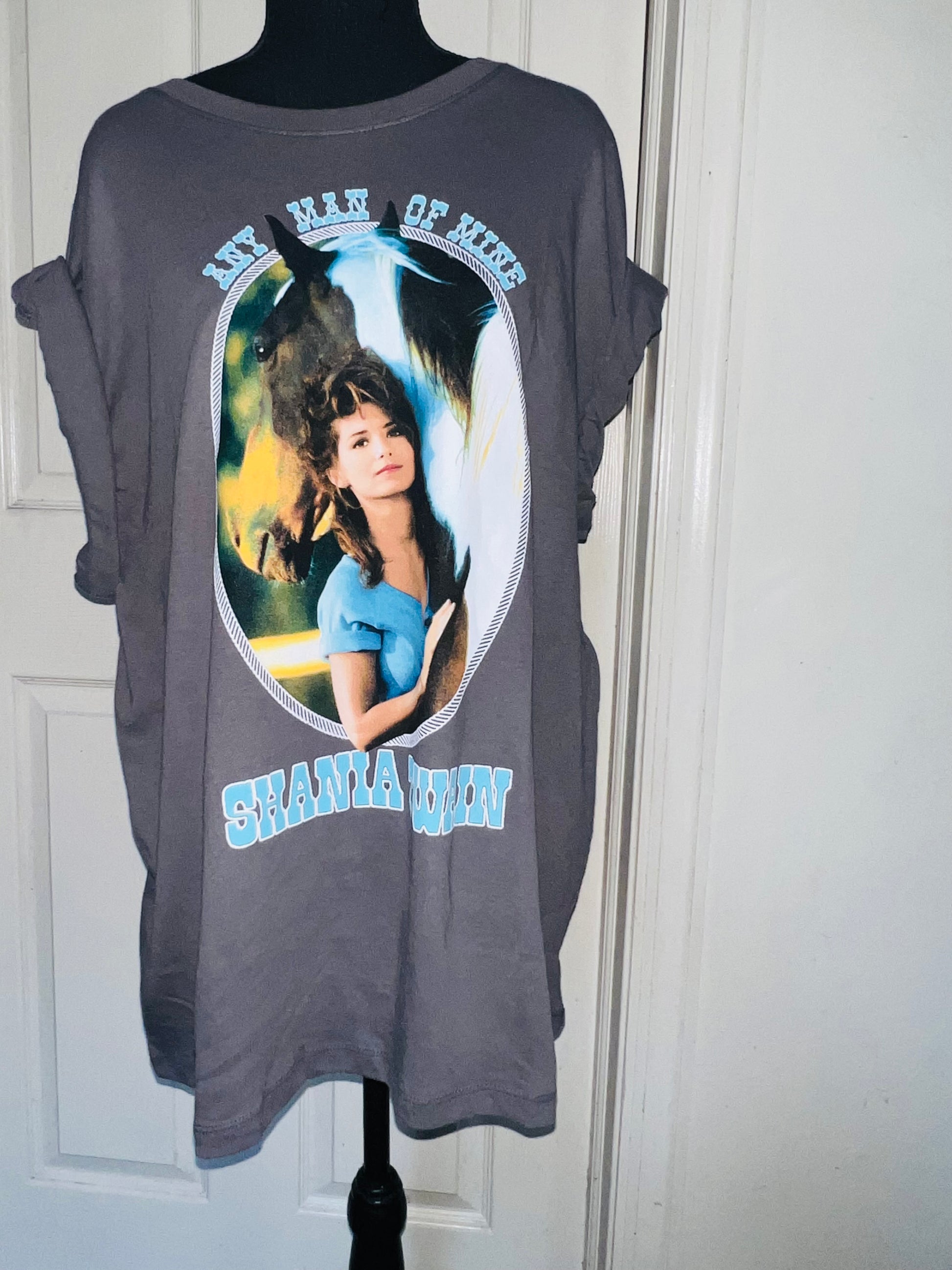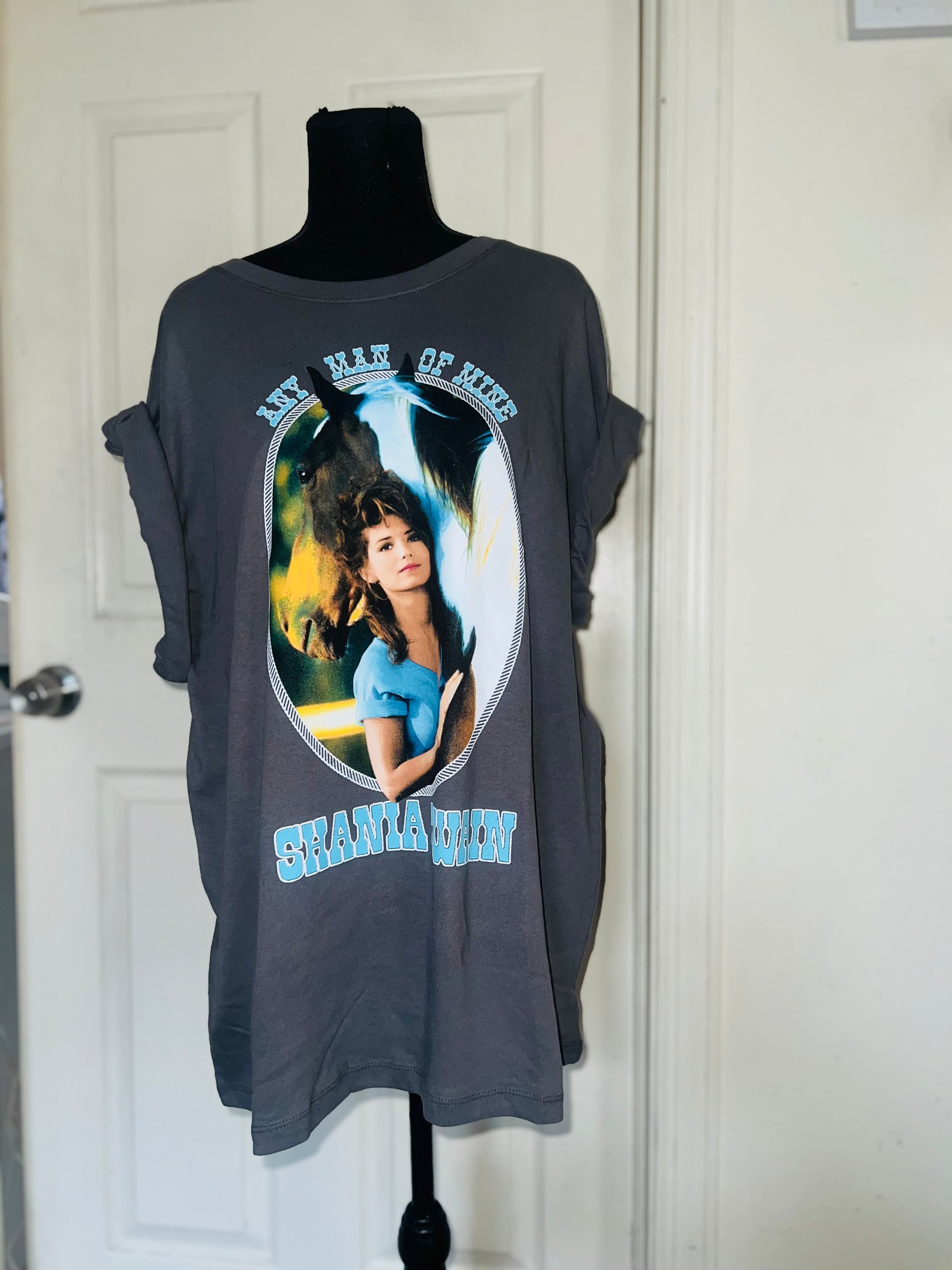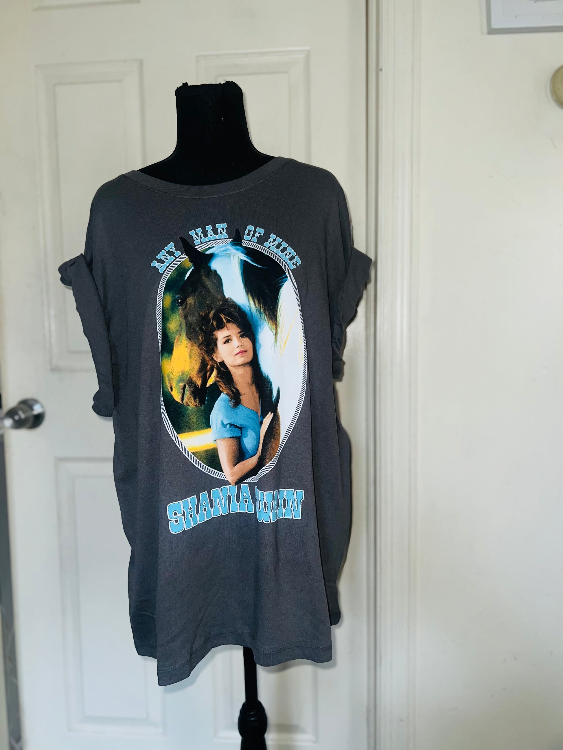 A dark grey Shania Twain “Any Man of Mine” western style tee. Super soft, so cute with a portrait of Shania. Size XXL, oversized.