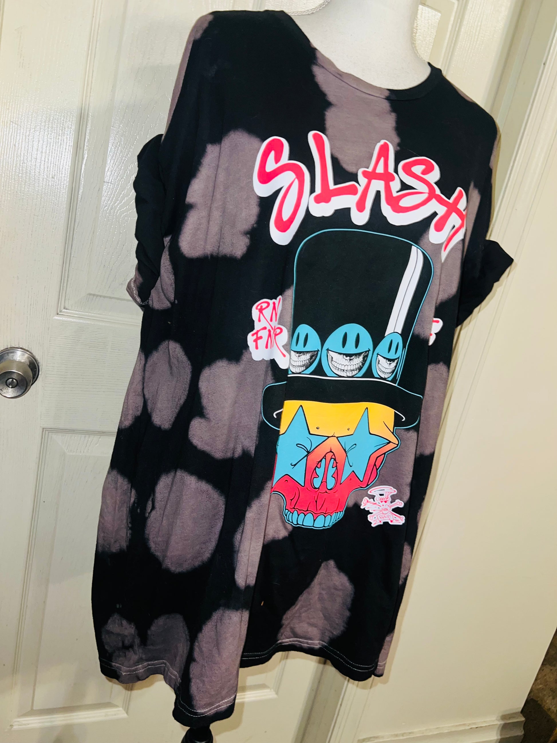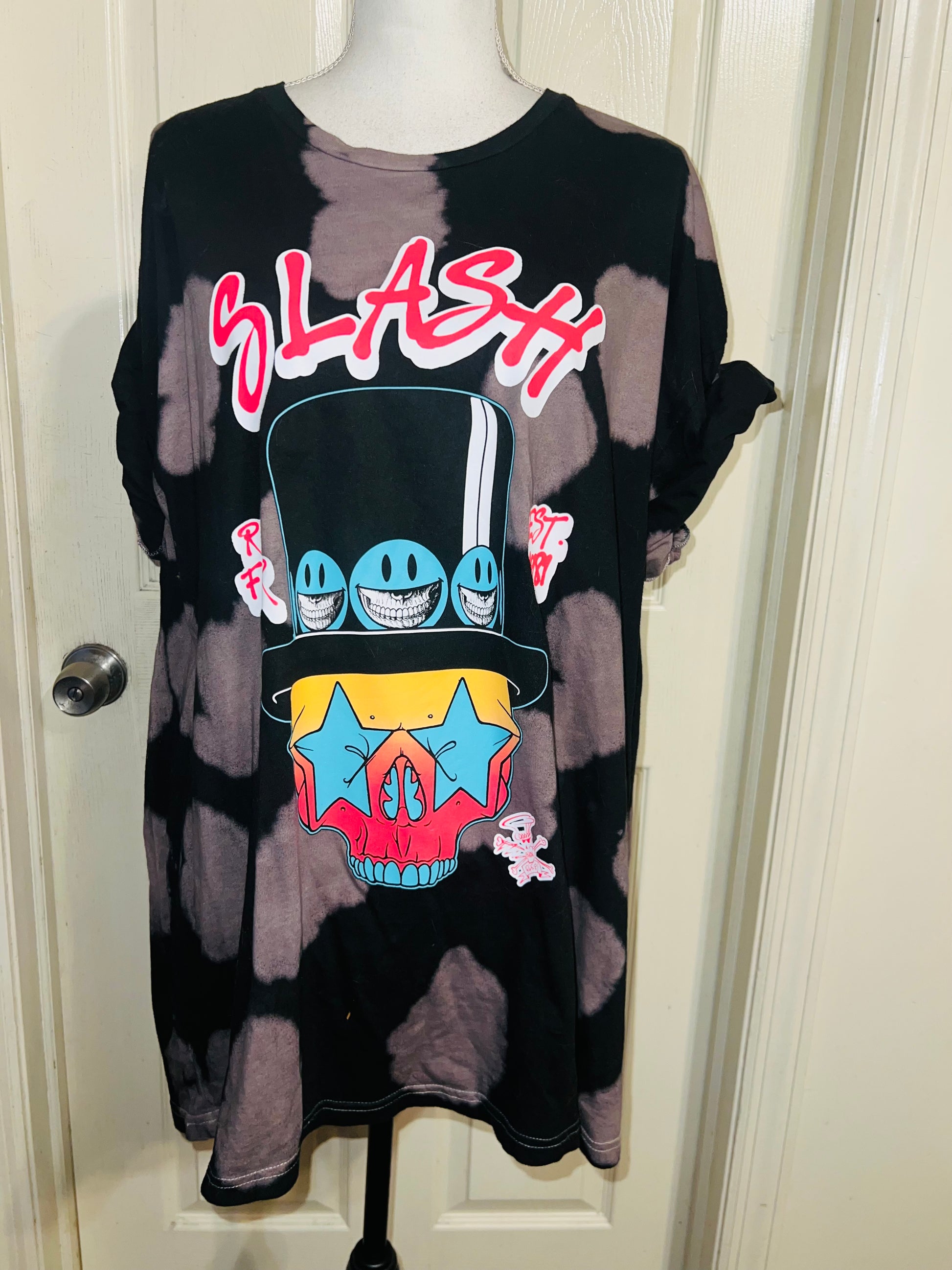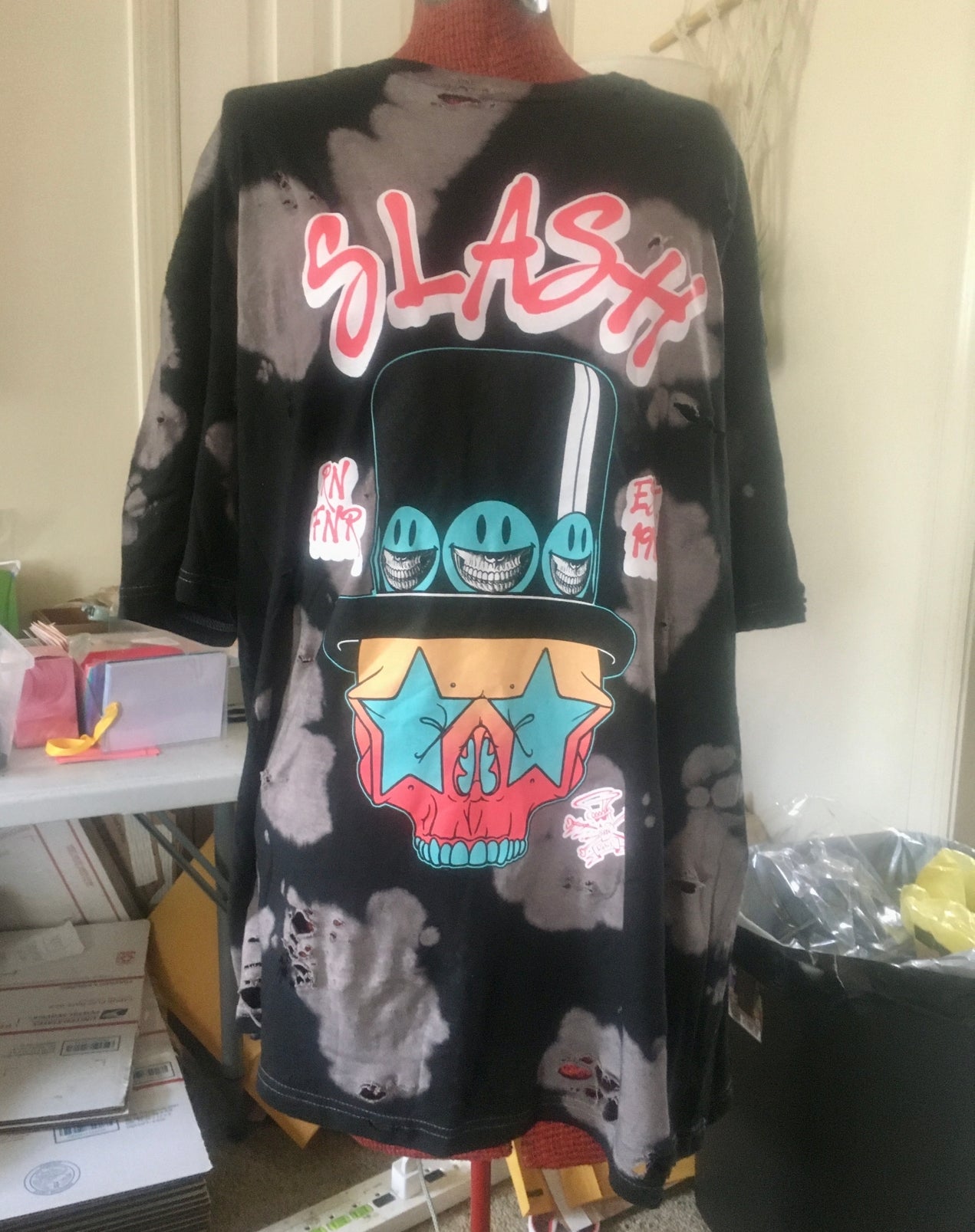 I had this shirt when I first started, and it sold within minutes! I just found it for the first time again. It was so cute distressed. Slash 1981 tee with splatter/tie dye/bleach design. Love it so much, oversized, comfortable size XL.