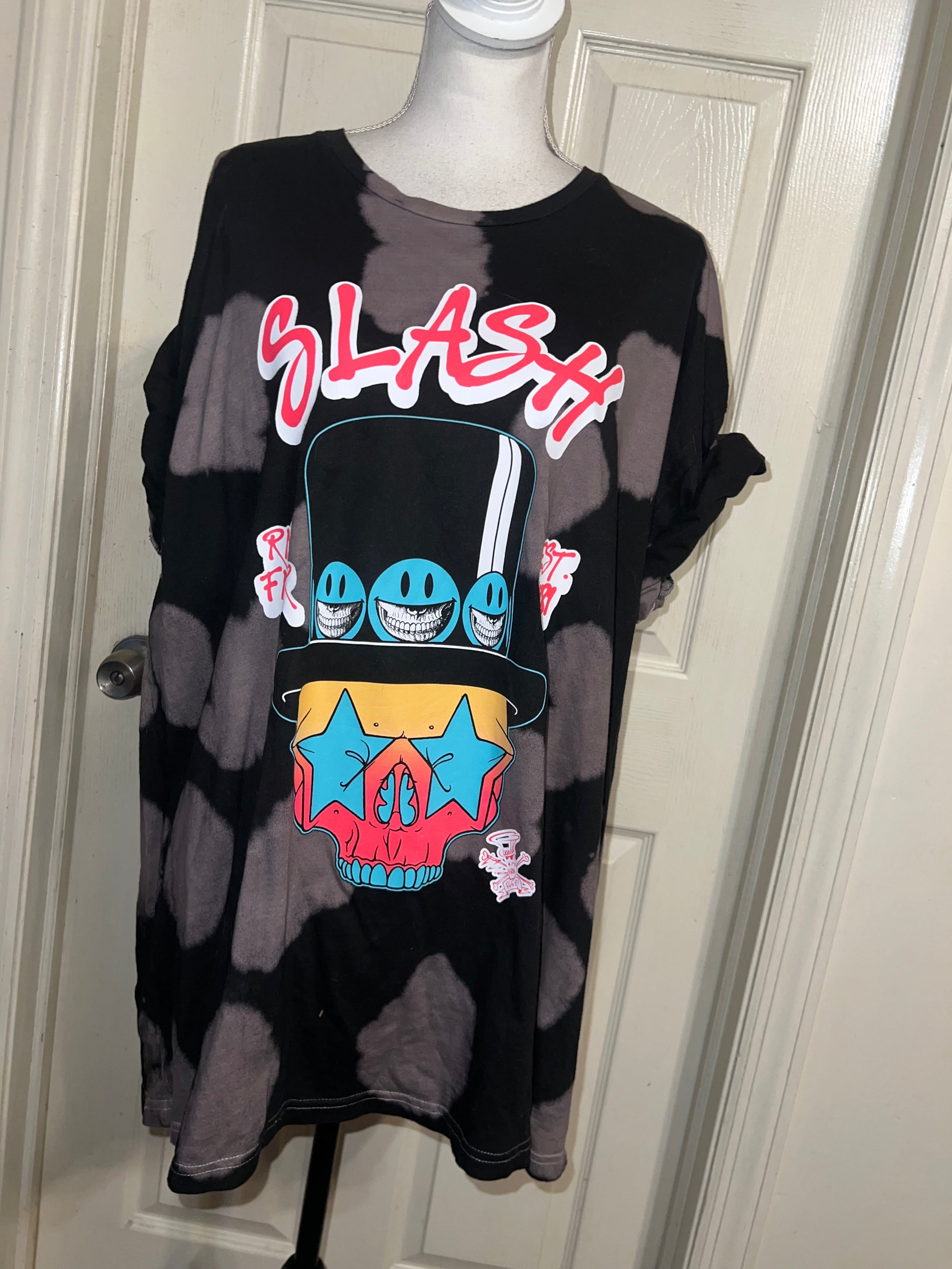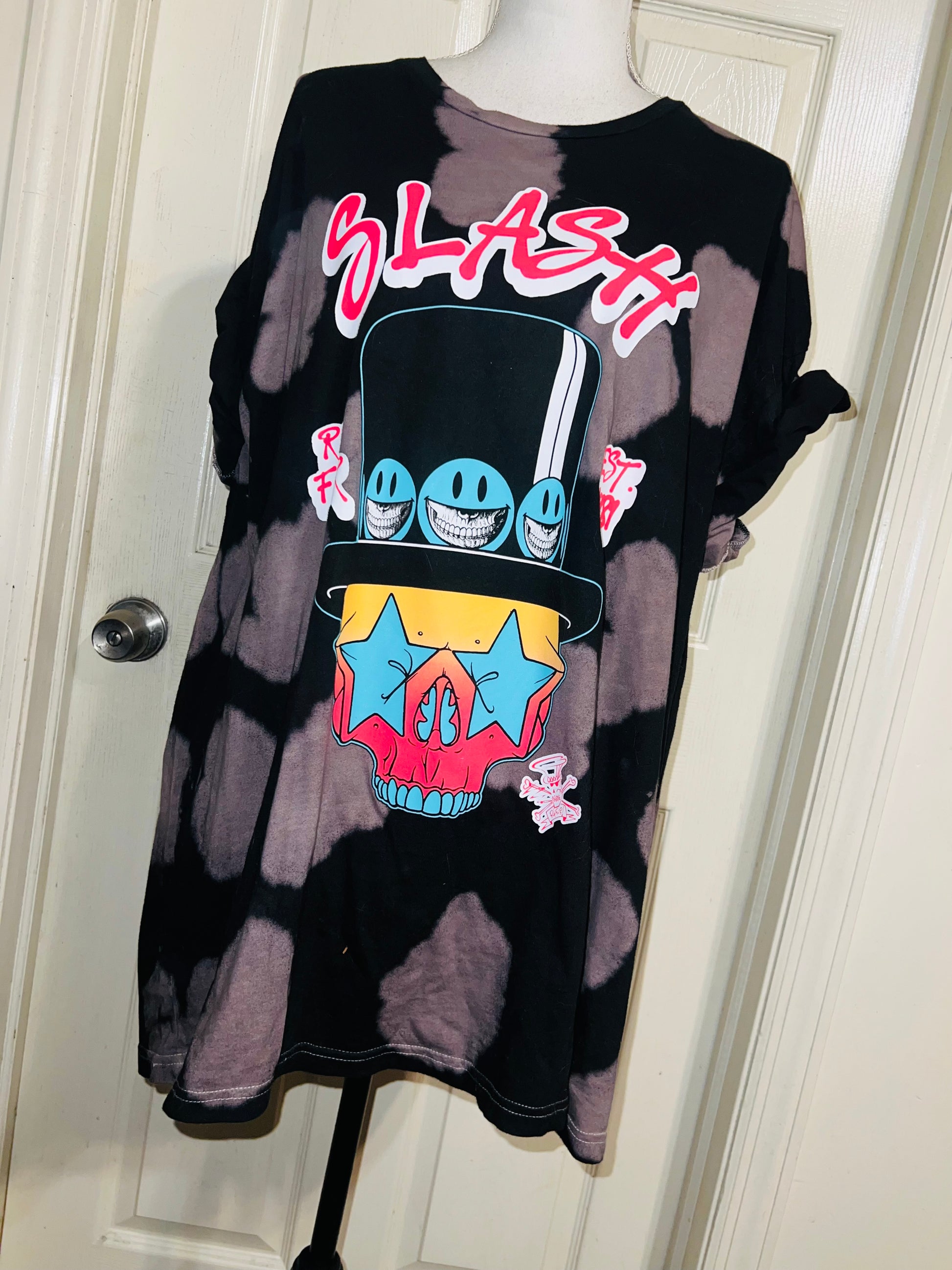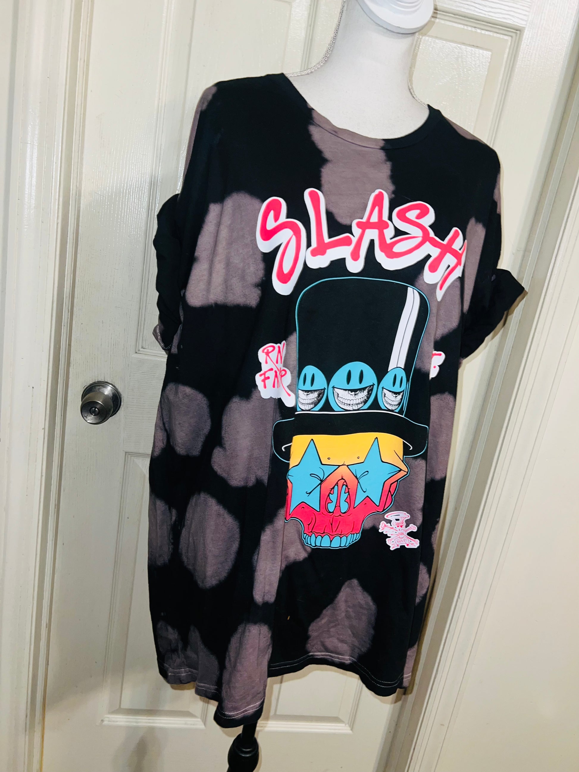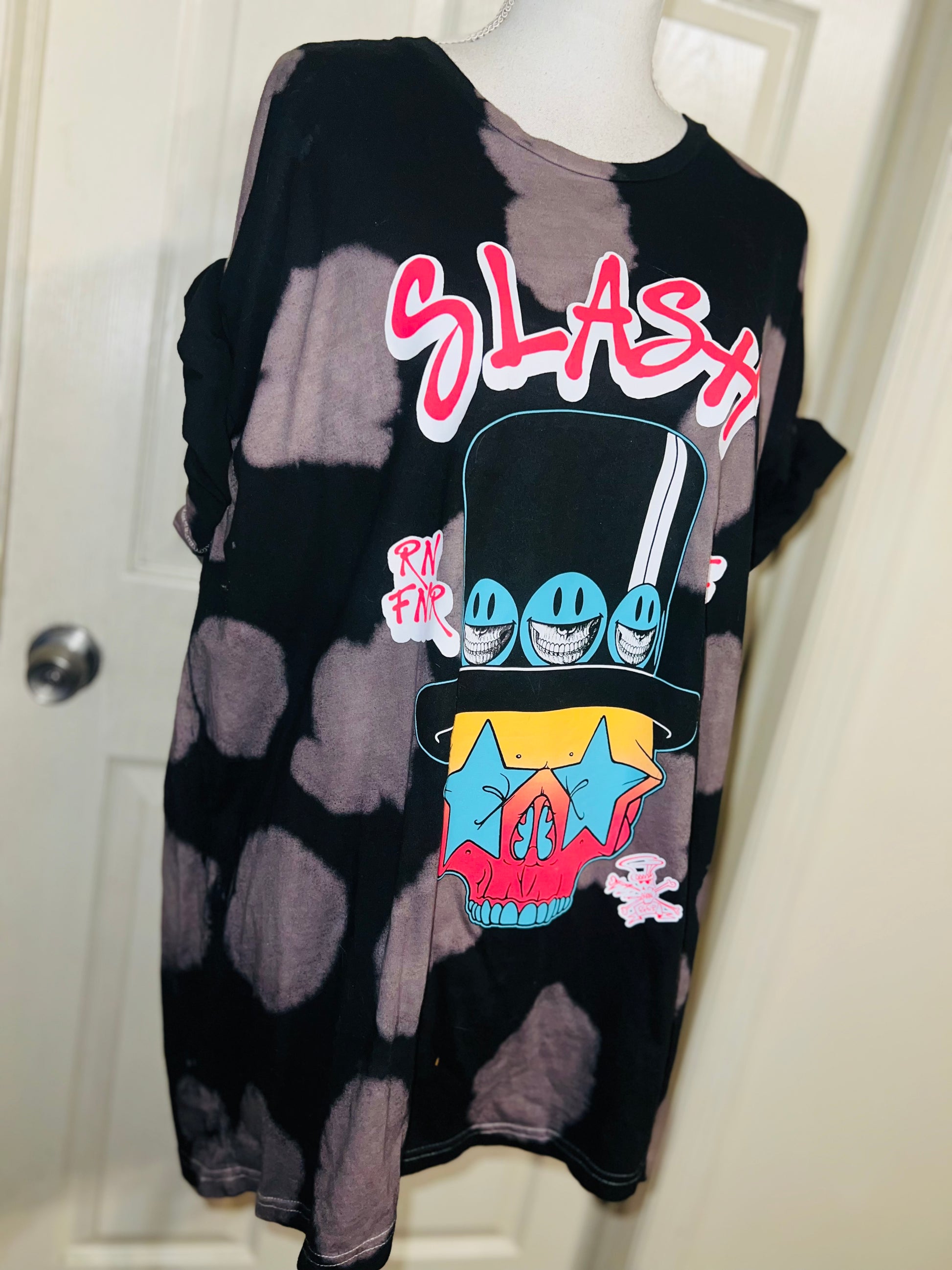 I had this shirt when I first started, and it sold within minutes! I just found it for the first time again. It was so cute distressed. Slash 1981 tee with splatter/tie dye/bleach design. Love it so much, oversized, comfortable size XL.