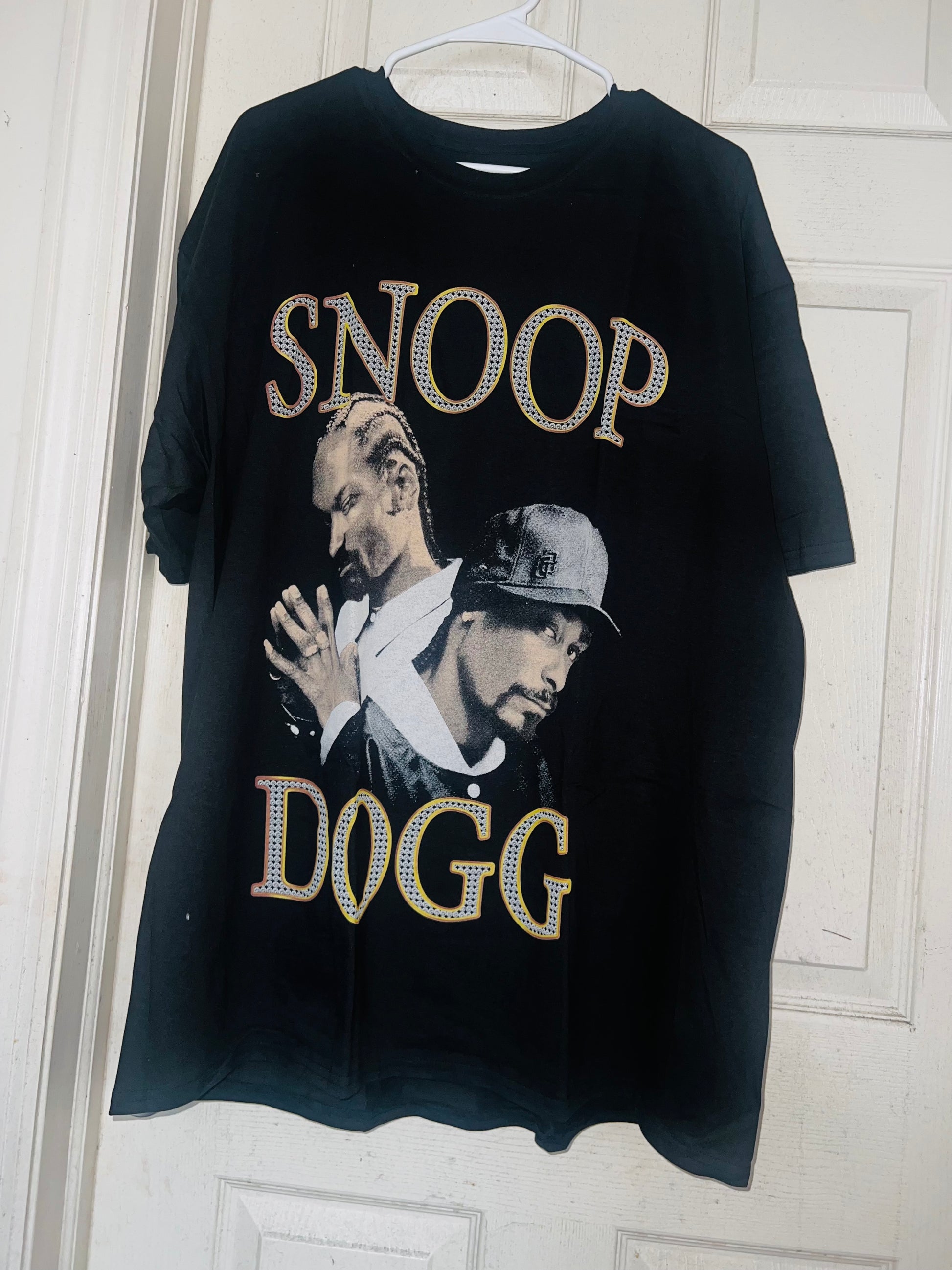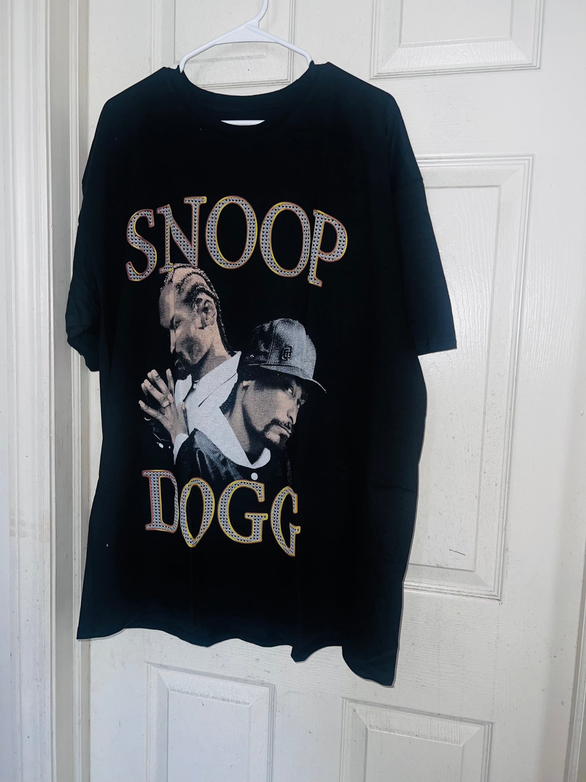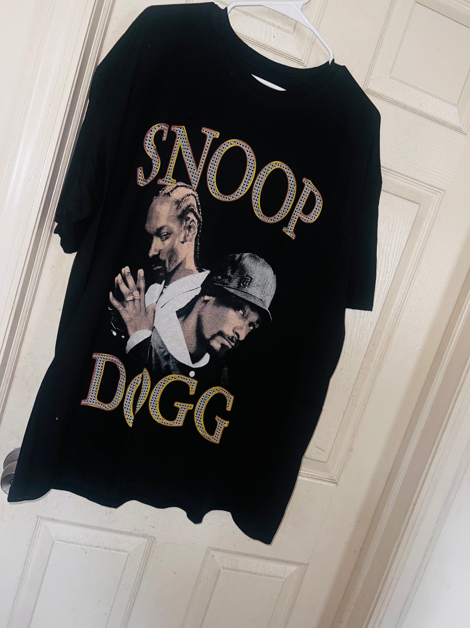 A black oversized Snoop Dogg tee with his portrait, they always sell pretty fast! Size L/XL oversized.