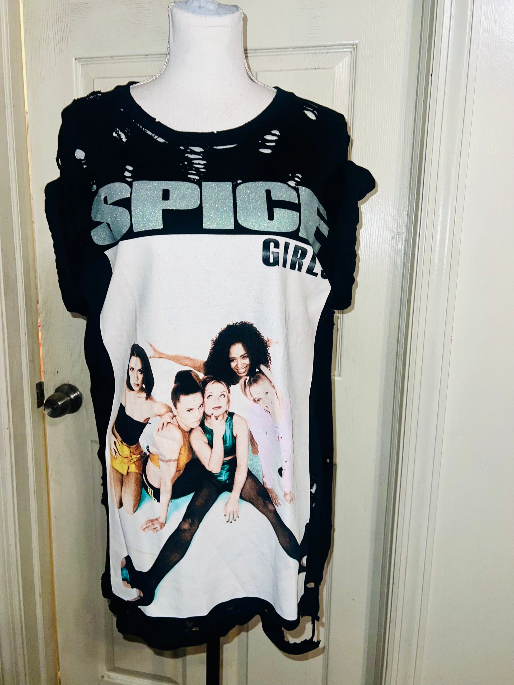 This is now a preorder. A black double sided Spice Girls tee with the names of the girls down the back! Size large, oversized.