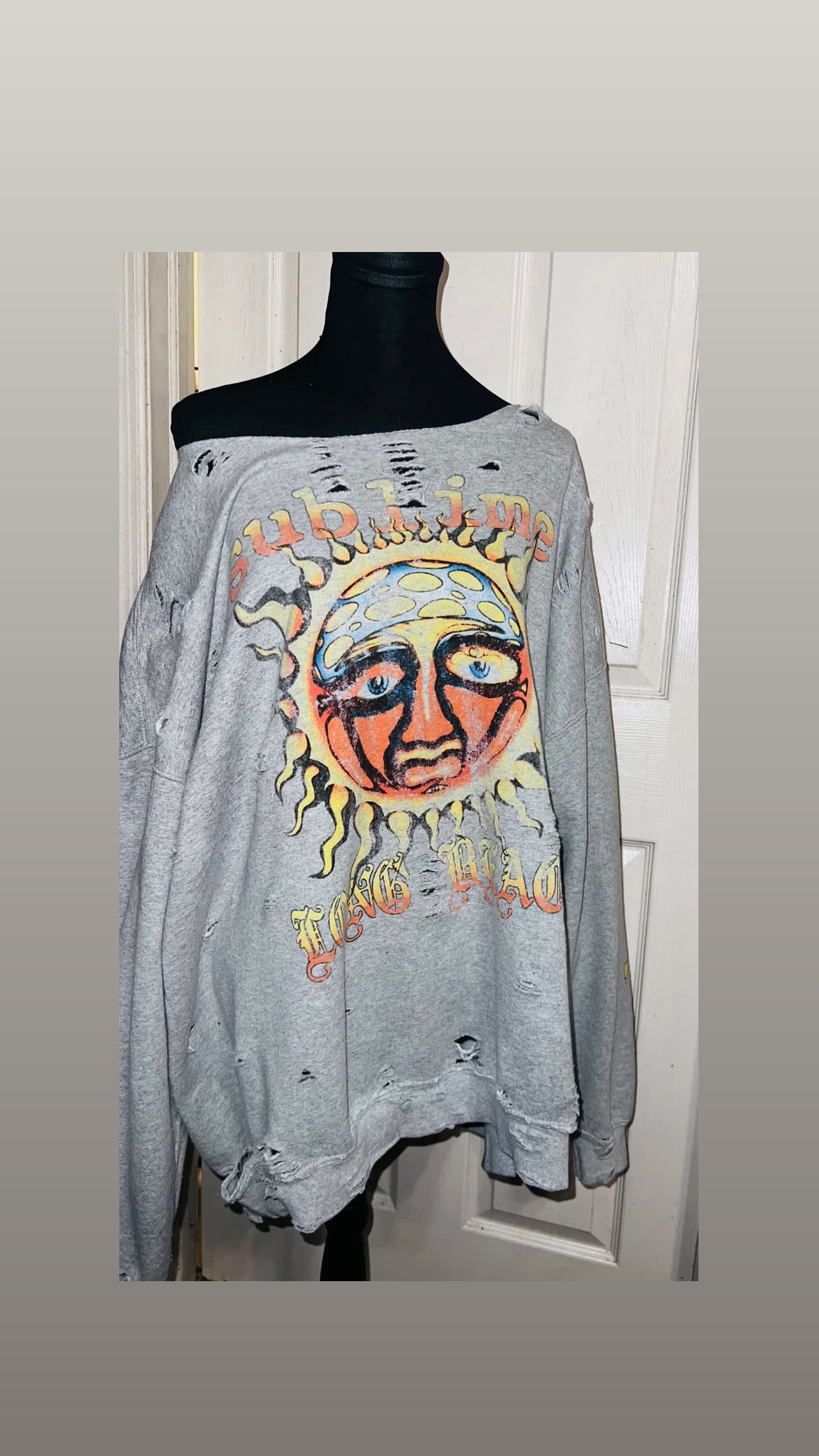 This is a preorder. Please allow extra processing time. A super comfy and oversized soft grey Sublime sweatshirt. Size L/XL this design may vary from the one pictured. It may have sublime down the sleeve or Long Beach added. It will be the same grey sweatshirt with the same graphic!