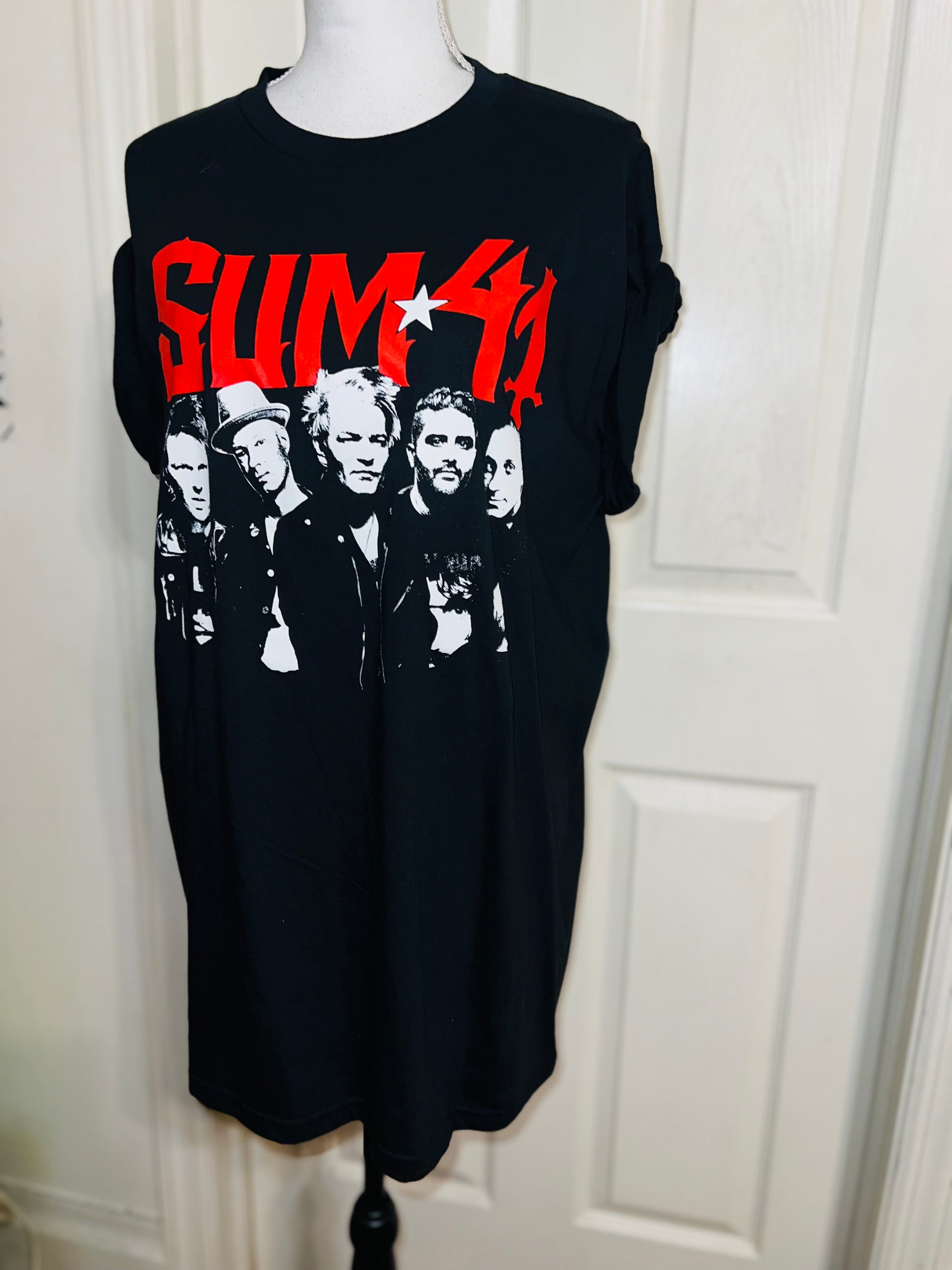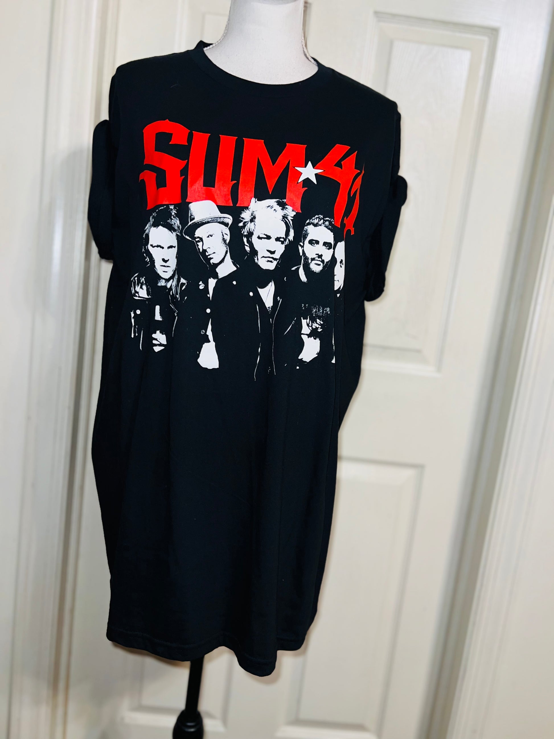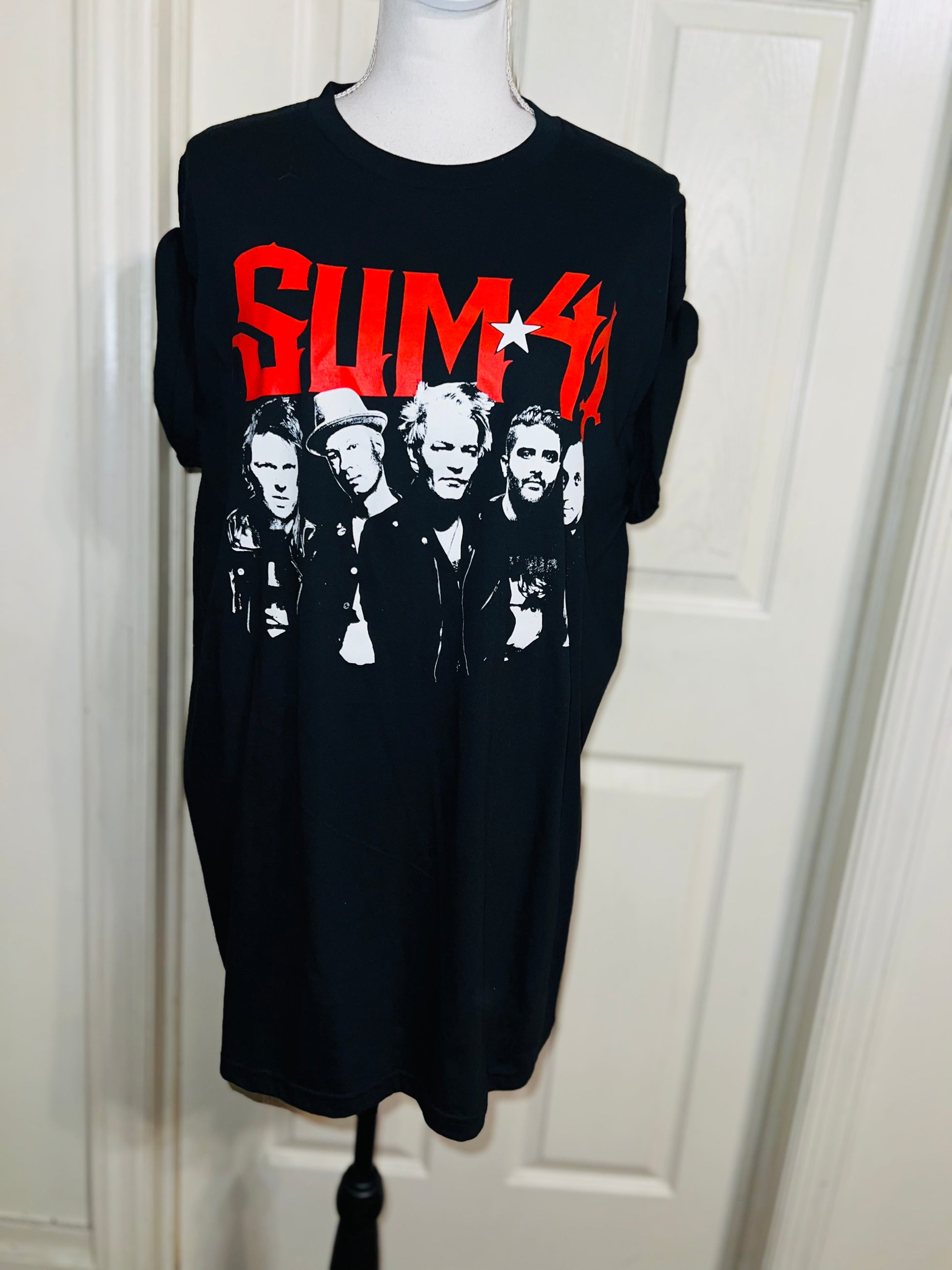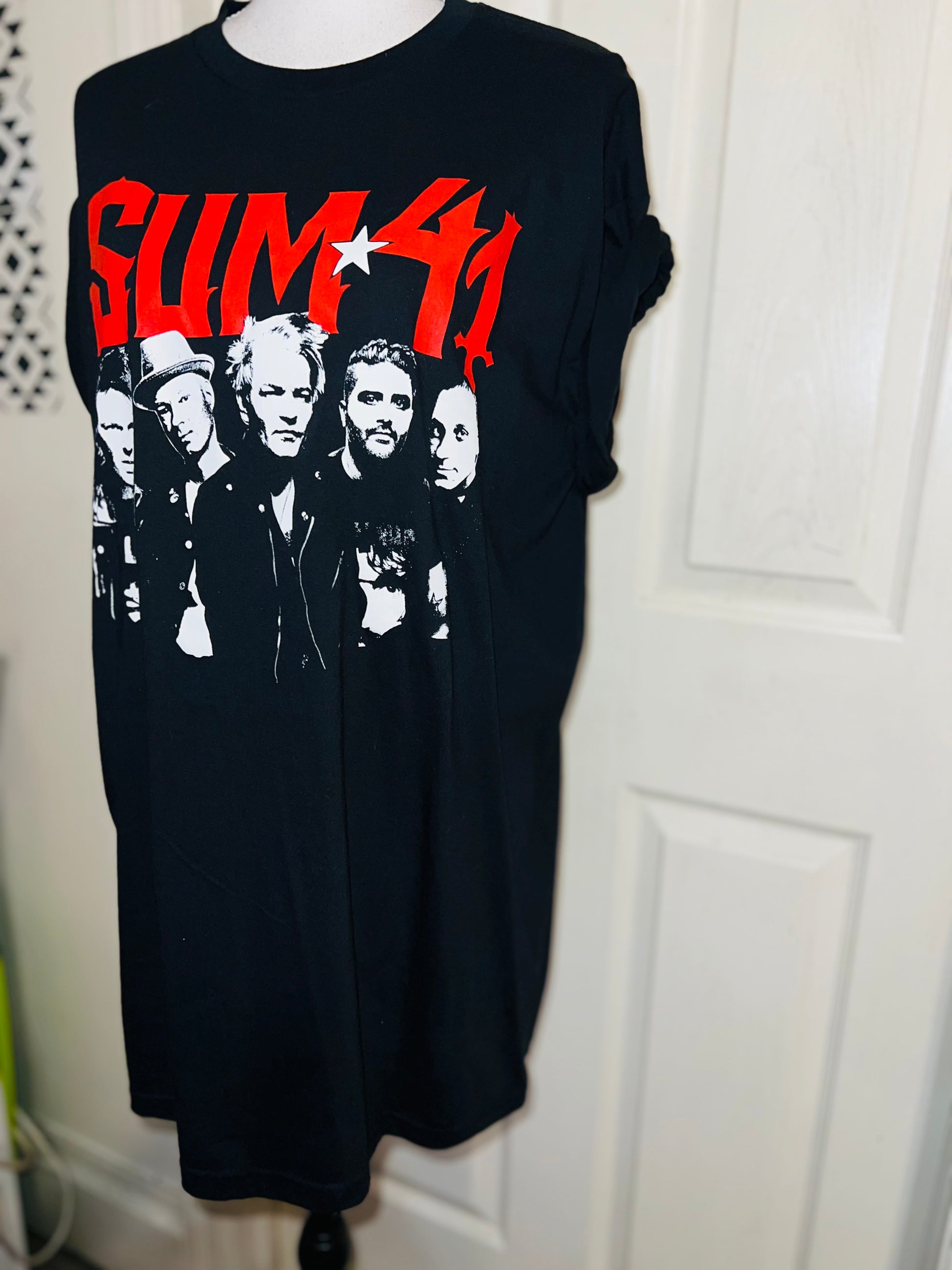 This is now a preorder. Please allow extra processing time. A throwback band that everyone loved!! A black Sum 41 t-shirt with the graphic of the bank in white and red + band name. Oversized XXL and XL. This isn’t distressed yet, so be sure to choose your distress level.