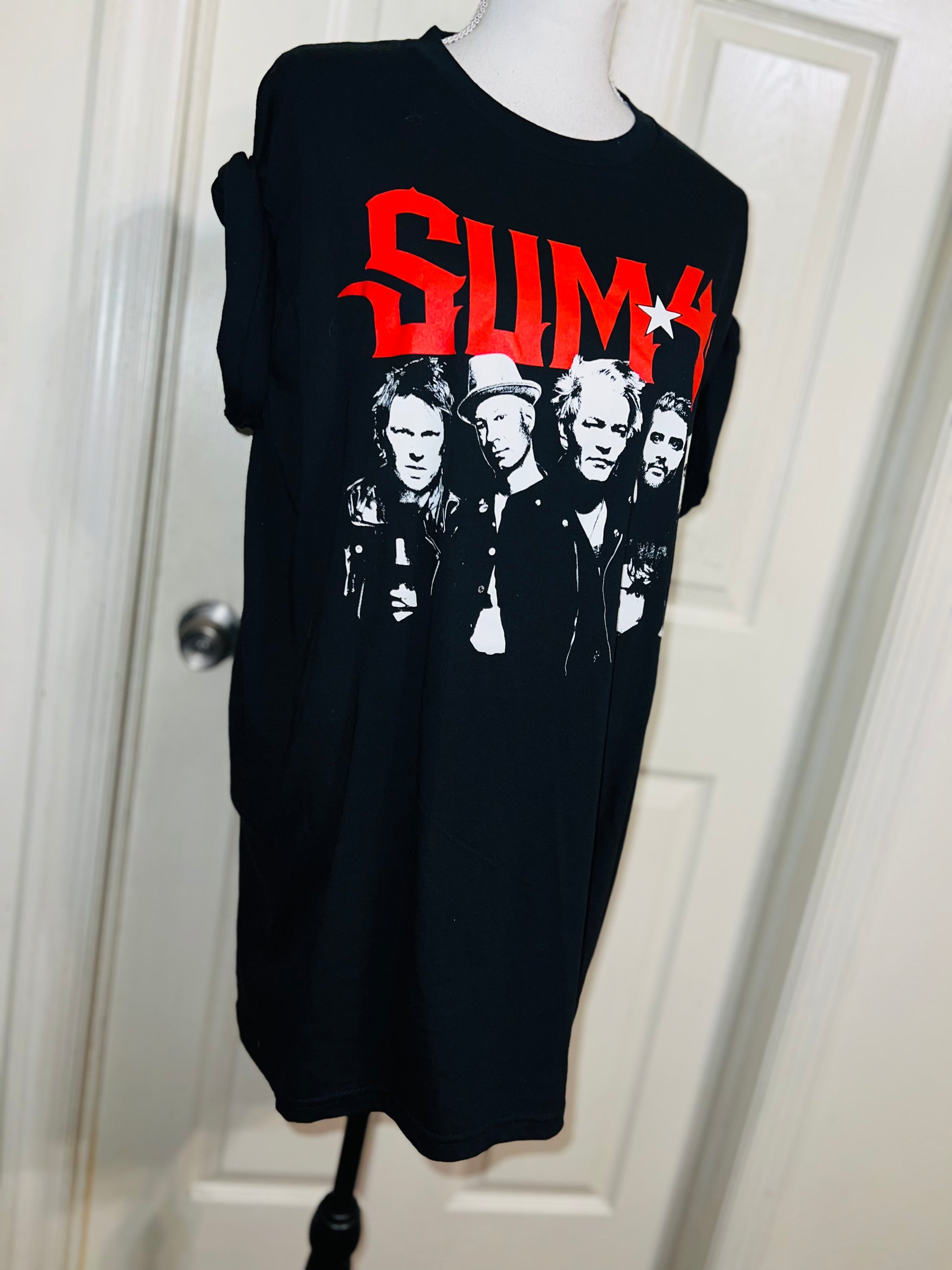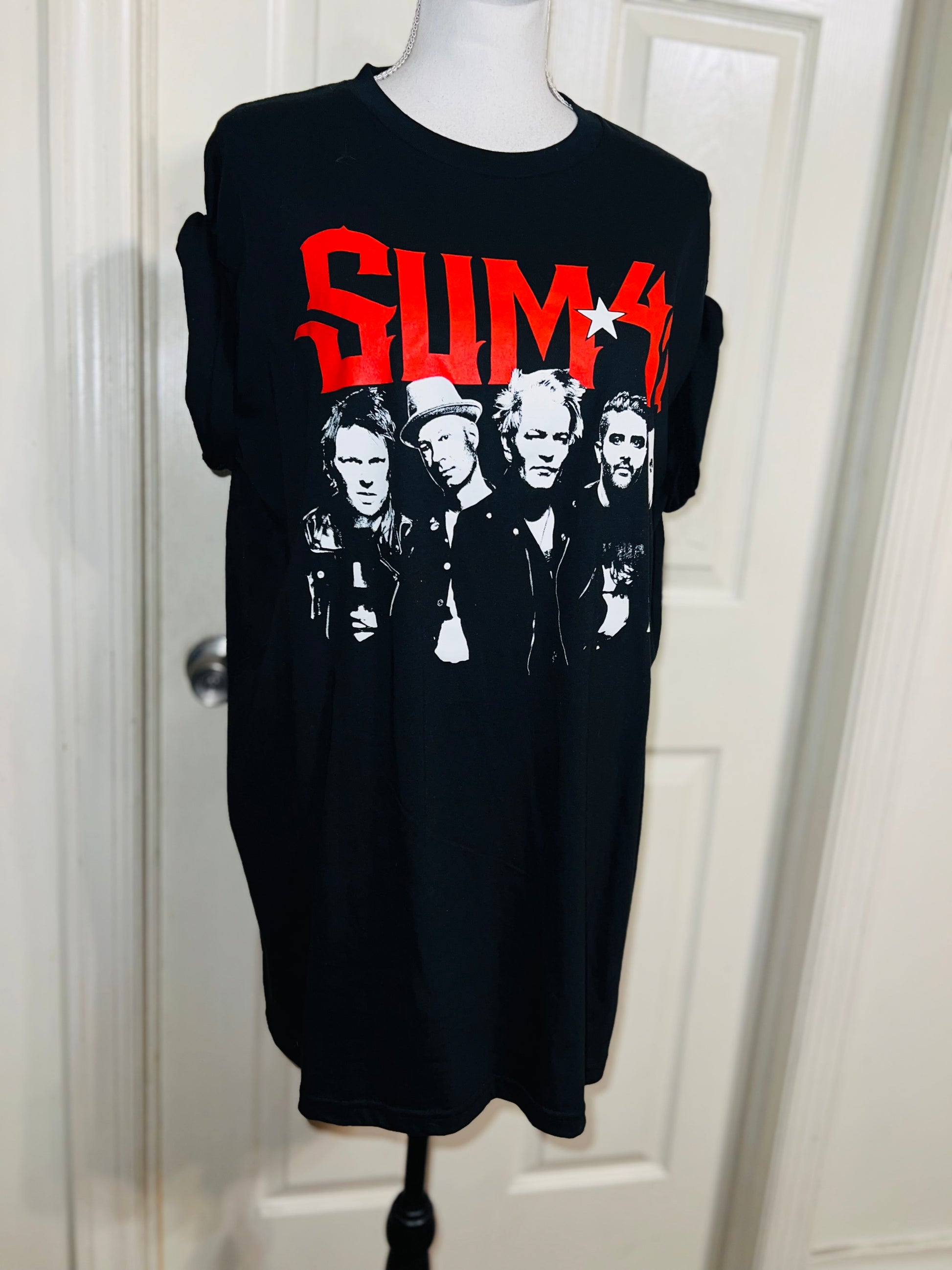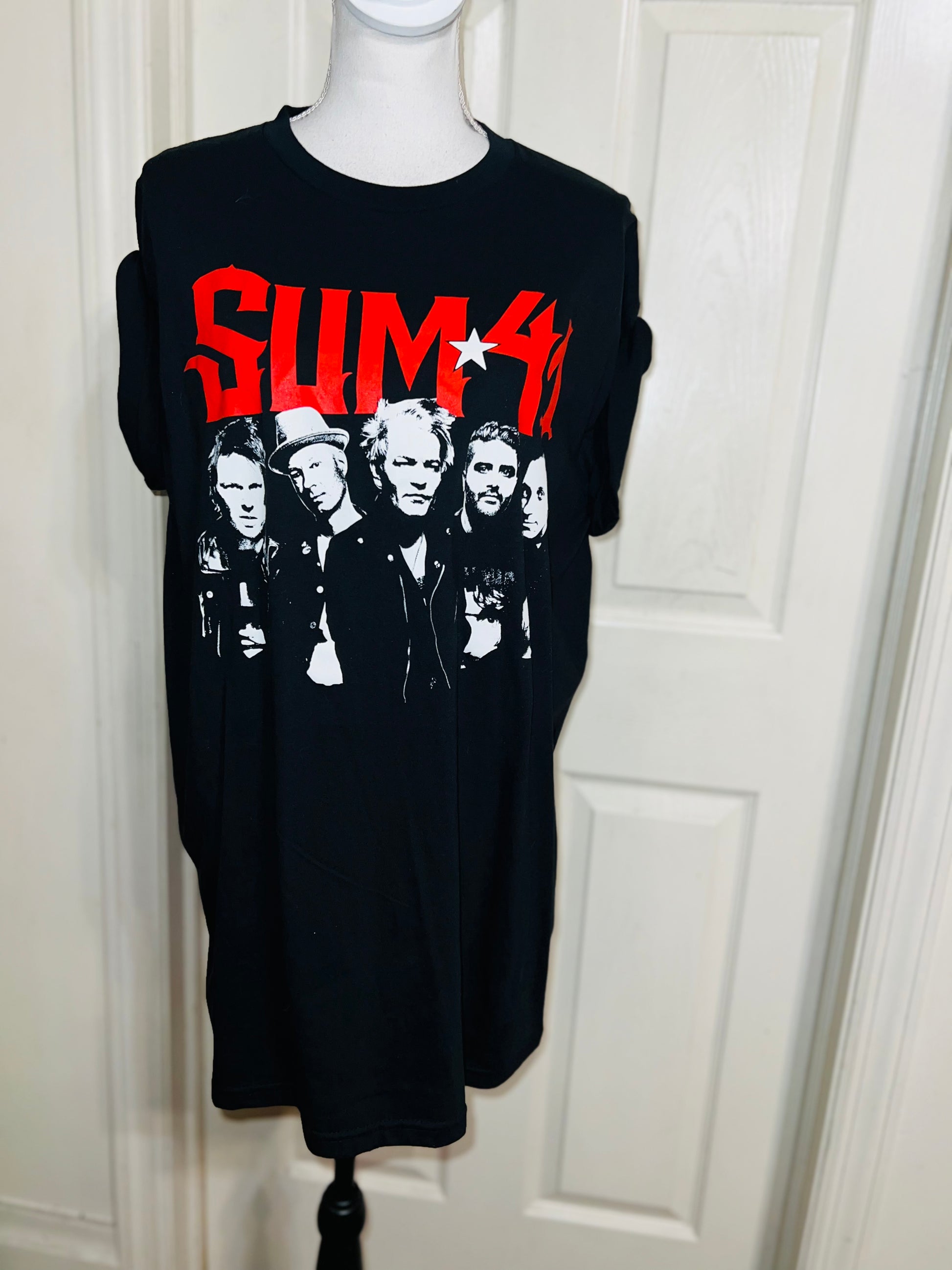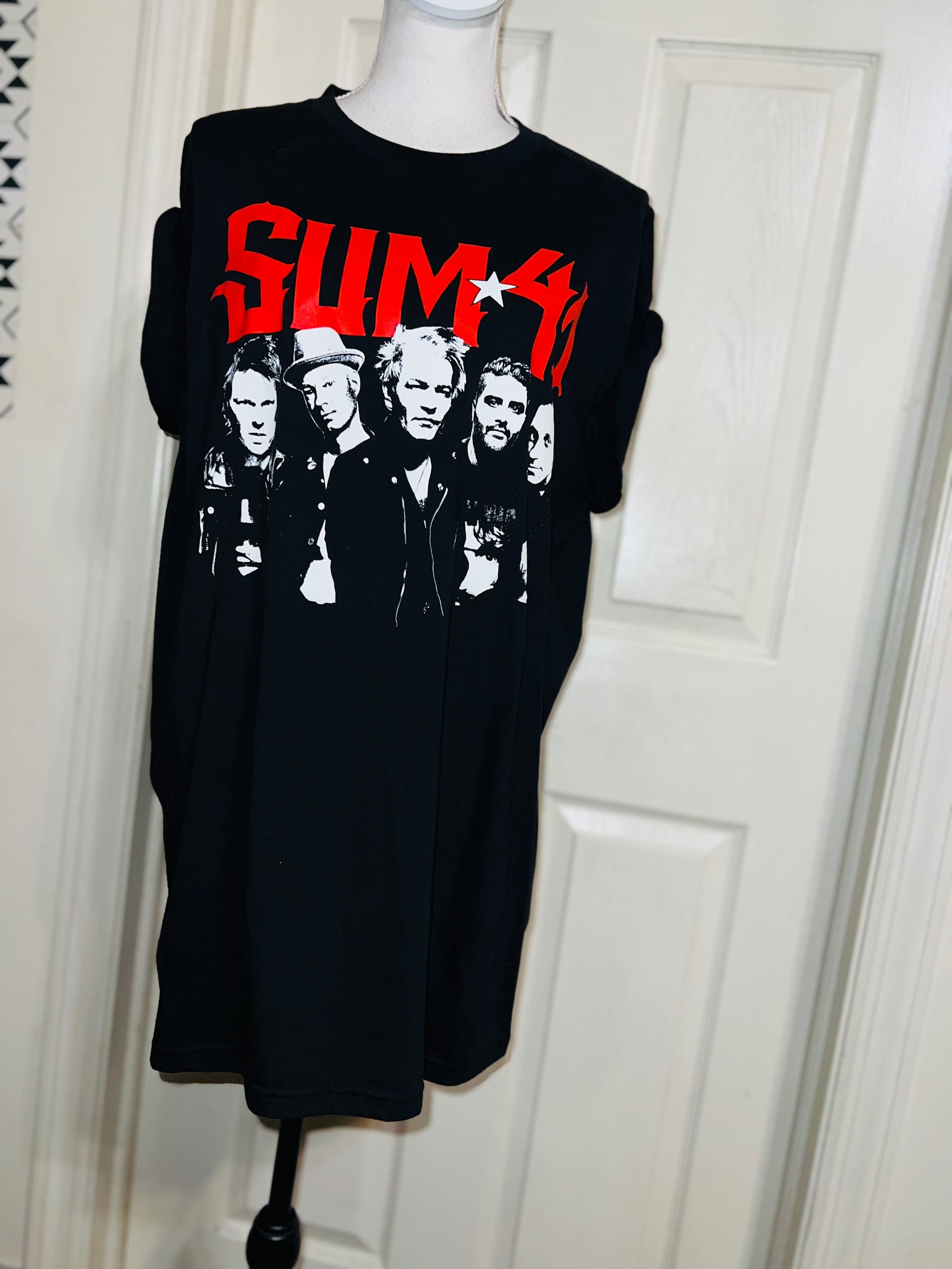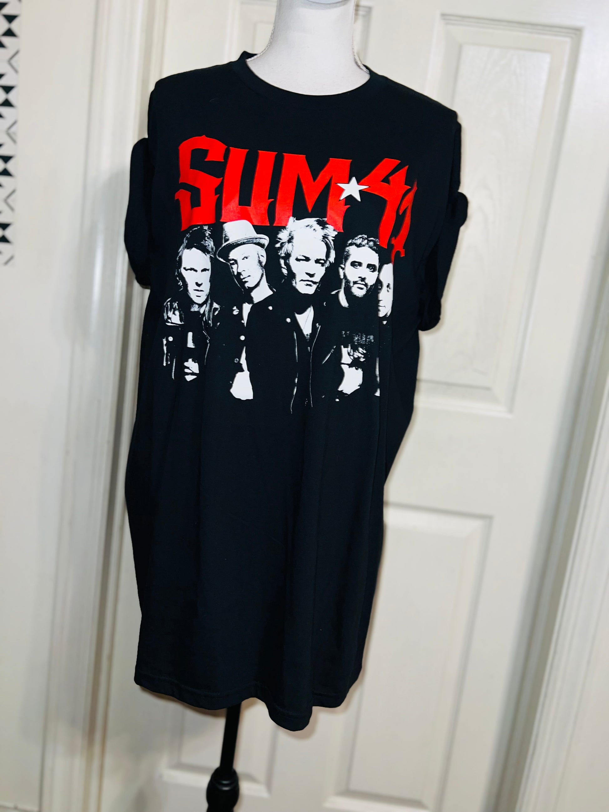 This is now a preorder. Please allow extra processing time. A throwback band that everyone loved!! A black Sum 41 t-shirt with the graphic of the bank in white and red + band name. Oversized XXL and XL. This isn’t distressed yet, so be sure to choose your distress level.