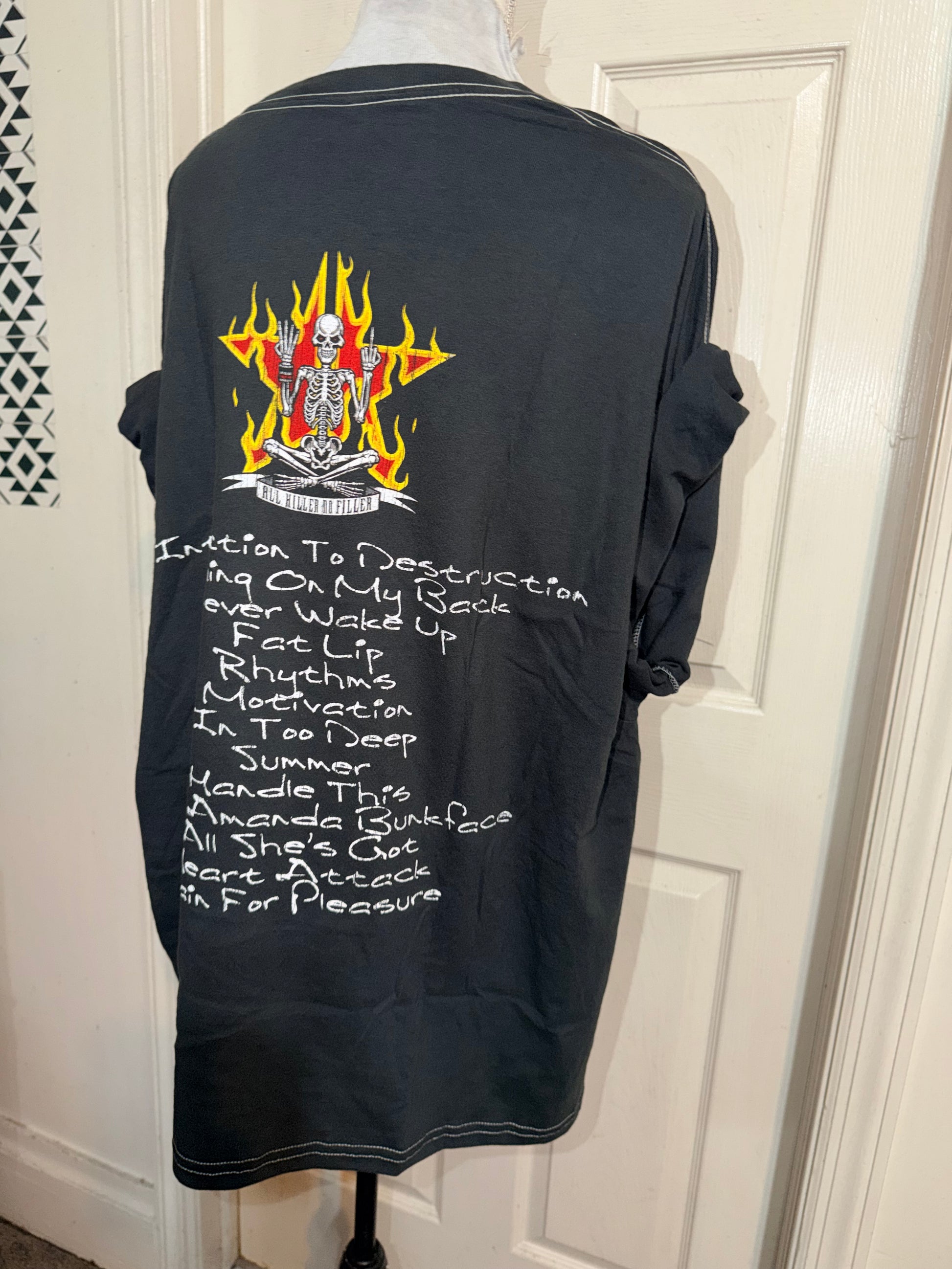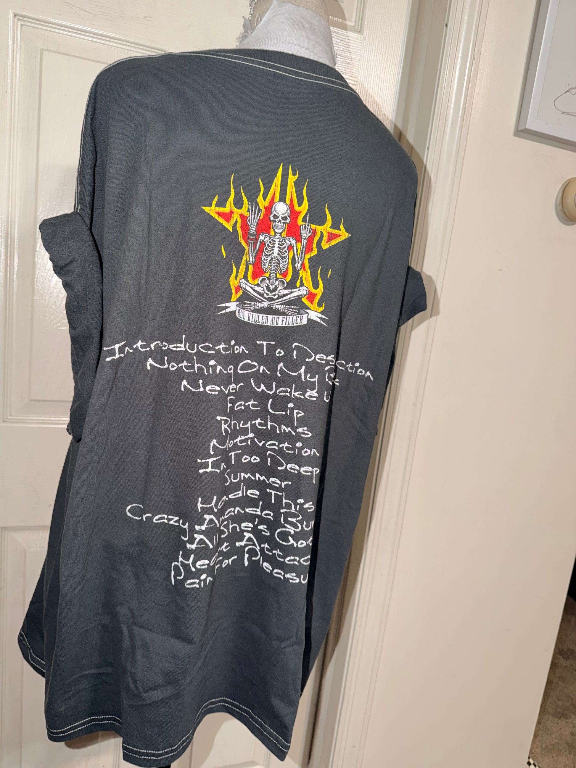 A dark charcoal grey Sum 41 double sided tee, “All Killer, No Filler.” Oversized.