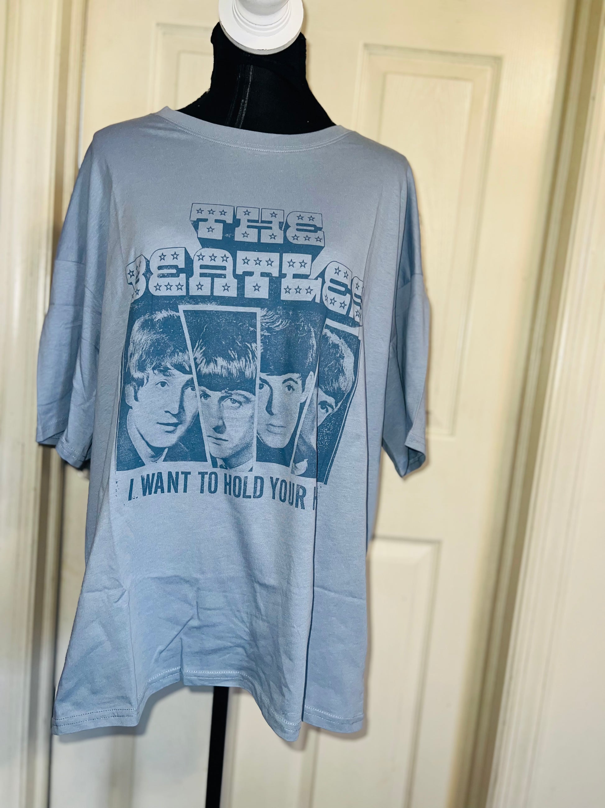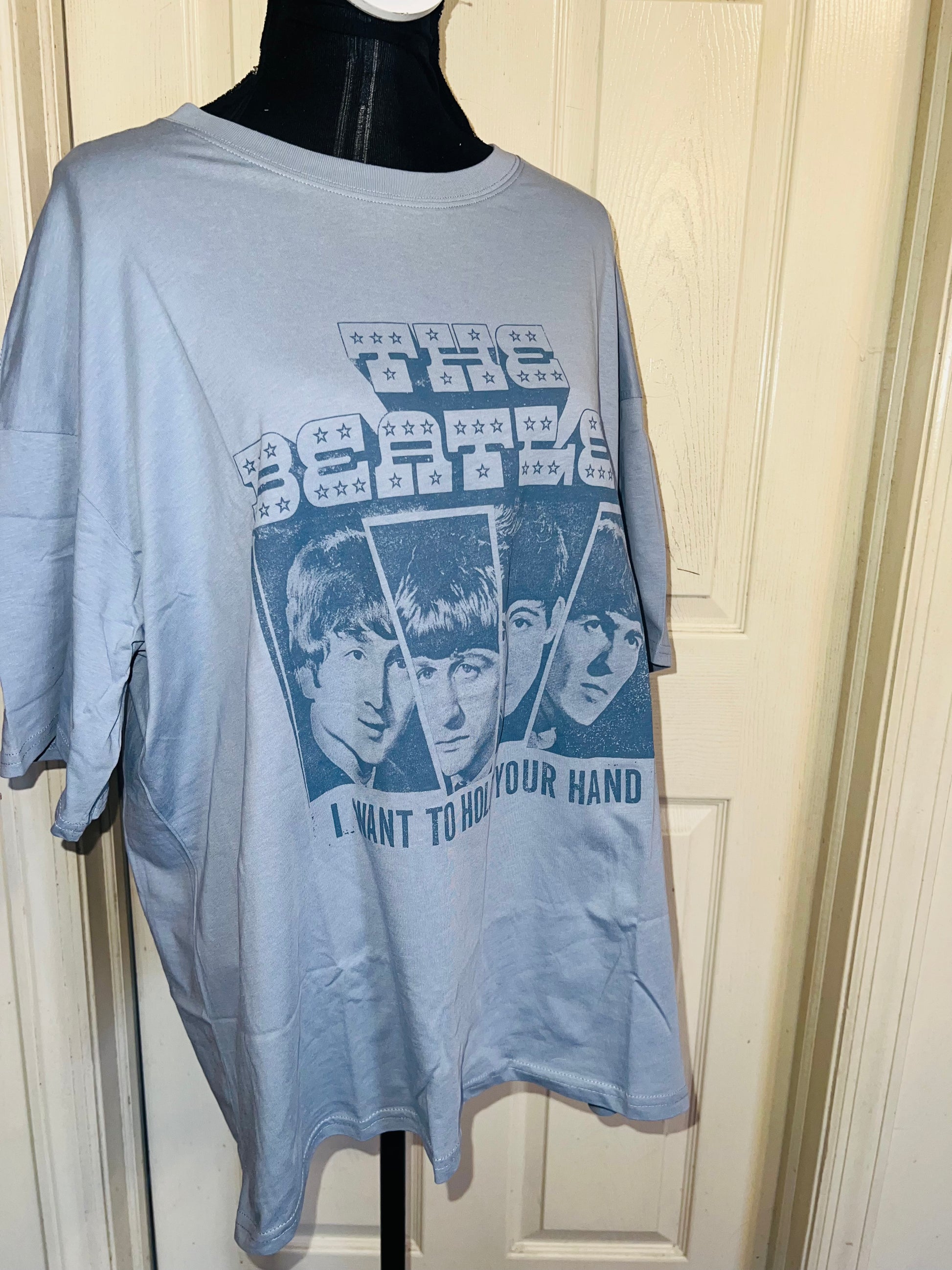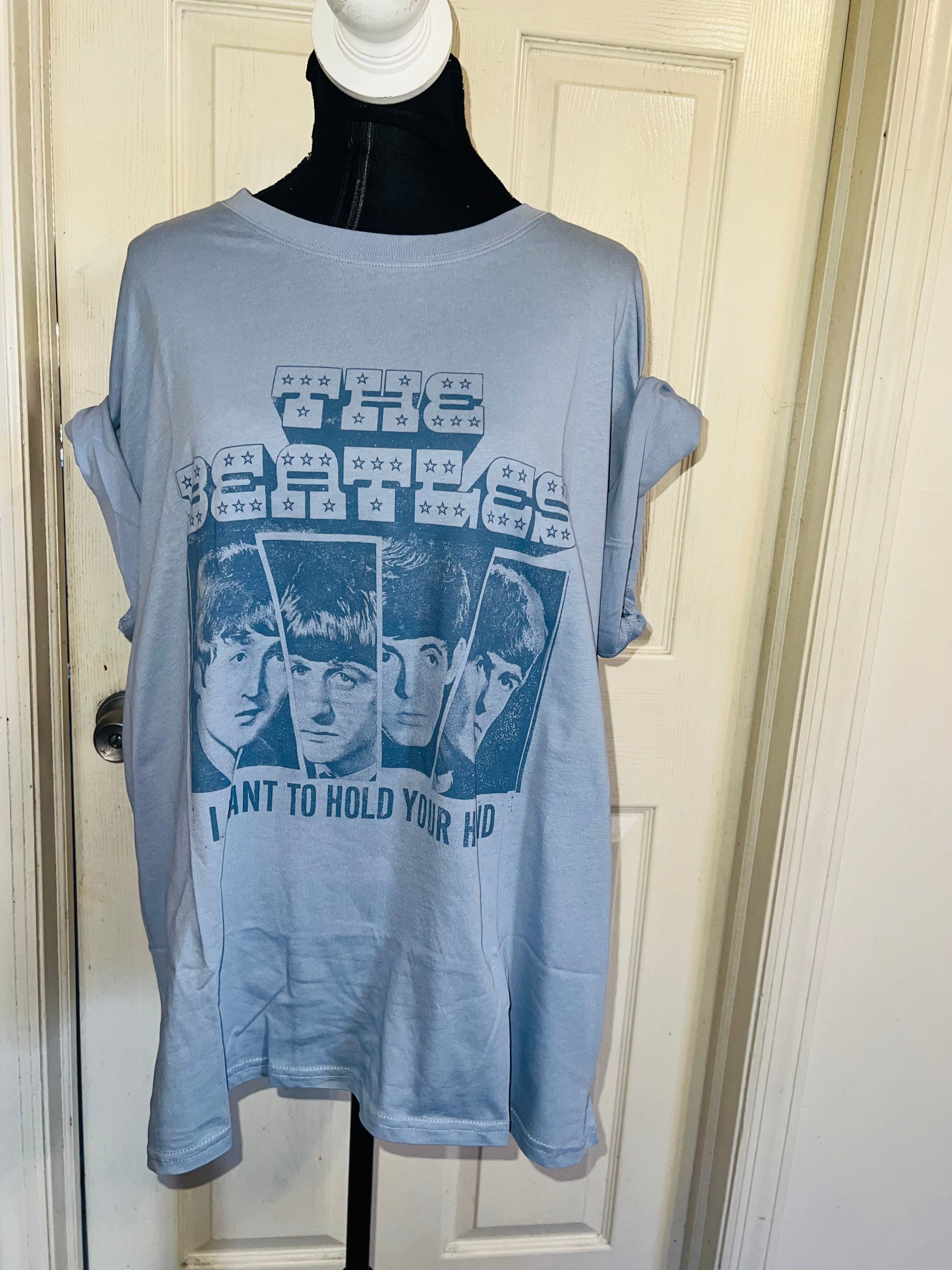This is now a preorder. Please allow extra processing time! A light blue Beatles tee with “I want to hold your hand.” Size XL, oversized.