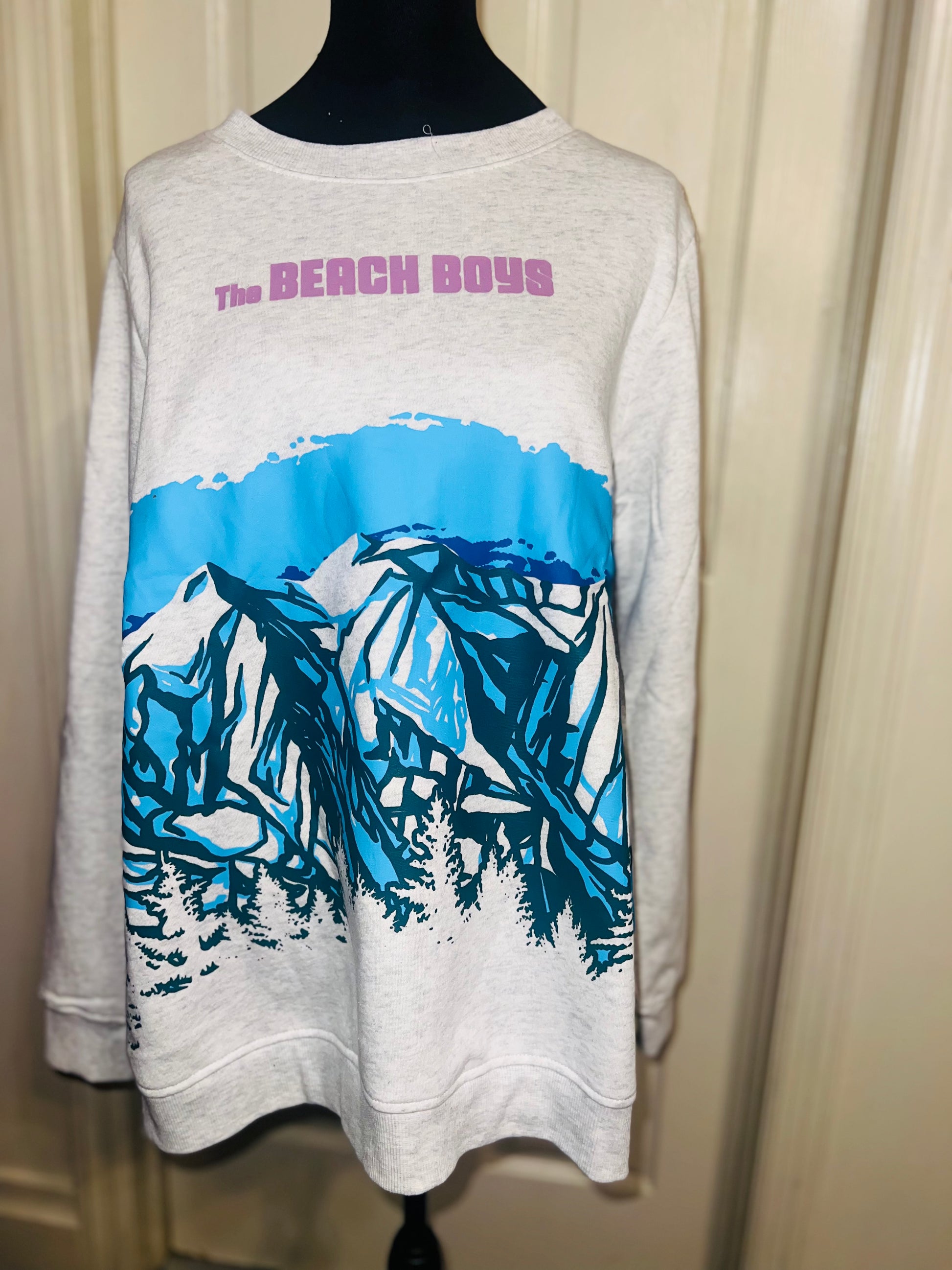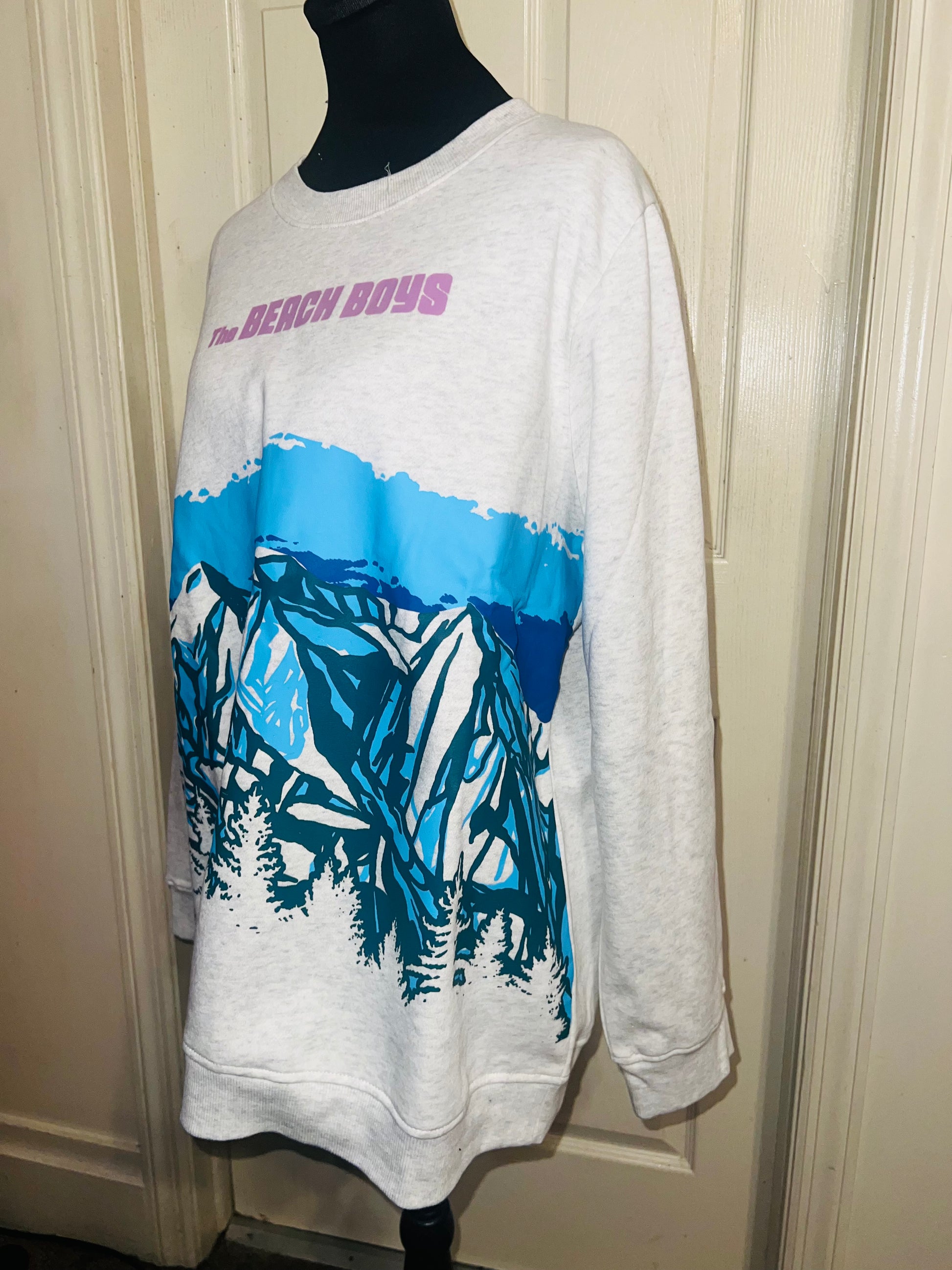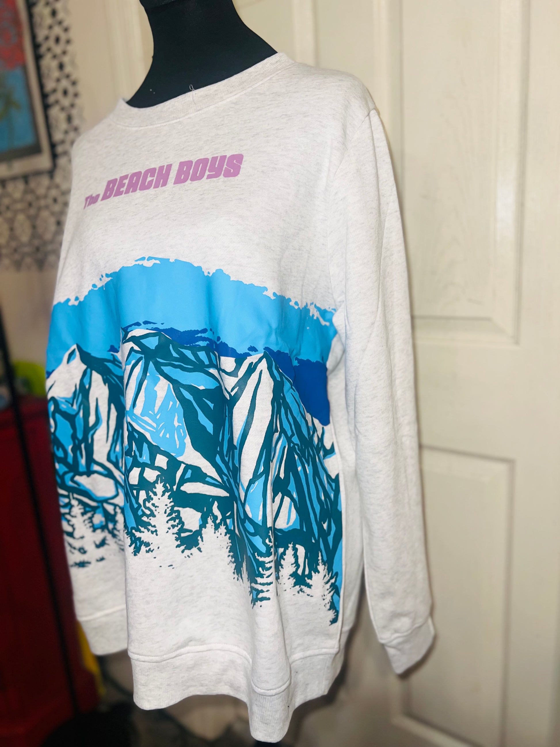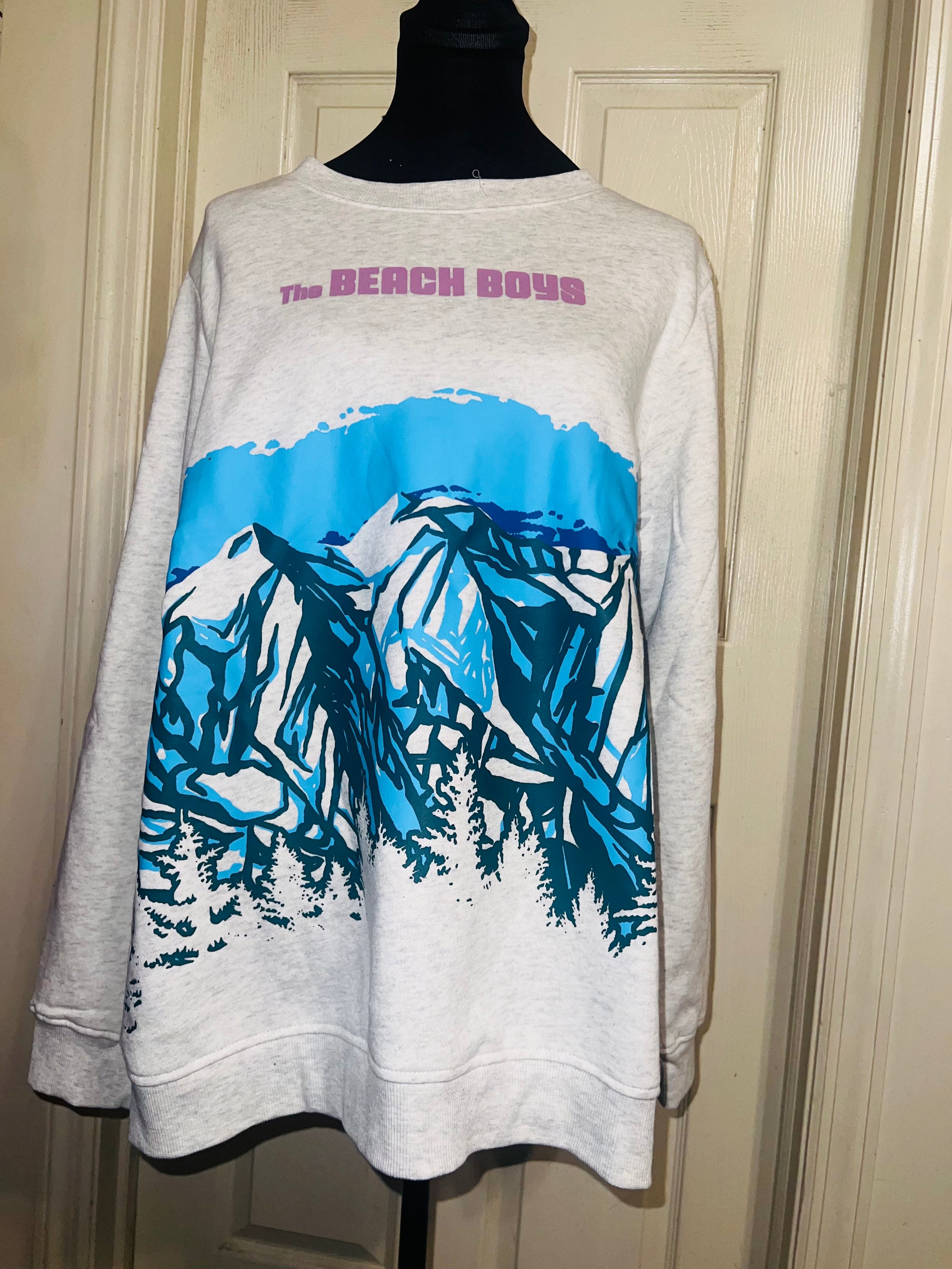 This is a preorder. Please allow extra processing time. Beach Boys sweatshirt with a cool mountain landscape on the front. I love this one. Size large, oversized.