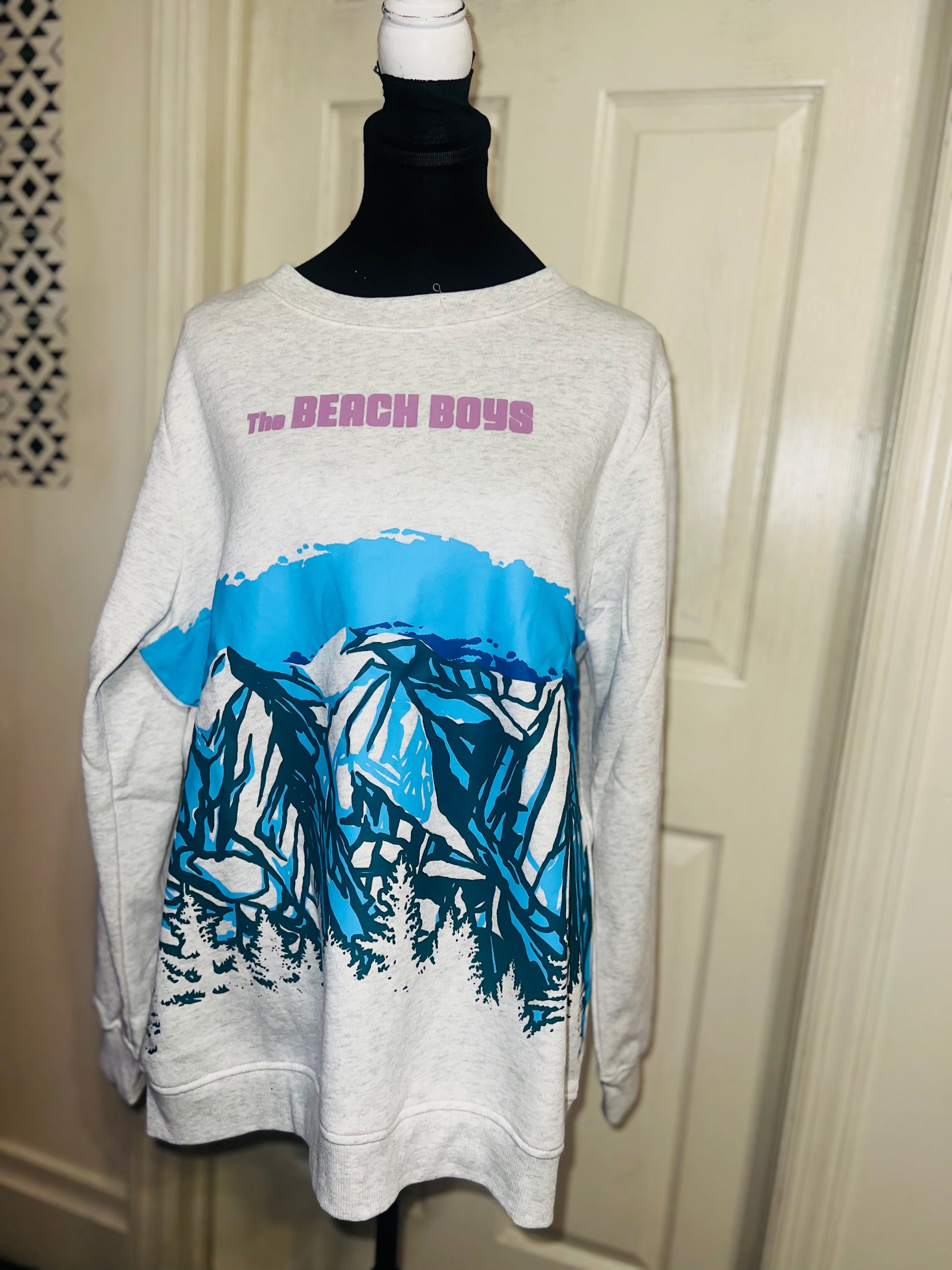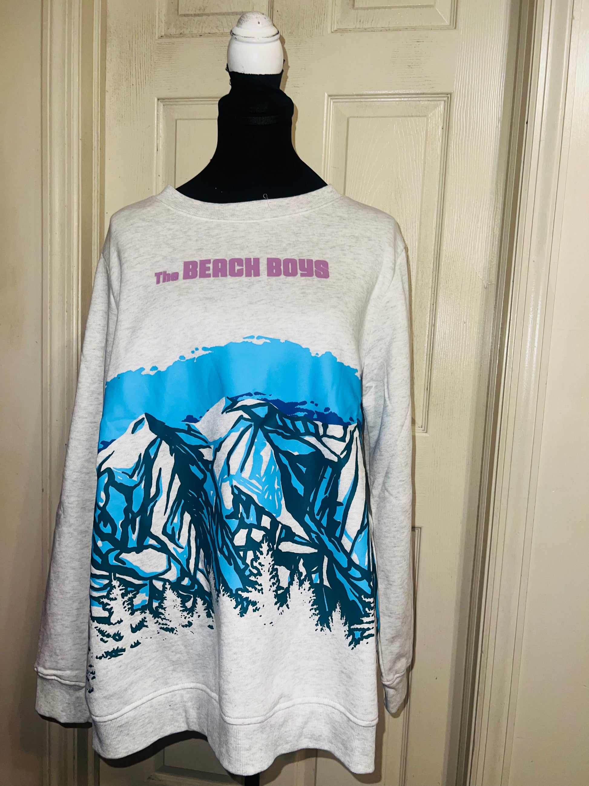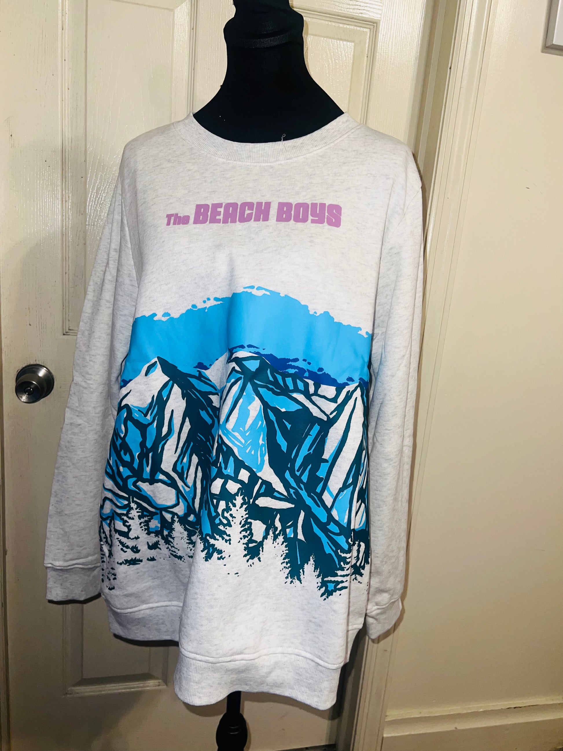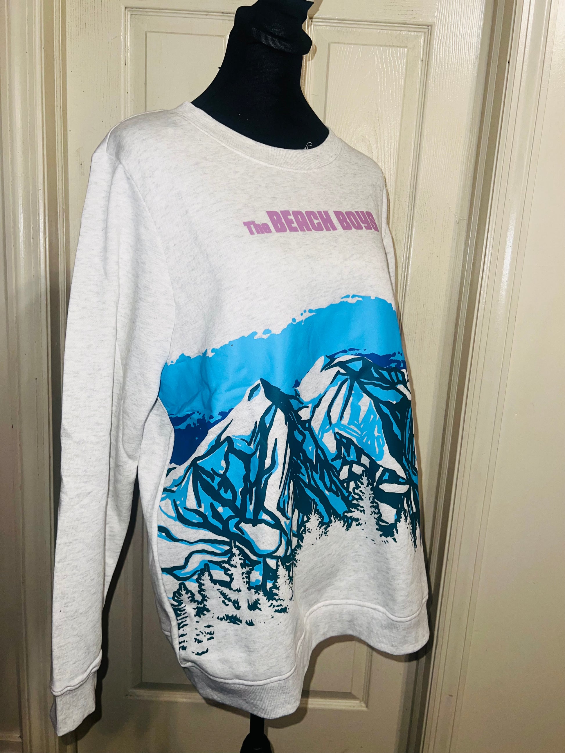 This is a preorder. Please allow extra processing time. Beach Boys sweatshirt with a cool mountain landscape on the front. I love this one. Size large, oversized.